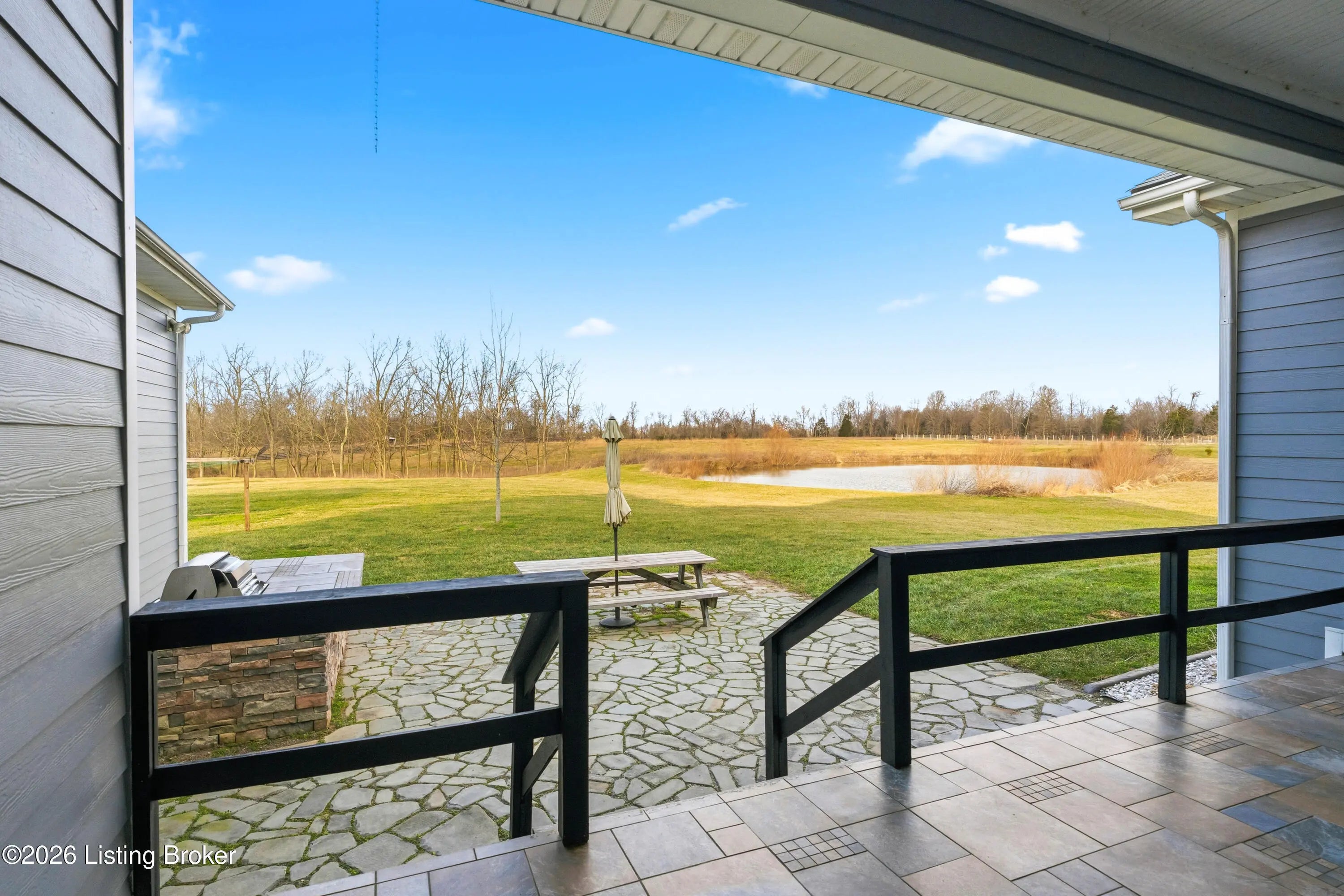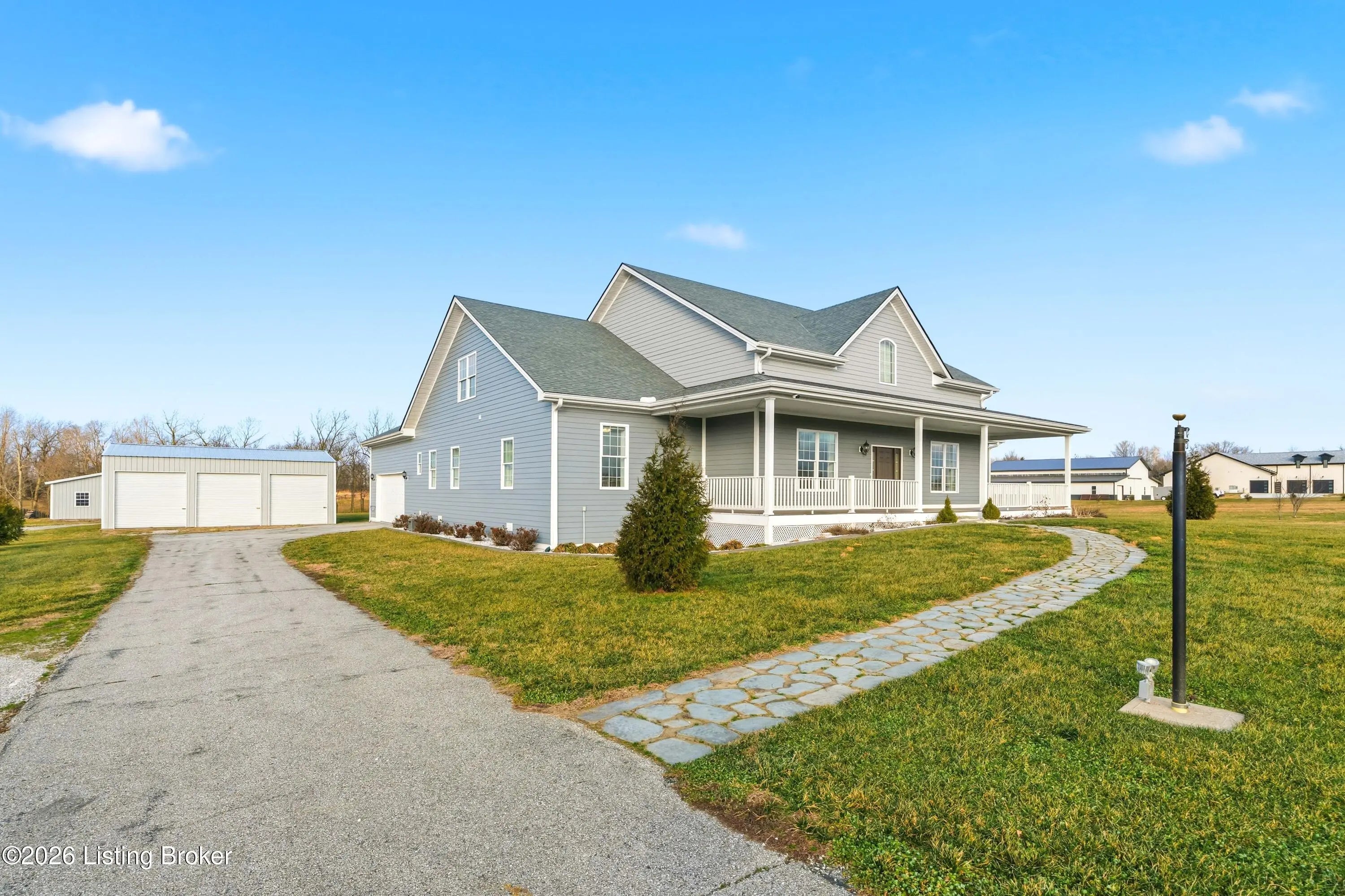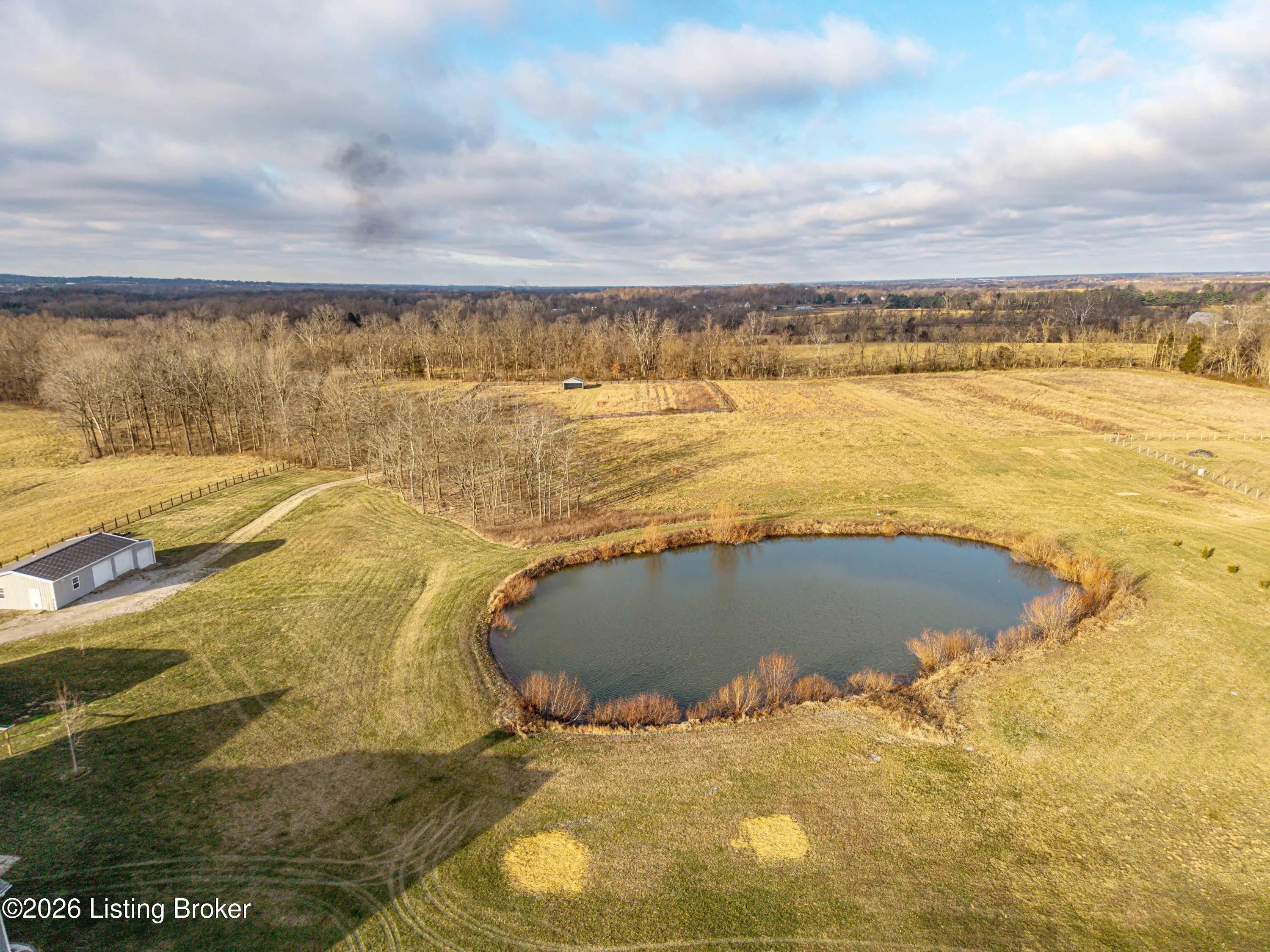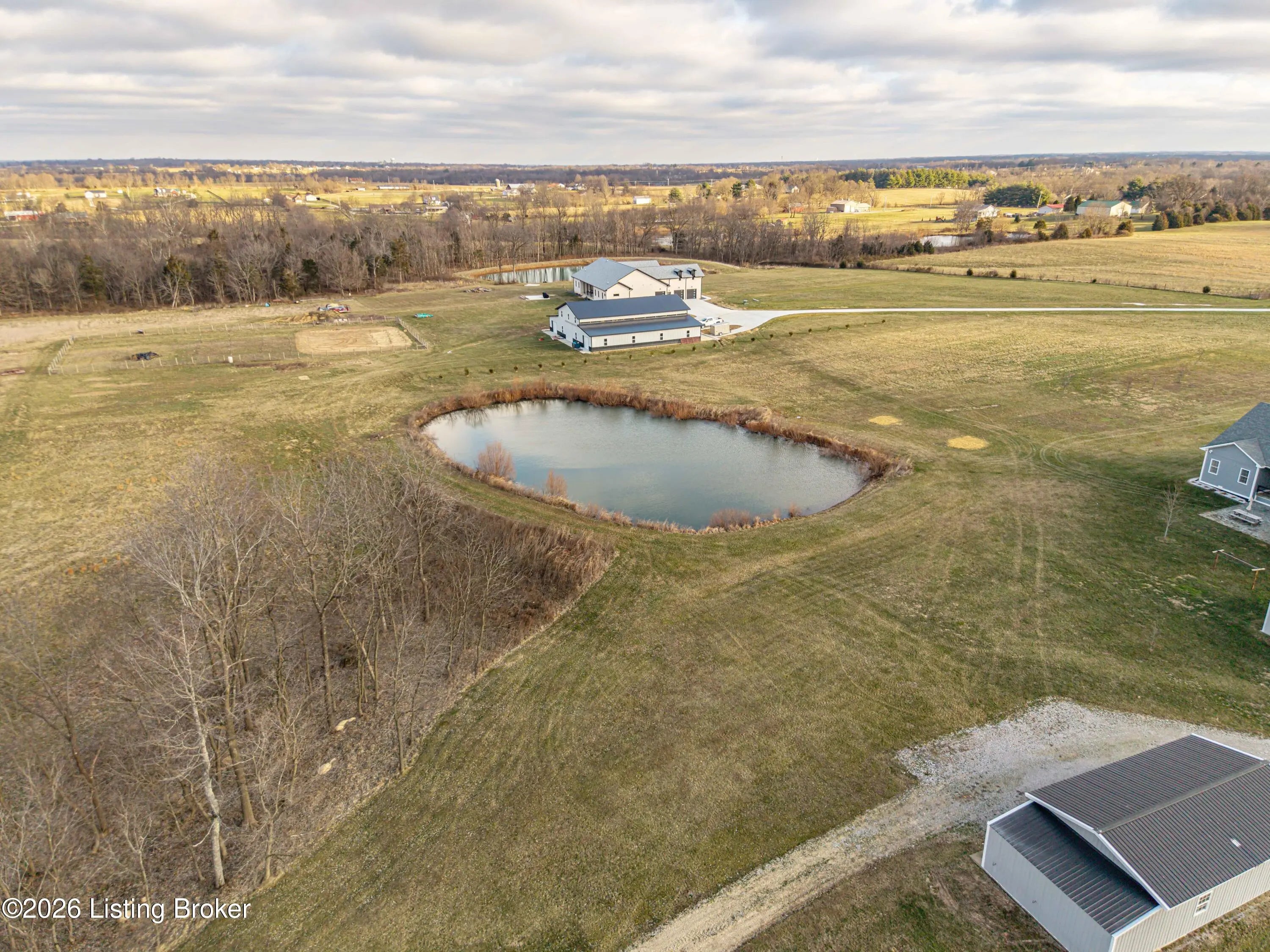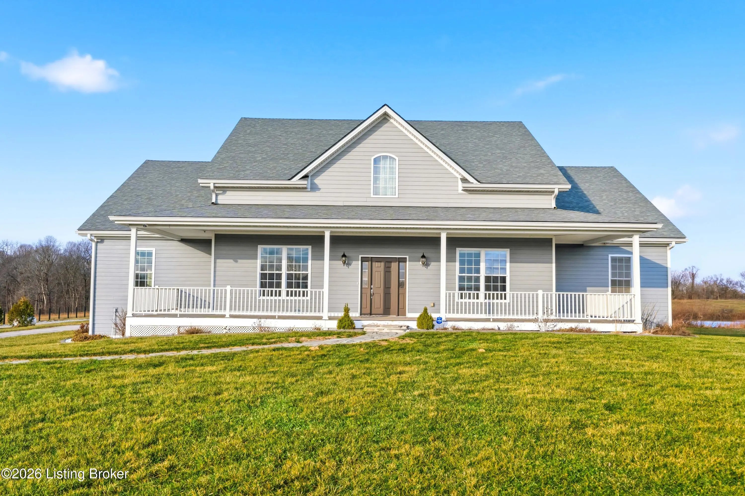 Welcome home to an extraordinary estate where refined living meets the serenity of some of the best land Shelby County has to offer. Spanning over 6,000 square feet of living space, this remarkable residence offers lifestyle very few properties can match - a grand design both inside and out worthy of a magazine spread. Situated down a long country driveway and nestled close to your own fishing pond, this home is truly special. You're welcome by the covered front porch that looks out over several acres of front yard space. From the entryway, the formal dining room is to the left which leads into the chef's kitchen. An abundance of cabinets and counter space, the wall oven and microwave plus a gas cooktop makes this kitchen a dream. There is even plenty of space for a breakfast table as well. The kitchen opens up to the family living room adorned with a wall of windows to capture the pond at sunset plus a wood burning stove to keep the whole space cozy. The main level offers a split floor plan with the primary bedroom suite and office or bedroom on one side of the family room and 2 additional bedrooms, bathrooms and big laundry room on the other side. The primary bedroom has a wonderful walk in closet, its own personal door to the covered back patio and lavish bathroom equipped with instant hot water, thanks to a water heater upgrade. Upstairs is a newly finished gigantic loft that has brand new carpet, many storage closets and even plumbed for a private bathroom upstairs - making this an option for a really cool teenager suite or huge game room. But even more fun space continues in the finished basement. Also newly finished, the basement has over 1100 square space that could be an incredible entertainment zone. This home was completely painted both inside and out just 5 years ago. Not many homes can be described as strong as this one. The foundation and exterior walls are over a foot thick and double insulated with foam panels. Additional extras include a whole house water filter system, a reinforced safe room in the basement complete with its own vault door and a brand new roof in 2025. But wait, there's more. The list of amenities continue outdoors. A new 3 bay garage was added in 2021, plus there is a second outbuilding that will hold your farm and lawn equipment to maintain your 14+/- acres of land. (The actual number of acres is approximate until the final survey is delivered very soon) Come take a look at this gorgeous home so you can spend spring and summer taking in all of its beauty.