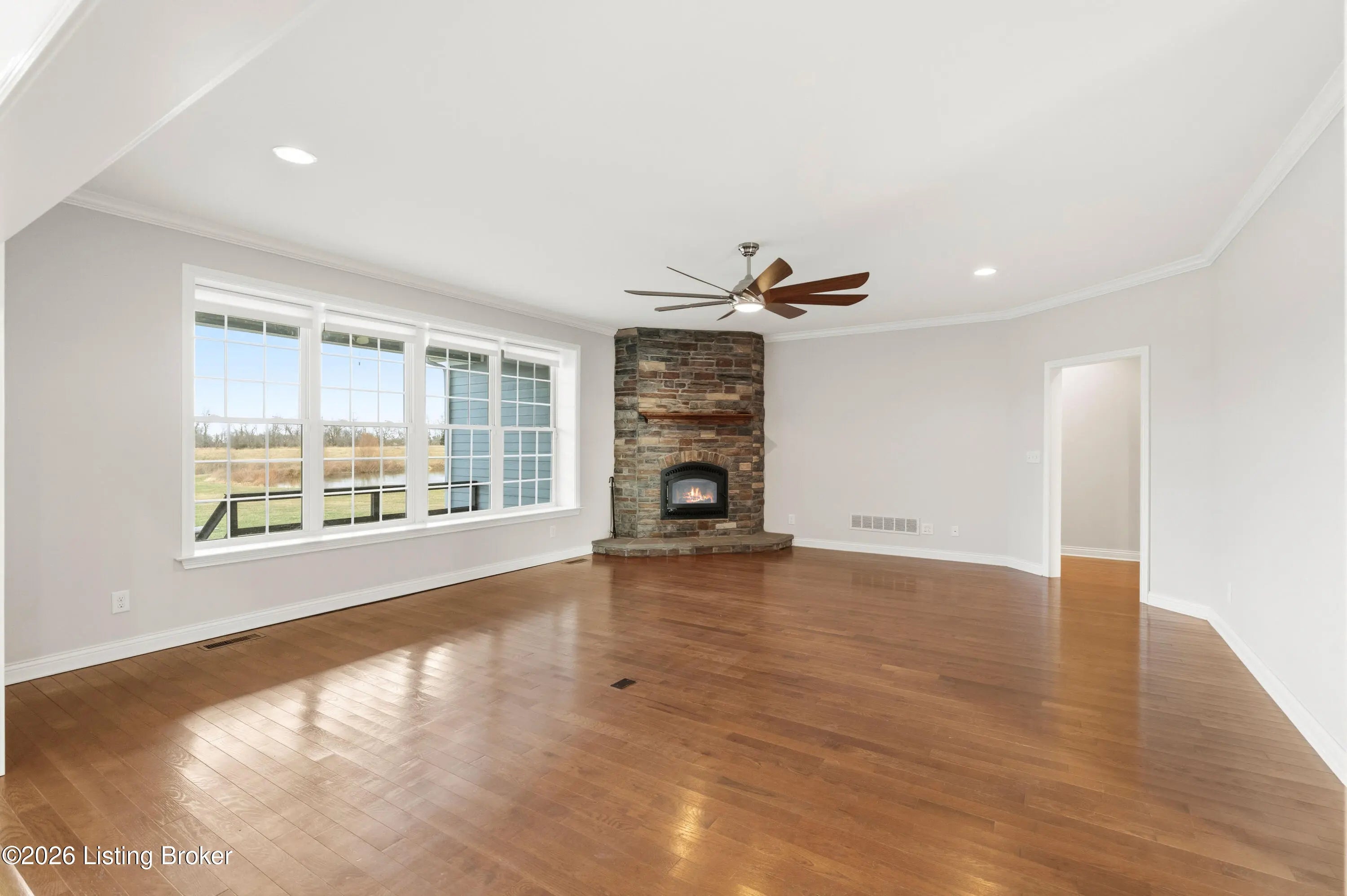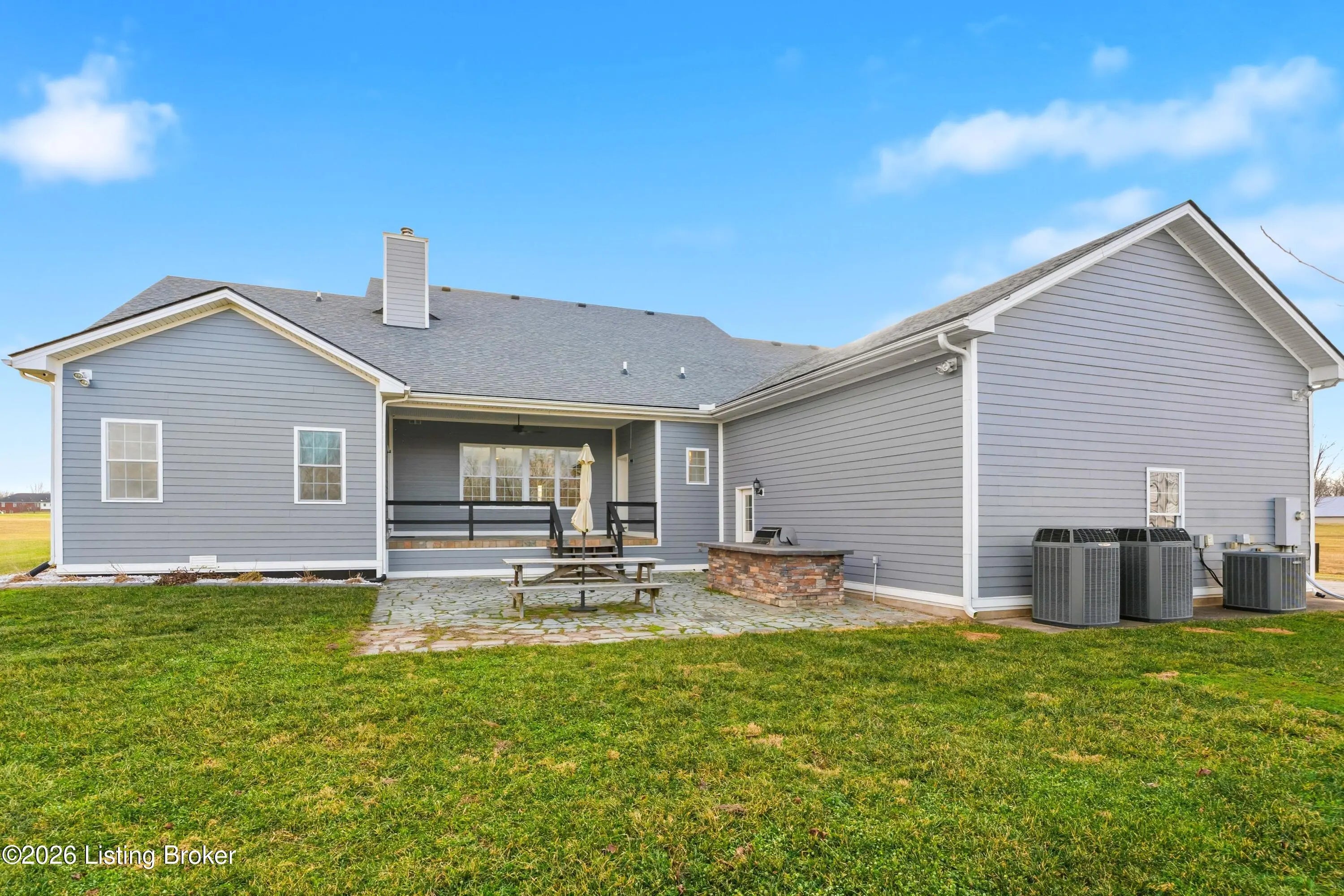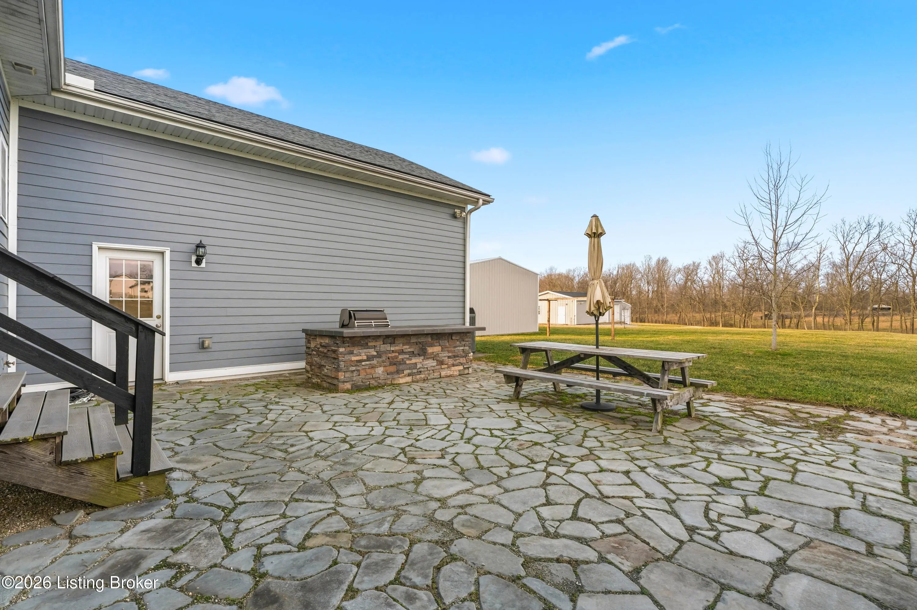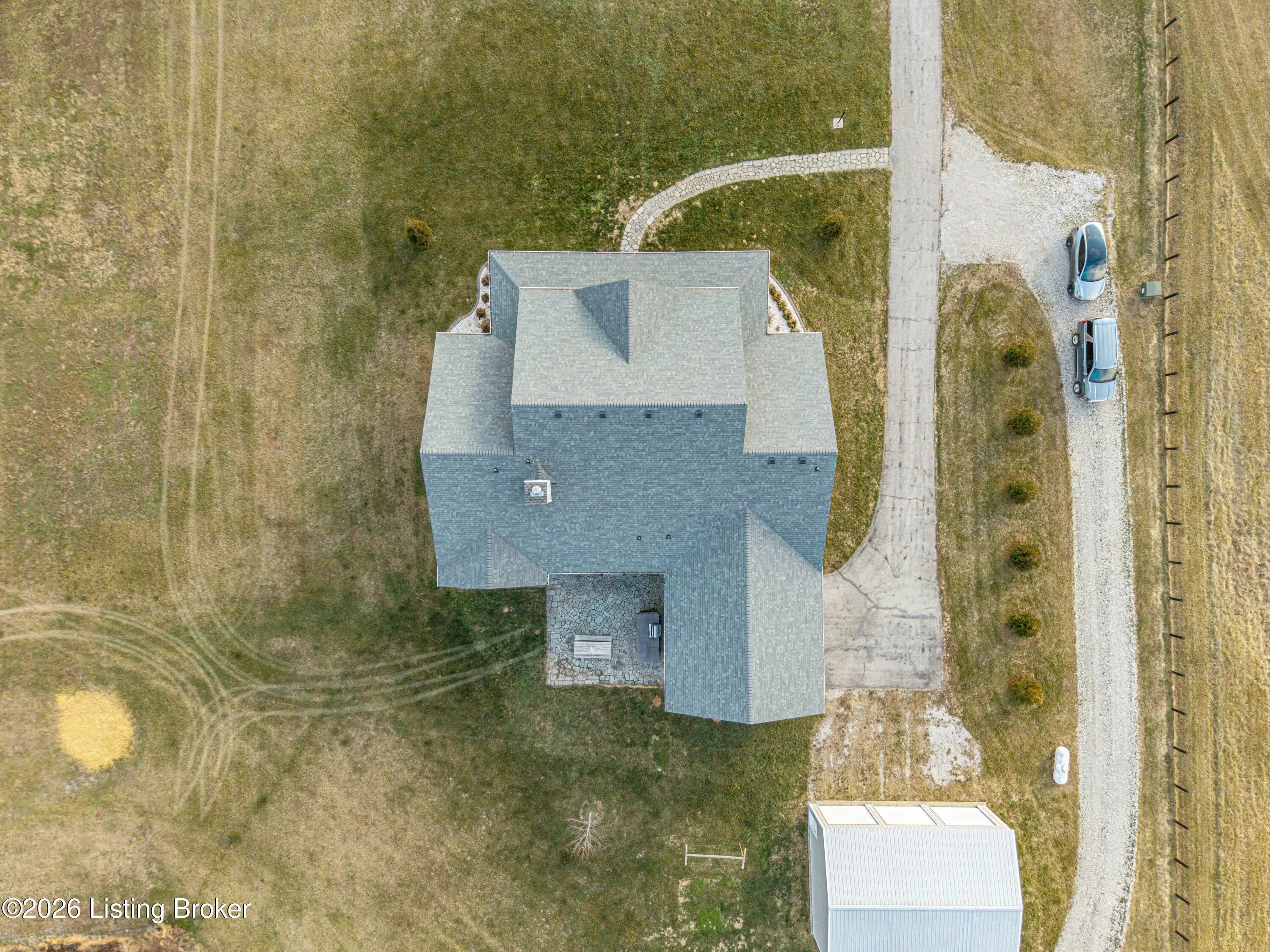 Welcome home to an extraordinary estate where refined living meets the serenity of some of the best land Shelby County has to offer. Spanning over 6,000 square feet of living space, this remarkable residence offers lifestyle very few properties can match - a grand design both inside and out worthy of a magazine spread. Situated down a long country driveway and nestled close to your own fishing pond, this home is truly special. You're welcome by the covered front porch that looks out over several acres of front yard space. From the entryway, the formal dining room is to the left which leads into the chef's kitchen. An abundance of cabinets and counter space, the wall oven and microwave plus a gas cooktop makes this kitchen a dream. There is even plenty of space for a breakfast table as well. The kitchen opens up to the family living room adorned with a wall of windows to capture the pond at sunset plus a wood burning stove to keep the whole space cozy. The main level offers a split floor plan with the primary bedroom suite and office or bedroom on one side of the family room and 2 additional bedrooms, bathrooms and big laundry room on the other side. The primary bedroom has a wonderful walk in closet, its own personal door to the covered back patio and lavish bathroom equipped with instant hot water, thanks to a water heater upgrade. Upstairs is a newly finished gigantic loft that has brand new carpet, many storage closets and even plumbed for a private bathroom upstairs - making this an option for a really cool teenager suite or huge game room. But even more fun space continues in the finished basement. Also newly finished, the basement has over 1100 square space that could be an incredible entertainment zone. This home was completely painted both inside and out just 5 years ago. Not many homes can be described as strong as this one. The foundation and exterior walls are over a foot thick and double insulated with foam panels. Additional extras include a whole house water filter system, a reinforced safe room in the basement complete with its own vault door and a brand new roof in 2025. But wait, there's more. The list of amenities continue outdoors. A new 3 bay garage was added in 2021, plus there is a second outbuilding that will hold your farm and lawn equipment to maintain your 14+/- acres of land. (The actual number of acres is approximate until the final survey is delivered very soon) Come take a look at this gorgeous home so you can spend spring and summer taking in all of its beauty.