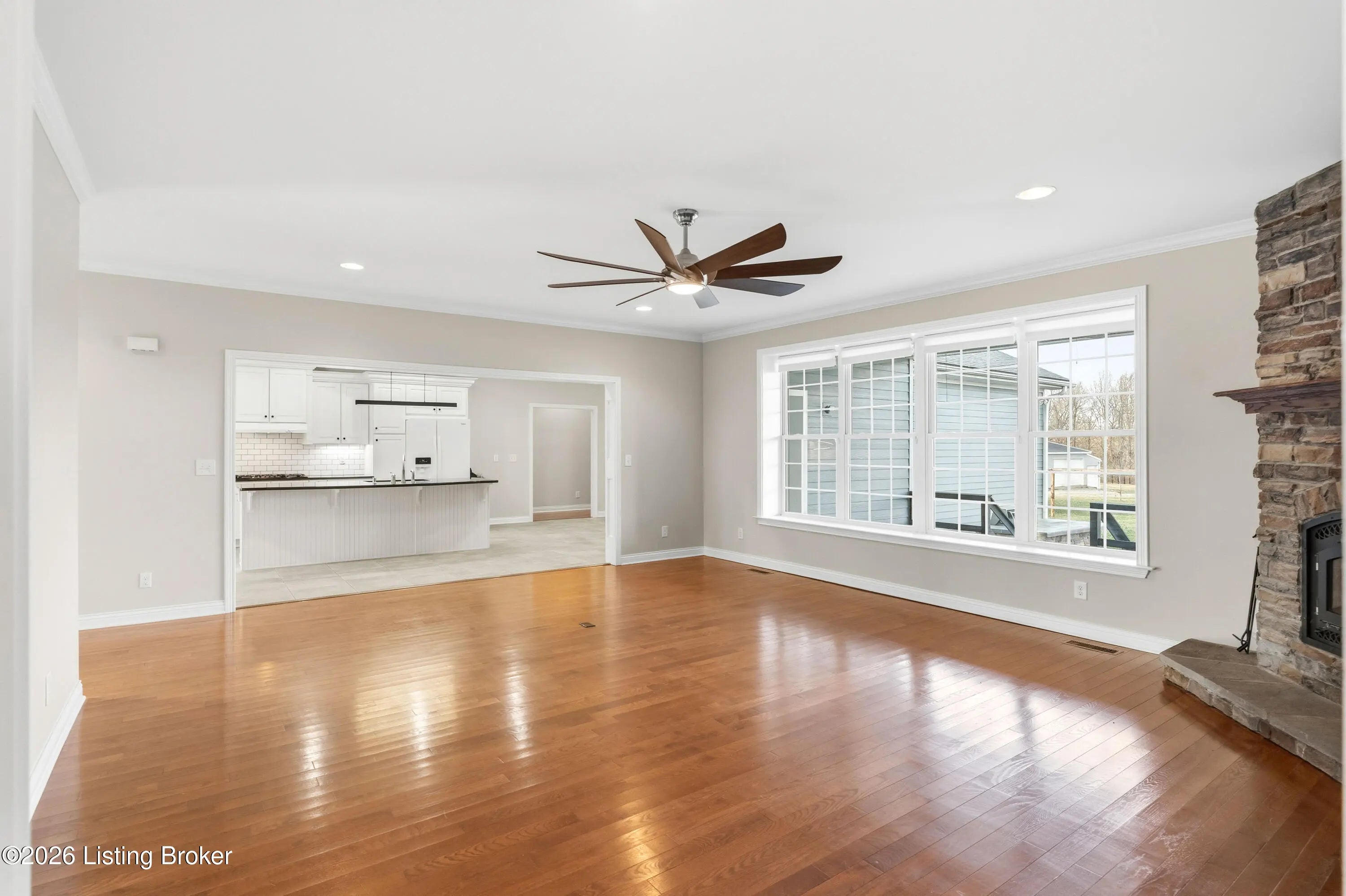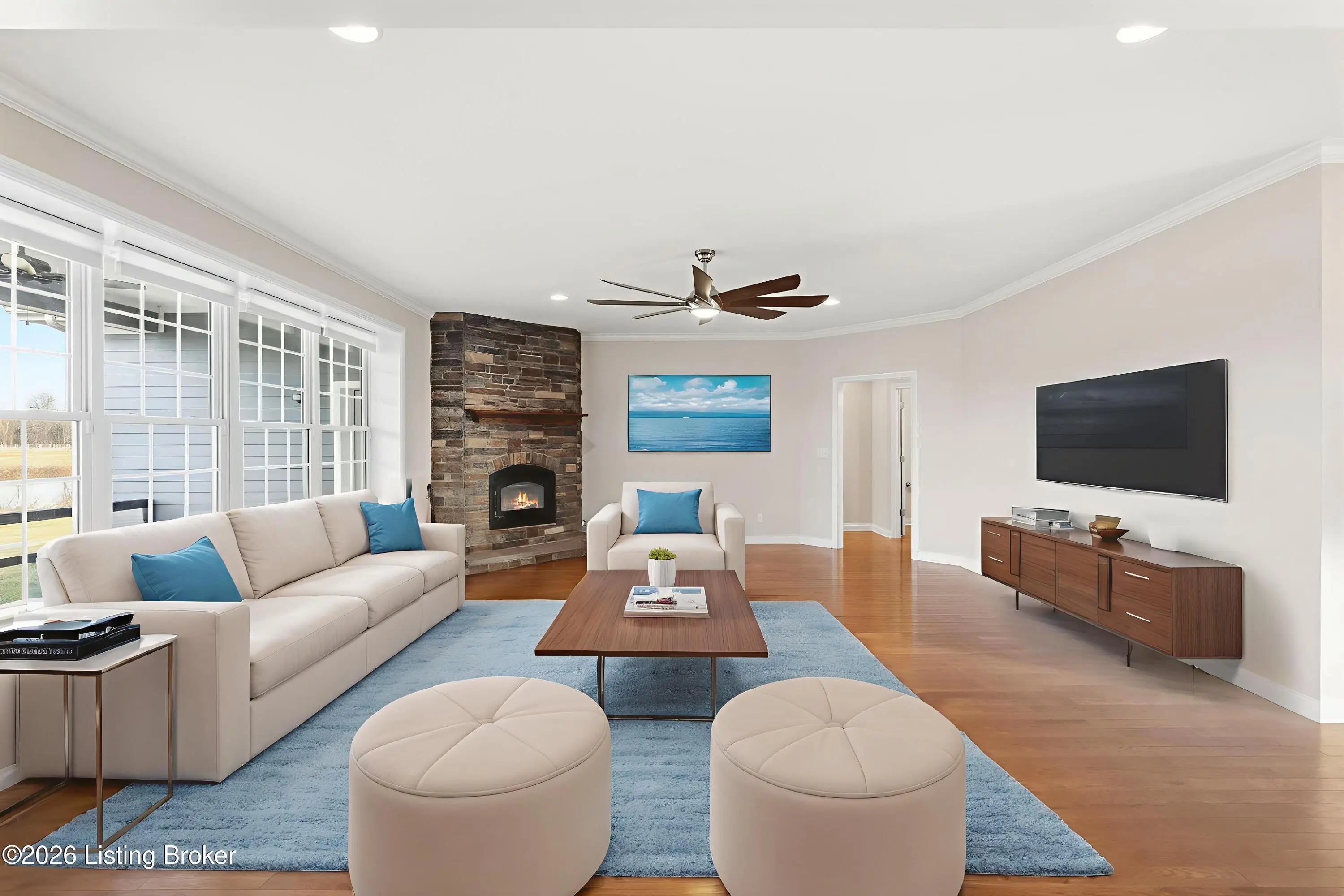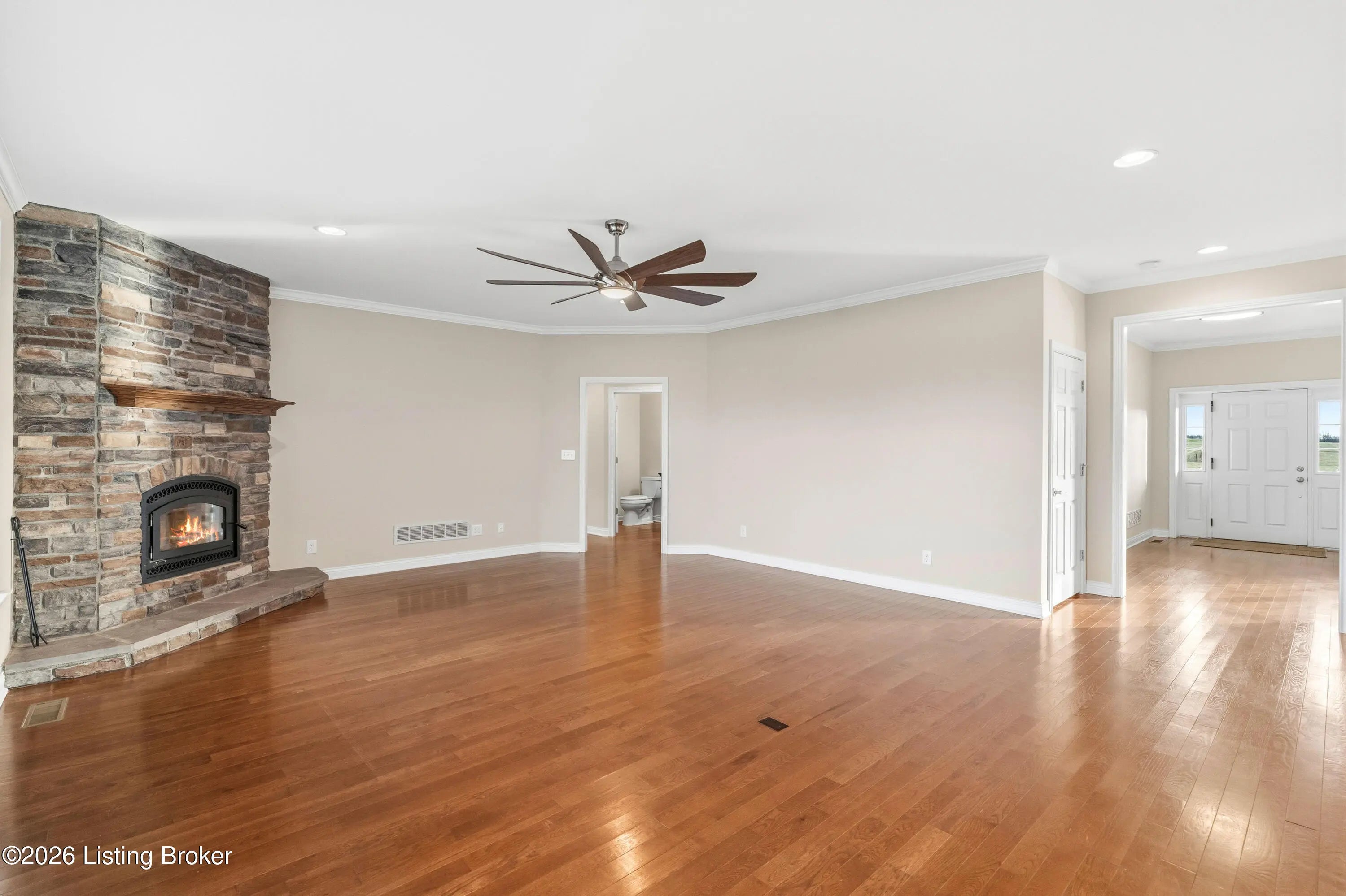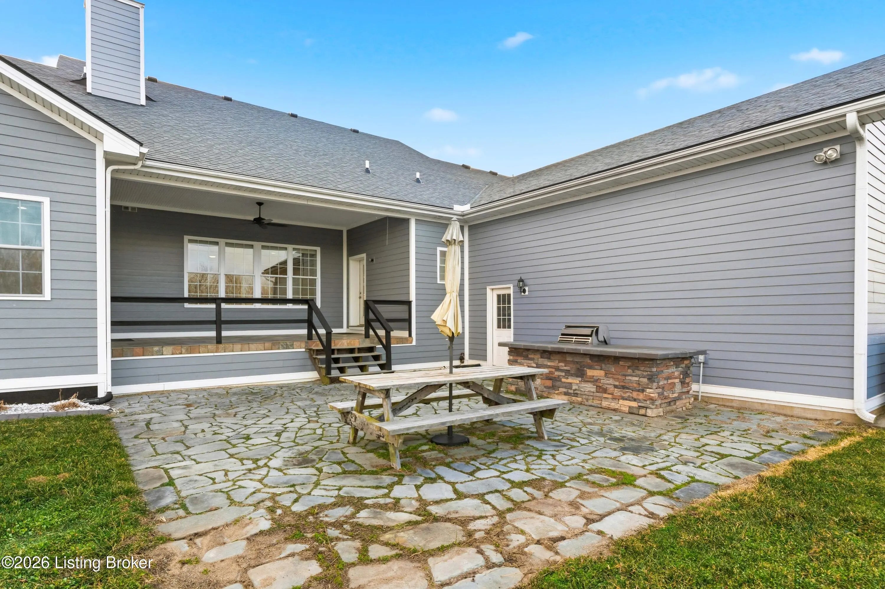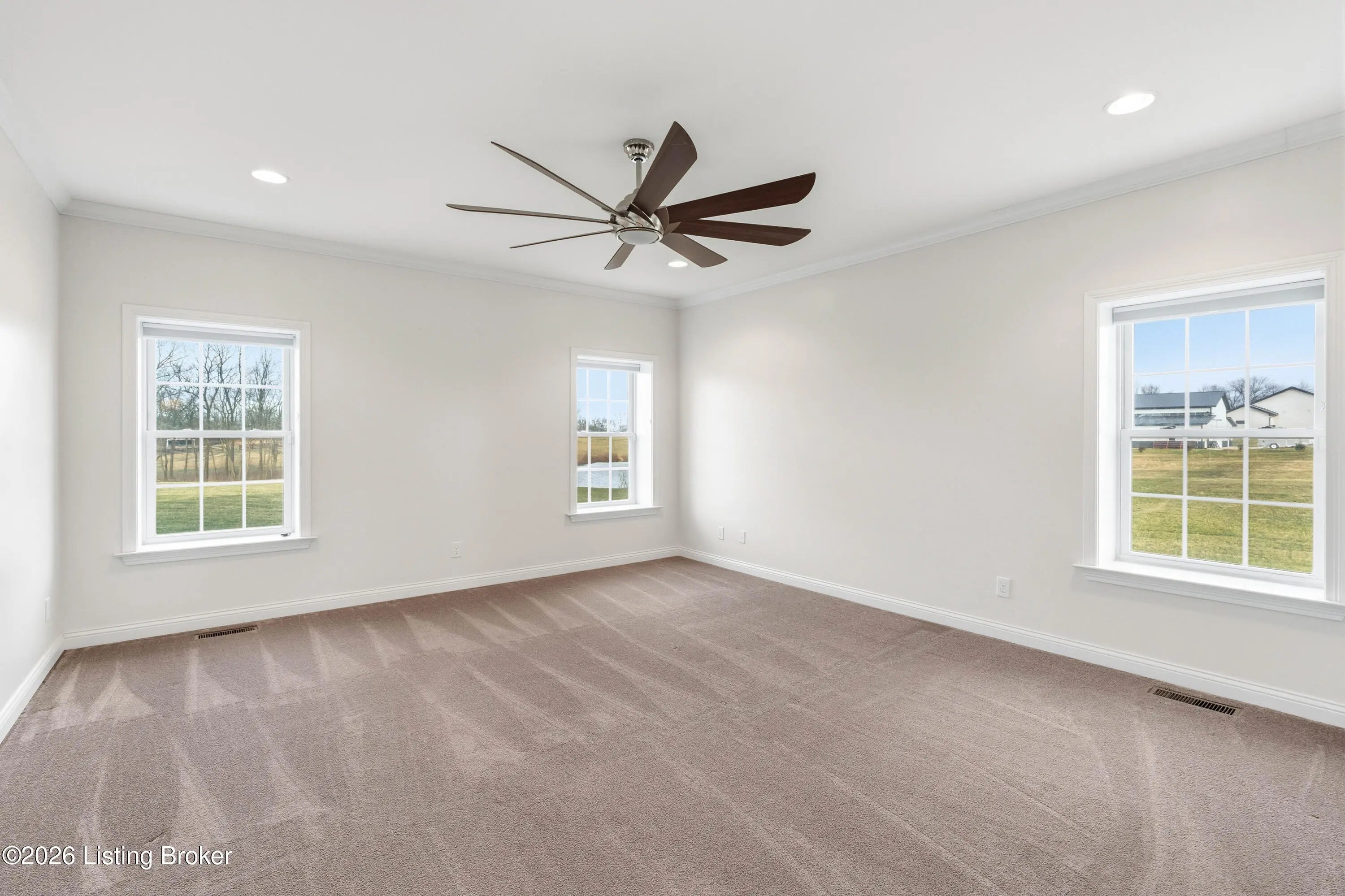 Welcome home to an extraordinary estate where refined living meets the serenity of some of the best land Shelby County has to offer. Spanning over 6,000 square feet of living space, this remarkable residence offers lifestyle very few properties can match - a grand design both inside and out worthy of a magazine spread. Situated down a long country driveway and nestled close to your own fishing pond, this home is truly special. You're welcome by the covered front porch that looks out over several acres of front yard space. From the entryway, the formal dining room is to the left which leads into the chef's kitchen. An abundance of cabinets and counter space, the wall oven and microwave plus a gas cooktop makes this kitchen a dream. There is even plenty of space for a breakfast table as well. The kitchen opens up to the family living room adorned with a wall of windows to capture the pond at sunset plus a wood burning stove to keep the whole space cozy. The main level offers a split floor plan with the primary bedroom suite and office or bedroom on one side of the family room and 2 additional bedrooms, bathrooms and big laundry room on the other side. The primary bedroom has a wonderful walk in closet, its own personal door to the covered back patio and lavish bathroom equipped with instant hot water, thanks to a water heater upgrade. Upstairs is a newly finished gigantic loft that has brand new carpet, many storage closets and even plumbed for a private bathroom upstairs - making this an option for a really cool teenager suite or huge game room. But even more fun space continues in the finished basement. Also newly finished, the basement has over 1100 square space that could be an incredible entertainment zone. This home was completely painted both inside and out just 5 years ago. Not many homes can be described as strong as this one. The foundation and exterior walls are over a foot thick and double insulated with foam panels. Additional extras include a whole house water filter system, a reinforced safe room in the basement complete with its own vault door and a brand new roof in 2025. But wait, there's more. The list of amenities continue outdoors. A new 3 bay garage was added in 2021, plus there is a second outbuilding that will hold your farm and lawn equipment to maintain your 14+/- acres of land. (The actual number of acres is approximate until the final survey is delivered very soon) Come take a look at this gorgeous home so you can spend spring and summer taking in all of its beauty.