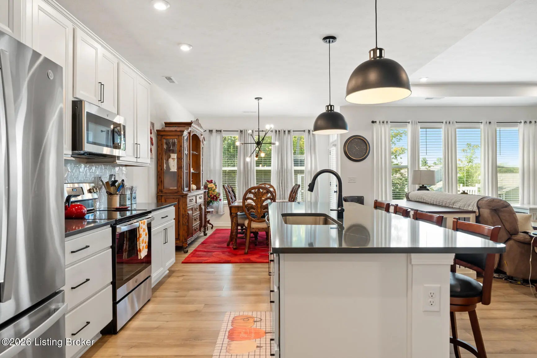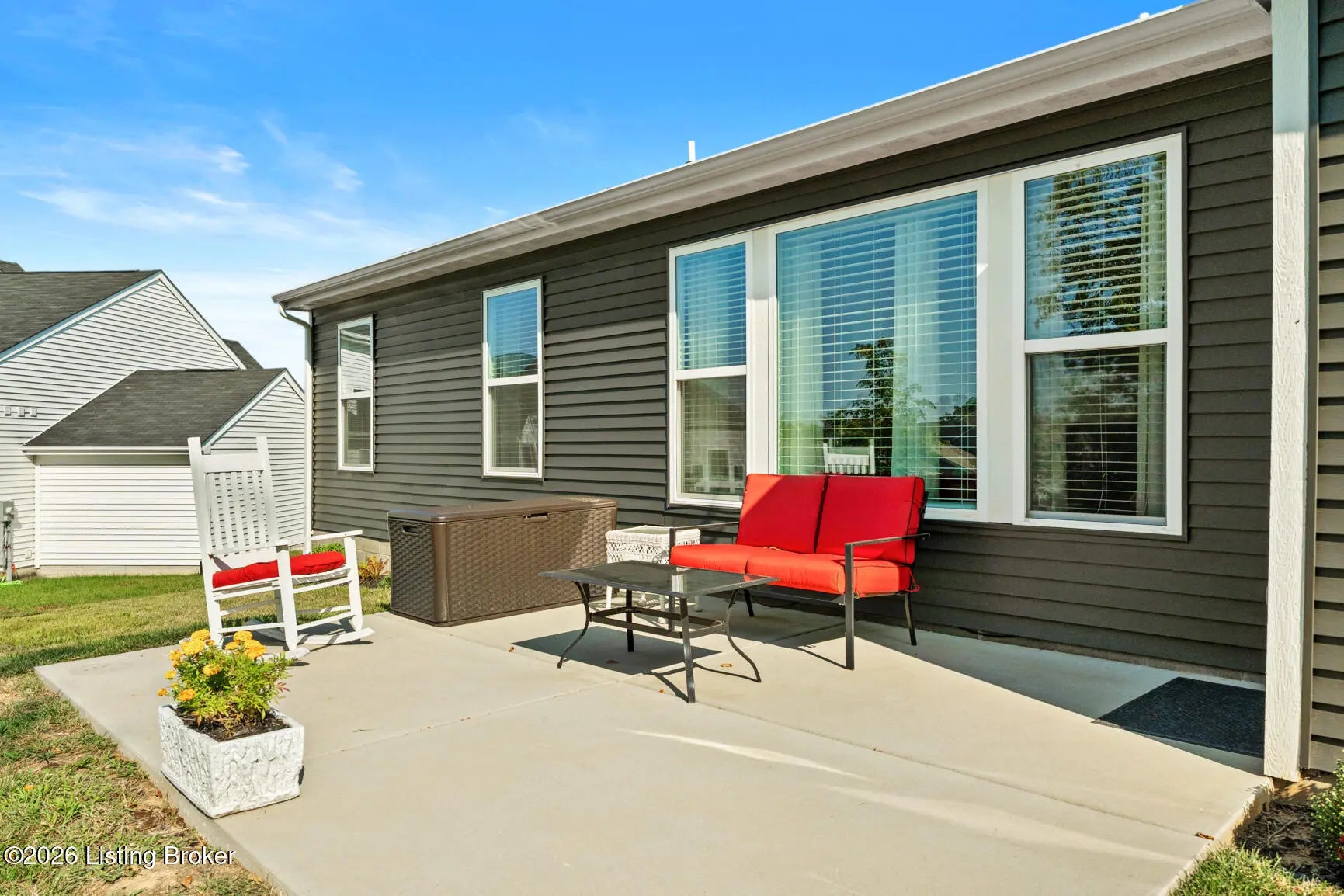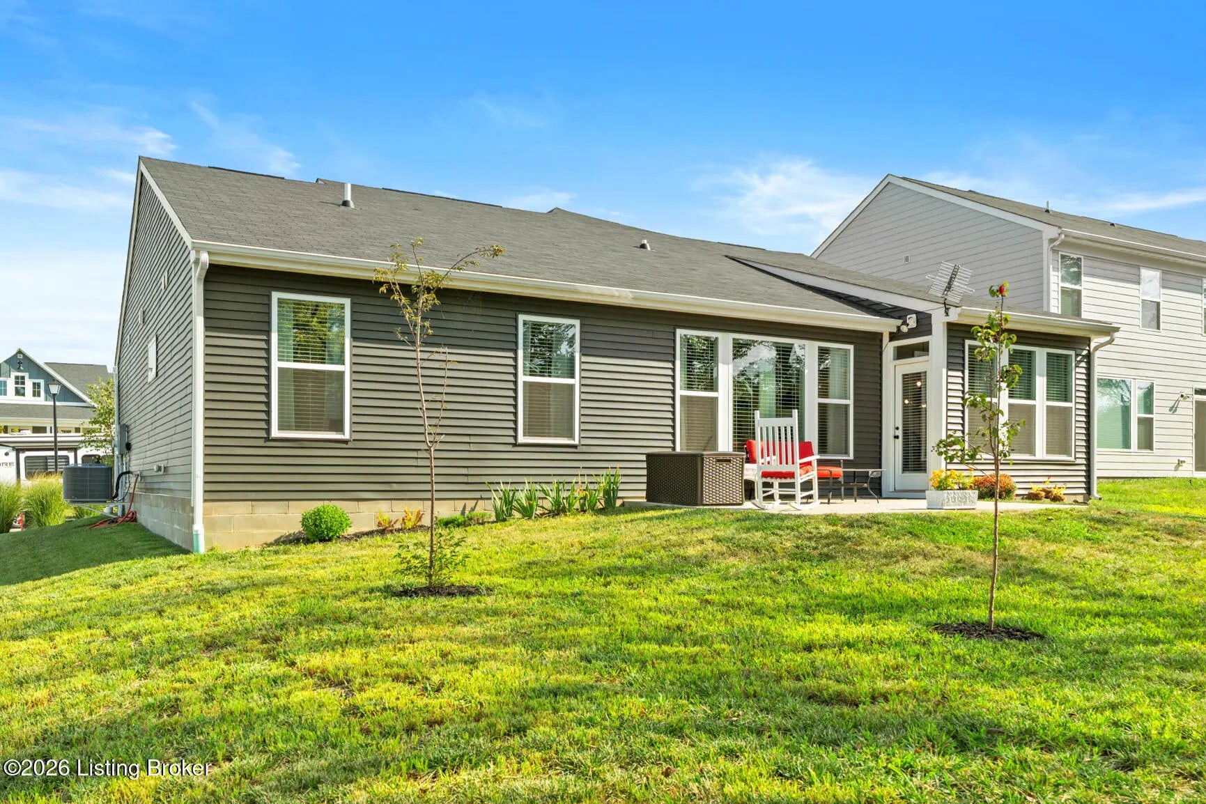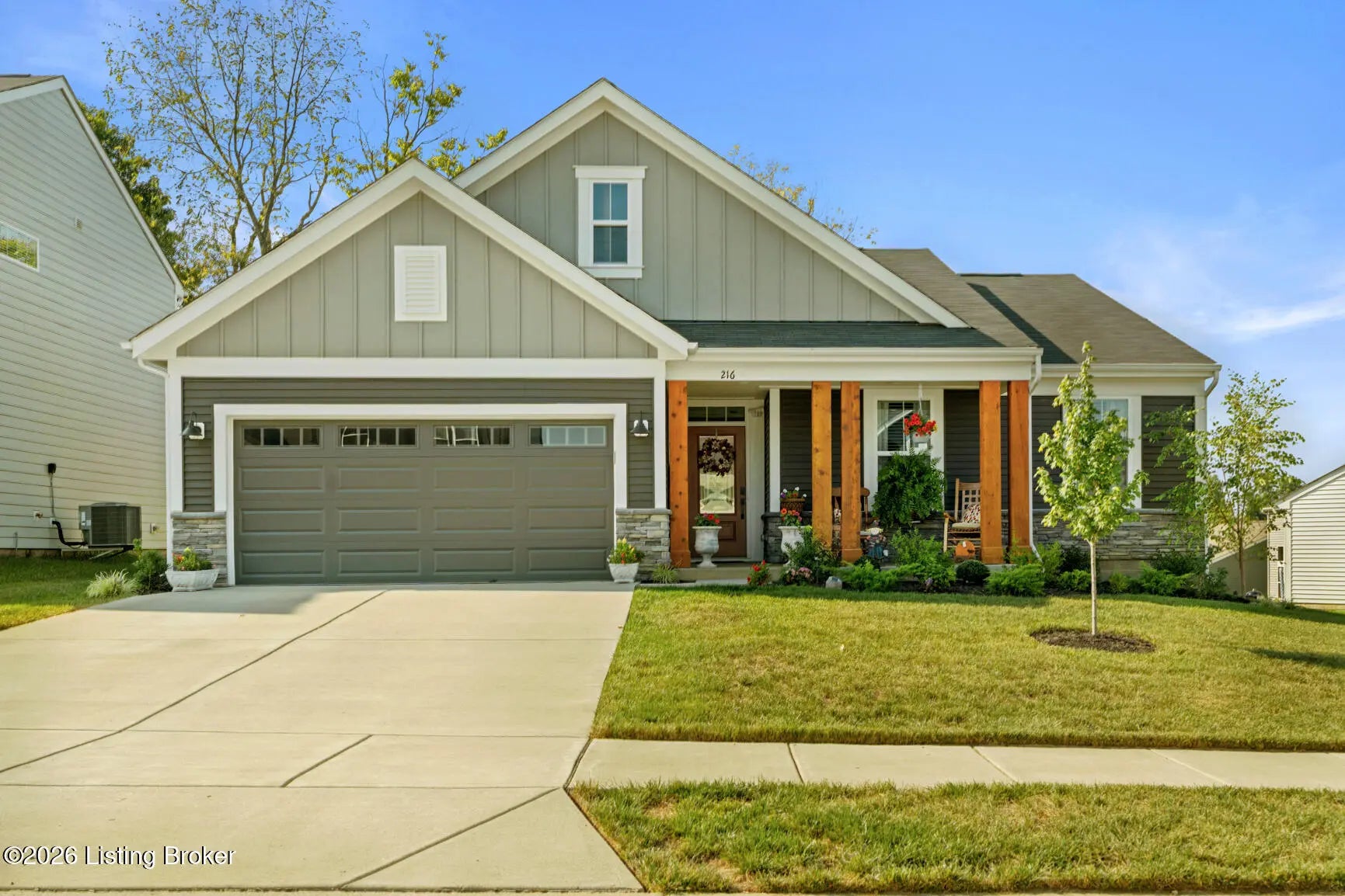 Step onto the covered front porch of this beautifully maintained modern farmhouse in the sought-after Discovery Point community and you'll feel at home right away. Inside, the single-level layout offers easy, comfortable living, with 9-foot ceilings throughout creating an open, light-filled feel. The heart of the home is the kitchen, featuring stainless steel appliances, quartz countertops, 42'' soft-close maple cabinets, a walk-in pantry, and a generous island that naturally draws people together. The kitchen opens into an expanded morning room and then flows into a spacious family room, creating a layout that works well for both everyday living and entertaining. Out back, the tree-lined yard provides privacy and a calm setting for morning coffee or unwinding in the evening. The owner's suite feels like a true retreat, complete with a soaking tub, separate shower, double vanity, and a large walk-in closet. Two additional bedrooms and a full hall bath offer flexibility for guests, family, or a home office. Owner added a backyard shed, built to match the farmhouse style, adds practical storage while keeping the look cohesive. With a two-car garage, thoughtful upgrades, and a move-in-ready ranch floor plan, this home offers strong value compared to nearby new construction. Financial bonus: this home qualifies for an assumable loan at a rare 4.875% fixed rate. Schedule your private showing today.