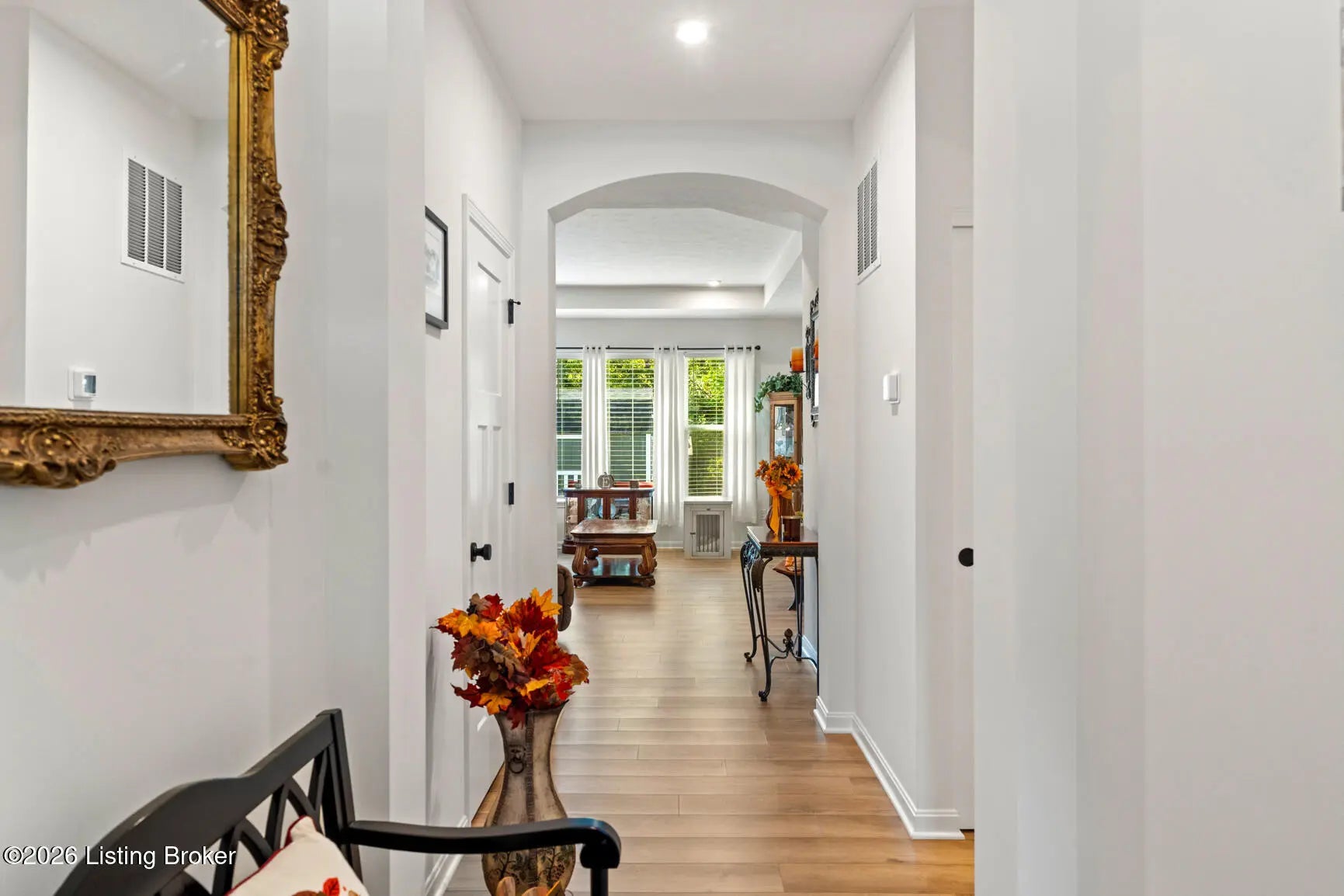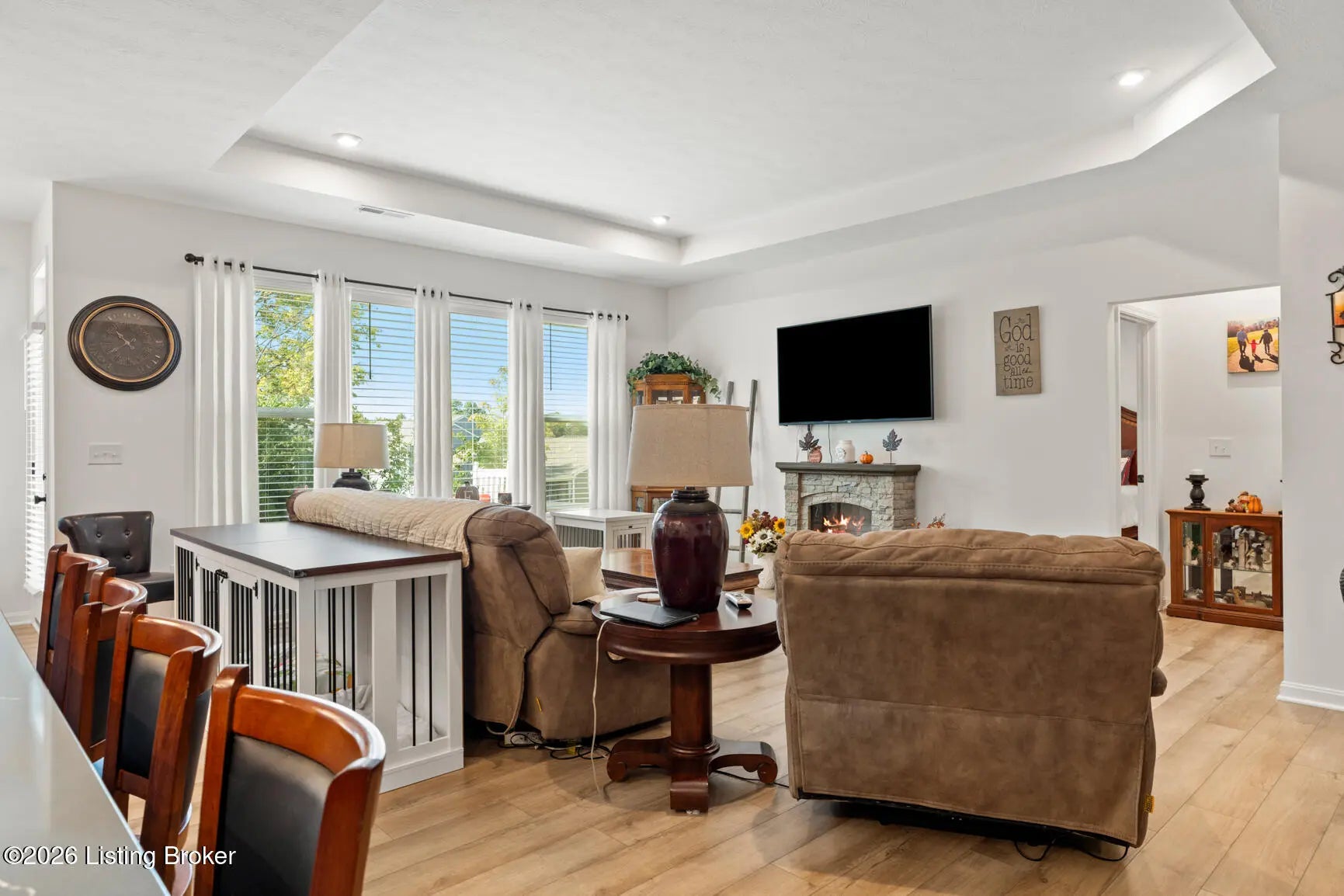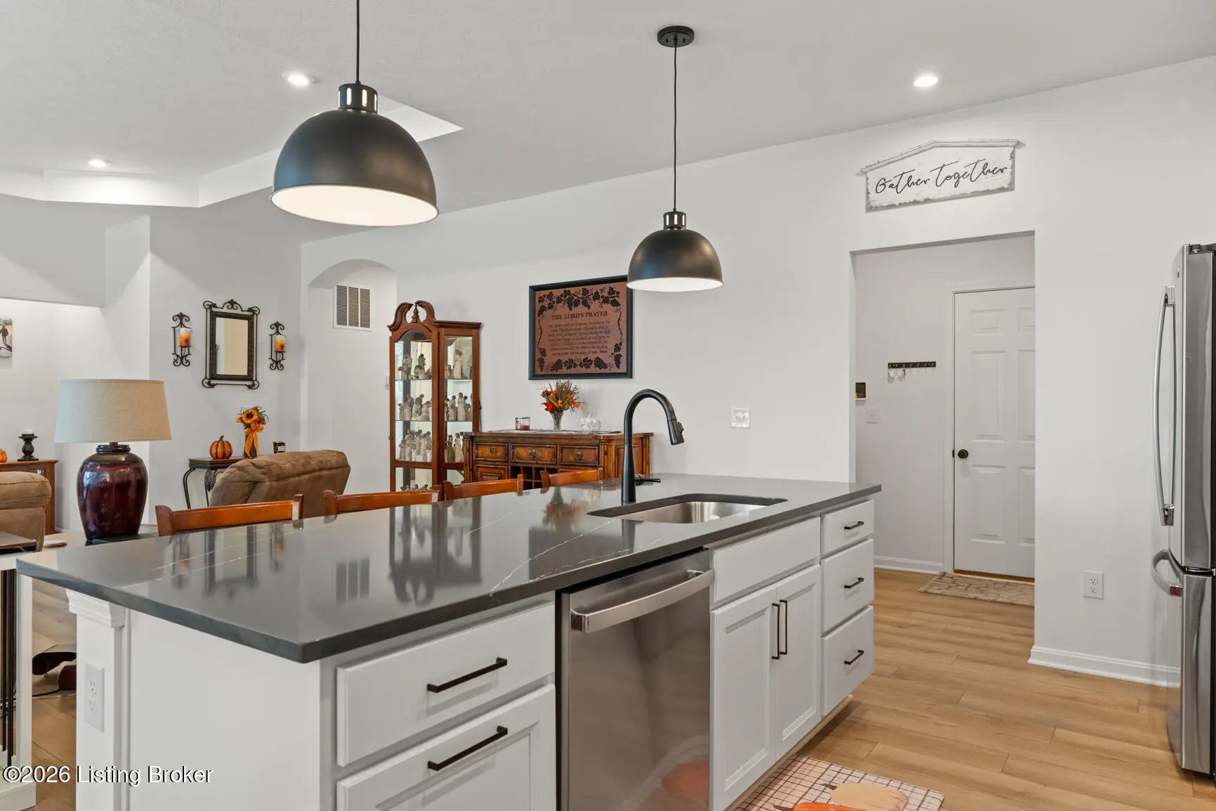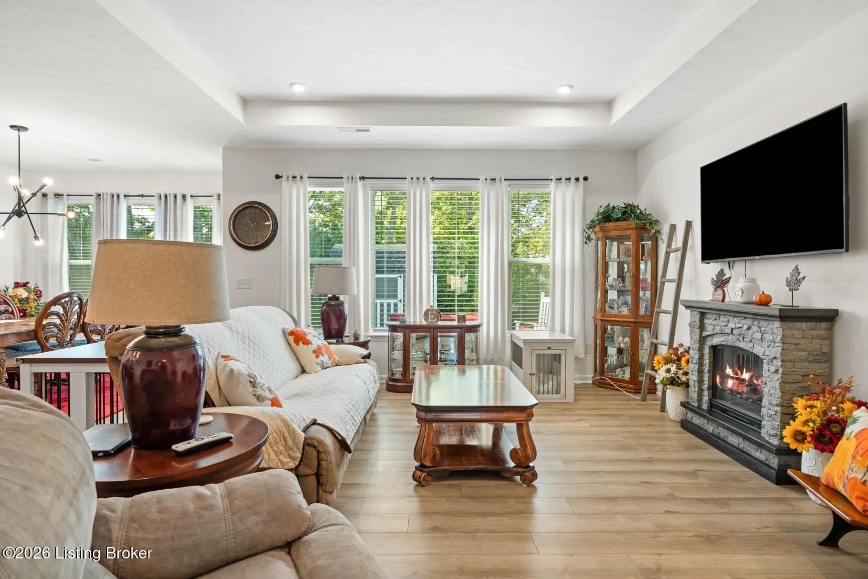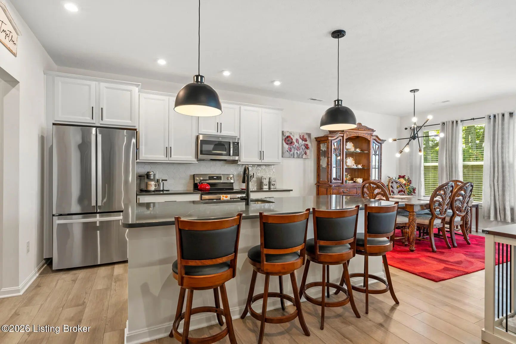Step onto the covered front porch of this beautifully maintained modern farmhouse in the sought-after Discovery Point community and you'll feel at home right away. Inside, the single-level layout offers easy, comfortable living, with 9-foot ceilings throughout creating an open, light-filled feel. The heart of the home is the kitchen, featuring stainless steel appliances, quartz countertops, 42'' soft-close maple cabinets, a walk-in pantry, and a generous island that naturally draws people together. The kitchen opens into an expanded morning room and then flows into a spacious family room, creating a layout that works well for both everyday living and entertaining. Out back, the tree-lined yard provides privacy and a calm setting for morning coffee or unwinding in the evening. The owner's suite feels like a true retreat, complete with a soaking tub, separate shower, double vanity, and a large walk-in closet. Two additional bedrooms and a full hall bath offer flexibility for guests, family, or a home office. Owner added a backyard shed, built to match the farmhouse style, adds practical storage while keeping the look cohesive. With a two-car garage, thoughtful upgrades, and a move-in-ready ranch floor plan, this home offers strong value compared to nearby new construction. Financial bonus: this home qualifies for an assumable loan at a rare 4.875% fixed rate. Schedule your private showing today.