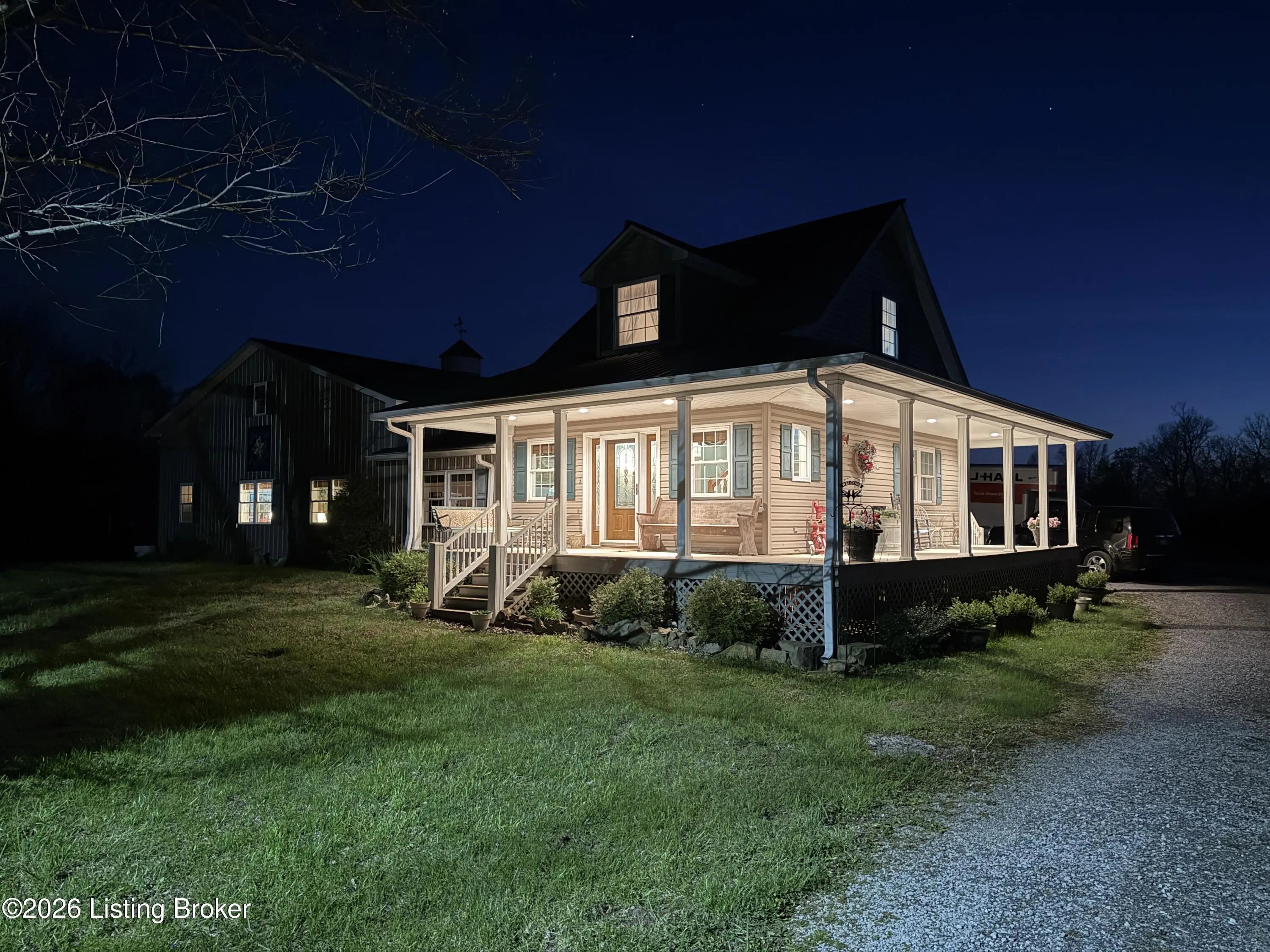Whether you envision outdoor adventures, hunting, farming, livestock, or simply enjoying the privacy and tranquility of country living, this property delivers. Sit on its wraparound porch and enjoy the magnificent views of the large pond and acreage that surrounds you. In addition to the formal living and dining rooms, there is a ''sunroom'' den and an open floor plan with kitchen, family room, and dining area. Two of the bedrooms, both bathrooms and laundry are conveniently located on the first floor. The upstairs includes another bedroom and plenty of storage space. The finished partial basement has additional storage closets plus a storm shelter room. The garage is a gear head's dream with room for up to 6+ vehicles and is attached to a breezeway and large workshop area. Outside, there's plenty of room to expand, build additional structures, or simply enjoy the views and quiet surroundings. The land - which is a blend of tillable acres, marketable timber, and two more ponds - sits on Crooked Creek Church Road. Located less than two miles from downtown Marion and six miles from the Cave-in-Rock ferry, this property is the original site of the Cross Keys Inn, where the first county court was held in 1842. Rural serenity with room to growproperties like this don't come along often. Call today for your private showing!