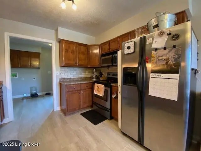 Let's go take al look at this great three bedroom three bath brick ranch style home with finished walkout basement & two car attached garage. Home offers a spacious Living Room with hardwood. Eat in Kitchen with stainless appliances , tile backsplash & new vinyl plank flooring. Dual Laundry both upstairs and in the basement is a wonderful feature. Primary Bedroom & bath offer new vinyl plank flooring. Two additional bedrooms also with new flooring & full Hall Bath complete the main level of the home. Venture downstairs to enjoy the Den, perfect for family movie night, entertaining or an awesome man cave. Ventless gas log fireplace gives it the cozy feel. Large storage room provides additional space for storage. Venture outdoors to enjoy the nice patio that overlooks the spacious back yard where you can kick back & relax after a long day. All conveniently located near all the amenities of Historic Bardstown. Let's make this your New Kentucky home! Give us a call today for your private tour!!