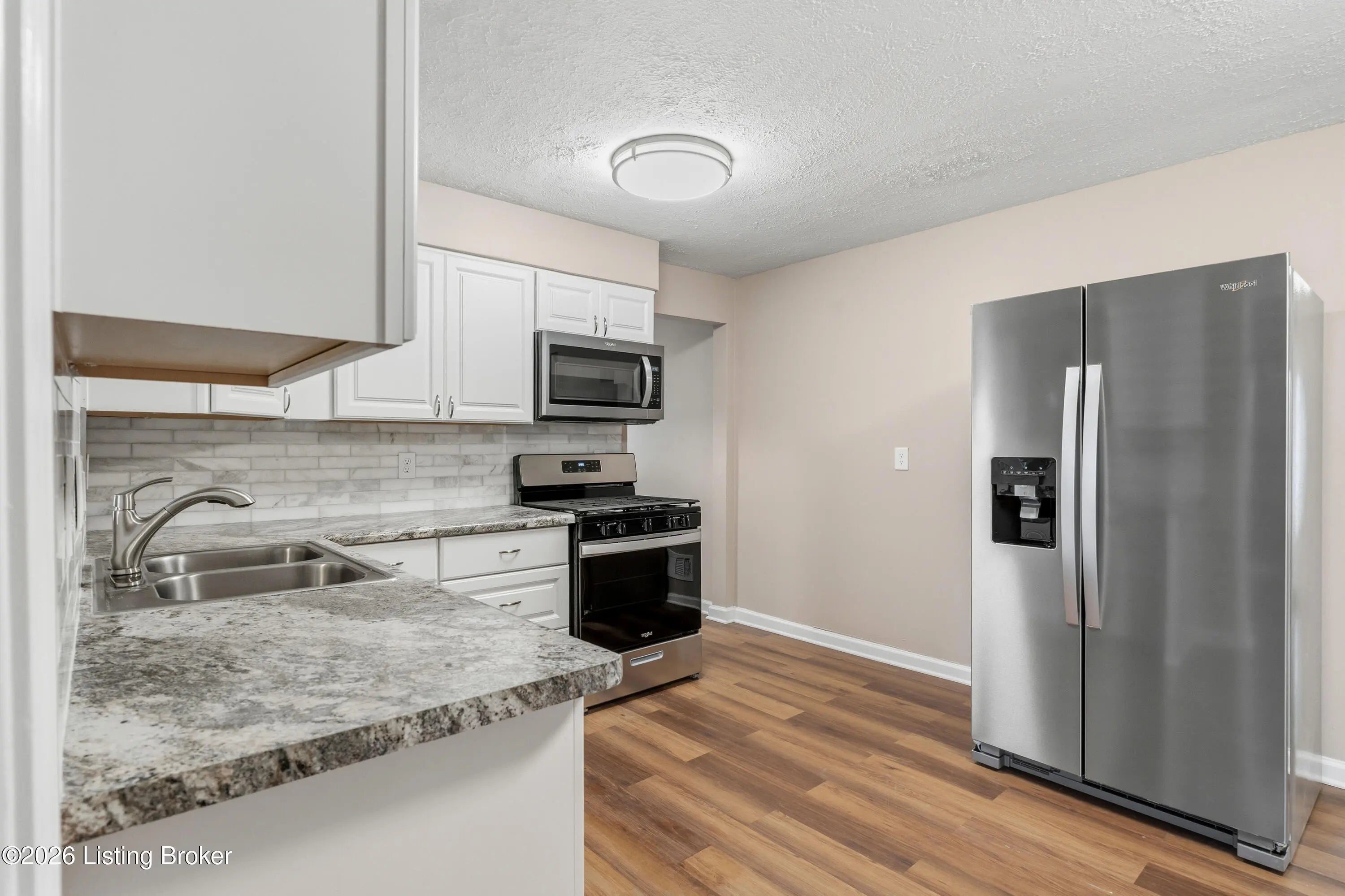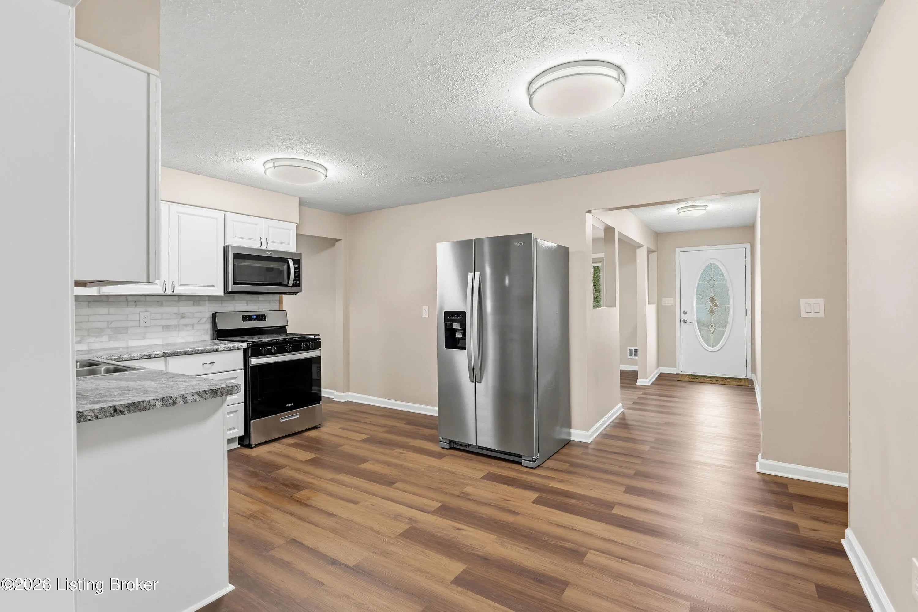 This extensively renovated home offers over 1,400 square feet of thoughtfully updated living space, blending modern style with major mechanical upgrades for lasting peace of mind. Featuring three bedrooms, one full bathroom and two spacious living areas. This layout provides both flexibility and comfort. Outside features an 18'x28' detached garage, plenty of additional parking and a spacious yard. Inside you'll find brand-new luxury waterproof vinyl plank flooring throughout and a completely updated kitchen showcasing new cabinetry, a timeless Carrera marble backsplash, and stainless steel appliance suite. A gas range and built-in microwave enhance both function and design. The bathroom has been fully refreshed with a new tub/shower combination and vanity. Major improvements include a new HVAC system with all-new ductwork, a new 100-amp electrical service with a new panel and new 50 gallon gas water heater. The crawl space has been professionally encapsulated for improved efficiency and durability. Additional interior upgrades include all-new door hardware, new closet doors, new plugs, switches, lighting, and new hardwired smoke detectors throughout. A wood-burning stove adds charm and warmth to the main living area. Exterior enhancements include new decks, new storm doors, a new garage roof and newly installed partial privacy fence. Located within close proximity to expressways and retail, this truly move-in-ready home offers exceptional value and quality craftsmanship throughout.