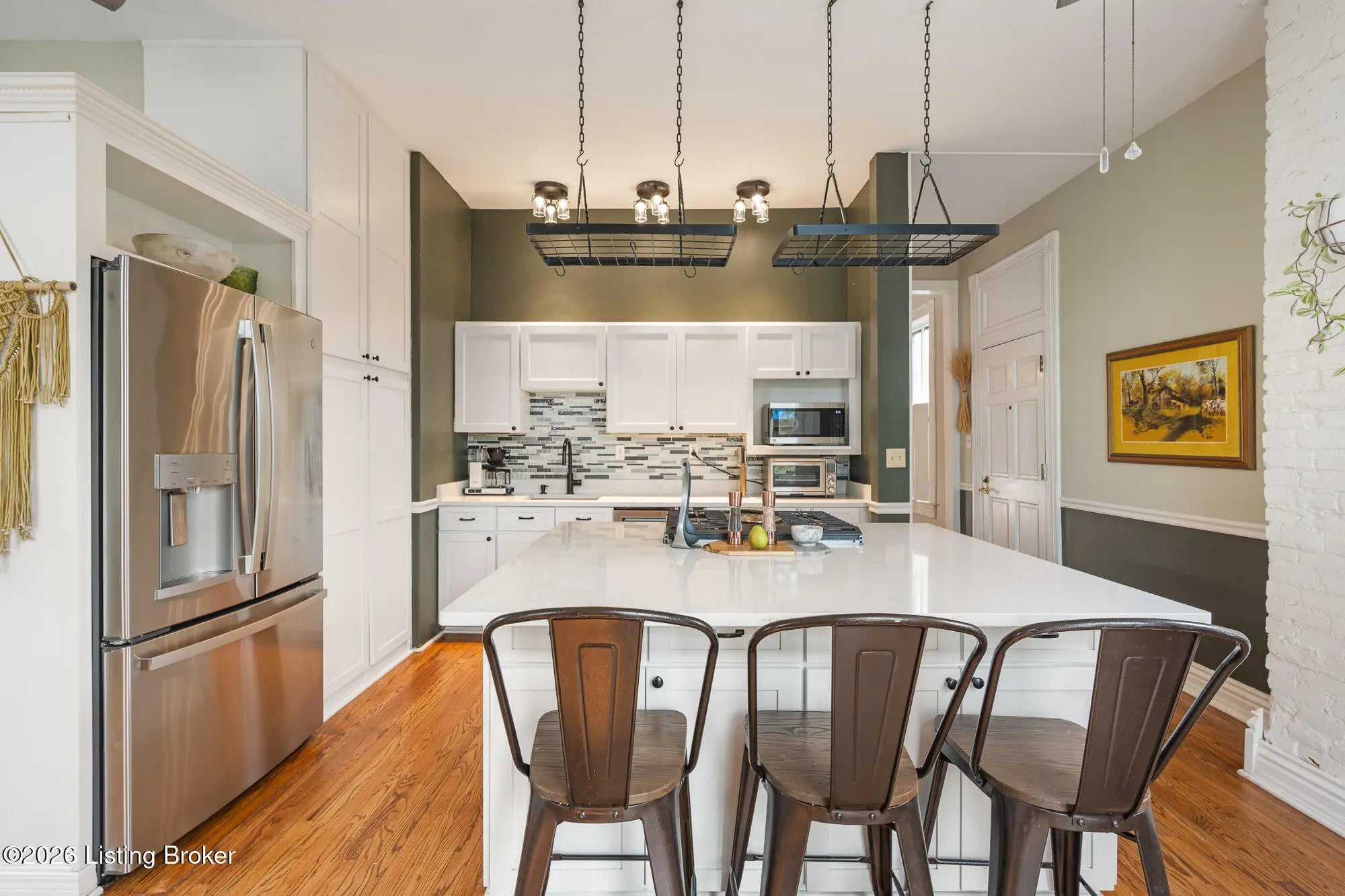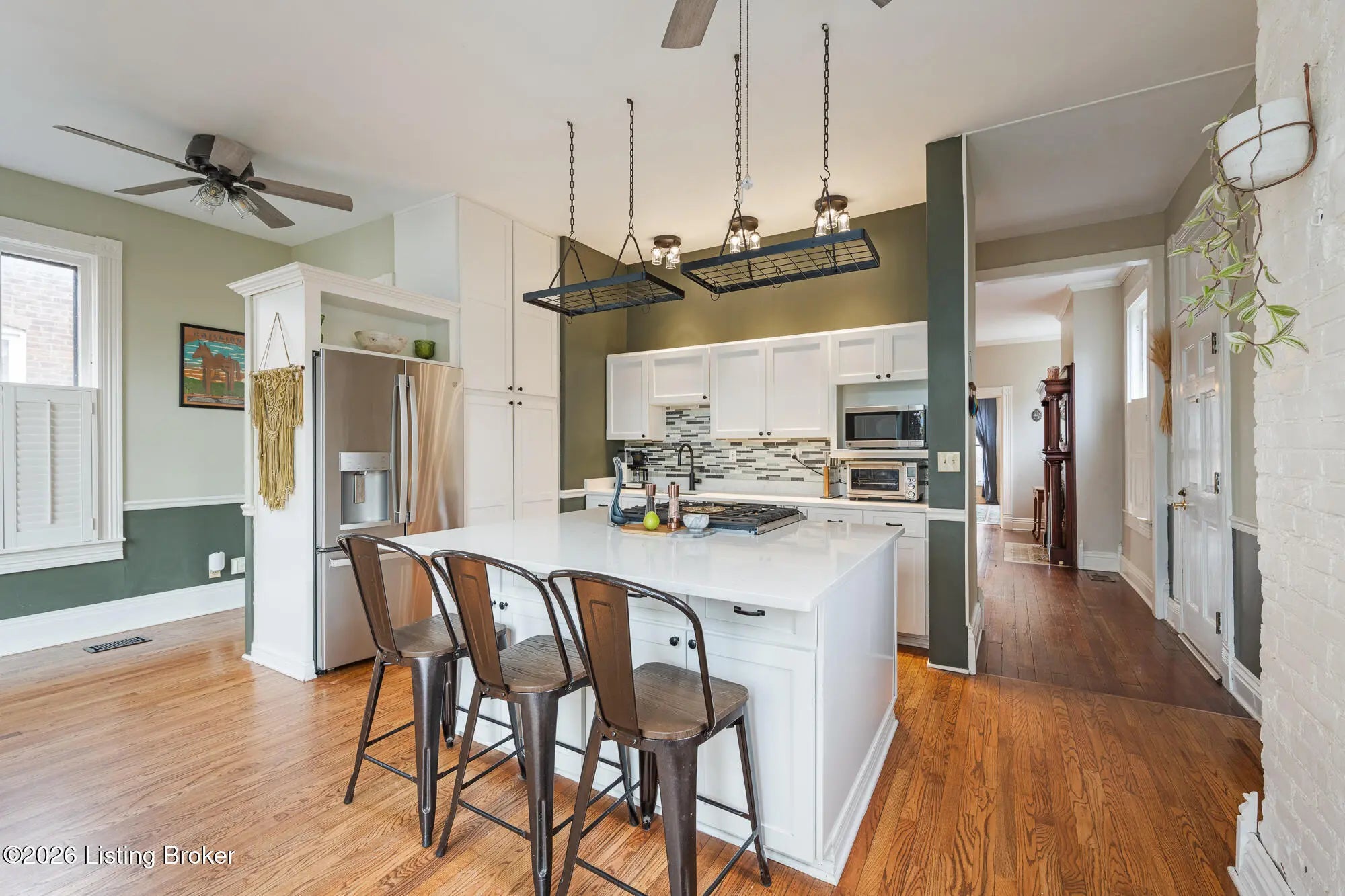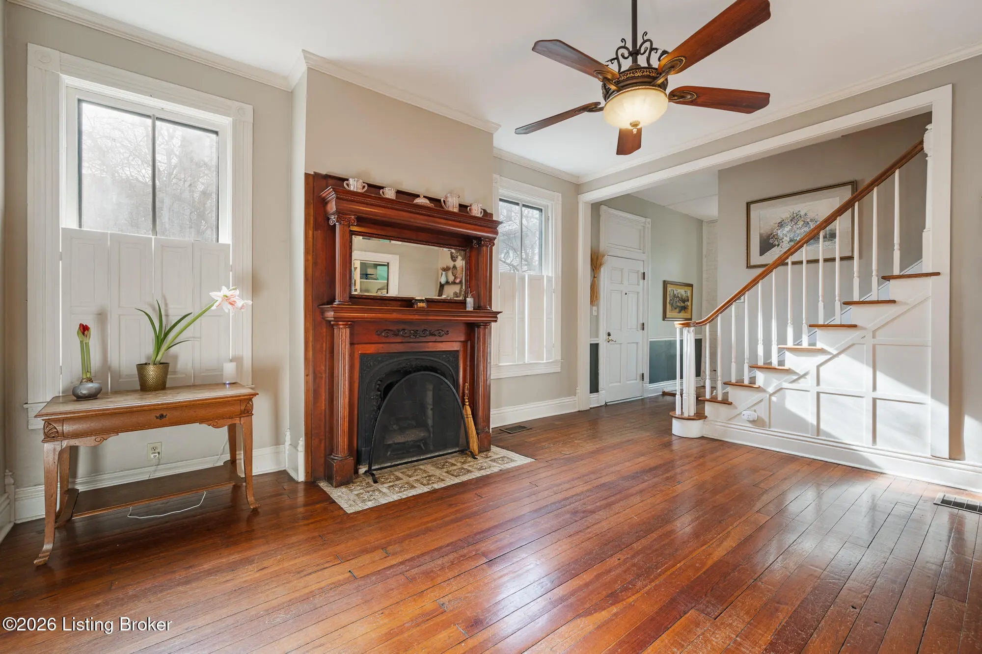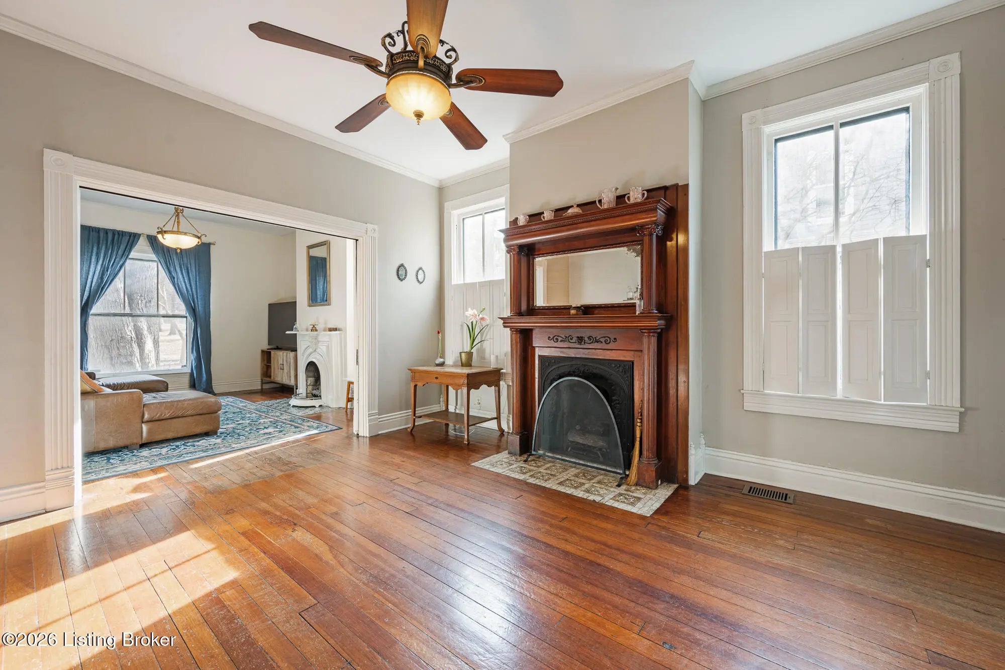 Historic character with everyday livability AND large lot! This beautifully maintained Old Louisville home offers spacious living in a convenient location with generous outdoor space. From the moment you arrive, the classic facade and inviting front porch set the tone. Inside, you'll be welcomed with an impressive foyer, warm hardwood floors, tall ceilings, 4 original fireplaces, and gracious room proportions that reflect the craftsmanship of the era (even original pocket doors between foyer/living, and living/dining!). The kitchen is a great space with an amazing view of the backyard and side yard, creating an ideal setting for entertaining. Additionally, the walk-in pantry offers ease and convenience for storage. The roomy primary bedroom features large windows, a fireplace and full bathroom. Other upstairs bedrooms offer flexibility for guests, home offices, or creative spaces, while multiple bathrooms (one with a clawfoot tub!) add modern convenience rarely found in homes in Old Louisville. The third floor has updated flooring, big closets for lots of storage and a full bathroom. Outside, a full wooden privacy fence encloses the oversized backyard, plus a BIG 2 car garage with extra storage space. Located in the heart of Old Louisville, directly across from Central Park featuring a new playground and splash pad, tennis courts, and amphitheater. Minutes from the University of Louisville and local dining, this is a rare opportunity to own a piece of Louisville history, rich in character, scale, and style. Schedule your private showing today!