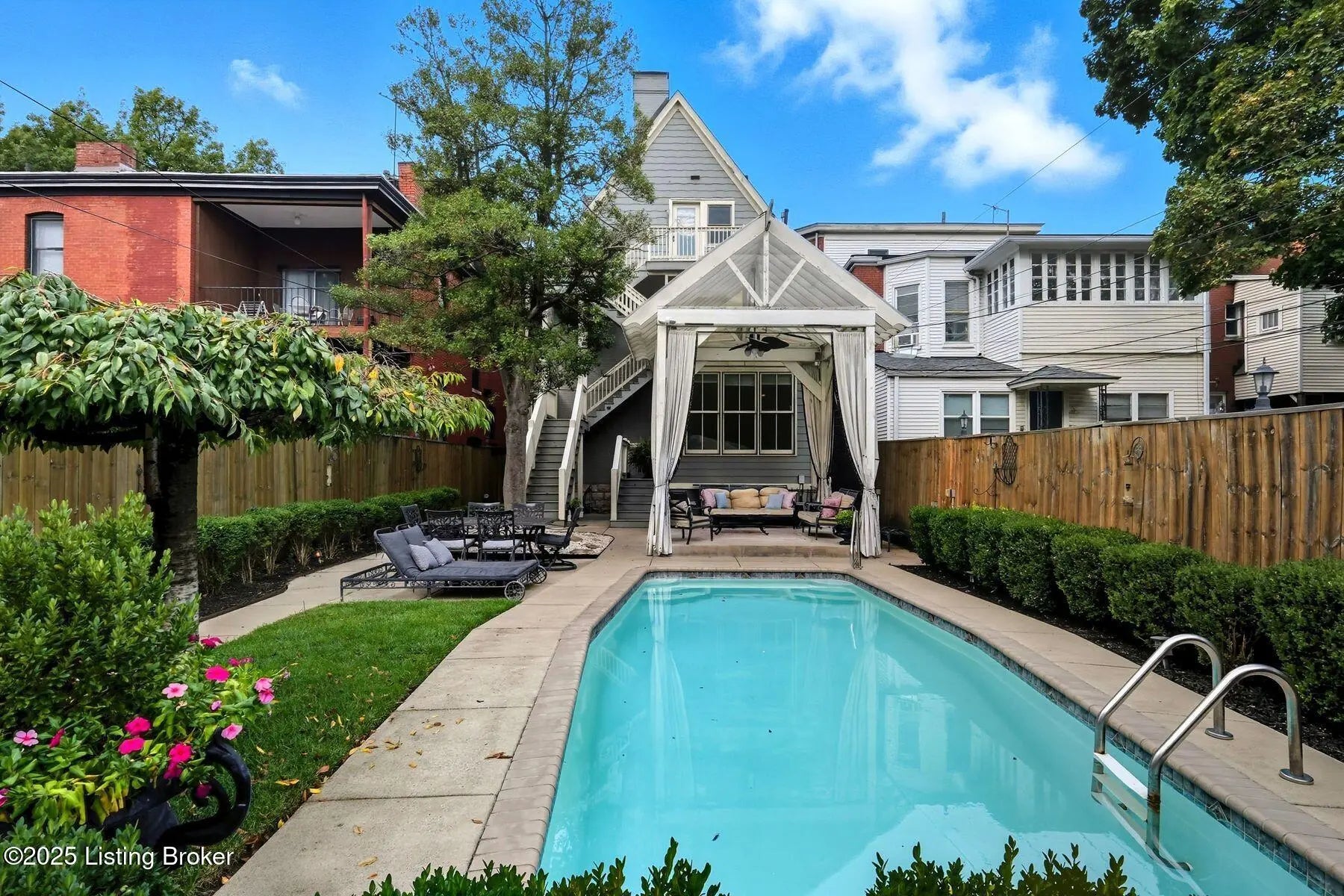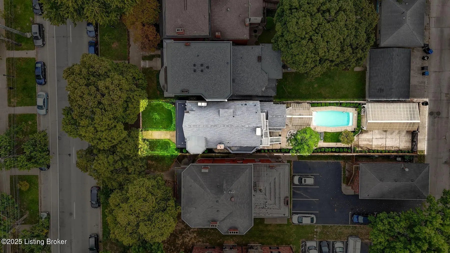 Experience the timeless elegance of this Old Louisville mansion along iconic Millionaires Row. Beautifully restored and meticulously maintained, this residence showcases exquisite craftsmanship from the grand front porch and impressive foyer to the inlaid hardwood floors, soaring ceilings, and intricate millwork complemented by leaded and stained-glass windows. The chef's kitchen features marble countertops, an island, exposed brick, and a seamless connection to the temperature-controlled sunroom overlooking the backyard oasis. Step outside to a private paradise with a heated fiberglass pool, custom pergola, lush landscaping with irrigation, and gated access to a three-car carport. Upstairs, the luxurious primary suite offers a fireplace, spa-worthy bath with double vanities, copper soaking tub, heated floors, and an expansive walk-in closet. The third-floor guest suite includes a full kitchen, living room, laundry, and private bath, perfect for extended stays or multi-generational living. The finished lower level is a rare find in Old Louisville, offering stained concrete floors, a full wet bar, spacious living area, and flexible rooms ideal for a home theater, gym, or studio. Just moments from Central Park, St. James Court, and the neighborhood's celebrated events, this remarkable home blends historic character, thoughtful updates, and unforgettable presence. A true Old Louisville treasure.