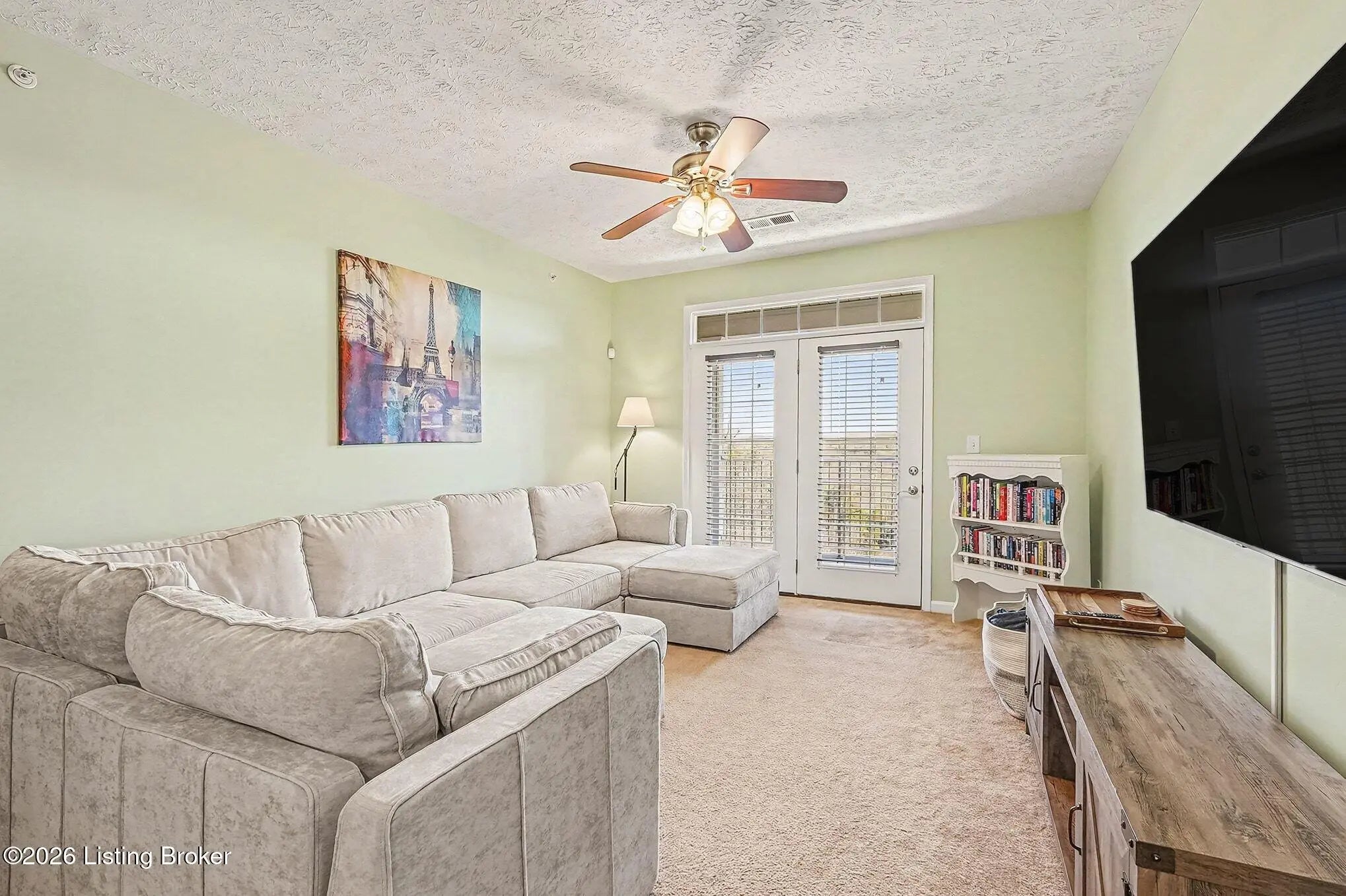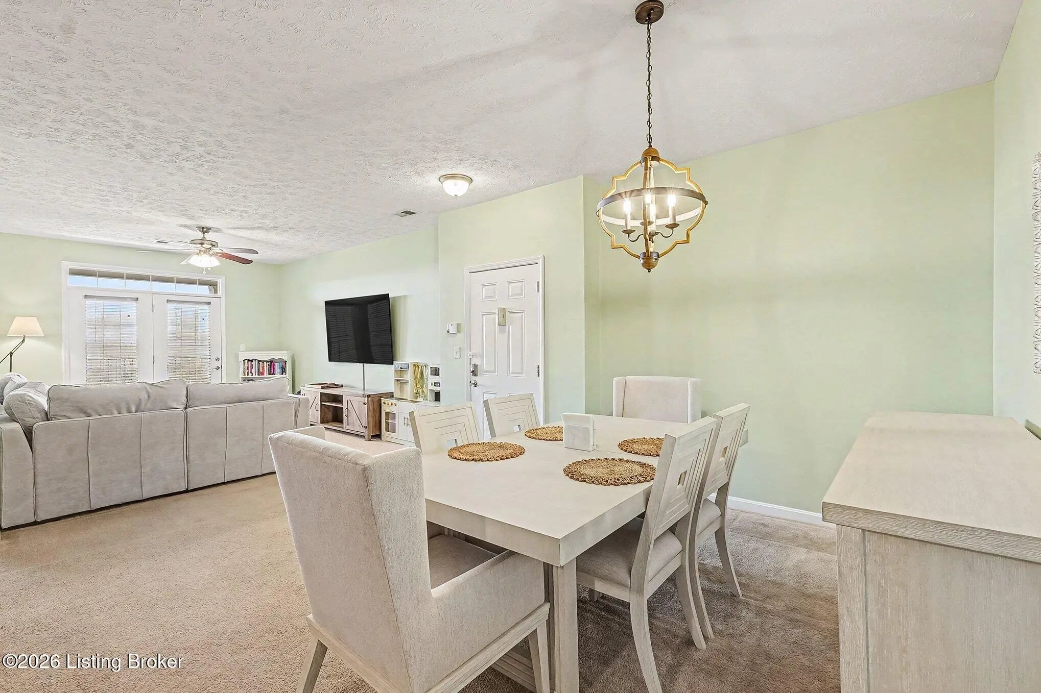 Surrounded by peaceful wooded views, this inviting condo delivers a relaxed, resort-style lifestyle with stylish interior finishes and everyday convenience. The living room features soft green walls, plush carpeting, and a rich mahogany ceiling fan that adds warmth and character. The open layout transitions seamlessly into the dining area and kitchen, where the tile flooring and hardwood cabinetry create a space that feels both functional and refined. The primary suite offers a true retreat with a walk-in closet and a thoughtfully designed bath featuring quartz countertops, a double vanity, tiled shower, and an expansive mirror. Additional rooms bring their own personality through subtle color choices, perfect for guests or home office use. Step onto the private balcony to unwind while overlooking a serene wooded backdrop. Residents enjoy access to an outdoor pool and fitness center, while a lower-level rear-entry garage adds everyday ease. This home blends comfort, privacy, and low-maintenance living in a setting buyers love.
