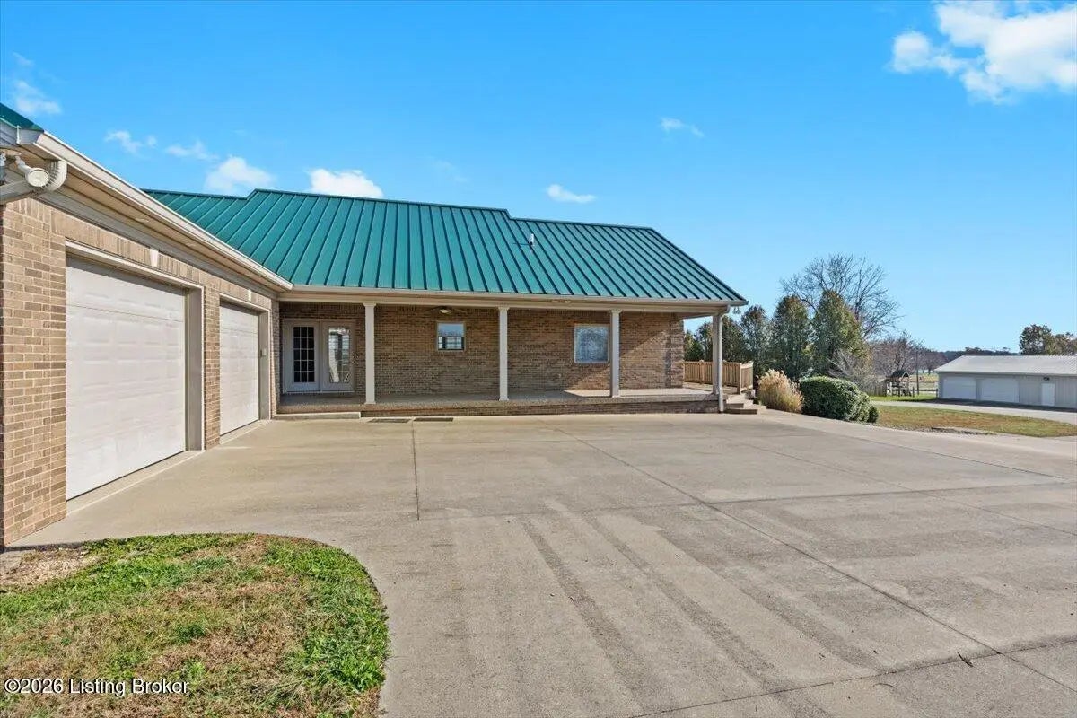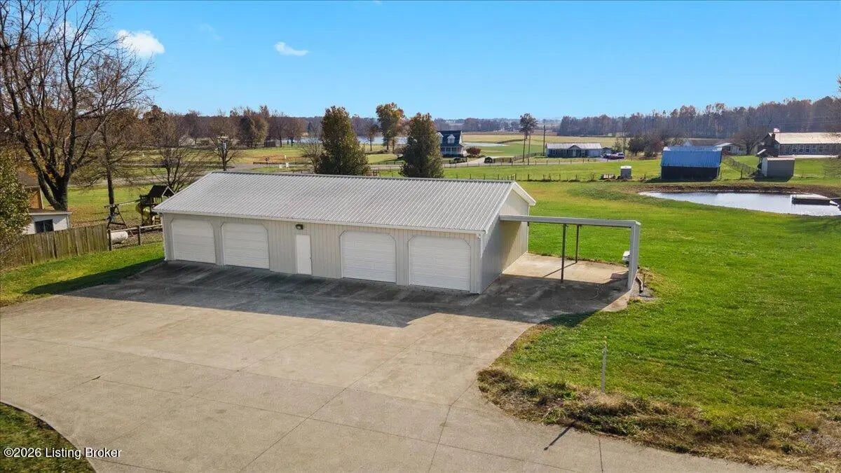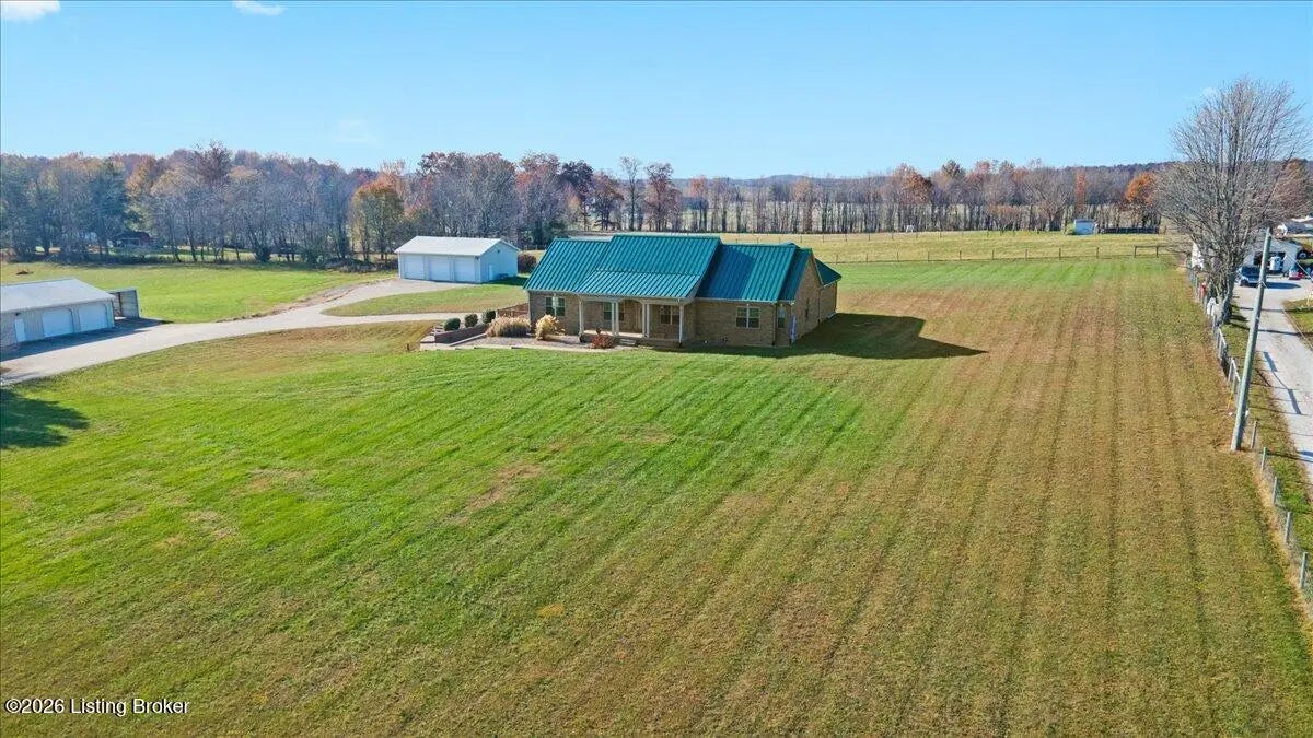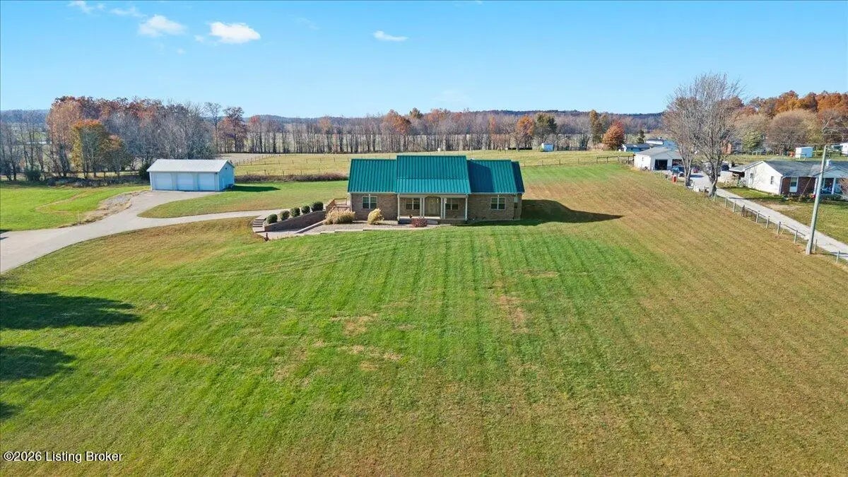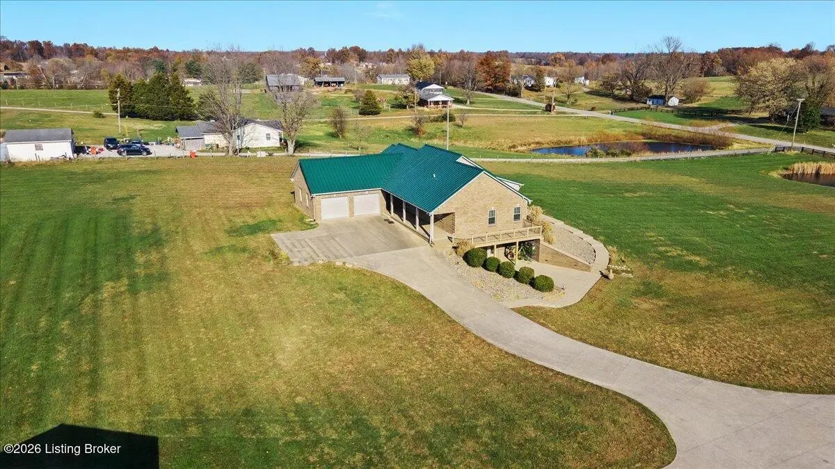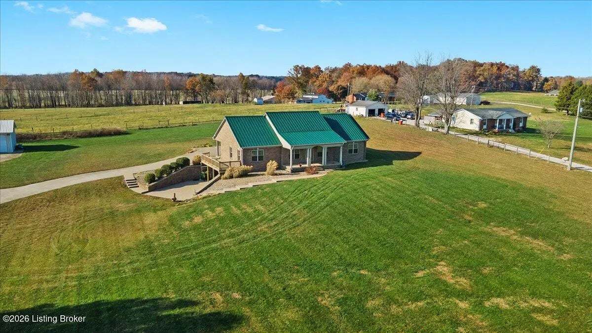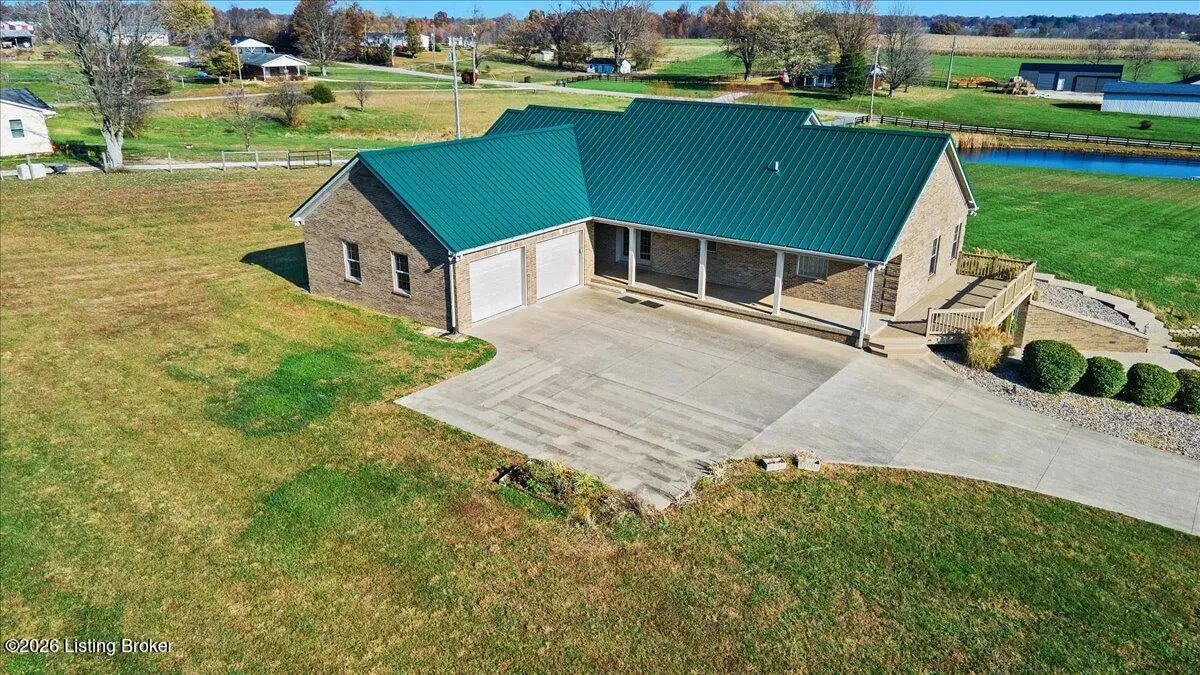 97 Saint John Church Road offers a rare blend of quality construction, energy efficiency, acreage, and exceptional shop space. This custom brick ranch home features over 4,000 square feet of finished living space and sits on 5.5 fully fenced acres with two stocked ponds, a full concrete driveway, and multiple outbuildings, ideal for buyers seeking privacy, land, and functionality. Built in 2007 with 2x6 exterior walls, the home was designed for long-term durability and efficiency. Major features include geothermal heating, a 3-zone HVAC system, tankless water heater, and a wired security system, making this property both cost-efficient and built to last. The open-concept main level spans 2,068 square feet and is designed for everyday living and entertaining. The kitchen anchors the space with real hardwood flooring, solid white oak cabinetry, granite countertops, stainless steel appliances, a large center island with bar seating, double ovens, flat-top cooktop, vented hood, and a walk-in pantry. The kitchen flows seamlessly into the spacious living area, creating a warm and functional layout. The main level includes three bedrooms and two full bathrooms, along with a tiled laundry room. The primary suite offers a tray ceiling, oversized walk-in closet, double vanity, jetted soaking tub, and walk-in tile shower. Secondary bedrooms provide flexible space for family, guests, or a home office. The fully finished walkout basement expands the home's versatility with a large recreation and entertainment area, bar, built-in surround sound, bonus room ideal for a gym, office, or theater, and a third full bathroom. Two oversized unfinished storage rooms offer exceptional utility, including one secured with a fireproof safe door and combination lock. Double patio doors open to a spacious concrete patio, enhancing indoor-outdoor living. Outdoor features include a metal roof, covered front porch, covered back patio, and an attached two-car garage. For those needing serious workspace, the property includes two insulated detached shop buildings with concrete floors, electric, and water: 40x30 three-bay shop - insulated and heated with a wood-burning stove 30x60 four-bay shop - equipped with a 240V welding plug, ideal for fabrication, mechanics, or heavy equipment With fenced acreage, ponds, multiple garages, and unmatched shop capability, this property is perfectly suited for hobbyists, business owners, or anyone needing space to work, store, or expand. Conveniently located within 5-20 minutes of Elizabethtown, Fort Knox, Rineyville, and Radcliff, this home delivers rural privacy without sacrificing accessibility. A truly move-in-ready home with acreage, energy-efficient systems, and high-demand shop features, a rare opportunity in today's market.