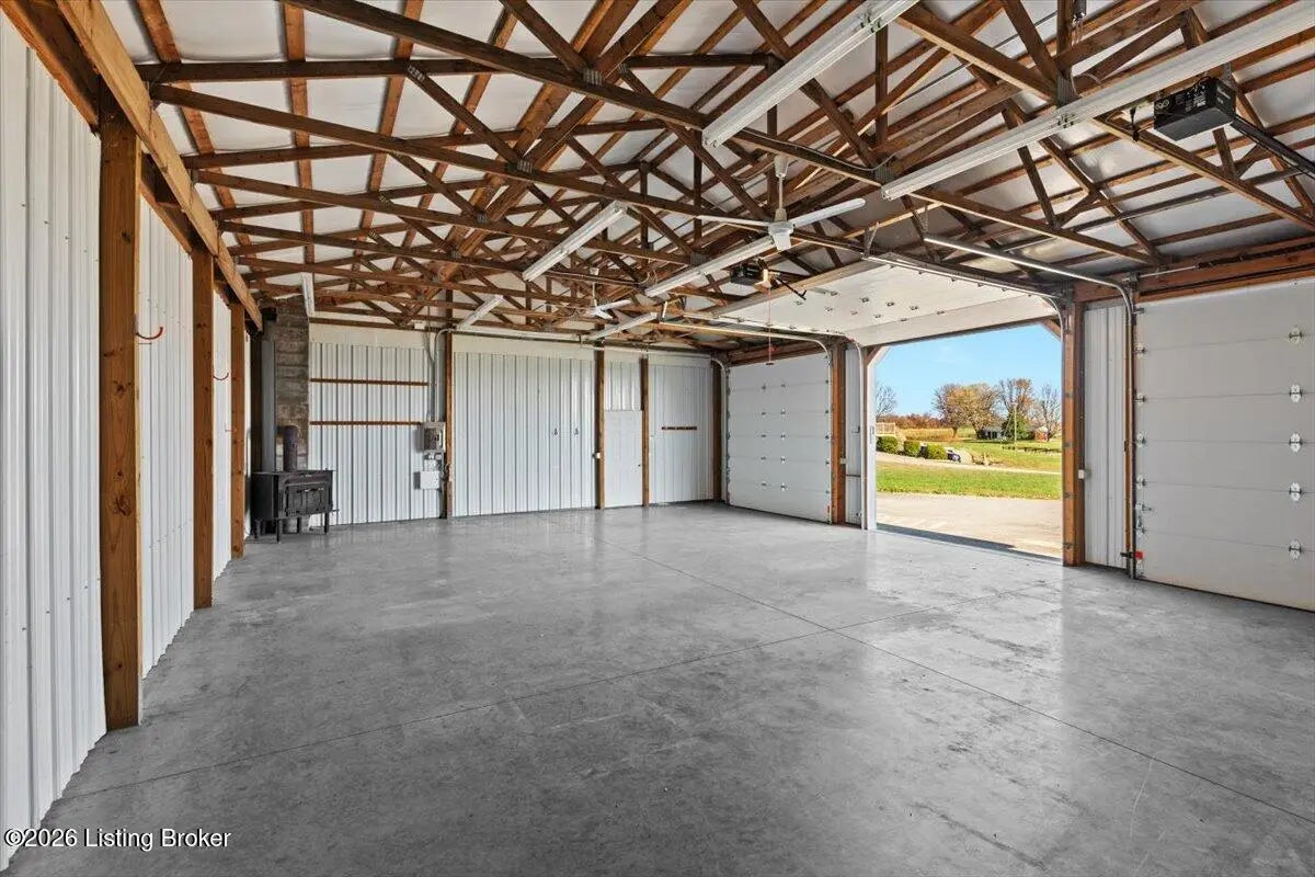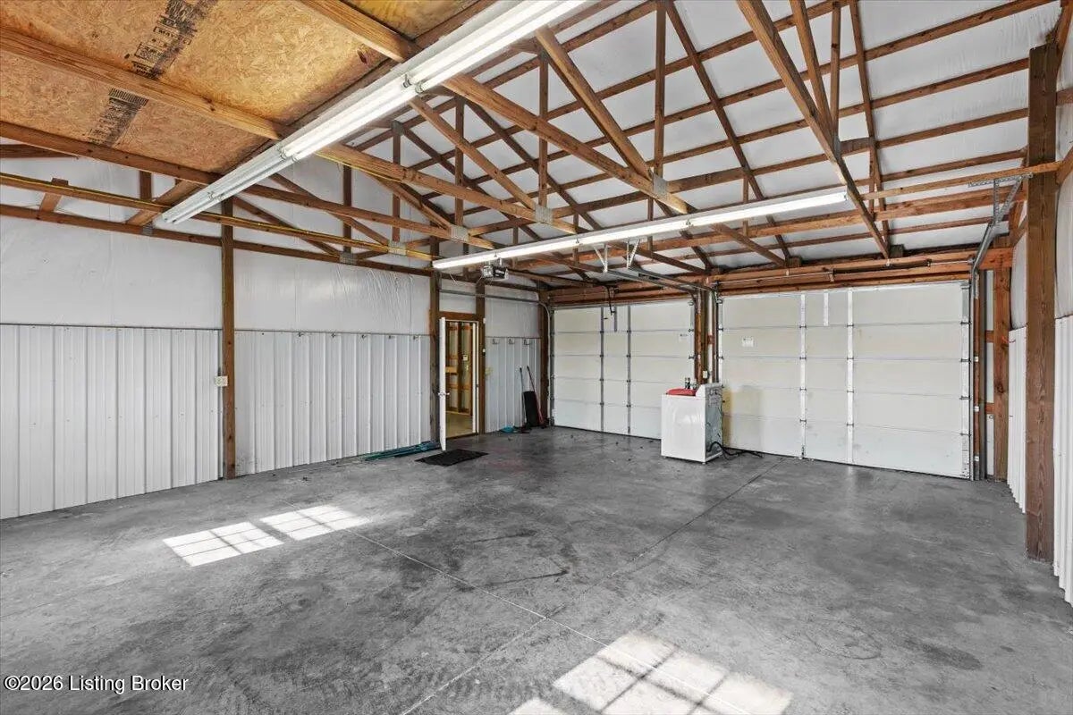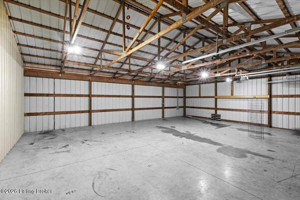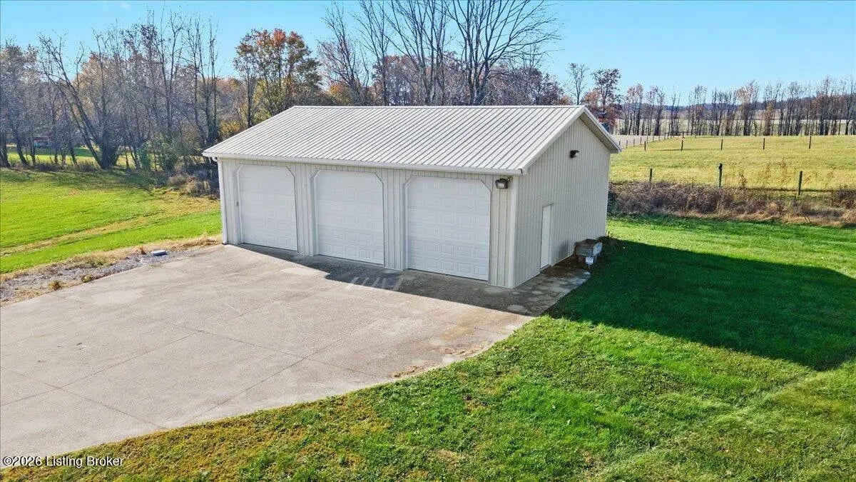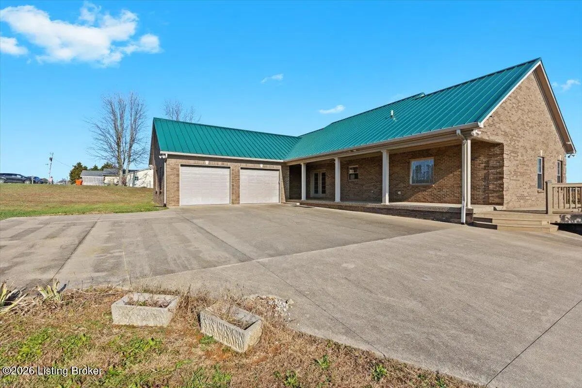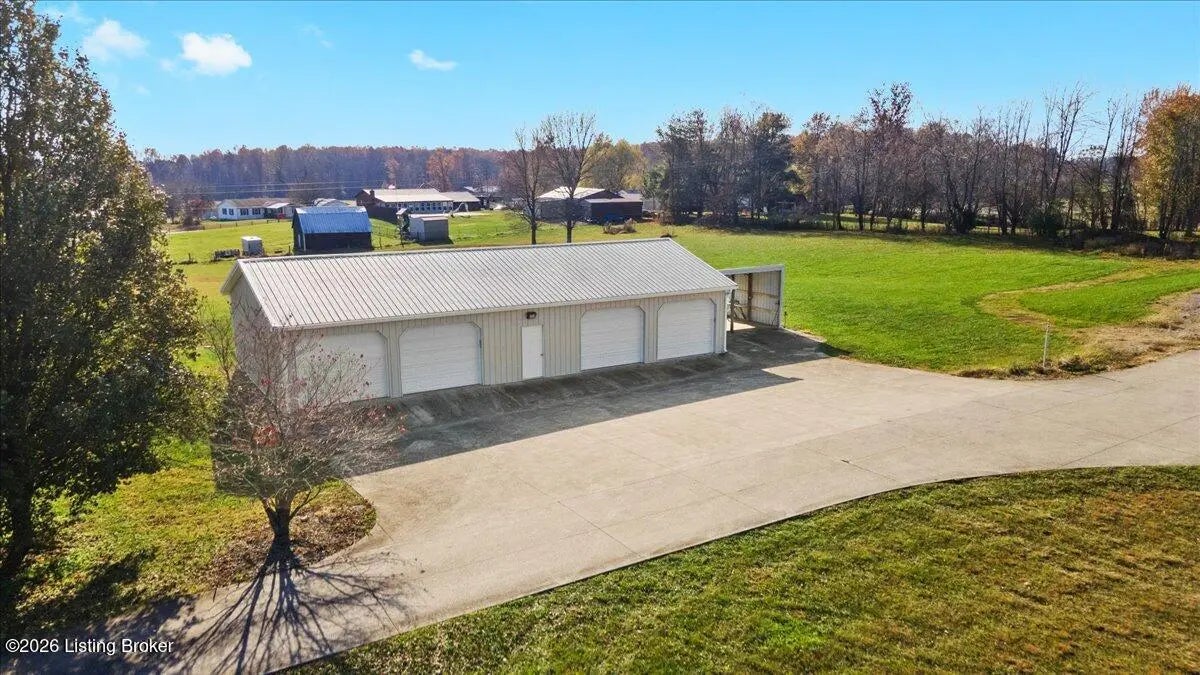 97 Saint John Church Road offers a rare blend of quality construction, energy efficiency, acreage, and exceptional shop space. This custom brick ranch home features over 4,000 square feet of finished living space and sits on 5.5 fully fenced acres with two stocked ponds, a full concrete driveway, and multiple outbuildings, ideal for buyers seeking privacy, land, and functionality. Built in 2007 with 2x6 exterior walls, the home was designed for long-term durability and efficiency. Major features include geothermal heating, a 3-zone HVAC system, tankless water heater, and a wired security system, making this property both cost-efficient and built to last. The open-concept main level spans 2,068 square feet and is designed for everyday living and entertaining. The kitchen anchors the space with real hardwood flooring, solid white oak cabinetry, granite countertops, stainless steel appliances, a large center island with bar seating, double ovens, flat-top cooktop, vented hood, and a walk-in pantry. The kitchen flows seamlessly into the spacious living area, creating a warm and functional layout. The main level includes three bedrooms and two full bathrooms, along with a tiled laundry room. The primary suite offers a tray ceiling, oversized walk-in closet, double vanity, jetted soaking tub, and walk-in tile shower. Secondary bedrooms provide flexible space for family, guests, or a home office. The fully finished walkout basement expands the home's versatility with a large recreation and entertainment area, bar, built-in surround sound, bonus room ideal for a gym, office, or theater, and a third full bathroom. Two oversized unfinished storage rooms offer exceptional utility, including one secured with a fireproof safe door and combination lock. Double patio doors open to a spacious concrete patio, enhancing indoor-outdoor living. Outdoor features include a metal roof, covered front porch, covered back patio, and an attached two-car garage. For those needing serious workspace, the property includes two insulated detached shop buildings with concrete floors, electric, and water: 40x30 three-bay shop - insulated and heated with a wood-burning stove 30x60 four-bay shop - equipped with a 240V welding plug, ideal for fabrication, mechanics, or heavy equipment With fenced acreage, ponds, multiple garages, and unmatched shop capability, this property is perfectly suited for hobbyists, business owners, or anyone needing space to work, store, or expand. Conveniently located within 5-20 minutes of Elizabethtown, Fort Knox, Rineyville, and Radcliff, this home delivers rural privacy without sacrificing accessibility. A truly move-in-ready home with acreage, energy-efficient systems, and high-demand shop features, a rare opportunity in today's market.