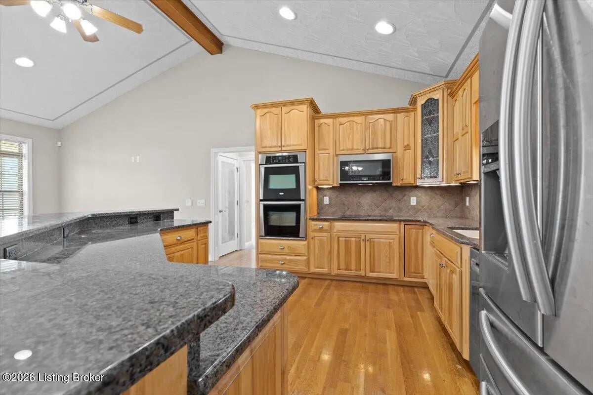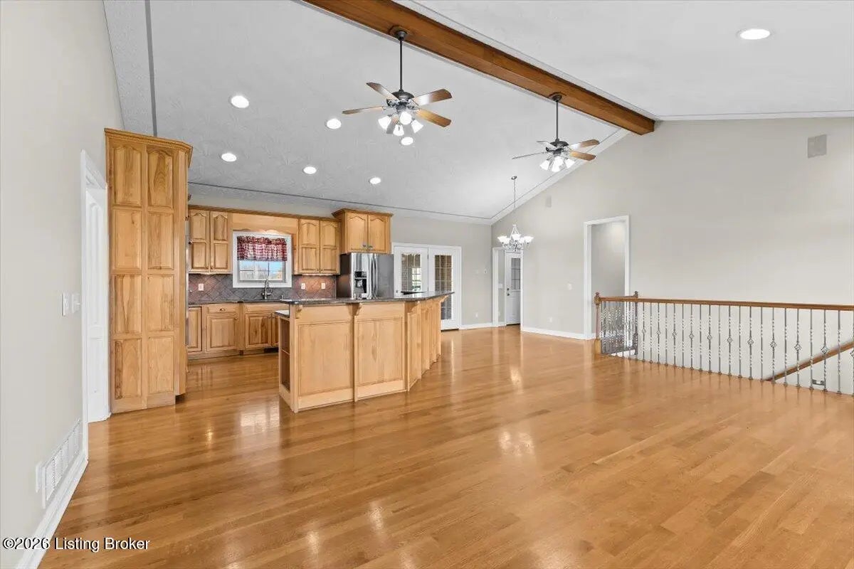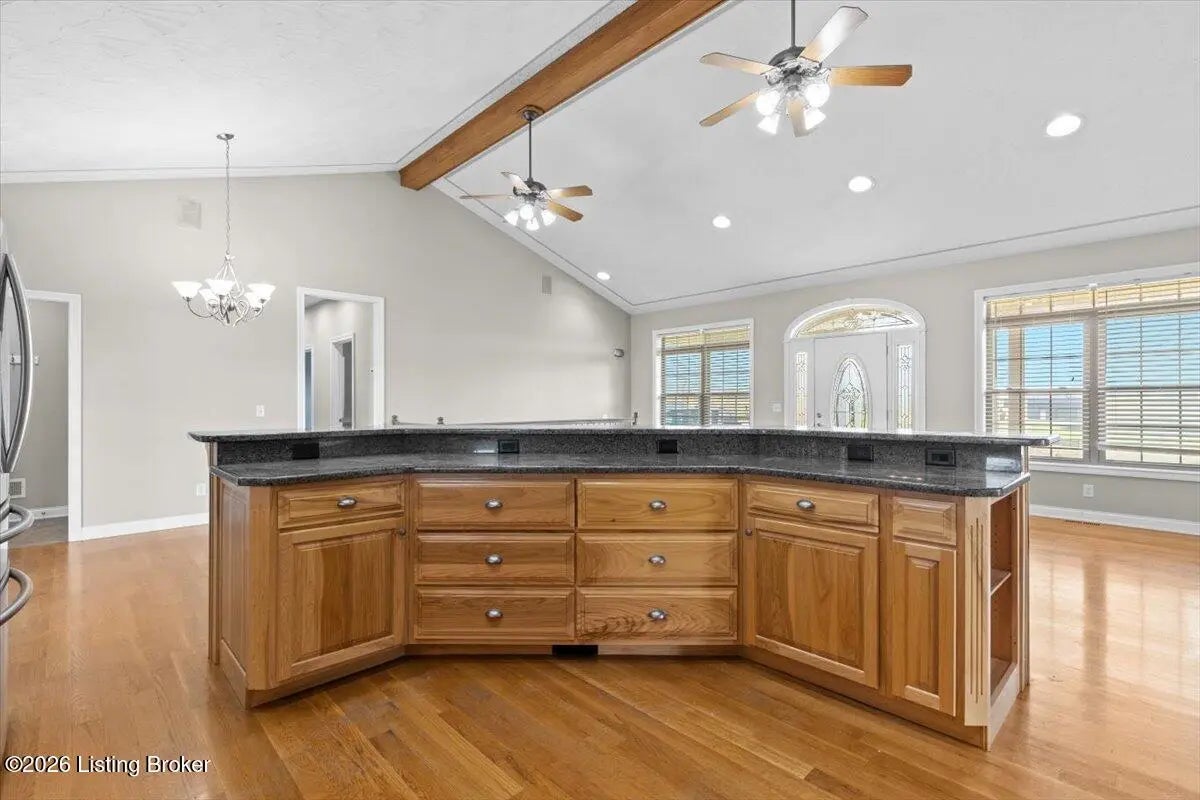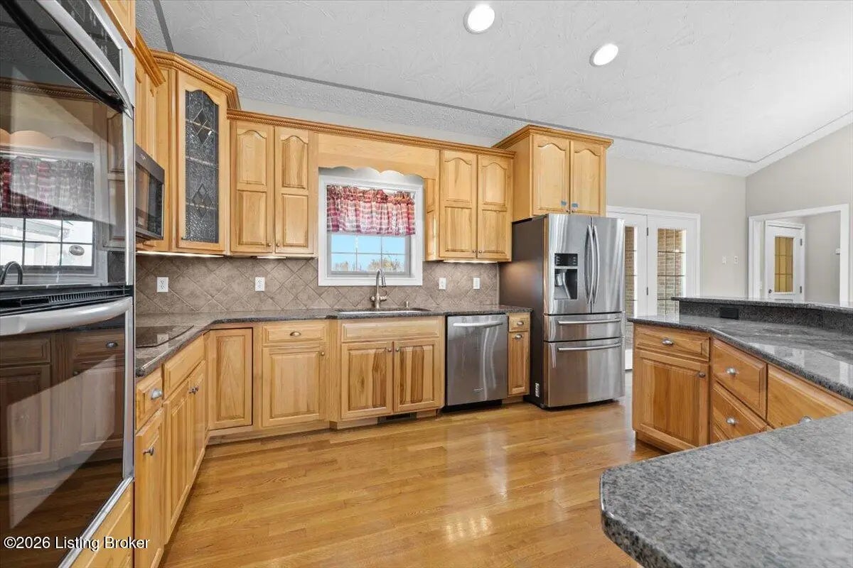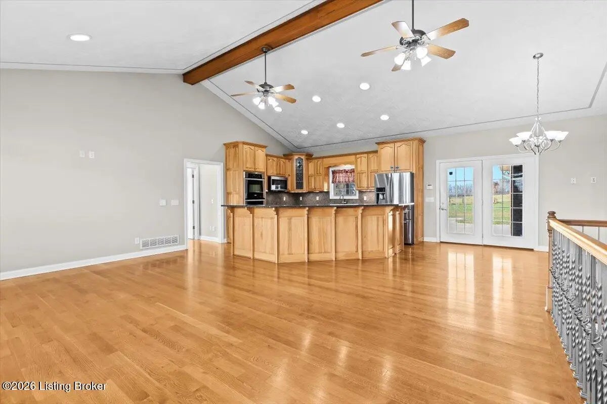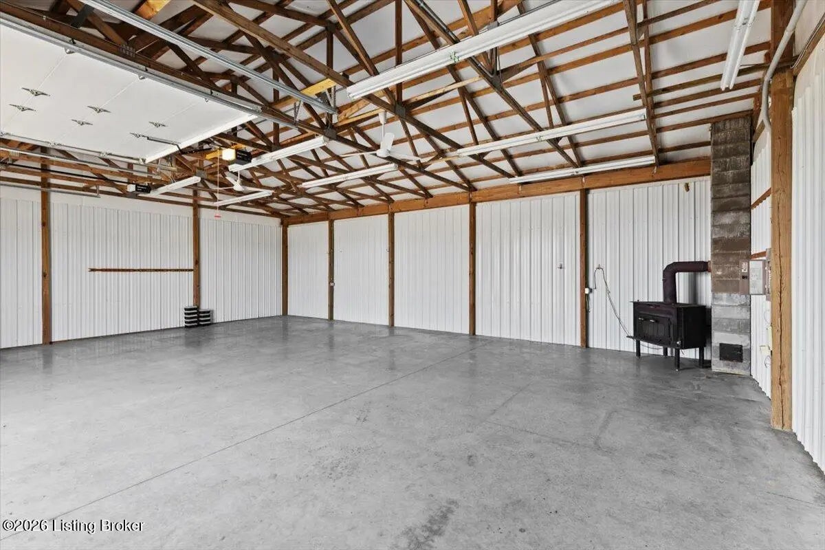 97 Saint John Church Road offers a rare blend of quality construction, energy efficiency, acreage, and exceptional shop space. This custom brick ranch home features over 4,000 square feet of finished living space and sits on 5.5 fully fenced acres with two stocked ponds, a full concrete driveway, and multiple outbuildings, ideal for buyers seeking privacy, land, and functionality. Built in 2007 with 2x6 exterior walls, the home was designed for long-term durability and efficiency. Major features include geothermal heating, a 3-zone HVAC system, tankless water heater, and a wired security system, making this property both cost-efficient and built to last. The open-concept main level spans 2,068 square feet and is designed for everyday living and entertaining. The kitchen anchors the space with real hardwood flooring, solid white oak cabinetry, granite countertops, stainless steel appliances, a large center island with bar seating, double ovens, flat-top cooktop, vented hood, and a walk-in pantry. The kitchen flows seamlessly into the spacious living area, creating a warm and functional layout. The main level includes three bedrooms and two full bathrooms, along with a tiled laundry room. The primary suite offers a tray ceiling, oversized walk-in closet, double vanity, jetted soaking tub, and walk-in tile shower. Secondary bedrooms provide flexible space for family, guests, or a home office. The fully finished walkout basement expands the home's versatility with a large recreation and entertainment area, bar, built-in surround sound, bonus room ideal for a gym, office, or theater, and a third full bathroom. Two oversized unfinished storage rooms offer exceptional utility, including one secured with a fireproof safe door and combination lock. Double patio doors open to a spacious concrete patio, enhancing indoor-outdoor living. Outdoor features include a metal roof, covered front porch, covered back patio, and an attached two-car garage. For those needing serious workspace, the property includes two insulated detached shop buildings with concrete floors, electric, and water: 40x30 three-bay shop - insulated and heated with a wood-burning stove 30x60 four-bay shop - equipped with a 240V welding plug, ideal for fabrication, mechanics, or heavy equipment With fenced acreage, ponds, multiple garages, and unmatched shop capability, this property is perfectly suited for hobbyists, business owners, or anyone needing space to work, store, or expand. Conveniently located within 5-20 minutes of Elizabethtown, Fort Knox, Rineyville, and Radcliff, this home delivers rural privacy without sacrificing accessibility. A truly move-in-ready home with acreage, energy-efficient systems, and high-demand shop features, a rare opportunity in today's market.