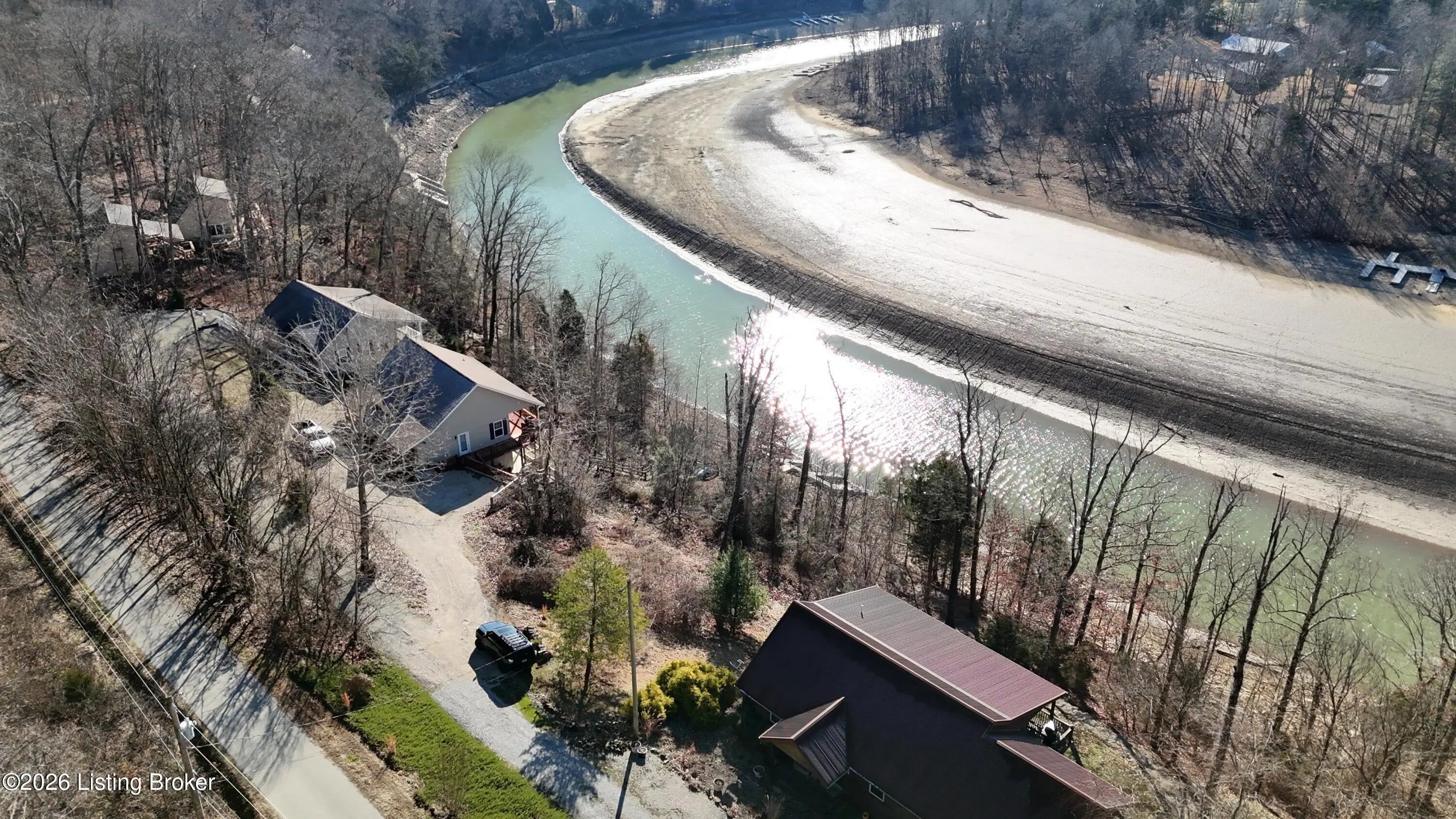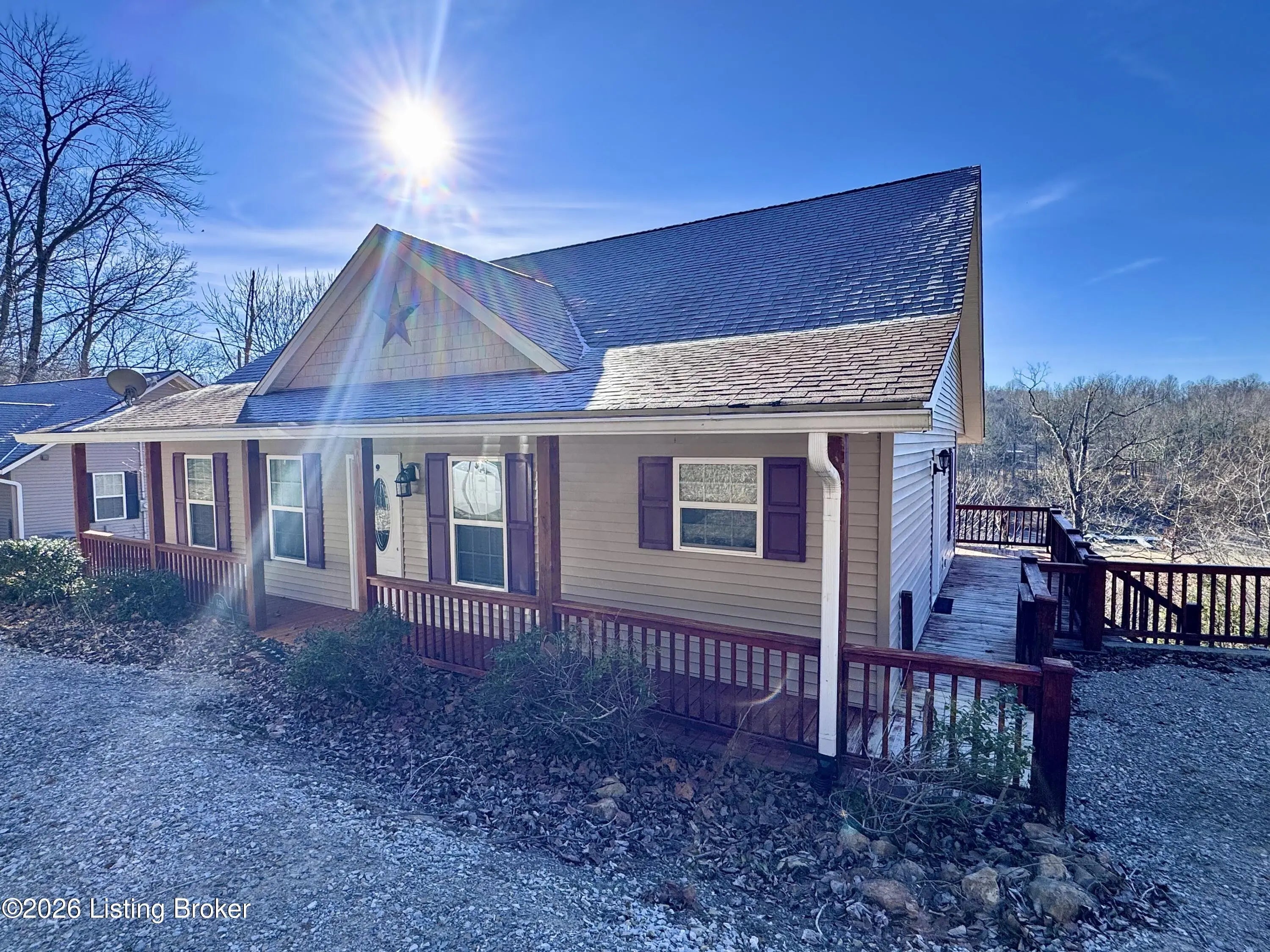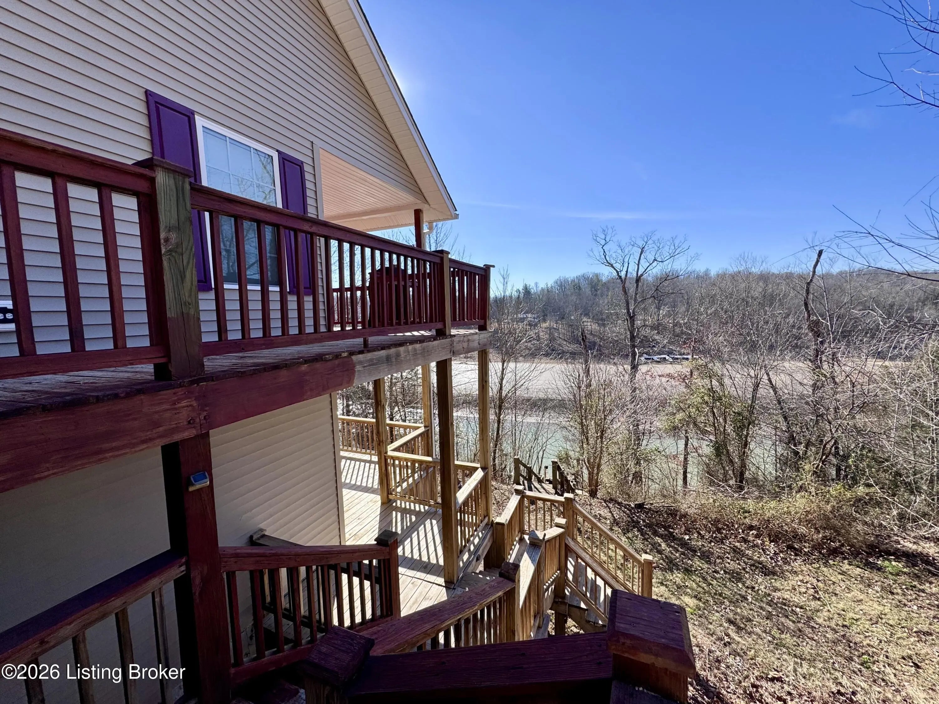 461 N. Riverbend Rd. is tucked back along the Woodside of Rough River's Peter Cave area. An easy escape from I-65, and centrally located from Louisville, Elizabethtown, Bowling Green, Owensboro/Evansville, so that it's easily enjoyed often by you or your renter looking for a quick getaway. The home sits on two waterfront lots off of a private drive. Double lots, double decks & double docks offering double the fun. The ranch style home has a main floor with open living & dining areas and kitchen, along with first floor laundry, half bath, primary bedroom & bathroom suite with doors that walk out onto the extended deck overlooking the water. Downstairs is another large family room with additional space for sleeping, games, whatever suites your needs. The walkout basement also has to more bedrooms, an oversized full bathroom, utility area & huge walk-in closet for storage. The double doors off of the flex space open up to the lower level extended deck. This home is the ideal size for family or friends to spread out, but yet not hold you down with maintenance & cleaning, so that everyone is able to join in the lake fun!