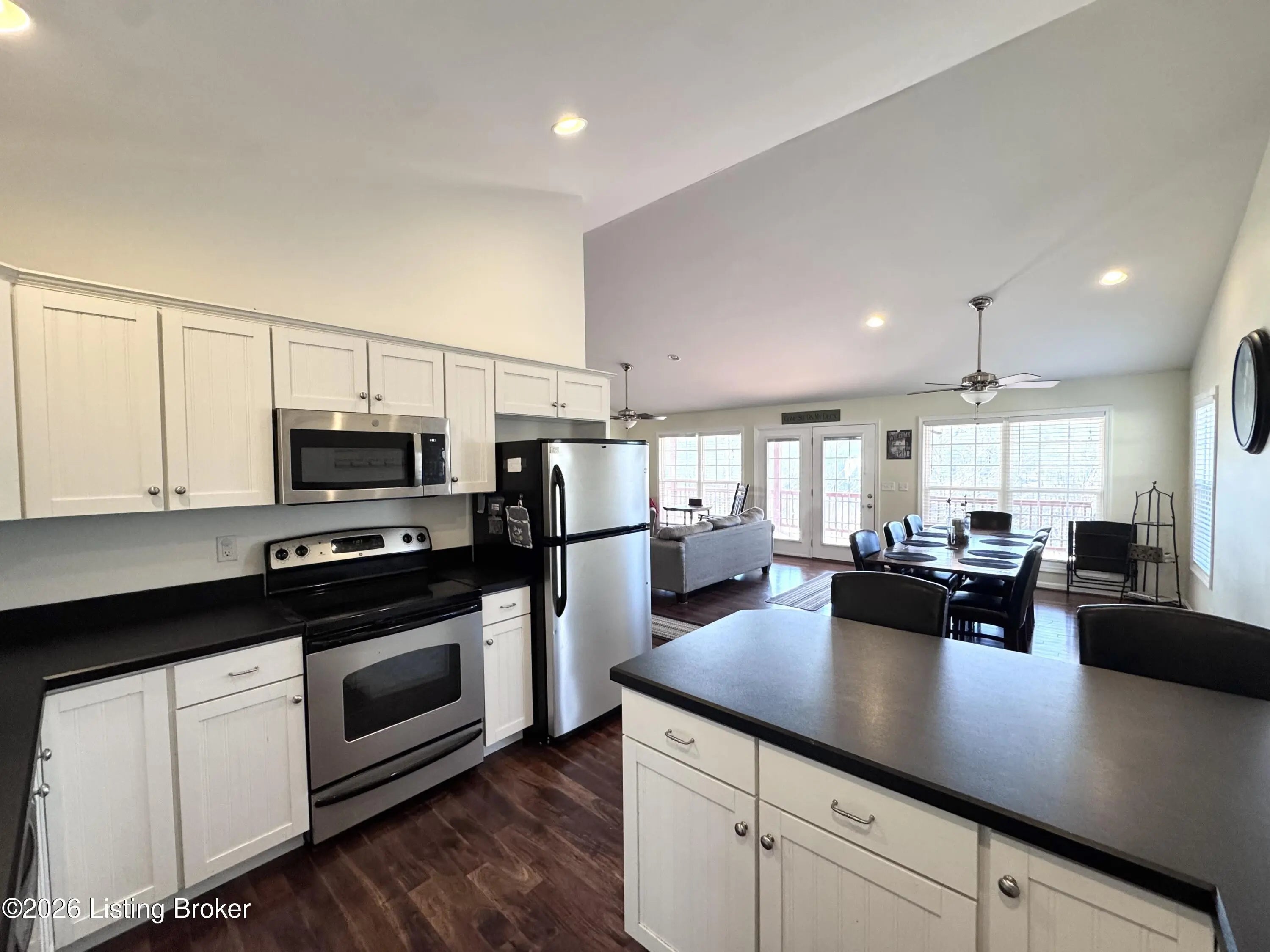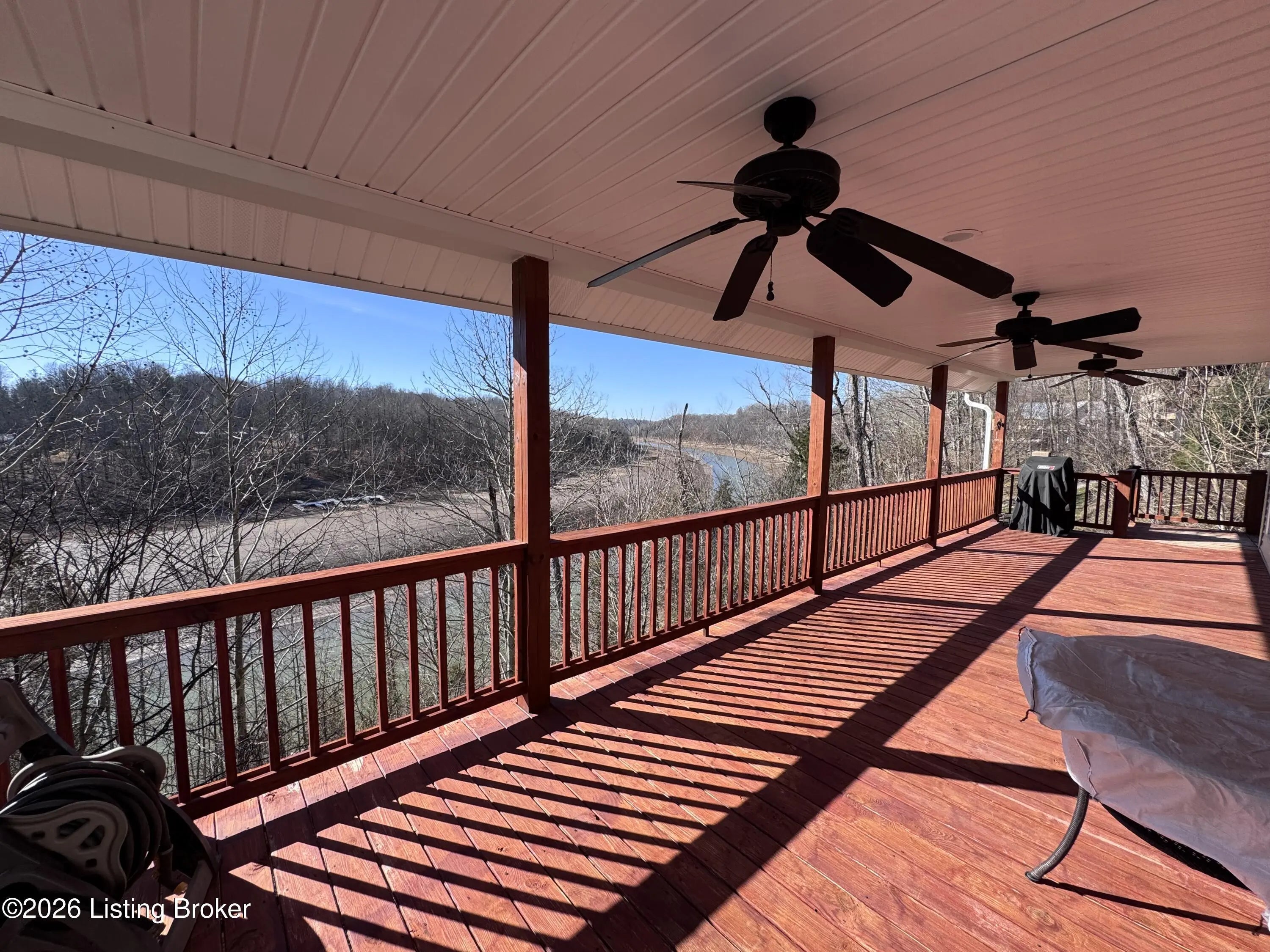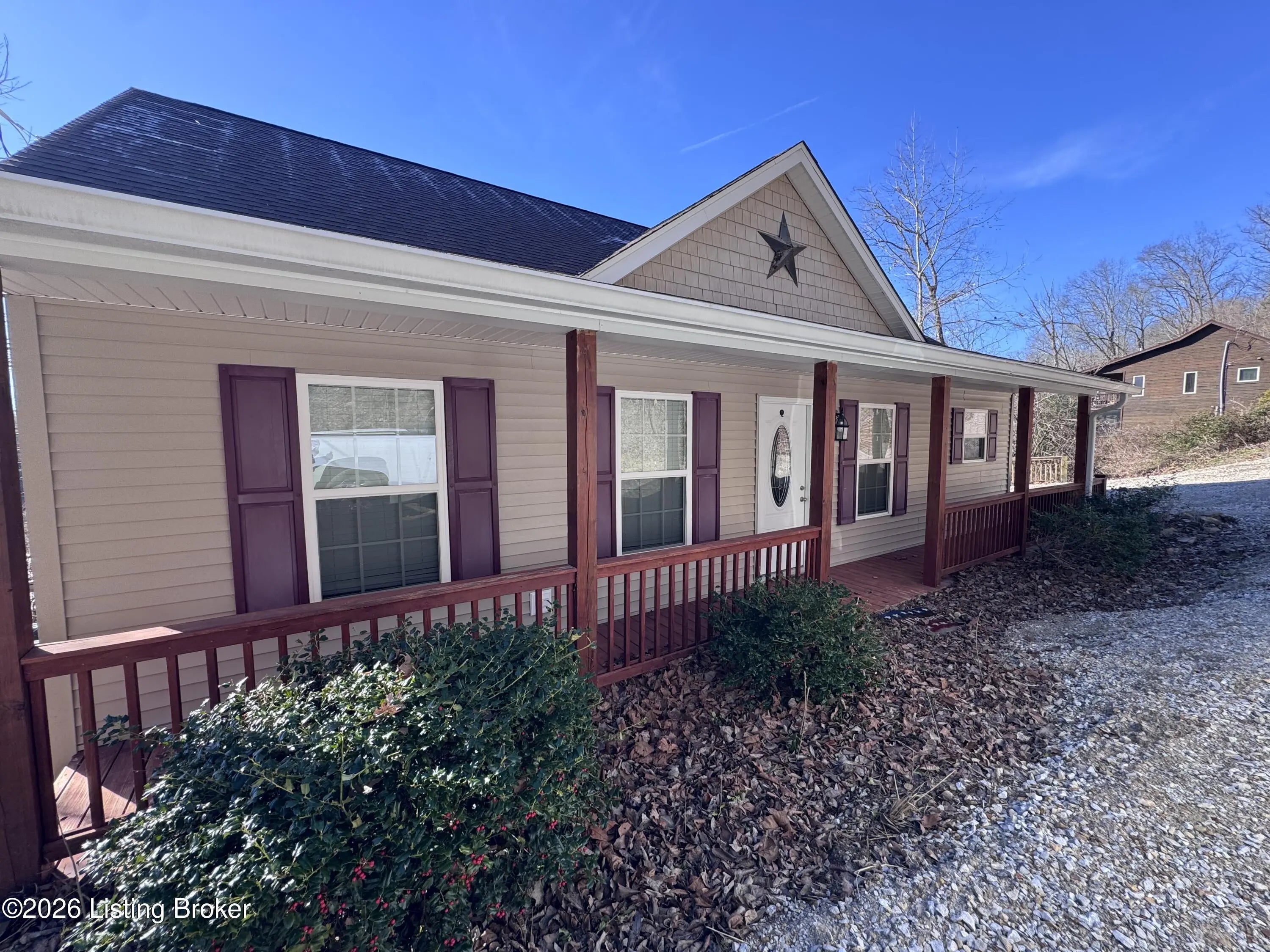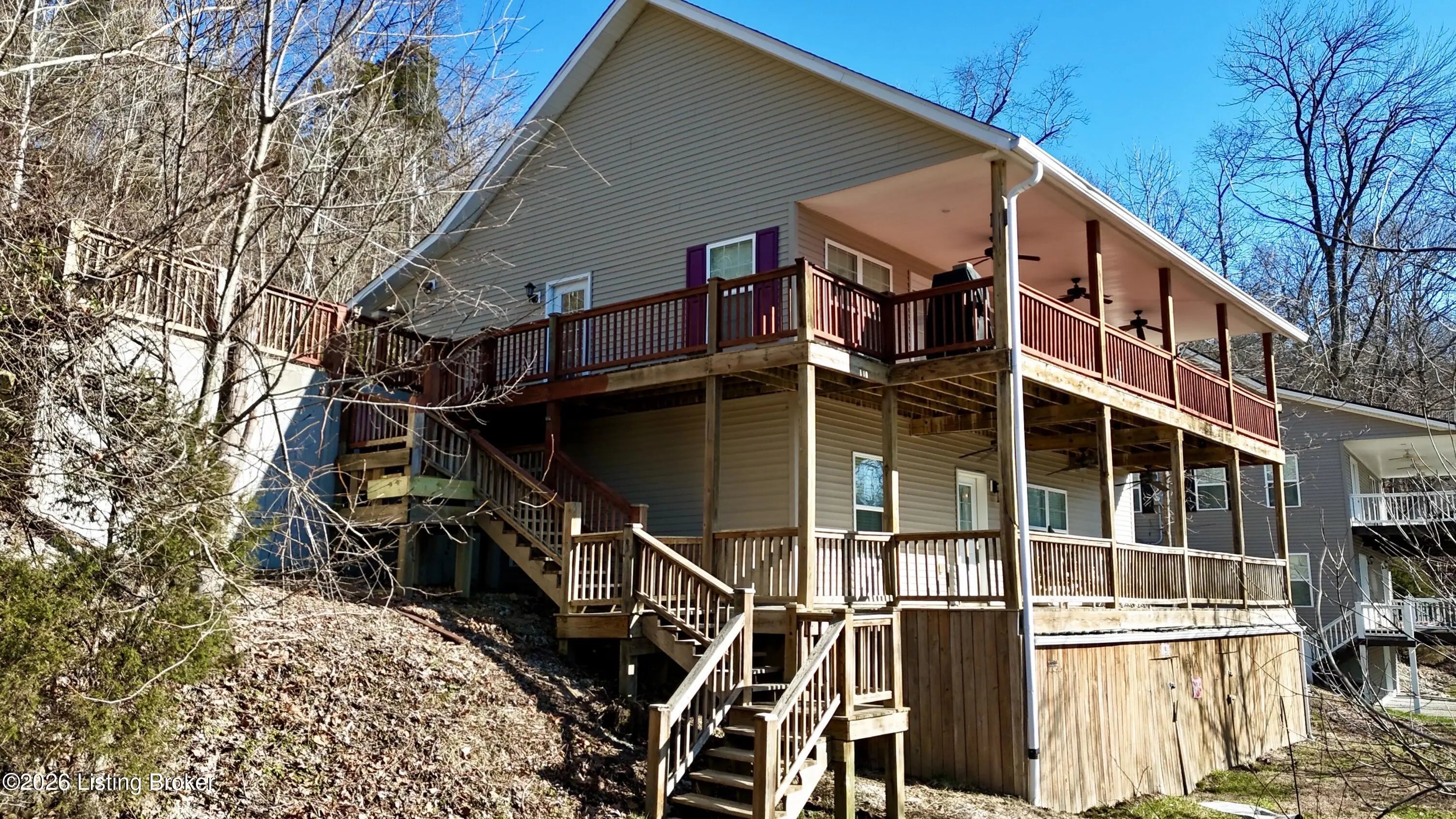 461 N. Riverbend Rd. is tucked back along the Woodside of Rough River's Peter Cave area. An easy escape from I-65, and centrally located from Louisville, Elizabethtown, Bowling Green, Owensboro/Evansville, so that it's easily enjoyed often by you or your renter looking for a quick getaway. The home sits on two waterfront lots off of a private drive. Double lots, double decks & double docks offering double the fun. The ranch style home has a main floor with open living & dining areas and kitchen, along with first floor laundry, half bath, primary bedroom & bathroom suite with doors that walk out onto the extended deck overlooking the water. Downstairs is another large family room with additional space for sleeping, games, whatever suites your needs. The walkout basement also has to more bedrooms, an oversized full bathroom, utility area & huge walk-in closet for storage. The double doors off of the flex space open up to the lower level extended deck. This home is the ideal size for family or friends to spread out, but yet not hold you down with maintenance & cleaning, so that everyone is able to join in the lake fun!