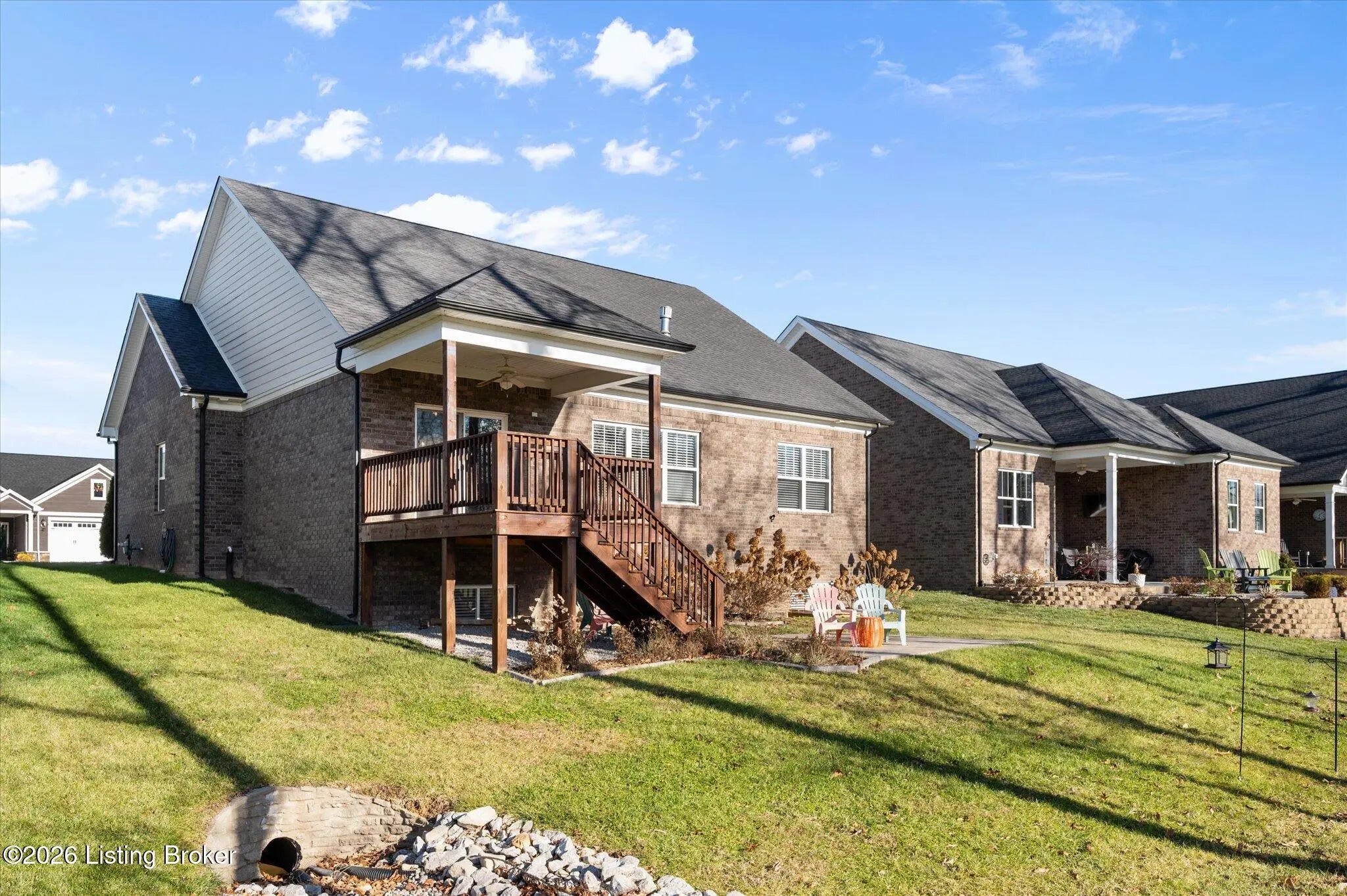 Phenomenal price for this 5yr old, basically-new and highly upgraded Champion home overlooking the 3rd fairway (left side) of Champions Pointe Golf Course. This family-friendly neighborhood caters to everyone, with a PGA level golf course designed by Fuzzy Zoeller, tennis/pickleball courts, a lavish clubhouse, pool and splashpad for the kids, and even seasonal holiday-themed golf cart parades! With an upgraded 30'X20' extra-deep garage, this home has an extra golfcart sized bay door to save you cart fees on the course, join in the parades, or just stroll about the neighborhood in the long summer evenings. Inside the home, you'll find even more opulence, starting with a tremendous vaulted, arched-ceiling foyer. Just beyond two graciously sized kids bedrooms, you have a HUGE living room with gas fireplace, built-in bookshelves, and tremendous natural light from the south-facing rear windows. This room also opens up to a well appointed eat-in kitchen with granite counters, stainless steel appliances, and attached covered deck that overlooks the left-side of the 3rd fairway, keeping you safe from all those right-handed slicers (like myself). Just beyond that lies the primary suite, with huge walk-in closet and more southward facing windows for morning light. Downstairs features a 525+ sqft family room, a full bathroom, and 4th bedroom/office, all with egress-conforming windows. Also in the basement is that equal amount of space in unfinished area, ready for you to put your own stamp on this home. Just 20minutes from downtown Louisville, this home, neighborhood, and community has everything you're looking for. Call today to schedule your own private showing!