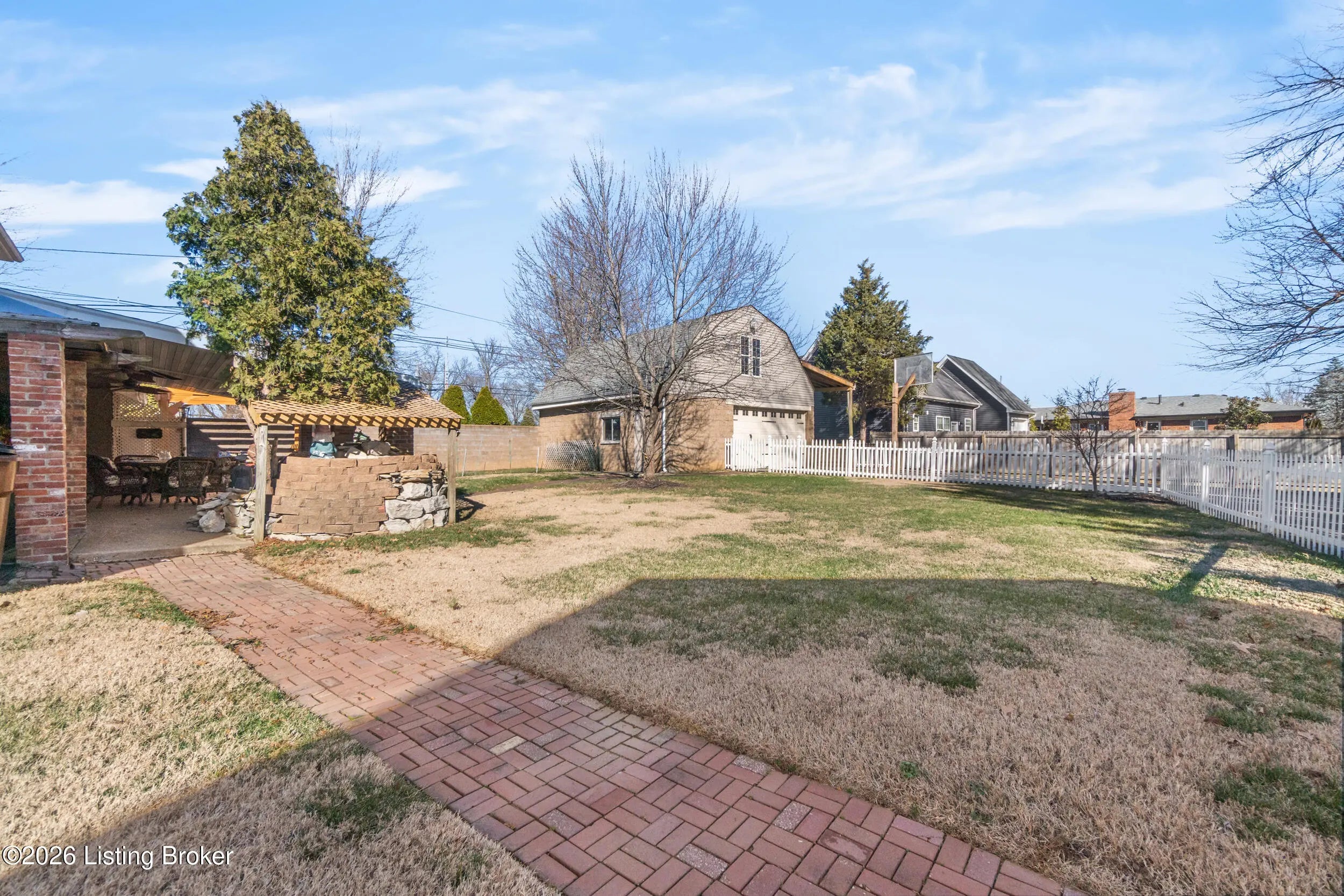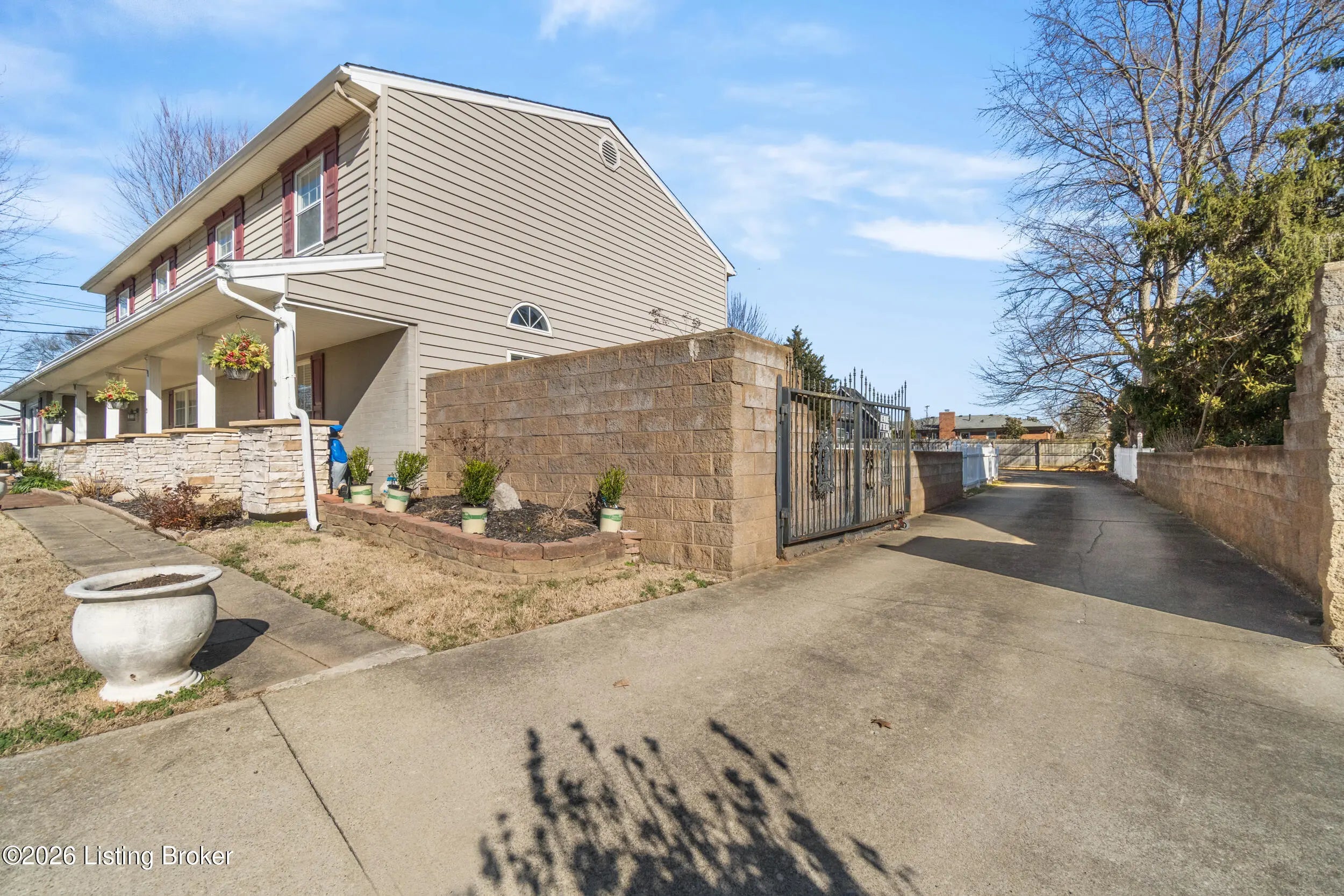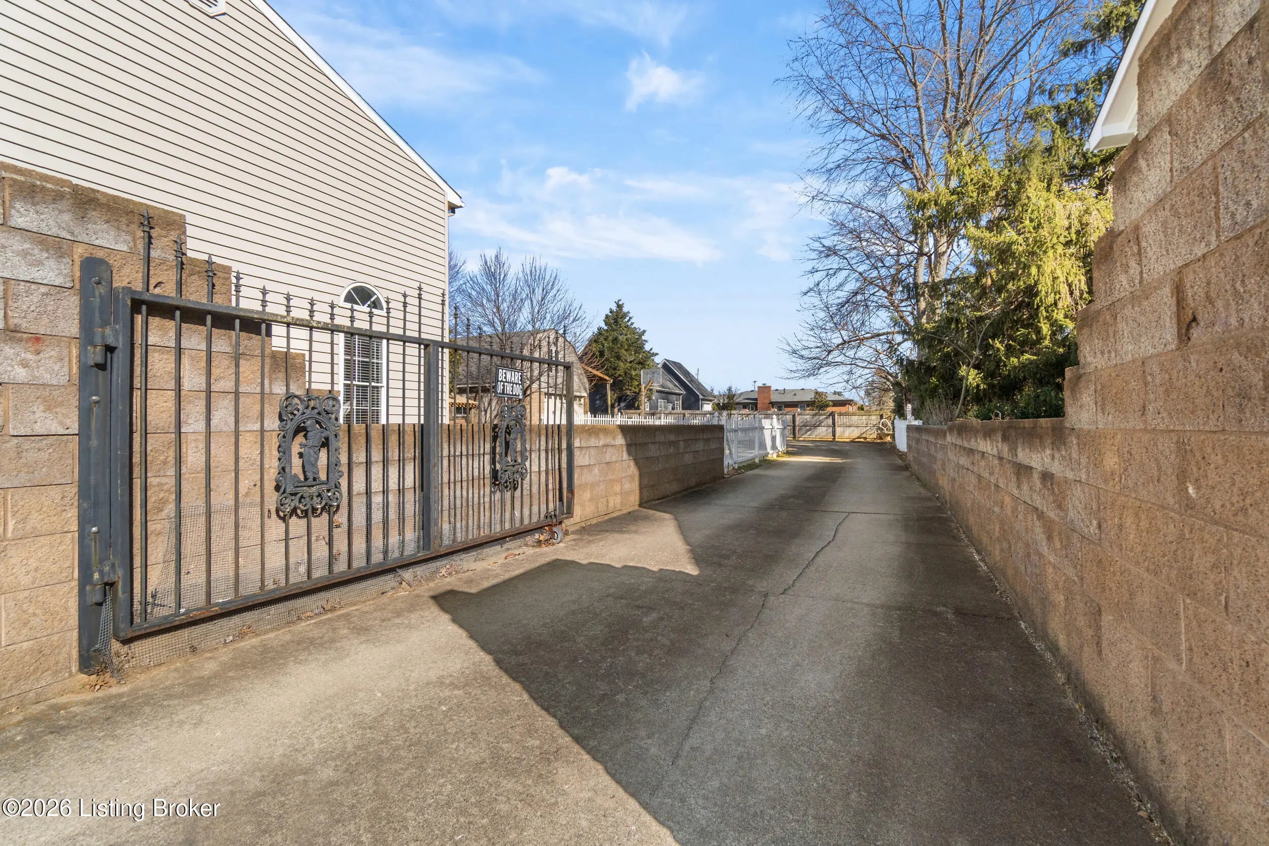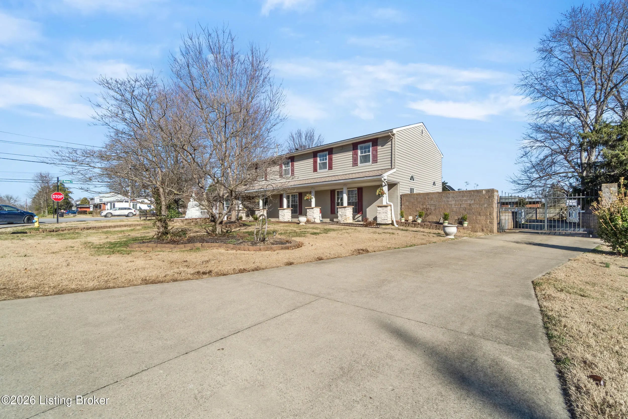 Welcome to 1123 Girard Drive, a spacious 4BR, 3.5BA home with a large gated driveway offering privacy and security. Features include a vaulted living room with fireplace, large first floor master, and a covered rear patio with fountain, ideal for outdoor enjoyment. A second primary suite is located upstairs with full bath providing flexible living options. Detached two-car garage includes a generous upper level for storage or future finished space. Conveniently located minutes from Westport Village and the Watterson Expressway, with easy access to shopping, dining, and daily conveniences.