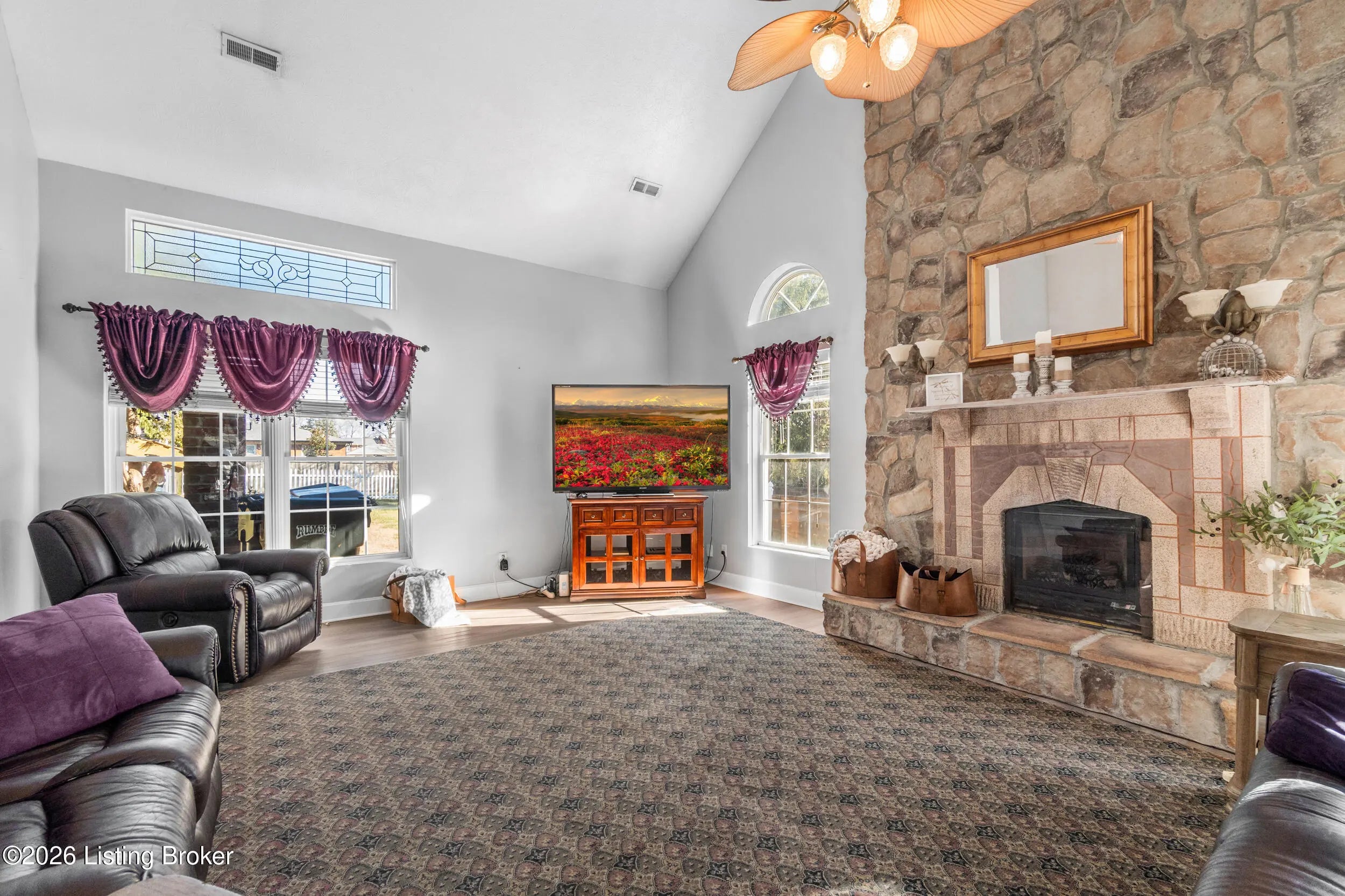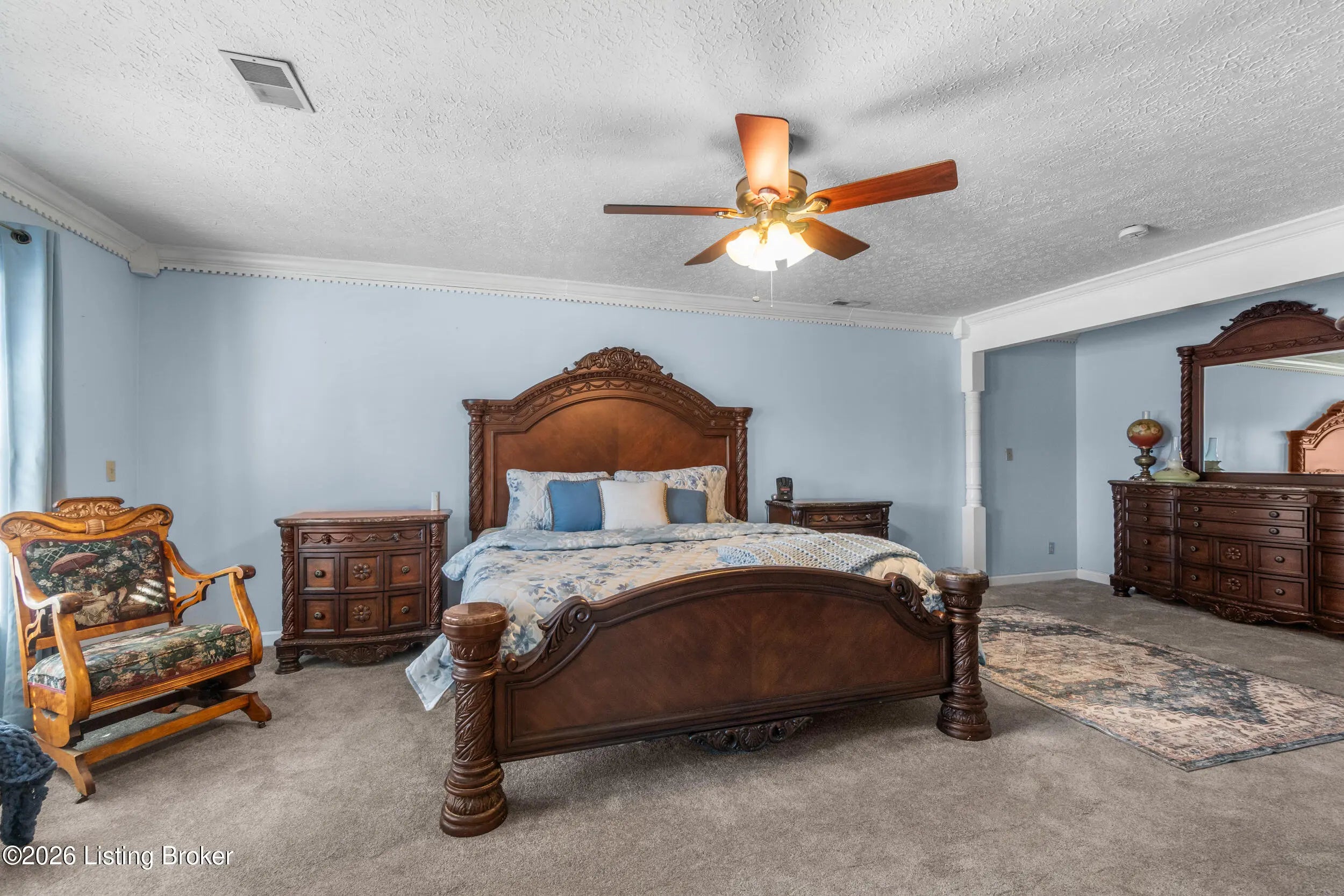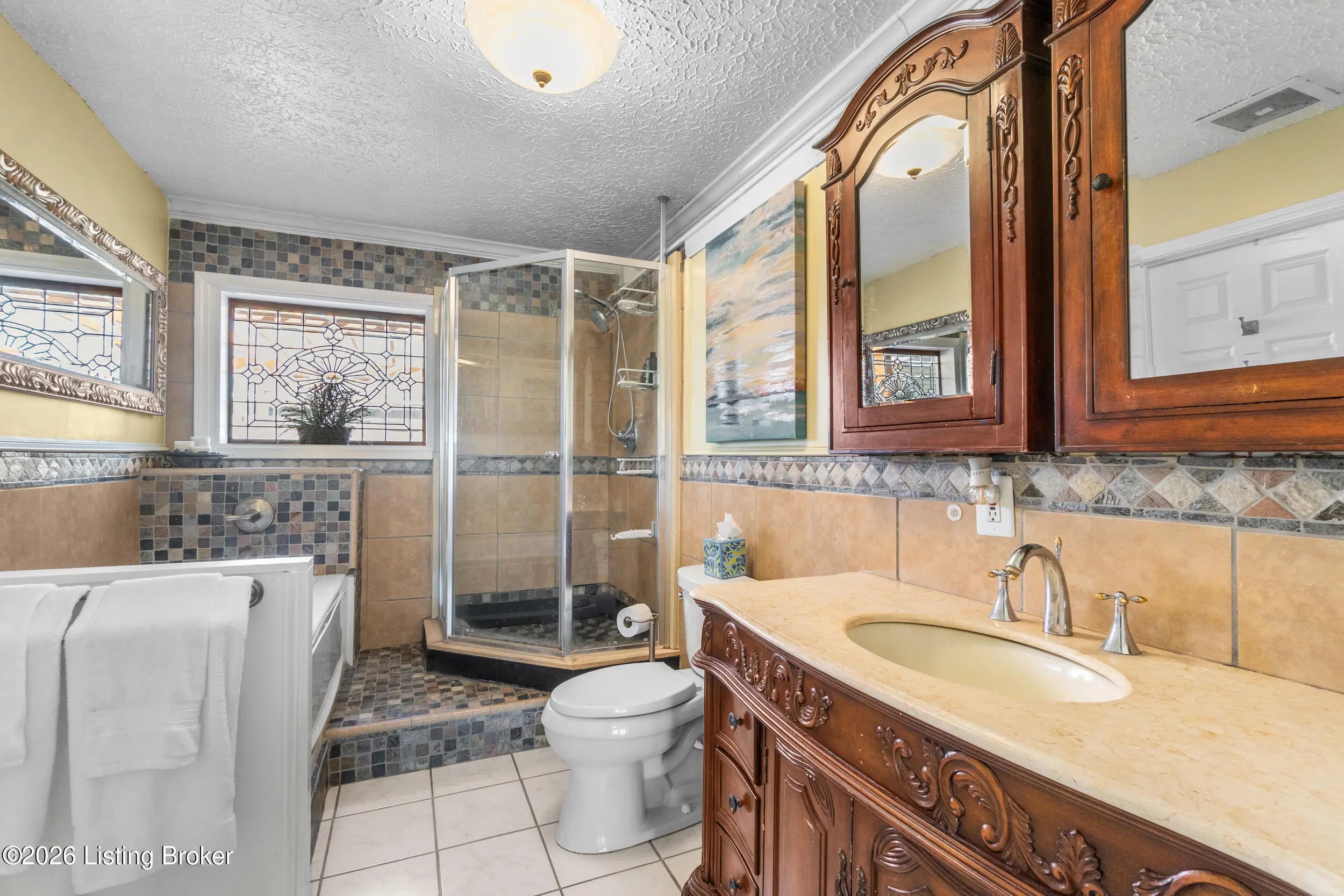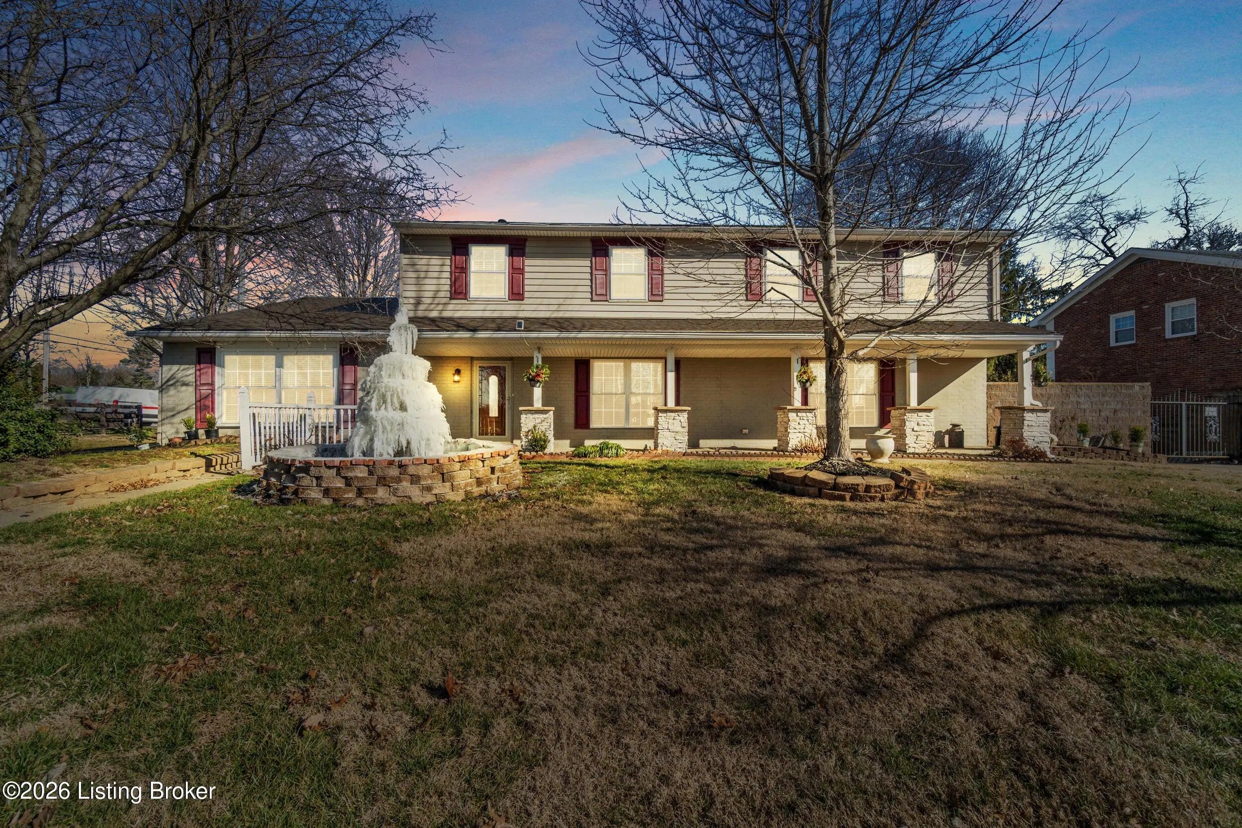Welcome to 1123 Girard Drive, a spacious 4BR, 3.5BA home with a large gated driveway offering privacy and security. Features include a vaulted living room with fireplace, large first floor master, and a covered rear patio with fountain, ideal for outdoor enjoyment. A second primary suite is located upstairs with full bath providing flexible living options. Detached two-car garage includes a generous upper level for storage or future finished space. Conveniently located minutes from Westport Village and the Watterson Expressway, with easy access to shopping, dining, and daily conveniences.