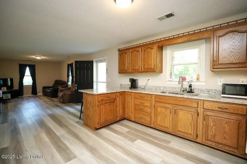 Escape to your own private retreat on this expansive country lot where panoramic views stretch as far as the eye can see. This thoughtfully designed three-bedroom, two-bathroom home offers the perfect blend of comfortable living and natural beauty in a park-like setting that feels worlds away from the hustle and bustle. The heart of the home features an open-concept design connecting the living room and kitchen, creating an ideal space for both daily life and entertaining. The kitchen showcases granite countertops that add a touch of sophistication to your culinary adventures. When it's time for more formal occasions, the dedicated dining room provides the perfect backdrop for memorable meals with family and friends. The primary bedroom serves as a peaceful sanctuary, complete with a full bathroom featuring beautiful granite countertops that mirror the kitchen's upscale finishes. Two additional bedrooms offer flexibility for guests, a home office, or whatever your lifestyle demands. A second full bathroom ensures convenience for the entire household. Step outside to discover your own screened porch, where morning coffee tastes better and evening conversations linger longer. The attached garage provides practical storage and protection for your vehicle. The generous lot size offers endless possibilities for outdoor activities, gardening, or simply enjoying the tranquil surroundings.