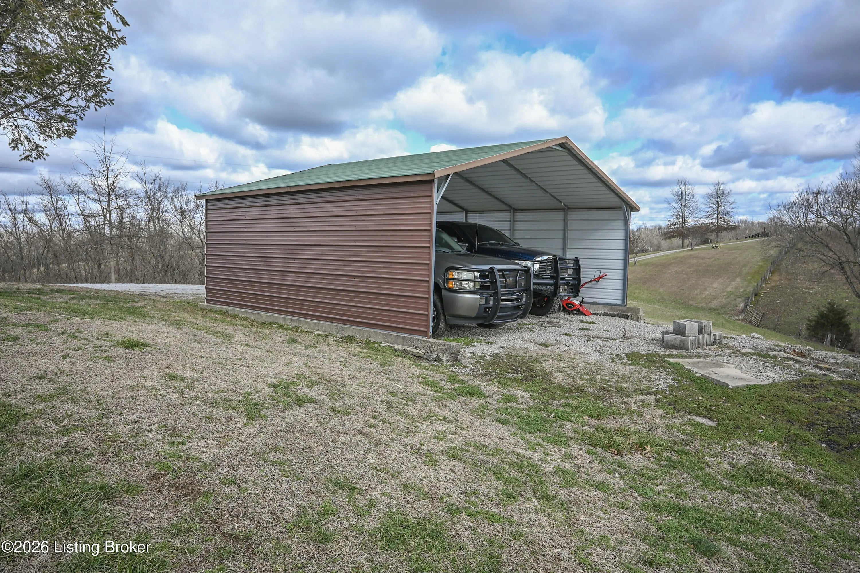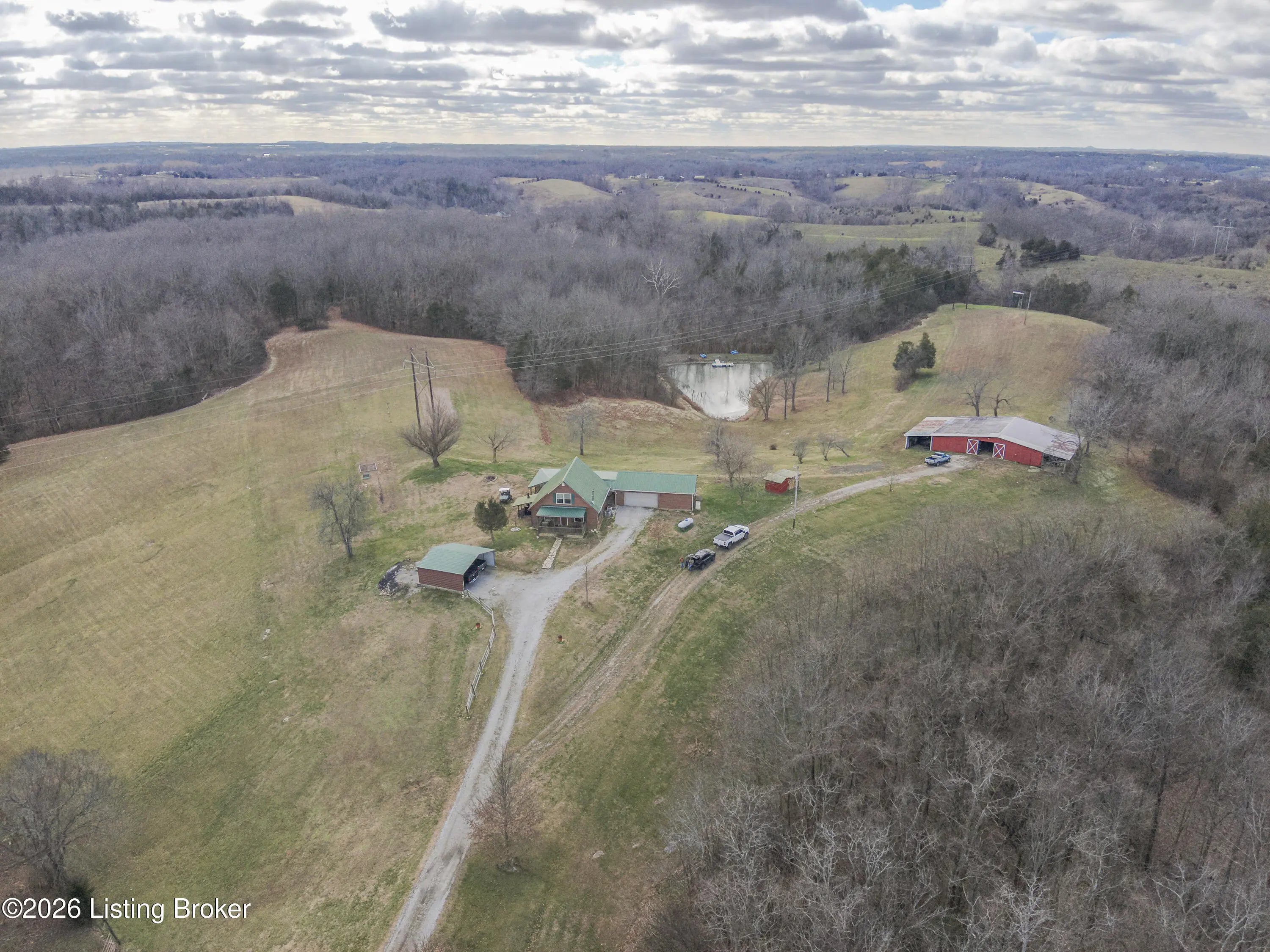 Welcome to this exceptional ±56.43-acre homestead in Washington County, KY, offering the perfect balance of privacy, convenience, and classic Kentucky charm. With no neighboring homes visible from the homesite, this property delivers true seclusion while remaining just approximately 20 minutes from both Springfield and Harrodsburg. The rustic 3-bedroom, 2-bath home features approximately 1,598 square feet of comfortable living space with multiple heat sources that create a warm, inviting atmosphere throughout the seasons. Step onto the back porch and take in breathtaking views overlooking your pasture and a beautiful, stocked pond built by the Corps of Engineers—an ideal setting for morning coffee or evening sunsets. Outdoor enthusiasts and hunters will appreciate the abundance of deer and turkey that call this farm home. Multiple clearings throughout the property provide excellent opportunities for food plots, further enhancing the already strong wildlife habitat. A box blind and additional hunting stands are already set up and ready for use. Tucked back in the woods, you'll also find a small cabin/structure for a quiet escape in nature. A second small pond located in the wooded portion of the property offers another valuable water source and is ideal for supporting wildlife. Property improvements include a 2-car garage, a barn for storage or equipment, and a carport for additional parking. The gated and fenced entrance adds both security and curb appeal. The farm features road frontage on Battle Road along the front half of the property and Glens Creek Road along the back half, providing excellent access and flexibility. This farm is a rare opportunity for those seeking a private homestead, recreational getaway, or hunting property with scenic views, established improvements, and abundant wildlifeall in a highly desirable Central Kentucky location.