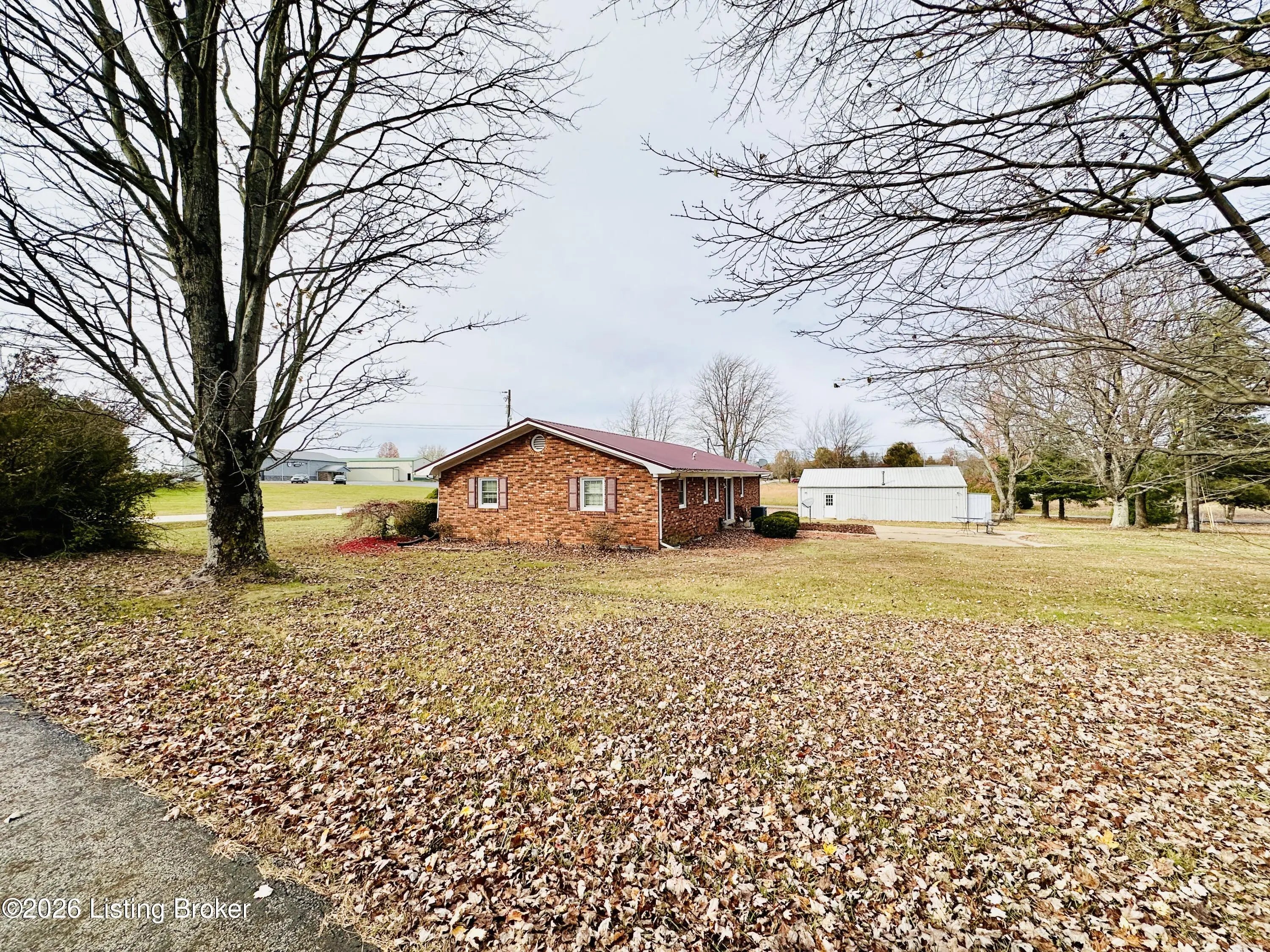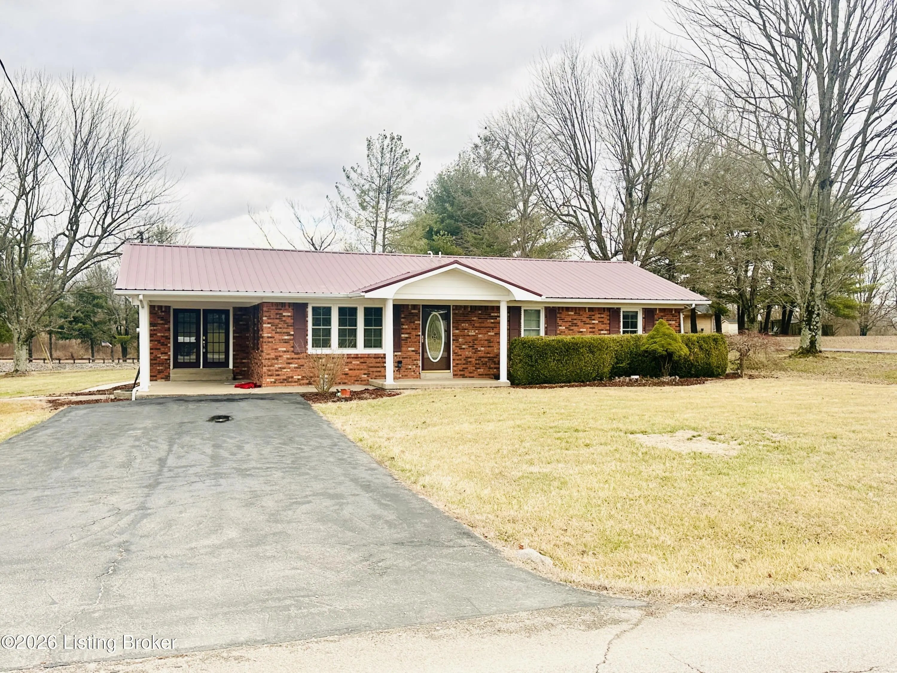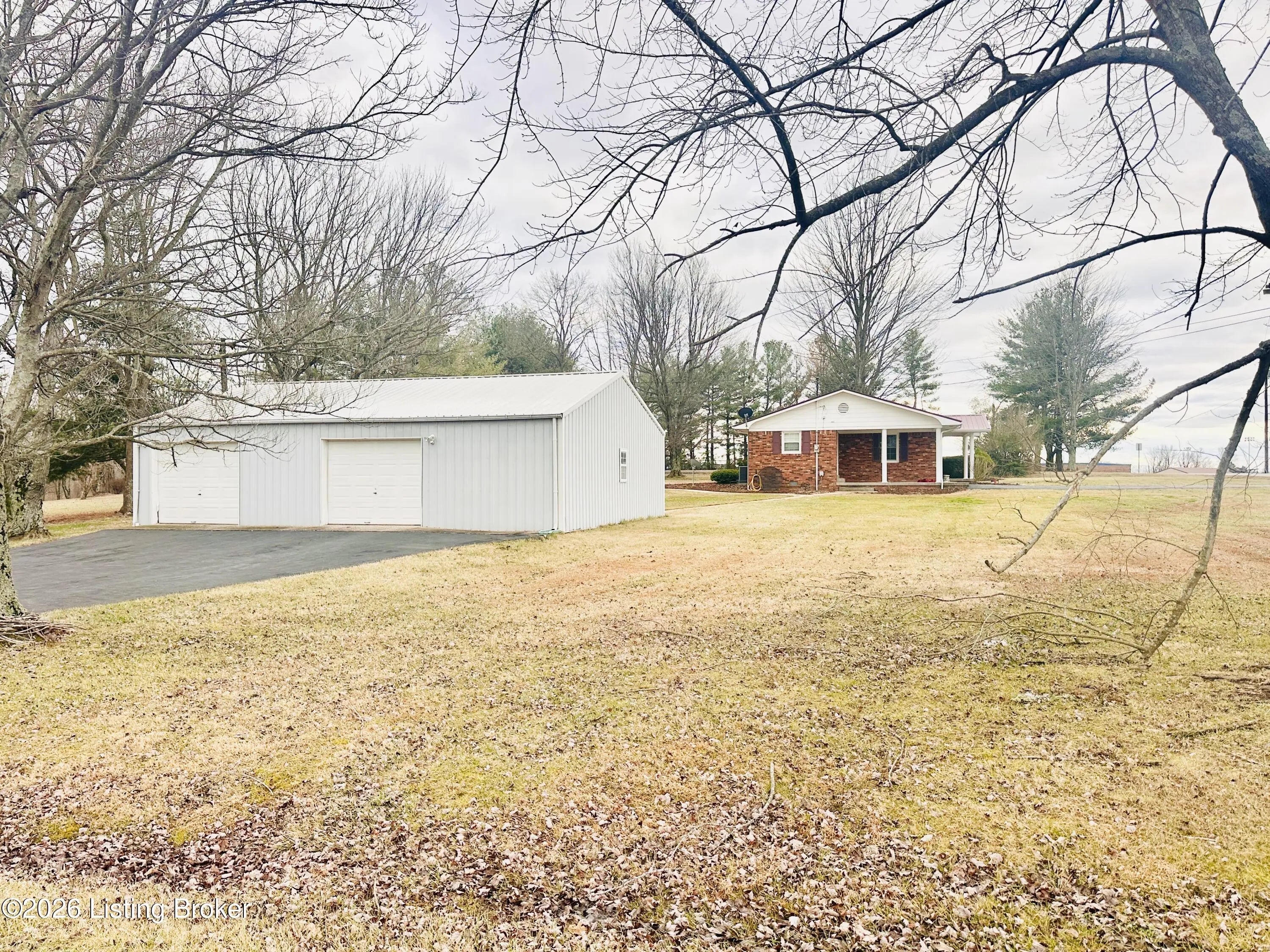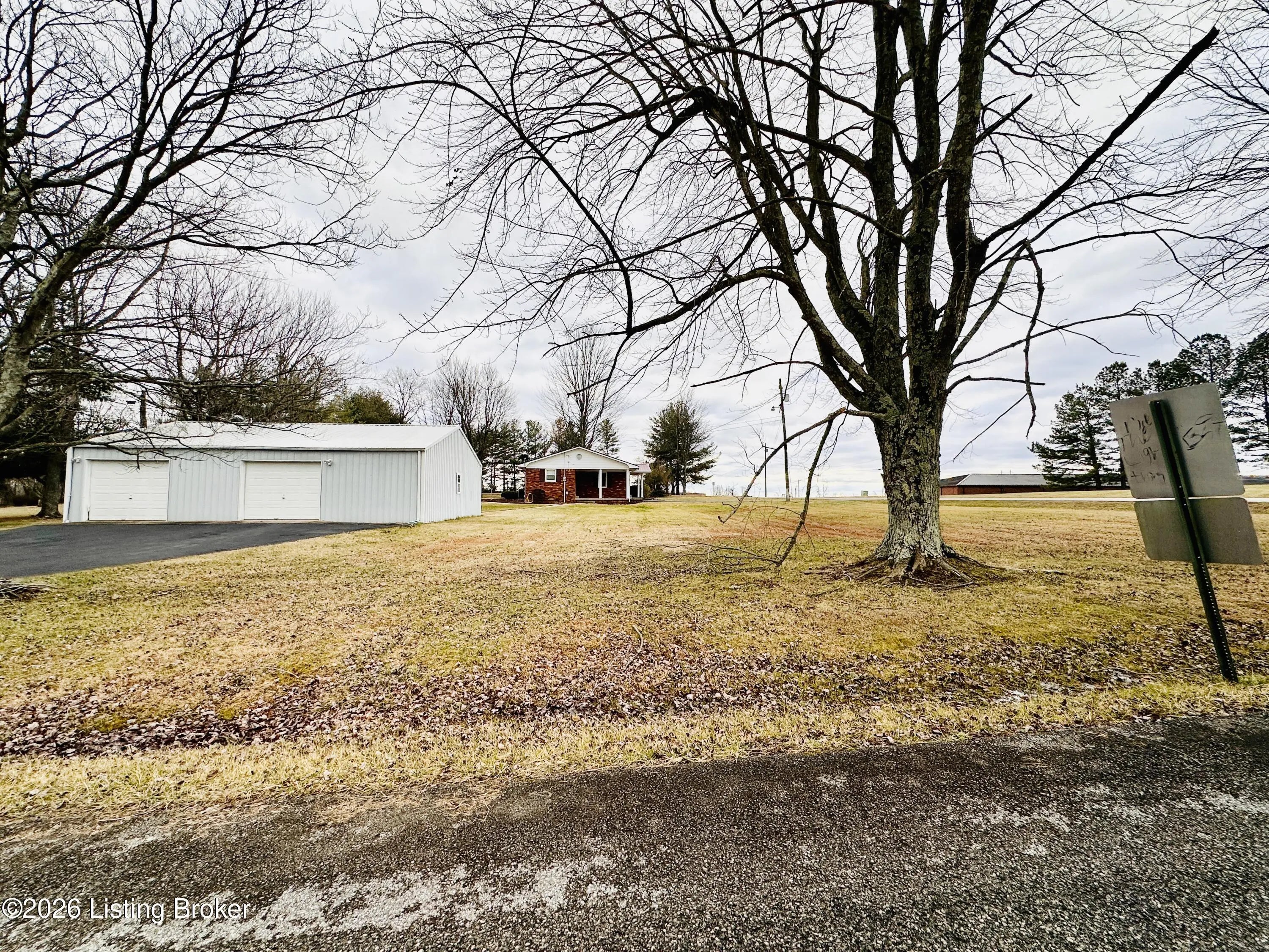 Welcome to this well-maintained 1,380± sq ft brick ranch offering comfort, space, and an unbeatable location on Schoolhouse Road in Leitchfield. This 3-bedroom, 1.5-bath property has two lots totaling approximately 0.72± acres. The primary lot (0.36± acre) features the home, while the second 0.36± acre lot includes a detached garage—providing extra space, storage, or future possibilities. Inside, you'll find a spacious living room filled with natural light from multiple windows. The large kitchen opens to the dining area, where French doors lead to the patio—perfect for relaxing or entertaining while enjoying views of the neighboring pond and peaceful scenery. Beautiful hardwood and tile floors flow throughout the home, adding warmth and timeless appeal. Convenience is key with an add additional entry off the attached carport leading into a laundry/mud room. The primary bedroom includes a private 1.5 bath, offering added comfort and functionality. Ideally located directly across from Lawler Elementary School and Grayson County High School, this property is just minutes from town amenities including shopping and restaurants. Outdoor enthusiasts will appreciate the close proximity to both Rough River Lake and Nolin Lake. This property combines location, space, and charmdon't miss the opportunity to make it yours!