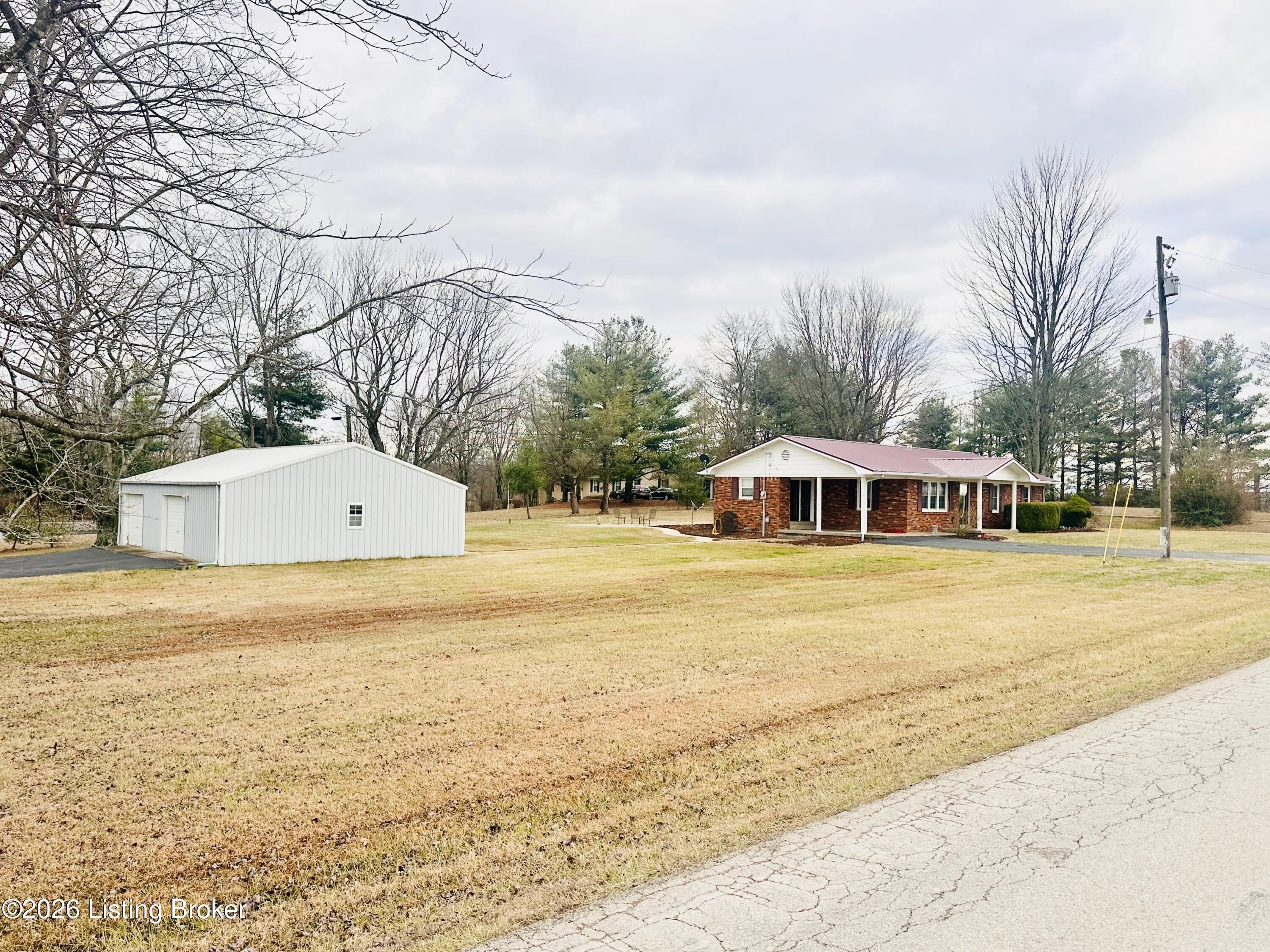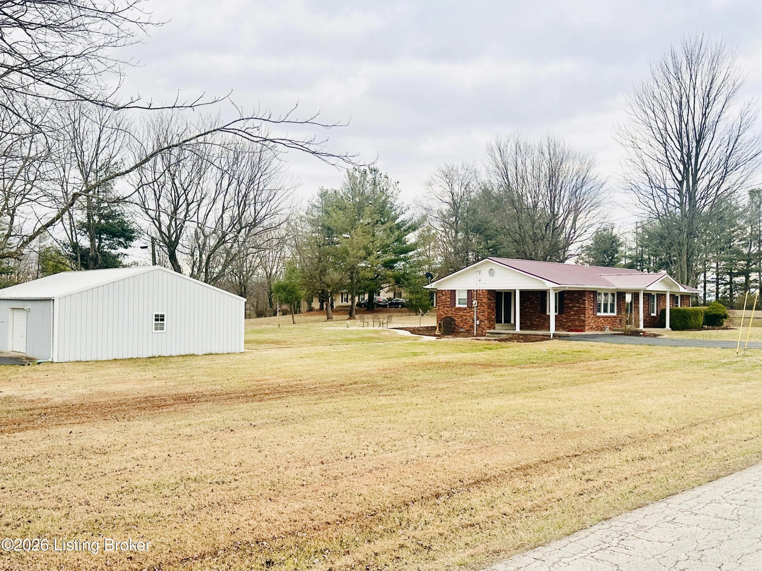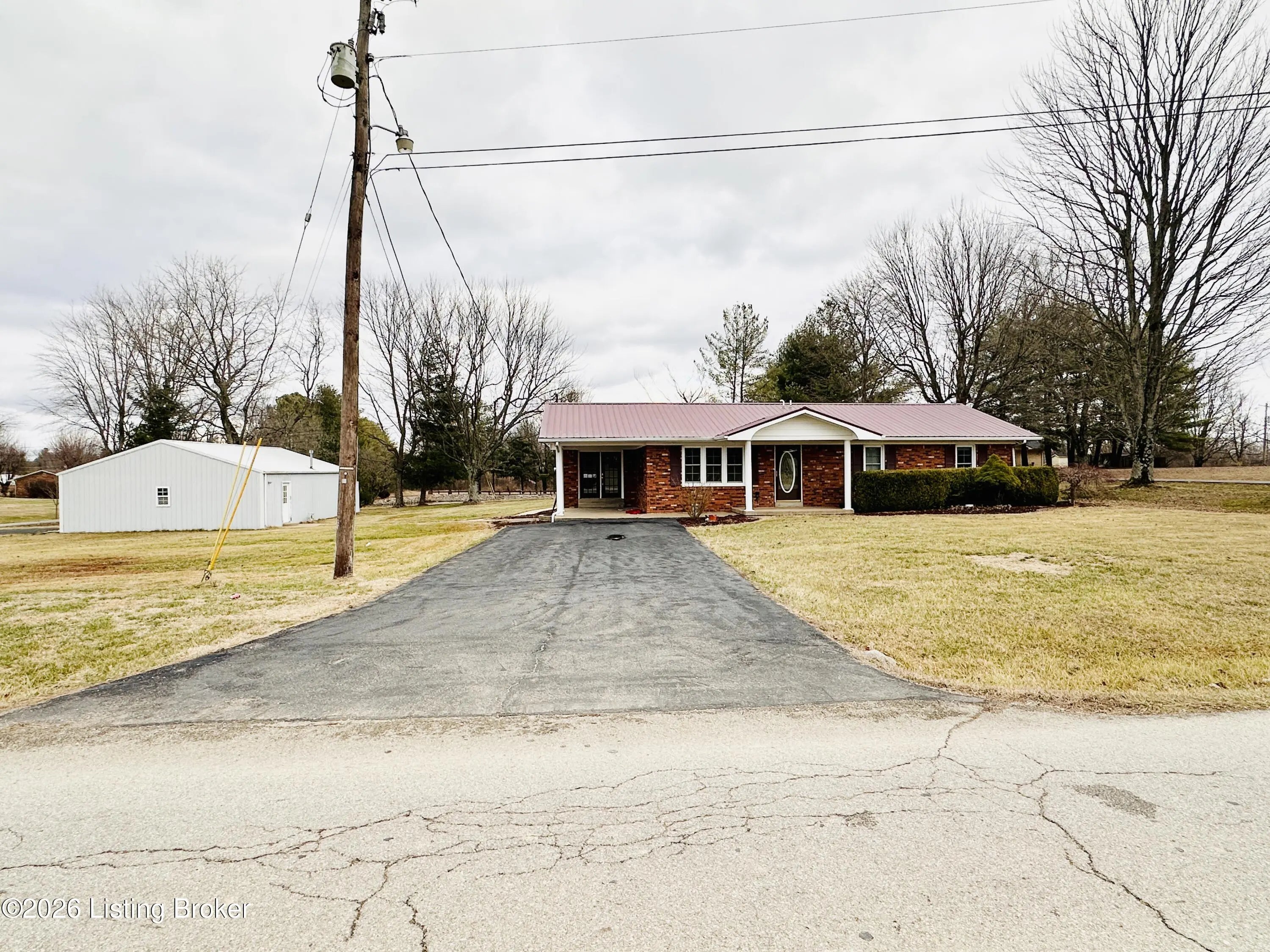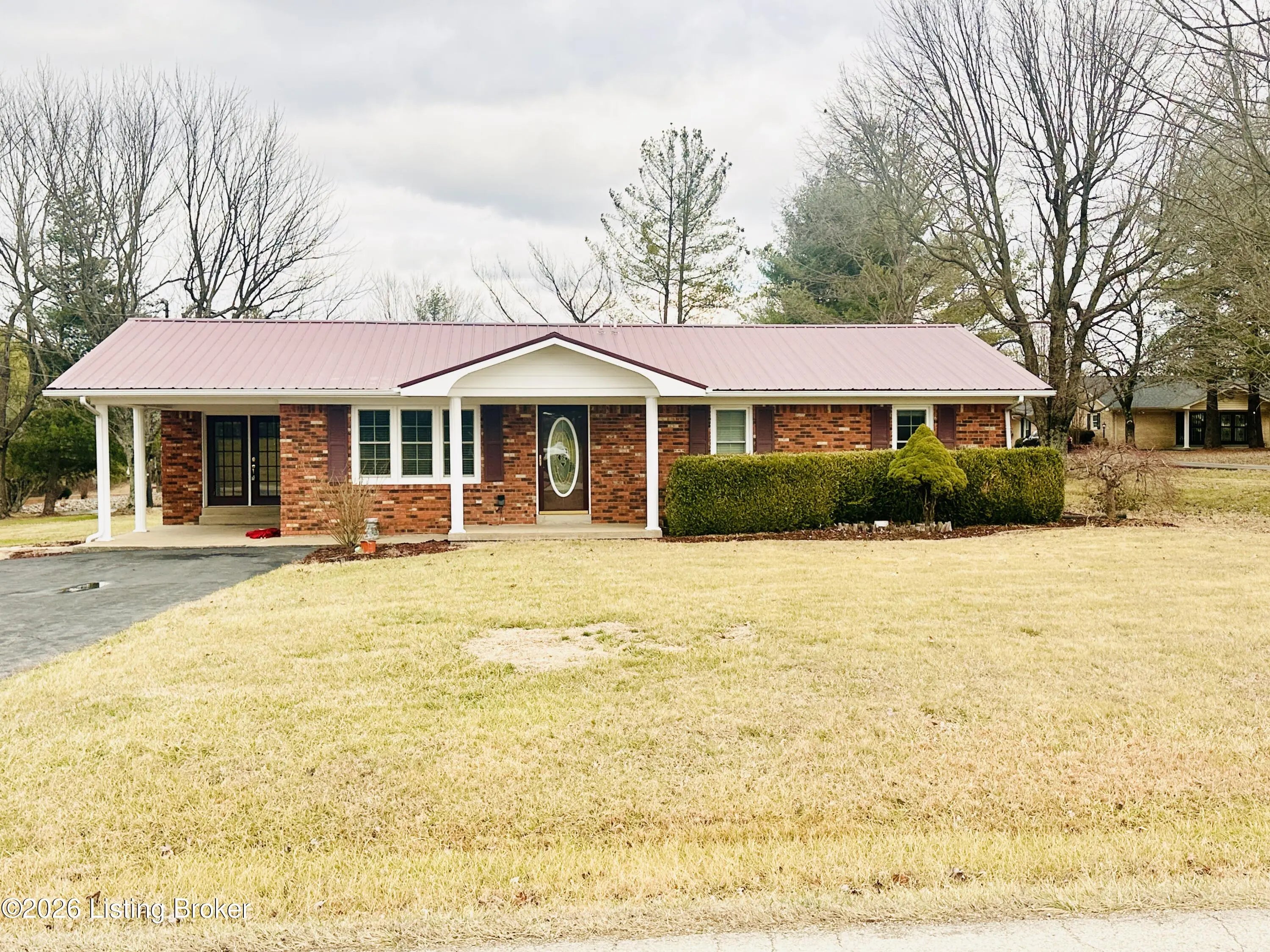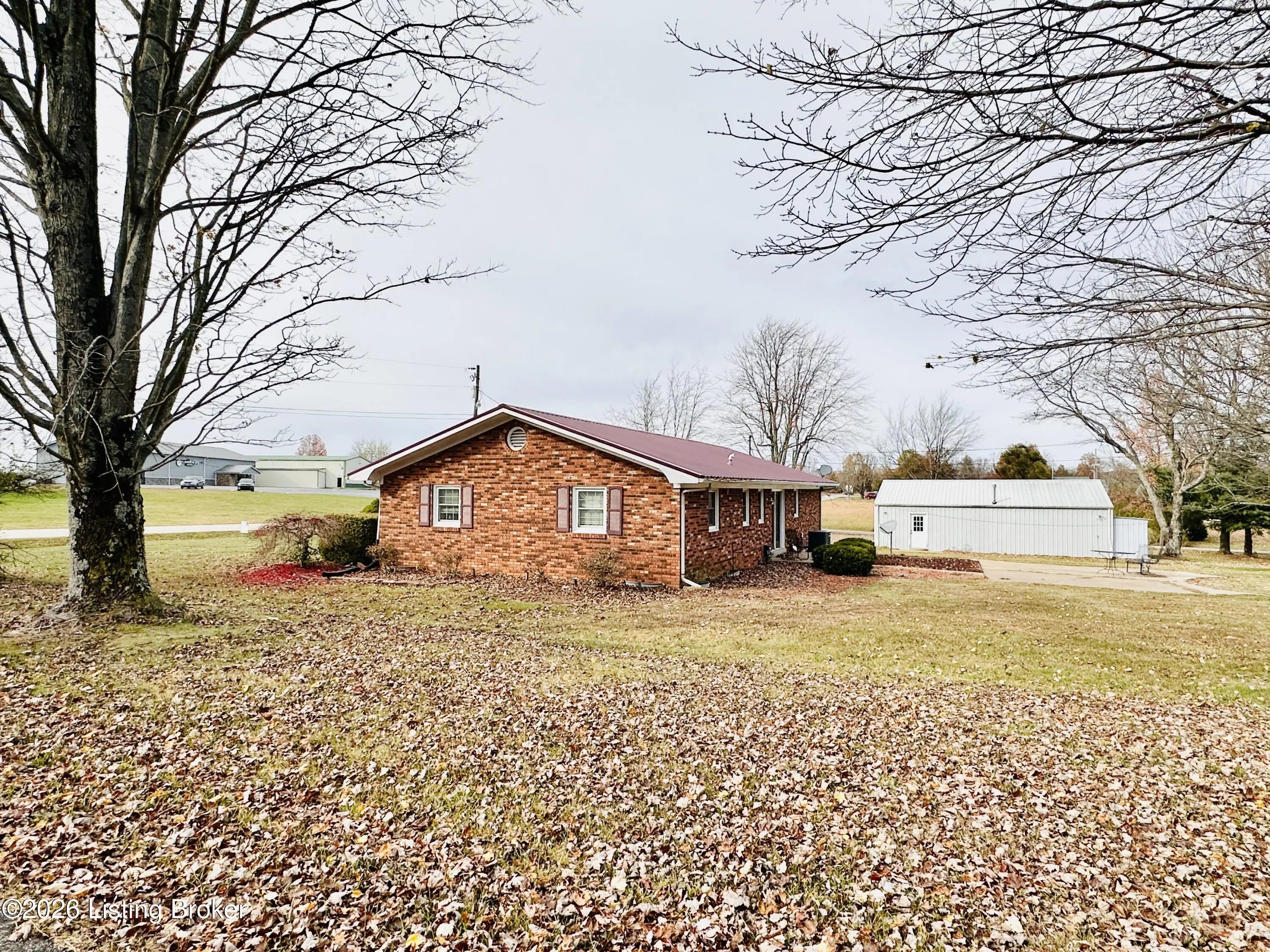 Welcome to this well-maintained 1,380± sq ft brick ranch offering comfort, space, and an unbeatable location on Schoolhouse Road in Leitchfield. This 3-bedroom, 1.5-bath property has two lots totaling approximately 0.72± acres. The primary lot (0.36± acre) features the home, while the second 0.36± acre lot includes a detached garage—providing extra space, storage, or future possibilities. Inside, you'll find a spacious living room filled with natural light from multiple windows. The large kitchen opens to the dining area, where French doors lead to the patio—perfect for relaxing or entertaining while enjoying views of the neighboring pond and peaceful scenery. Beautiful hardwood and tile floors flow throughout the home, adding warmth and timeless appeal. Convenience is key with an add additional entry off the attached carport leading into a laundry/mud room. The primary bedroom includes a private 1.5 bath, offering added comfort and functionality. Ideally located directly across from Lawler Elementary School and Grayson County High School, this property is just minutes from town amenities including shopping and restaurants. Outdoor enthusiasts will appreciate the close proximity to both Rough River Lake and Nolin Lake. This property combines location, space, and charmdon't miss the opportunity to make it yours!