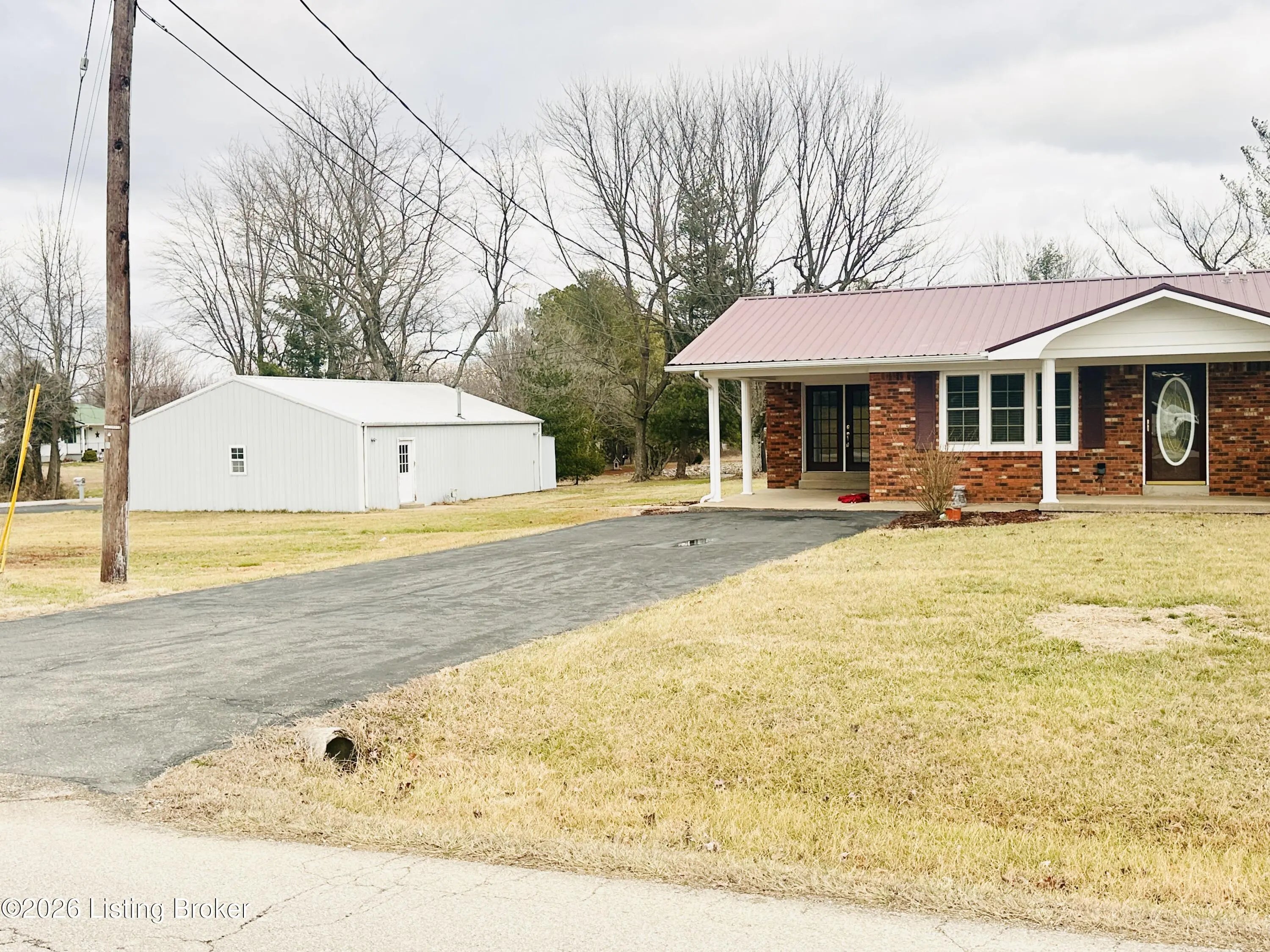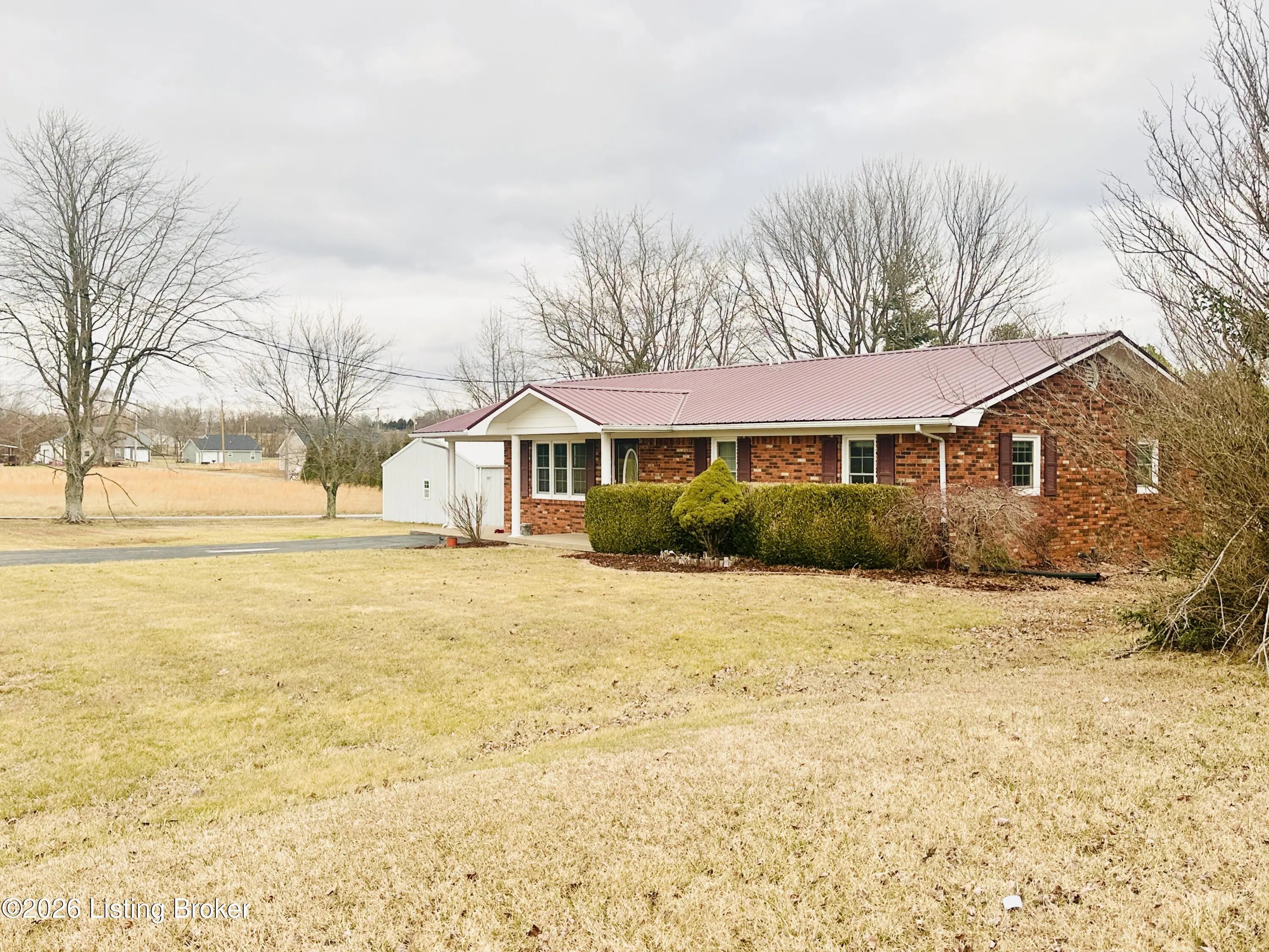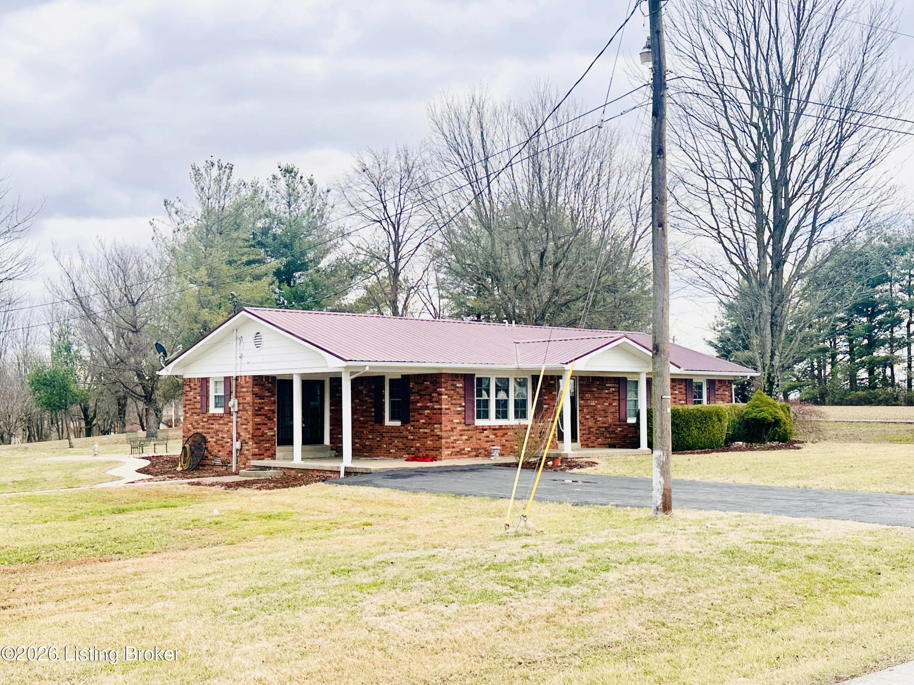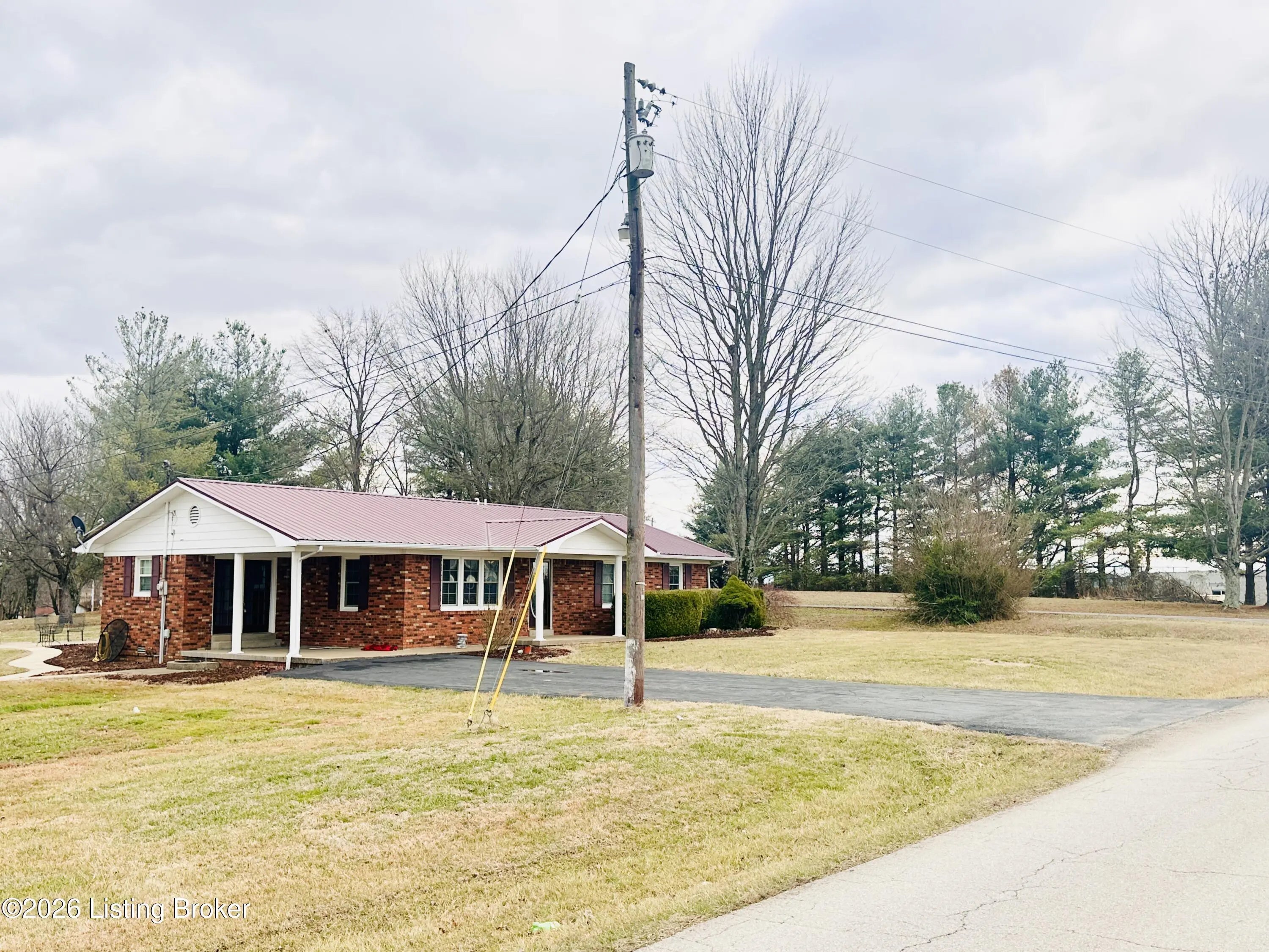 Welcome to this well-maintained 1,380± sq ft brick ranch offering comfort, space, and an unbeatable location on Schoolhouse Road in Leitchfield. This 3-bedroom, 1.5-bath property has two lots totaling approximately 0.72± acres. The primary lot (0.36± acre) features the home, while the second 0.36± acre lot includes a detached garage—providing extra space, storage, or future possibilities. Inside, you'll find a spacious living room filled with natural light from multiple windows. The large kitchen opens to the dining area, where French doors lead to the patio—perfect for relaxing or entertaining while enjoying views of the neighboring pond and peaceful scenery. Beautiful hardwood and tile floors flow throughout the home, adding warmth and timeless appeal. Convenience is key with an add additional entry off the attached carport leading into a laundry/mud room. The primary bedroom includes a private 1.5 bath, offering added comfort and functionality. Ideally located directly across from Lawler Elementary School and Grayson County High School, this property is just minutes from town amenities including shopping and restaurants. Outdoor enthusiasts will appreciate the close proximity to both Rough River Lake and Nolin Lake. This property combines location, space, and charmdon't miss the opportunity to make it yours!