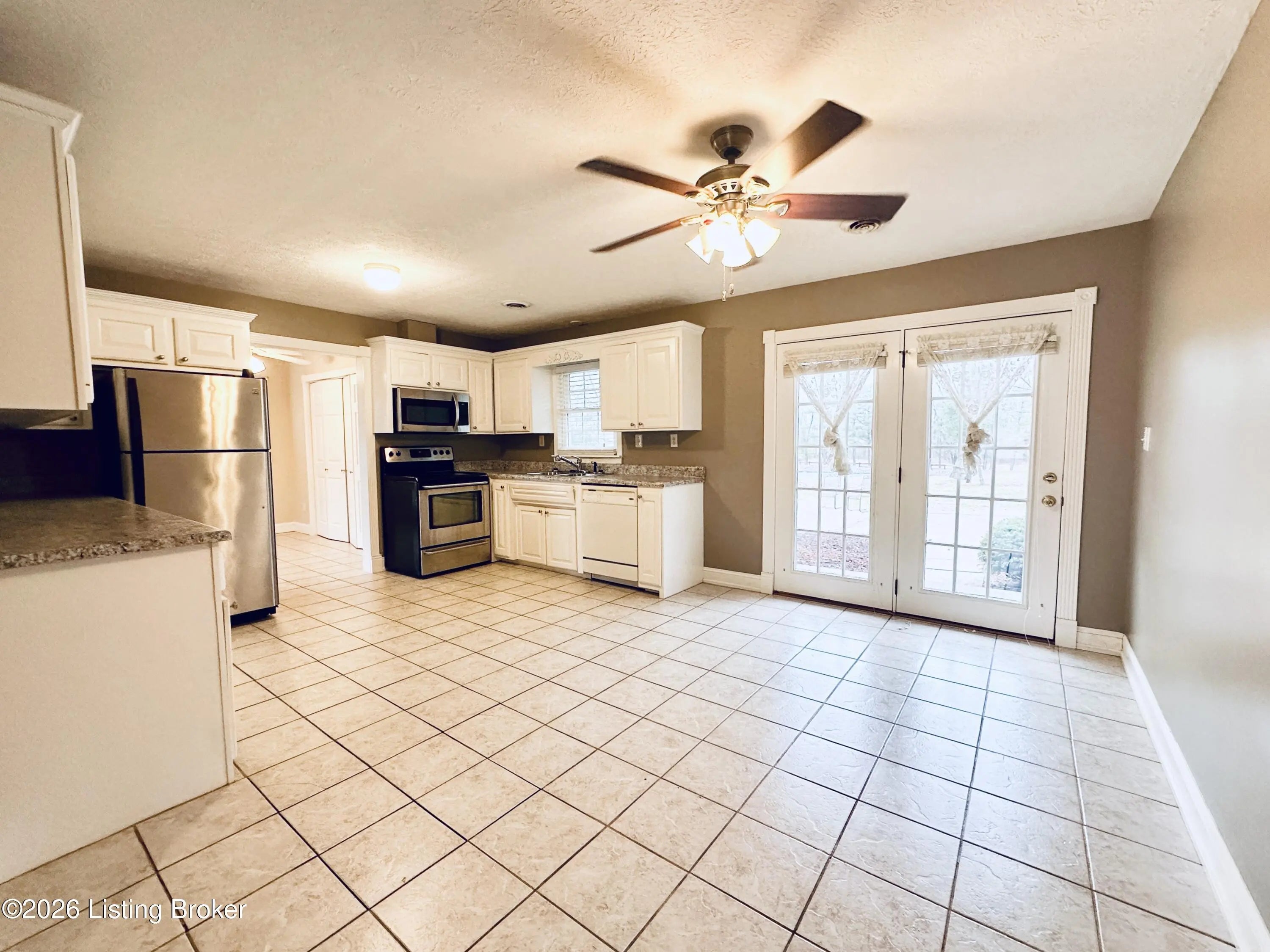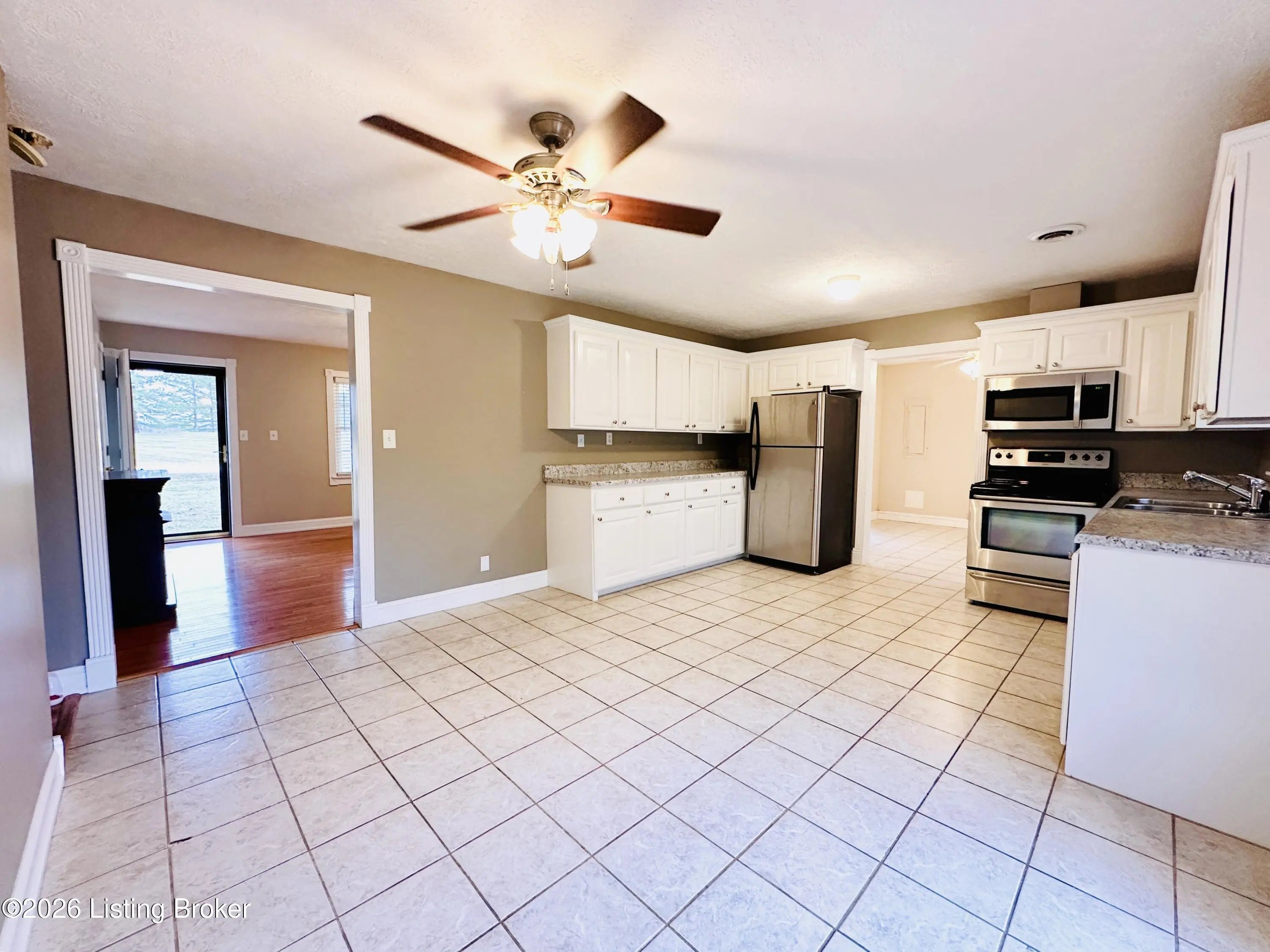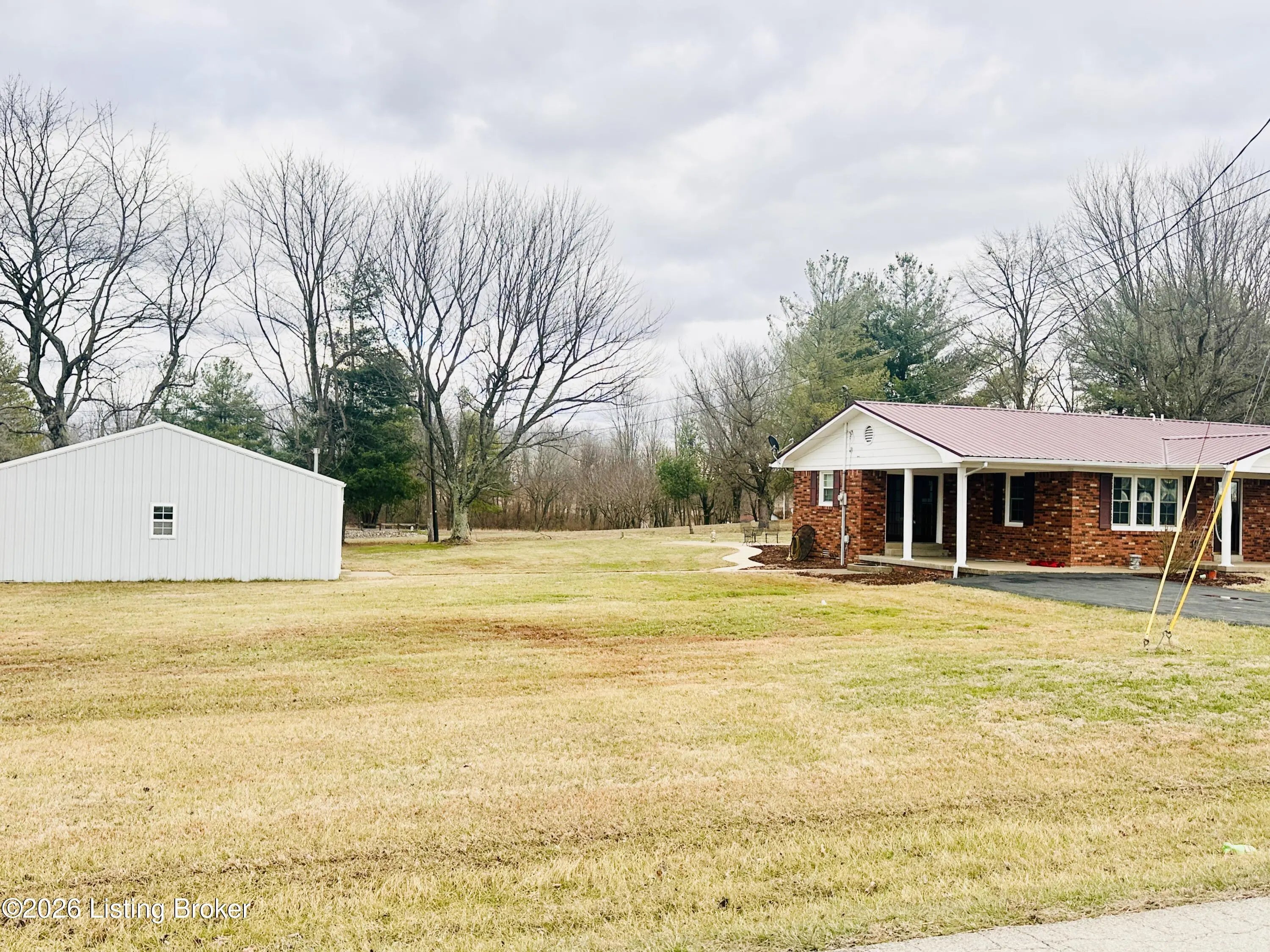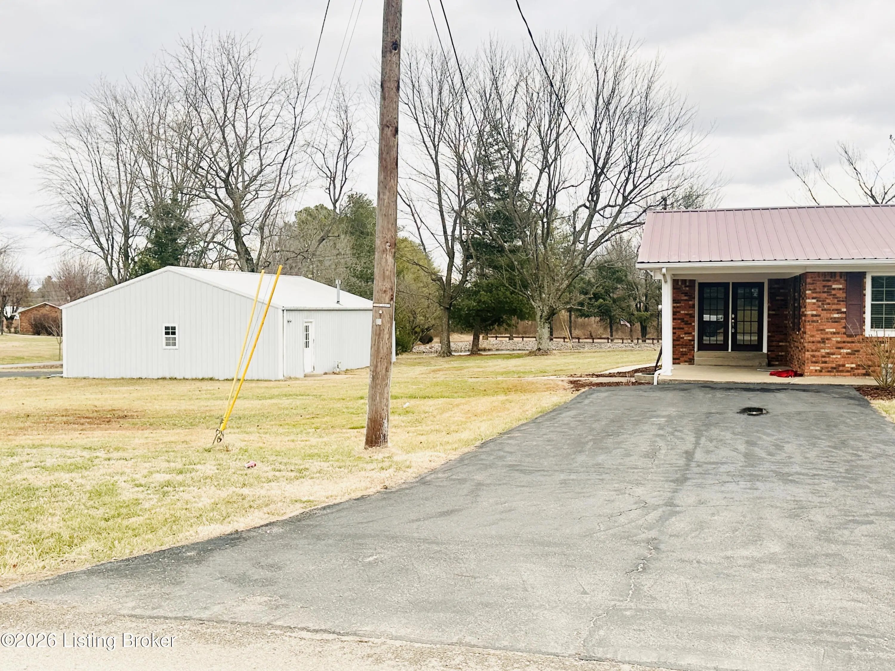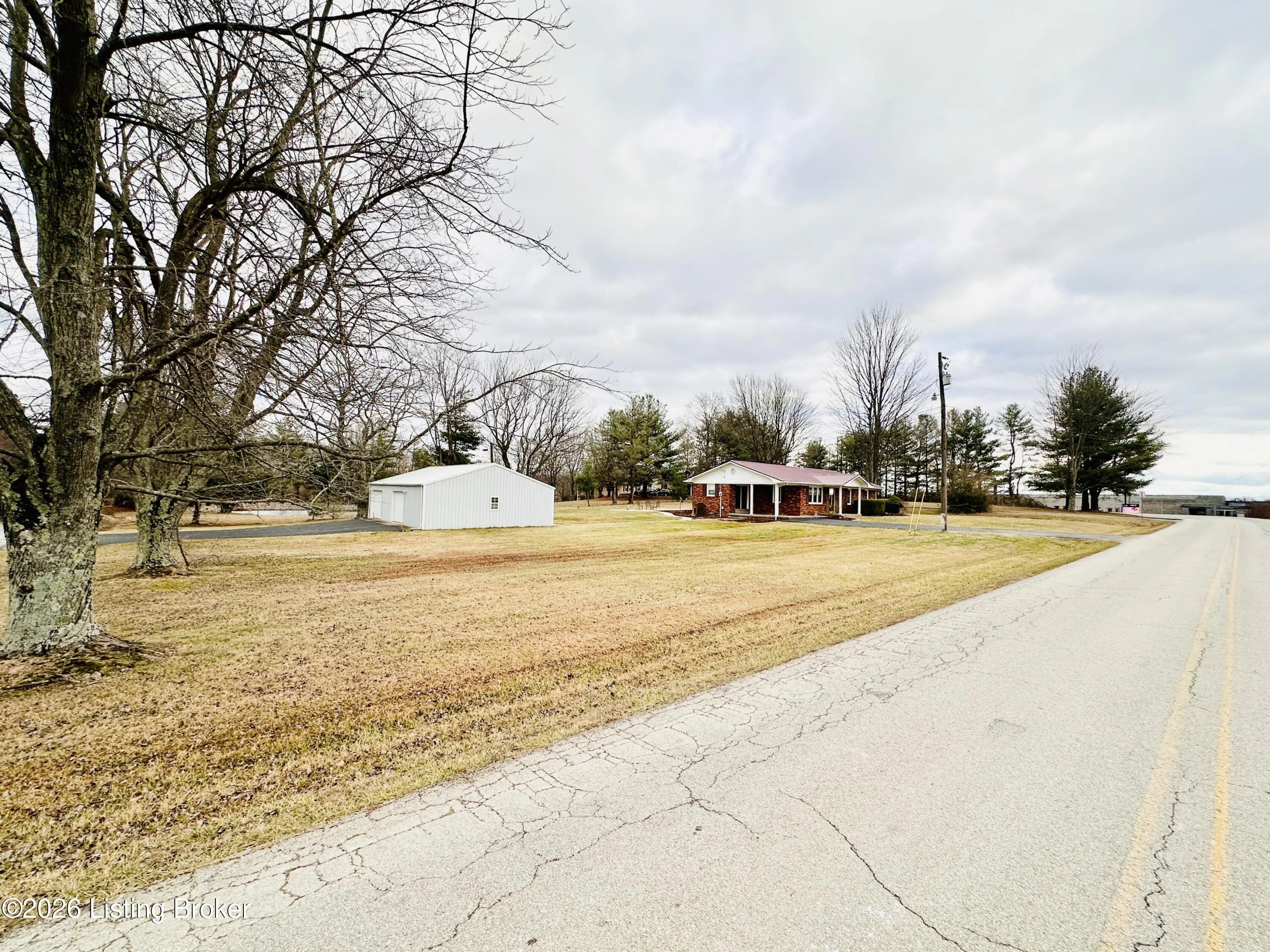 Welcome to this well-maintained 1,380± sq ft brick ranch offering comfort, space, and an unbeatable location on Schoolhouse Road in Leitchfield. This 3-bedroom, 1.5-bath property has two lots totaling approximately 0.72± acres. The primary lot (0.36± acre) features the home, while the second 0.36± acre lot includes a detached garage—providing extra space, storage, or future possibilities. Inside, you'll find a spacious living room filled with natural light from multiple windows. The large kitchen opens to the dining area, where French doors lead to the patio—perfect for relaxing or entertaining while enjoying views of the neighboring pond and peaceful scenery. Beautiful hardwood and tile floors flow throughout the home, adding warmth and timeless appeal. Convenience is key with an add additional entry off the attached carport leading into a laundry/mud room. The primary bedroom includes a private 1.5 bath, offering added comfort and functionality. Ideally located directly across from Lawler Elementary School and Grayson County High School, this property is just minutes from town amenities including shopping and restaurants. Outdoor enthusiasts will appreciate the close proximity to both Rough River Lake and Nolin Lake. This property combines location, space, and charmdon't miss the opportunity to make it yours!