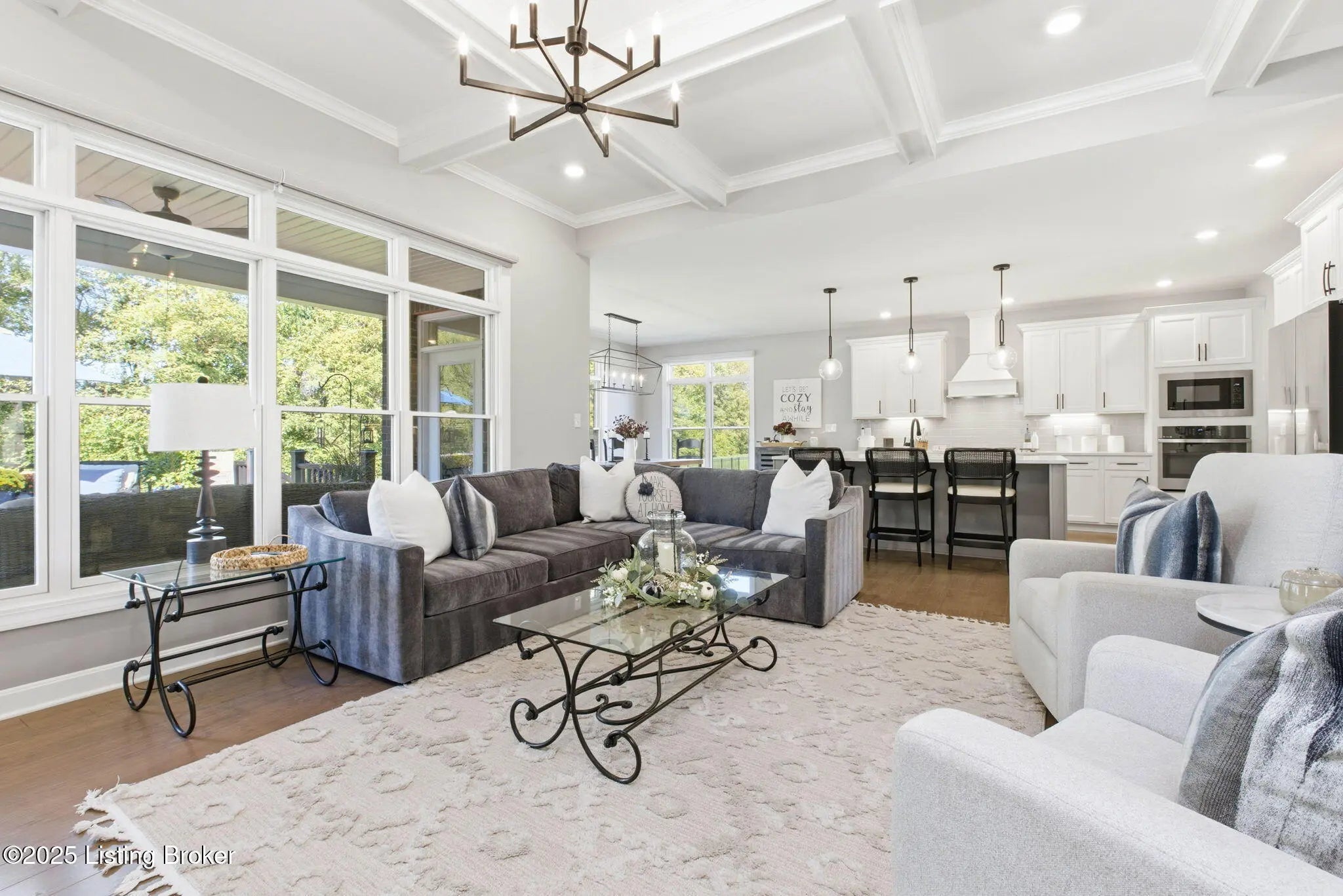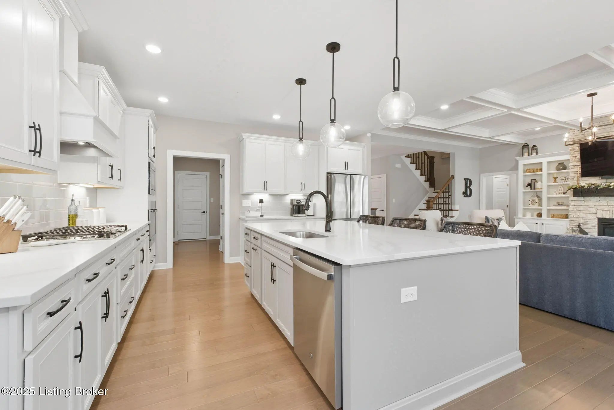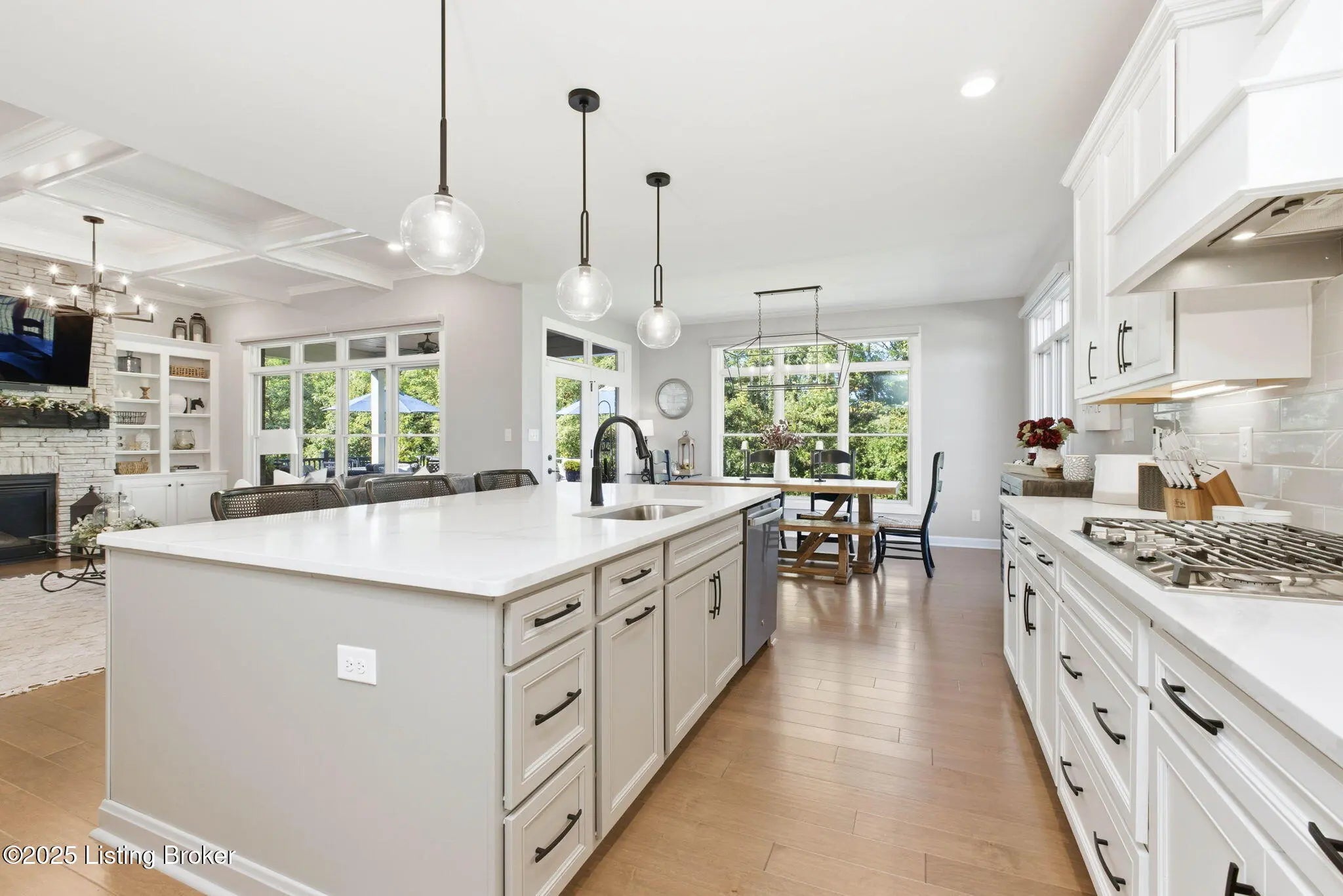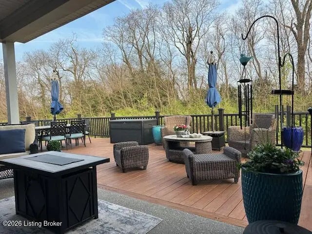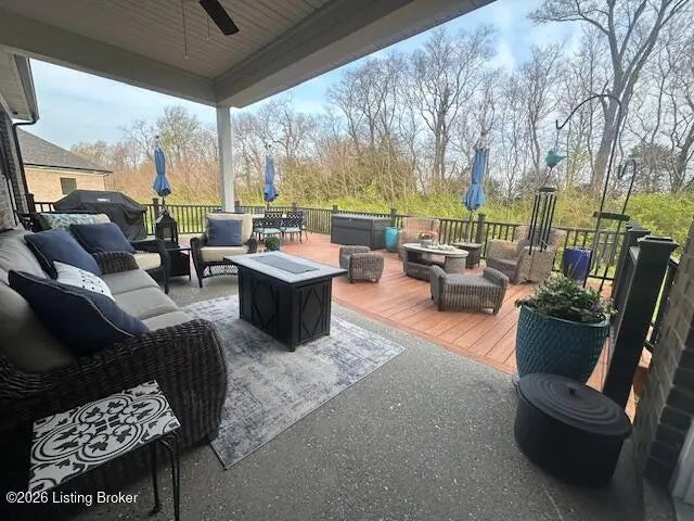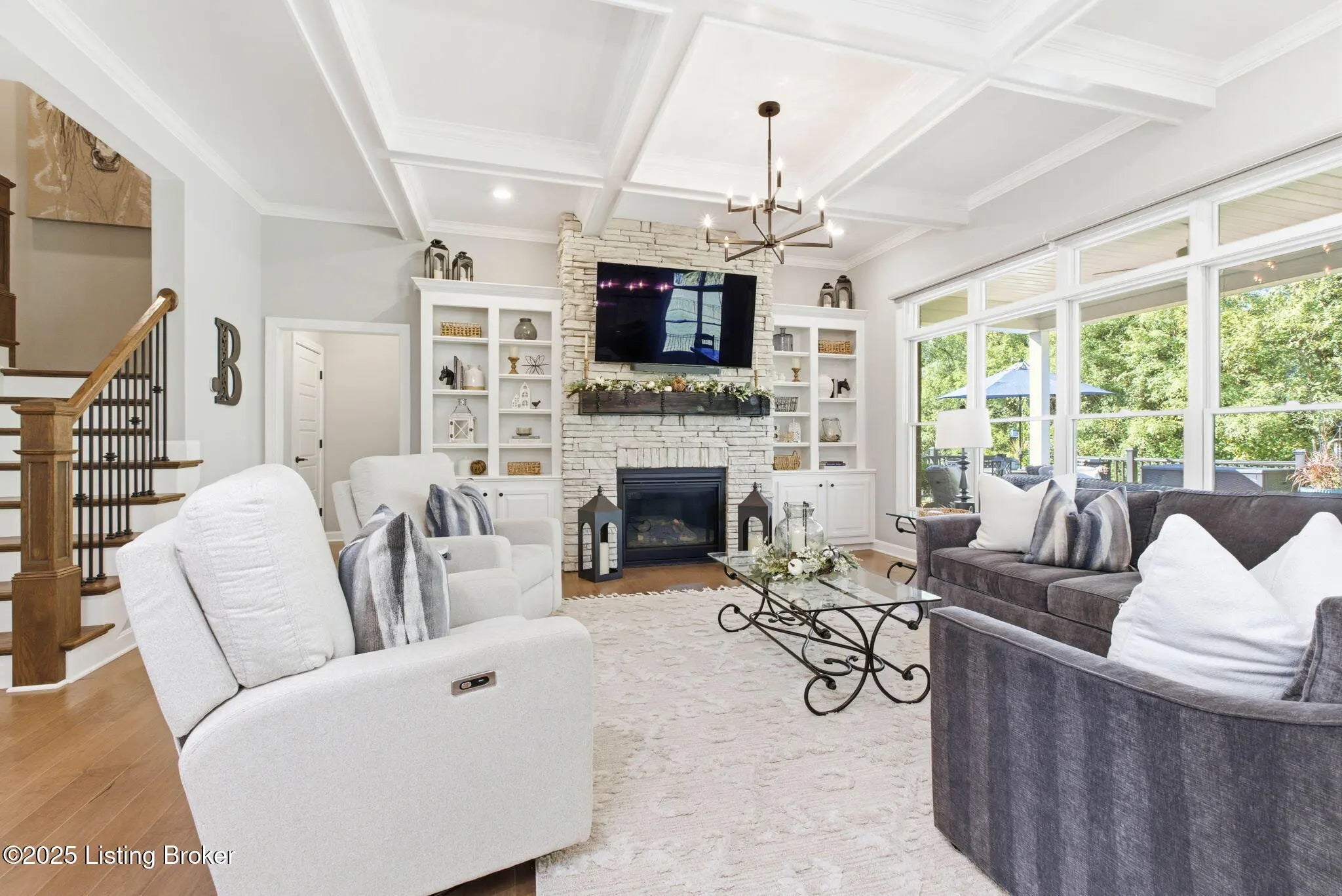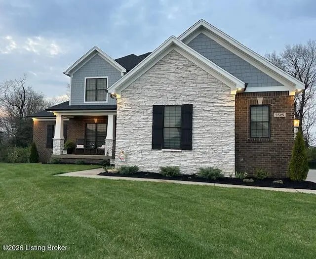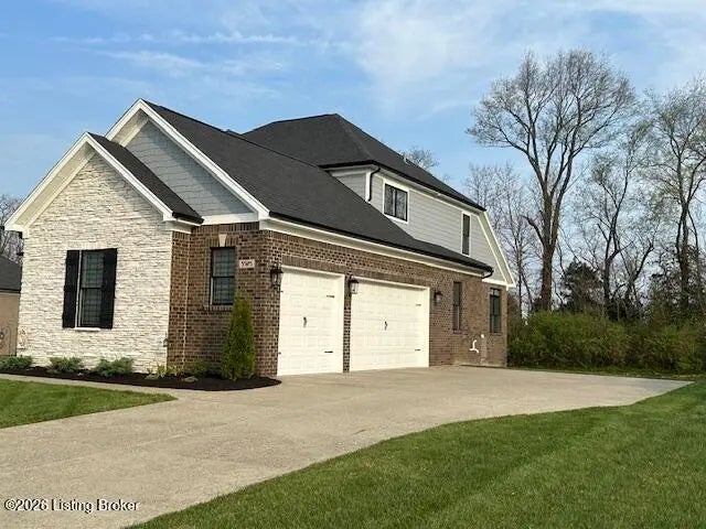 You'll fall in love with 5525 Ruby Falls Drive, ideally situated in the highly sought-after neighborhood of Sanctuary Falls, in Prospect, KY, and within walking distance to Norton Commons shops and restaurants. This newly built residence offers five bedrooms and four-and-a-half baths, thoughtfully designed to balance modern sophistication with timeless elegance. The high-end finishes and a well-conceived open floor plan create an inviting setting for both daily living and entertaining. The great room stands as a striking centerpiece, showcasing floor-to-ceiling stone fireplace, coffered ceiling, and custom-built bookcases, all framed by expansive picture windows with remote controlled custom blinds that overlook the serene treelined backyard. The refined kitchen is both functional and stylish, equipped with premium appliances, sleek cabinetry, and a spacious island that seamlessly connects to the dining and living areas. The finished lower level provides modern versatility, including a fifth bedroom, additional full bath, and a large gathering room -- ideal for holidays, family fun nights and guests. The expansive covered patio and custom-built deck offer a private, tranquil outdoor sanctuary, ideal for both entertaining and quiet relaxation amid picturesque natural surroundings. Notable features include a three-car garage, with custom flooring, an expansive yard well-suited for a pool or additional patio and landscaping, as well as thoughtful designer finishes throughout the residence. Convenient location and within the award-winning Oldham County School District, this distinguished property presents a rare opportunity to enjoy luxury living, combined with convenience and an exceptional lifestyle.