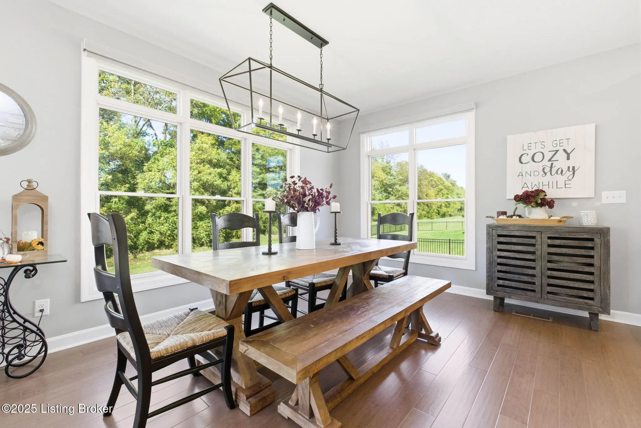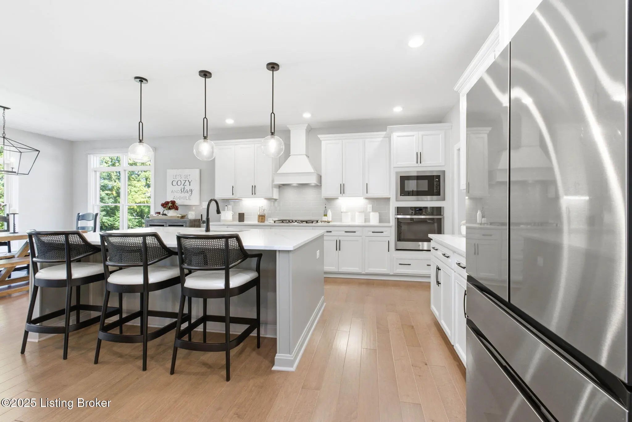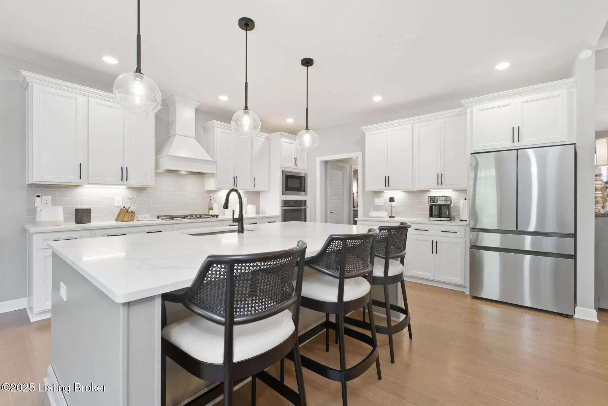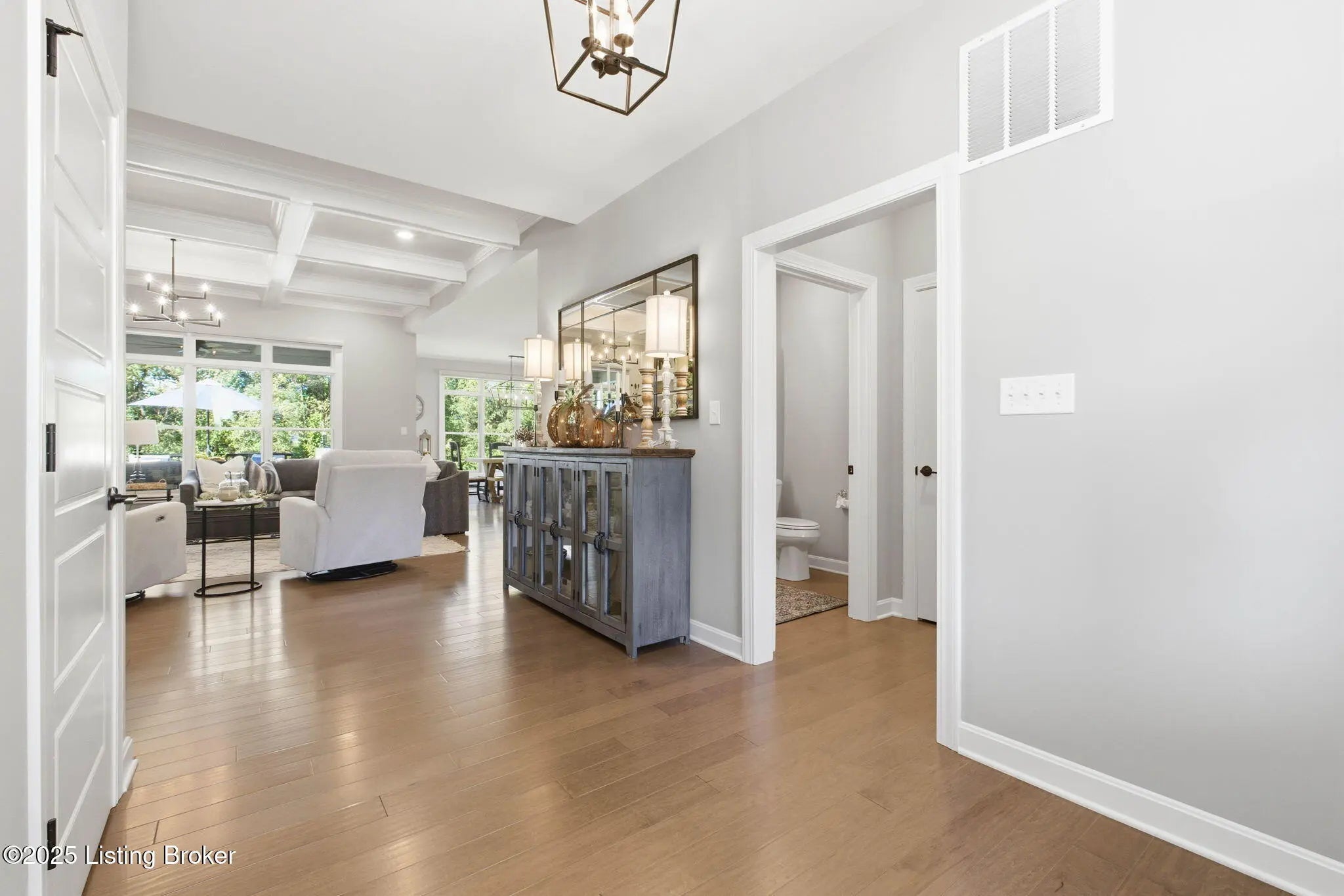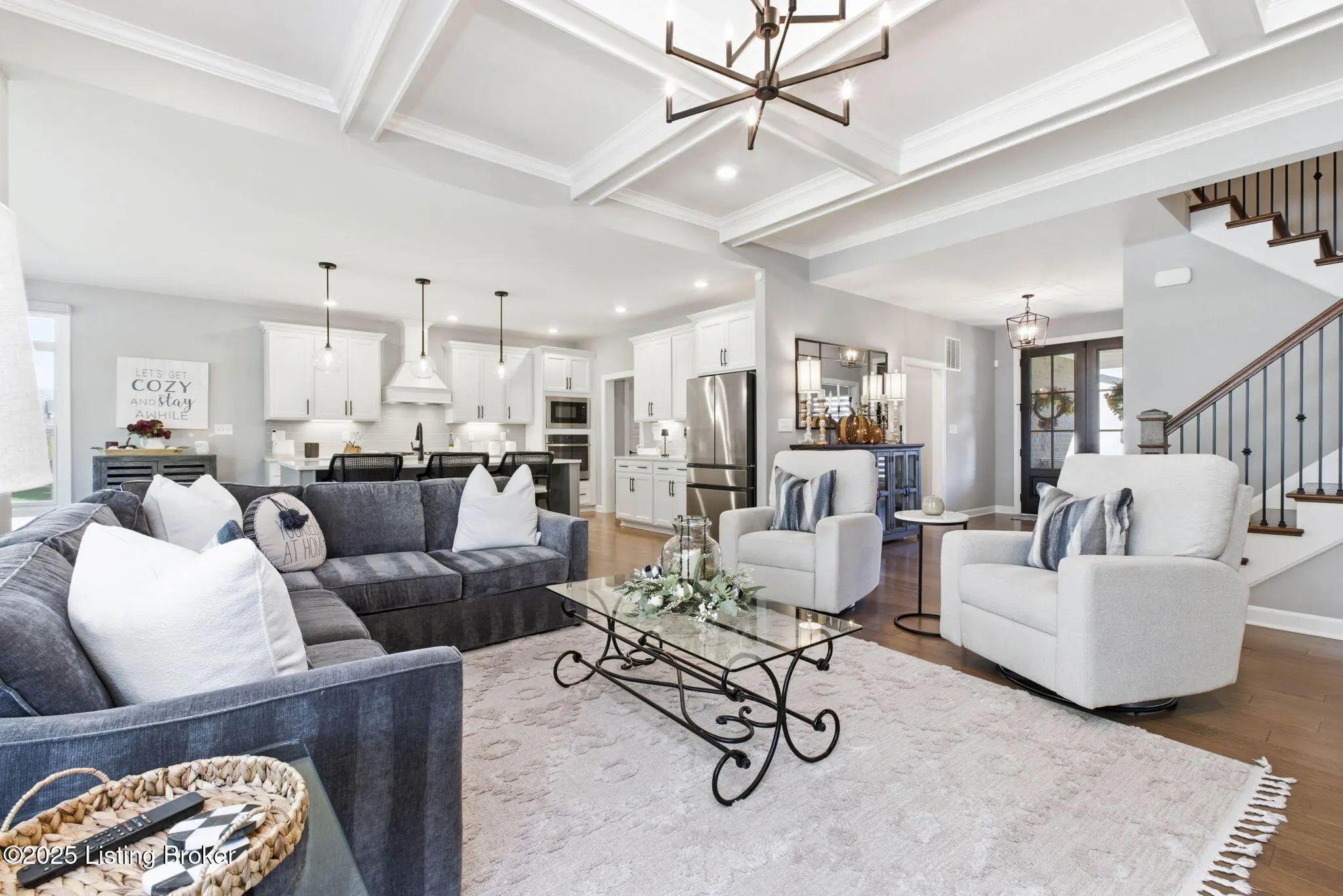 You'll fall in love with 5525 Ruby Falls Drive, ideally situated in the highly sought-after neighborhood of Sanctuary Falls, in Prospect, KY, and within walking distance to Norton Commons shops and restaurants. This newly built residence offers five bedrooms and four-and-a-half baths, thoughtfully designed to balance modern sophistication with timeless elegance. The high-end finishes and a well-conceived open floor plan create an inviting setting for both daily living and entertaining. The great room stands as a striking centerpiece, showcasing floor-to-ceiling stone fireplace, coffered ceiling, and custom-built bookcases, all framed by expansive picture windows with remote controlled custom blinds that overlook the serene treelined backyard. The refined kitchen is both functional and stylish, equipped with premium appliances, sleek cabinetry, and a spacious island that seamlessly connects to the dining and living areas. The finished lower level provides modern versatility, including a fifth bedroom, additional full bath, and a large gathering room -- ideal for holidays, family fun nights and guests. The expansive covered patio and custom-built deck offer a private, tranquil outdoor sanctuary, ideal for both entertaining and quiet relaxation amid picturesque natural surroundings. Notable features include a three-car garage, with custom flooring, an expansive yard well-suited for a pool or additional patio and landscaping, as well as thoughtful designer finishes throughout the residence. Convenient location and within the award-winning Oldham County School District, this distinguished property presents a rare opportunity to enjoy luxury living, combined with convenience and an exceptional lifestyle.