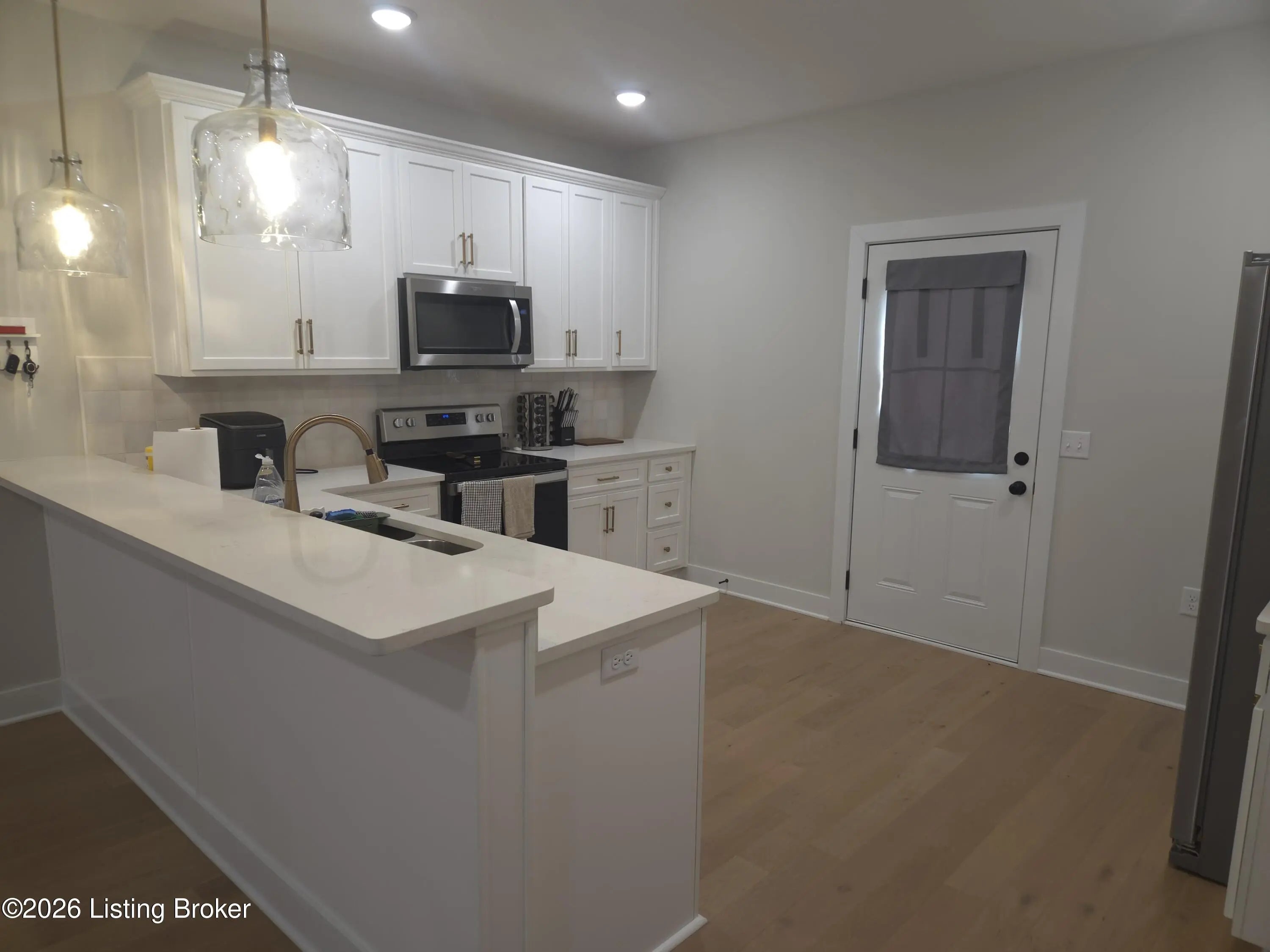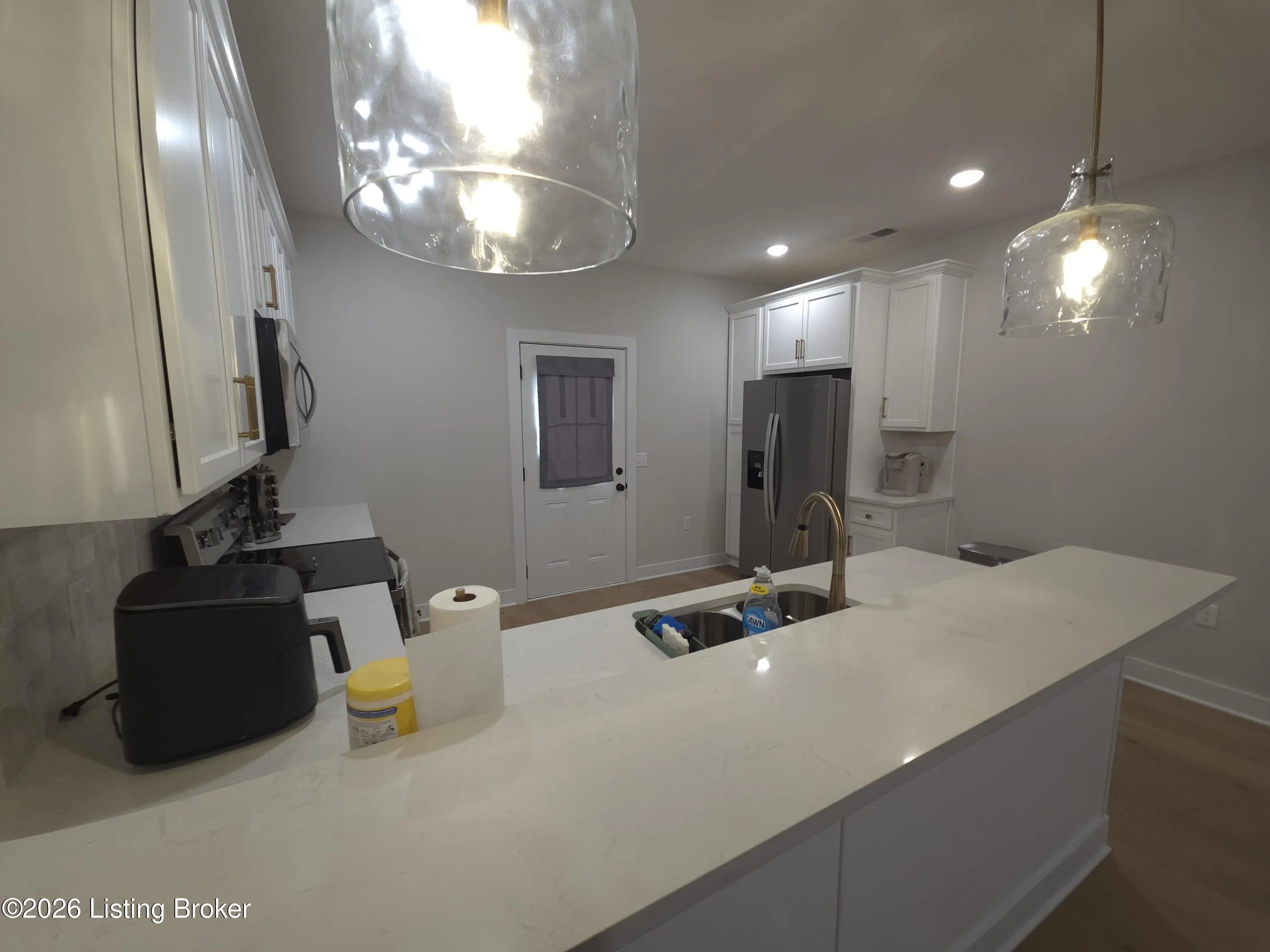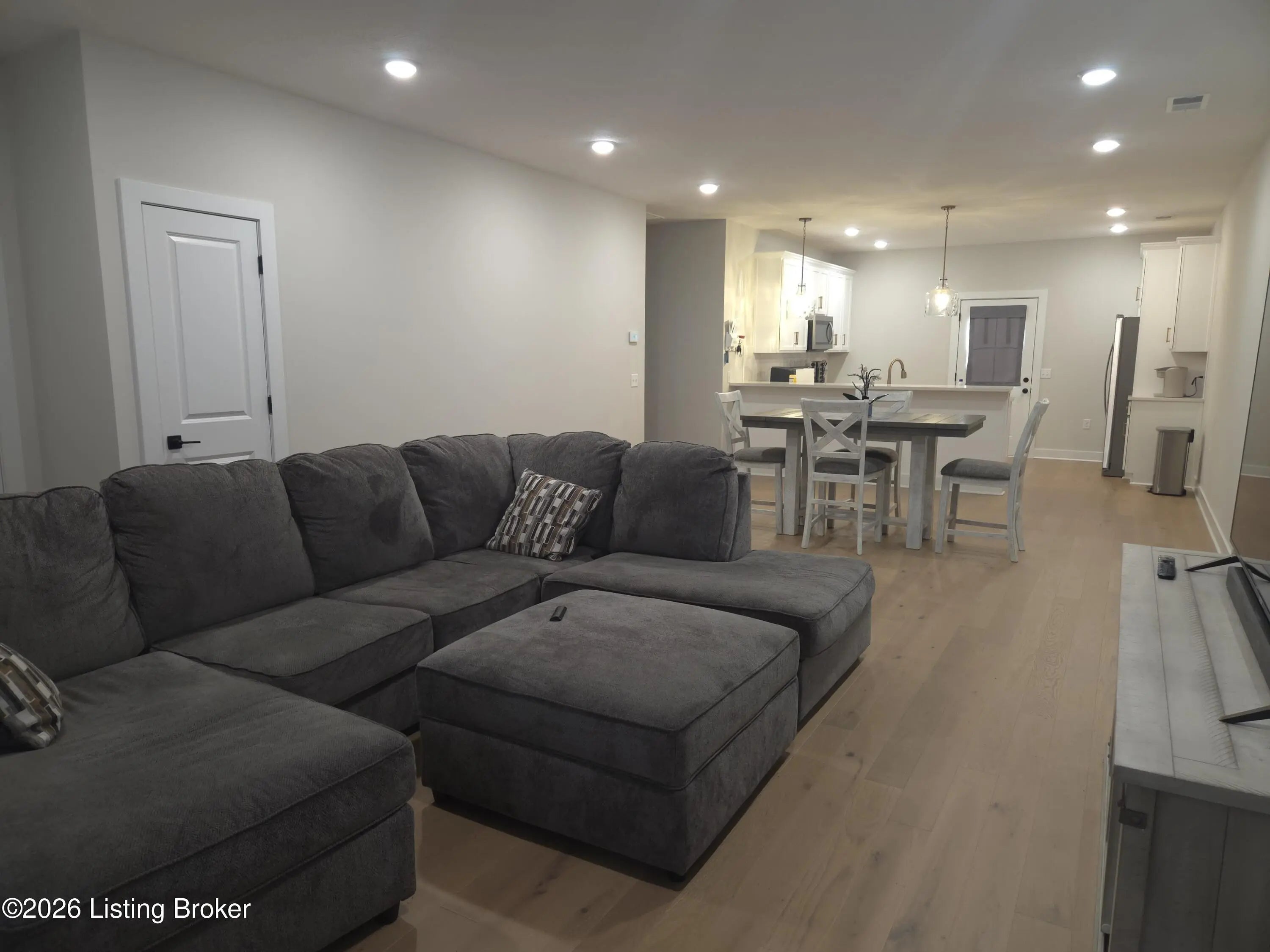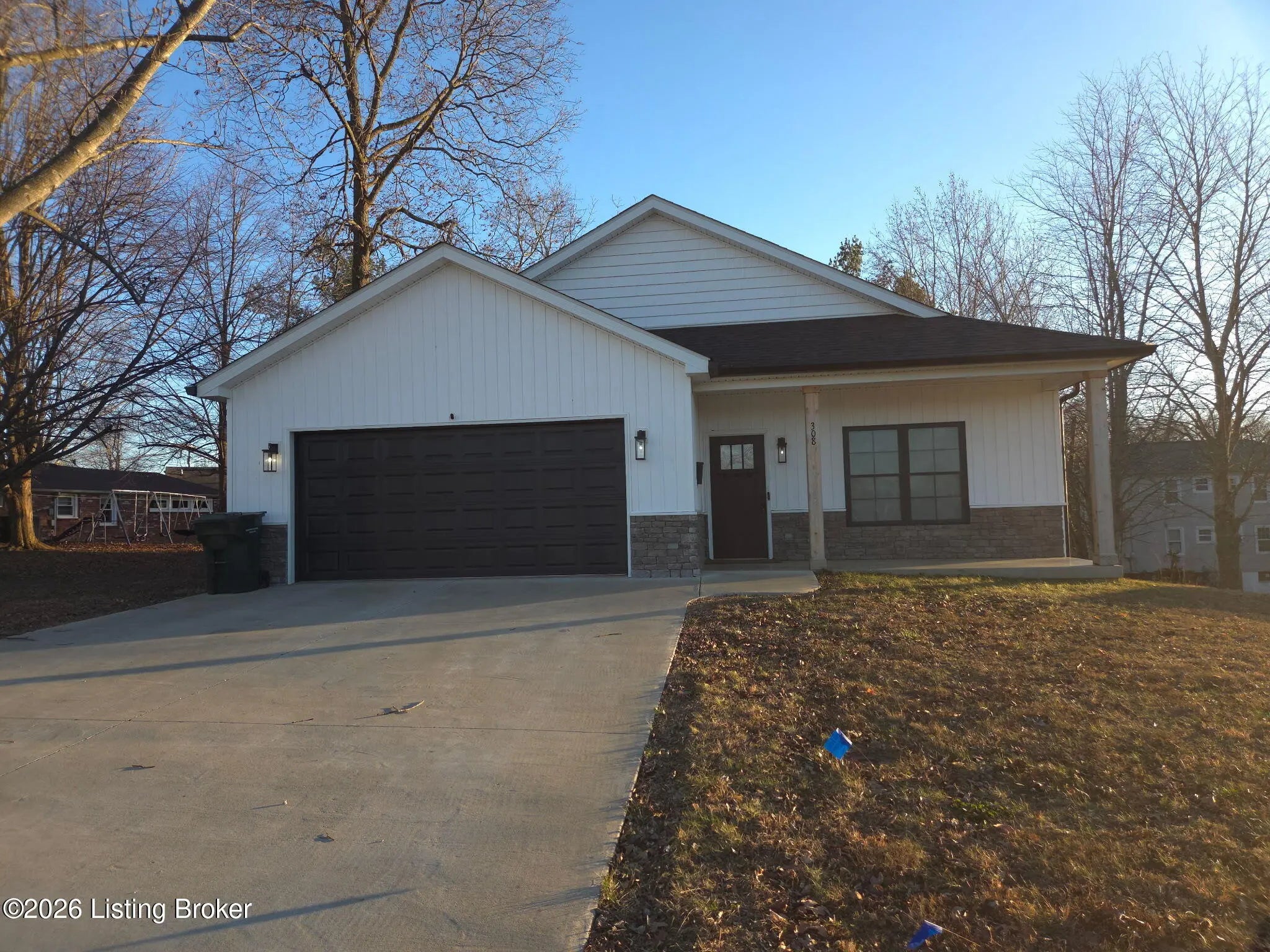 Welcome home to this well-maintained ranch in the quiet City of Vine Grove. Built just 2 years ago, this home offers peace of mind with nearly new mechanicals and modern finishes. Features 3 bedrooms, 2 full baths, and 1,440 sq ft of functional living space. The open living and dining area includes recessed lighting and a bar connecting to the kitchen, perfect for entertaining. The kitchen offers quartz countertops, soft-close cabinets and drawers, and stainless steel appliances. Both bathrooms feature quartz countertops. All bedrooms have carpet and ceiling fans; the primary fits a king-size suite and includes a 4x7 walk-in closet. Enjoy the covered front porch, 12x12 deck, laundry closet, and attached 2-car garage with epoxy floor. Blinds and curtain rods stay (curtains do not convey).