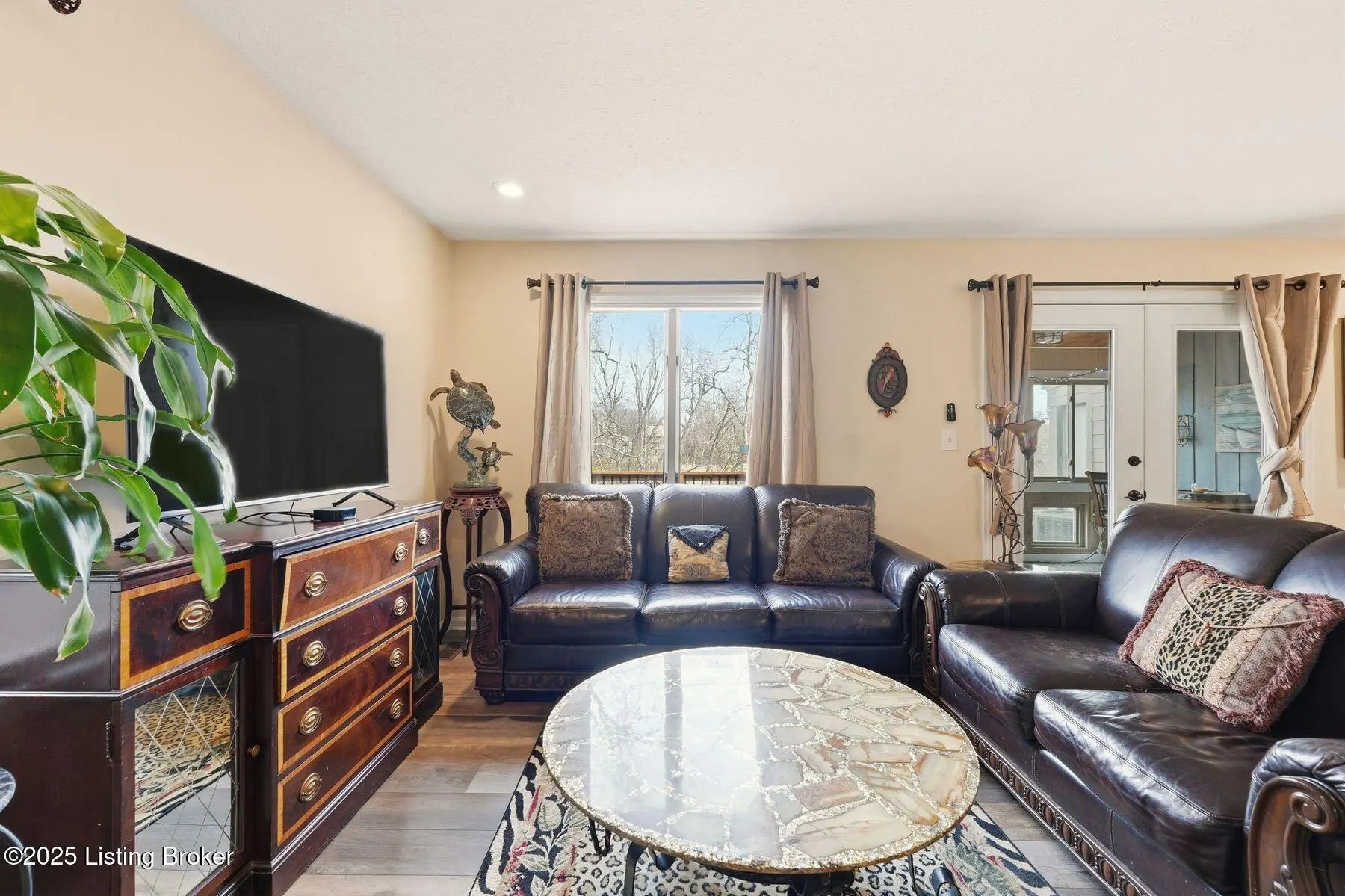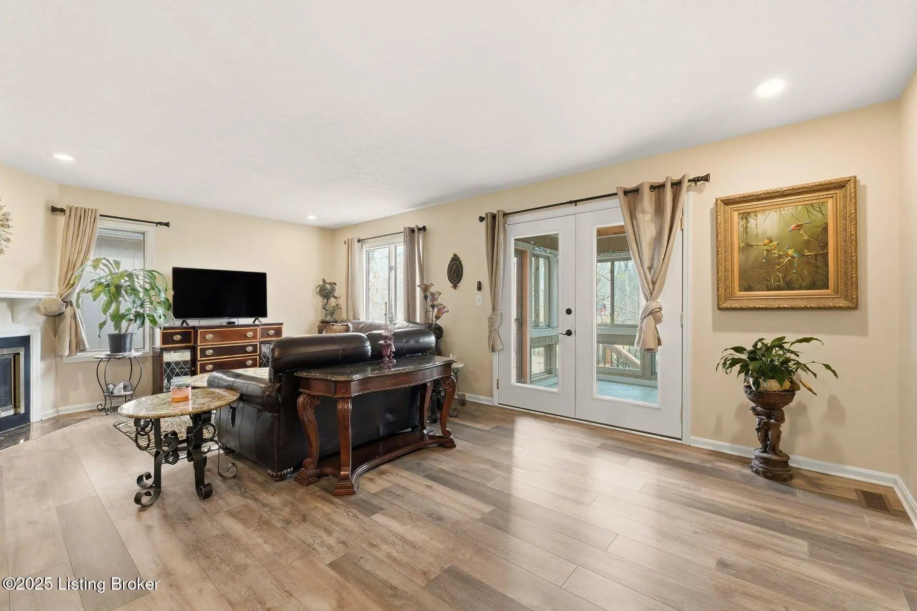 Experience the best of creekside living in one of Prospect's most coveted communities. This beautifully updated ranch in The Harbor at Harrods Creek blends modern comfort with a true waterfront lifestyle, complete with a marina, pool, clubhouse, and effortless access to the river. Step inside to a bright, open layout designed for both everyday living and easy entertaining. The updated kitchen impresses with cherry finish cabinetry, under-cabinet lighting, quartz countertops, a full appliance suite, and a stylish pass-through with seating. Just beyond, the seller's custom Vail-style four season sunroom invites you to unwind while overlooking the peaceful creek—your own year-round retreat. The split-bedroom design ensures privacy, and the spacious primary suite features a remodeled walk-in closet with barn doors and its own private patio. Wood-look luxury vinyl flooring flows throughout both levels, and the first floor family room's wood-burning fireplace adds warmth and charm. The lower level adds incredible versatility with a second family room, a flex room ideal for an office or guest space, and an unfinished area previously used as a craft room with added lighting and a TV. An excellent area for your hobby of choice. Outside, the seller enclosed the space beneath the deck, creating a convenient spot to store seasonal furnishings, décor and gardening tools. Also, insulation was added underneath the deck for improved comfort. Enjoy a covered front porch, direct-entry one-car garage, laundry hookups on both levels, and a new deck positioned to take in the water views. And when the river calls, simply bring your kayak and launch from the marina for an afternoon on Harrods Creek. All of this is just minutes from iconic waterfront dining favorites like Captain's Quarters, Cunninghams, and River House. The City of Prospect offers a variety of shopping opportunities as well as additional restaurants. All the wonderful amenities make the location as appealing as the home itself. Thoughtfully updated, beautifully maintained, and ideally situated6515 Marina Drive delivers the effortless, low-maintenance waterfront lifestyle you've been waiting for.