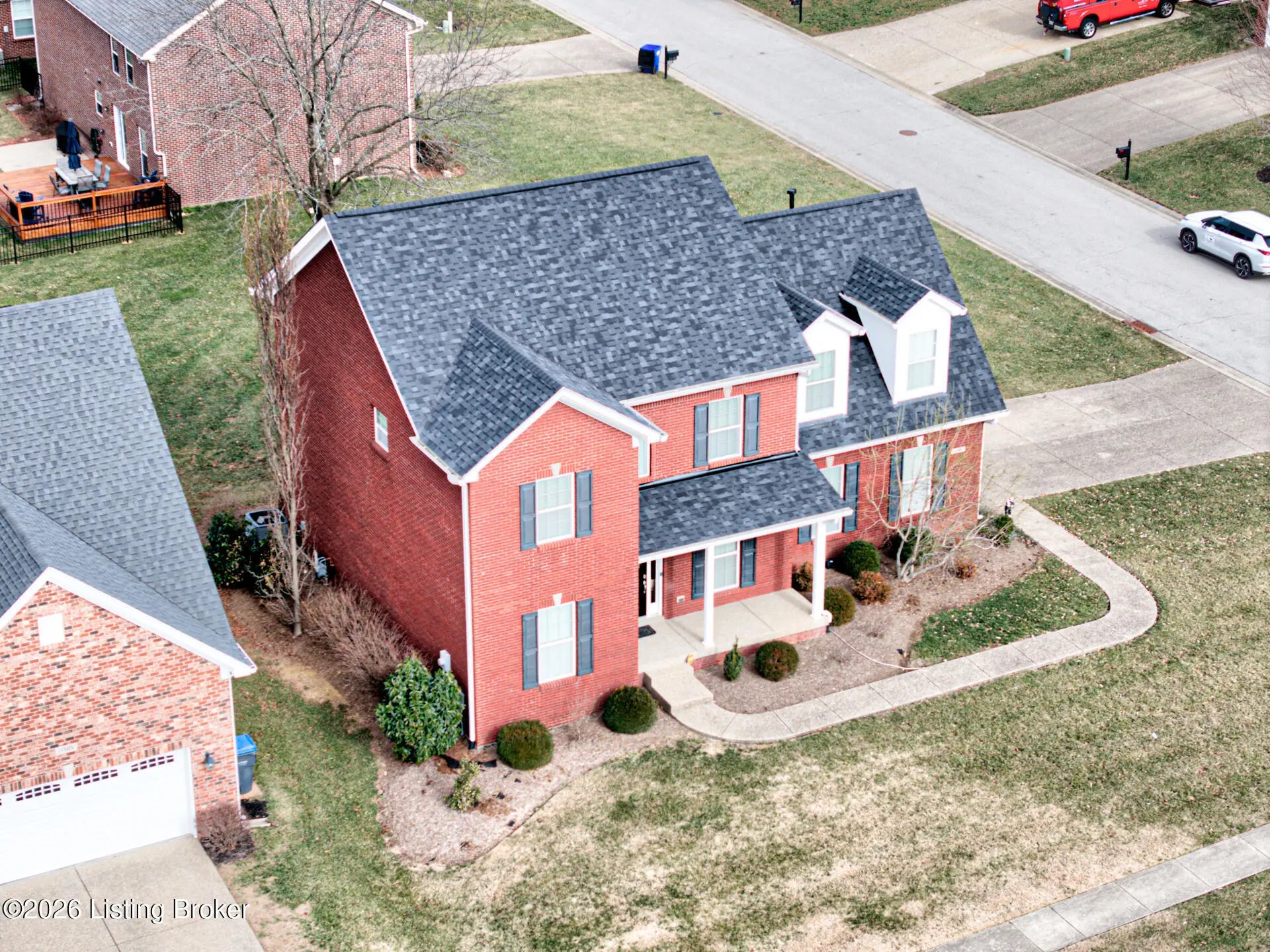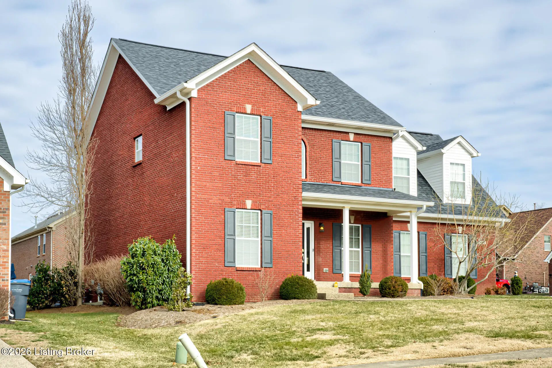 Welcome to 11507 Willow Branch, a rare opportunity to own in the Willow Springs neighborhood. This impressive 4-bedroom, 2.5-bath two-story home is beautifully situated on a corner lot at the end of a quiet dead-end street and court, offering an expansive yard and striking curb appeal. Step onto the covered front porch and into a welcoming foyer accented by graceful arched doorways. The first floor is thoughtfully designed with a versatile flex room ideal for a home office or sitting room, a spacious family room filled with natural light, and a formal dining room perfect for hosting memorable gatherings. The eat-in kitchen shines with updated granite countertops, a classic tile backsplash, stainless steel appliances, and an open flow into the family room for effortless everyday living and entertaining. Upstairs, you'll find three generously sized guest bedrooms, each with ample closet space, and a well-appointed full bath. The oversized room over the garage is a standout feature, highlighted by charming dormers that create the perfect reading nook, study area, or bonus retreat. The expansive primary suite offers a true escape, complete with a luxurious bath and an impressive walk-in closet. The unfinished basement is roughed in for a full bath and provides exceptional potential for future living space, a home gym, or additional storage. A new roof and updated mechanicals offer peace of mind. All of this is complemented by a convenient location just minutes from major freeways and close to schools, shopping, and everyday conveniences. Seller is a licensed real estate agent in the state of KY.