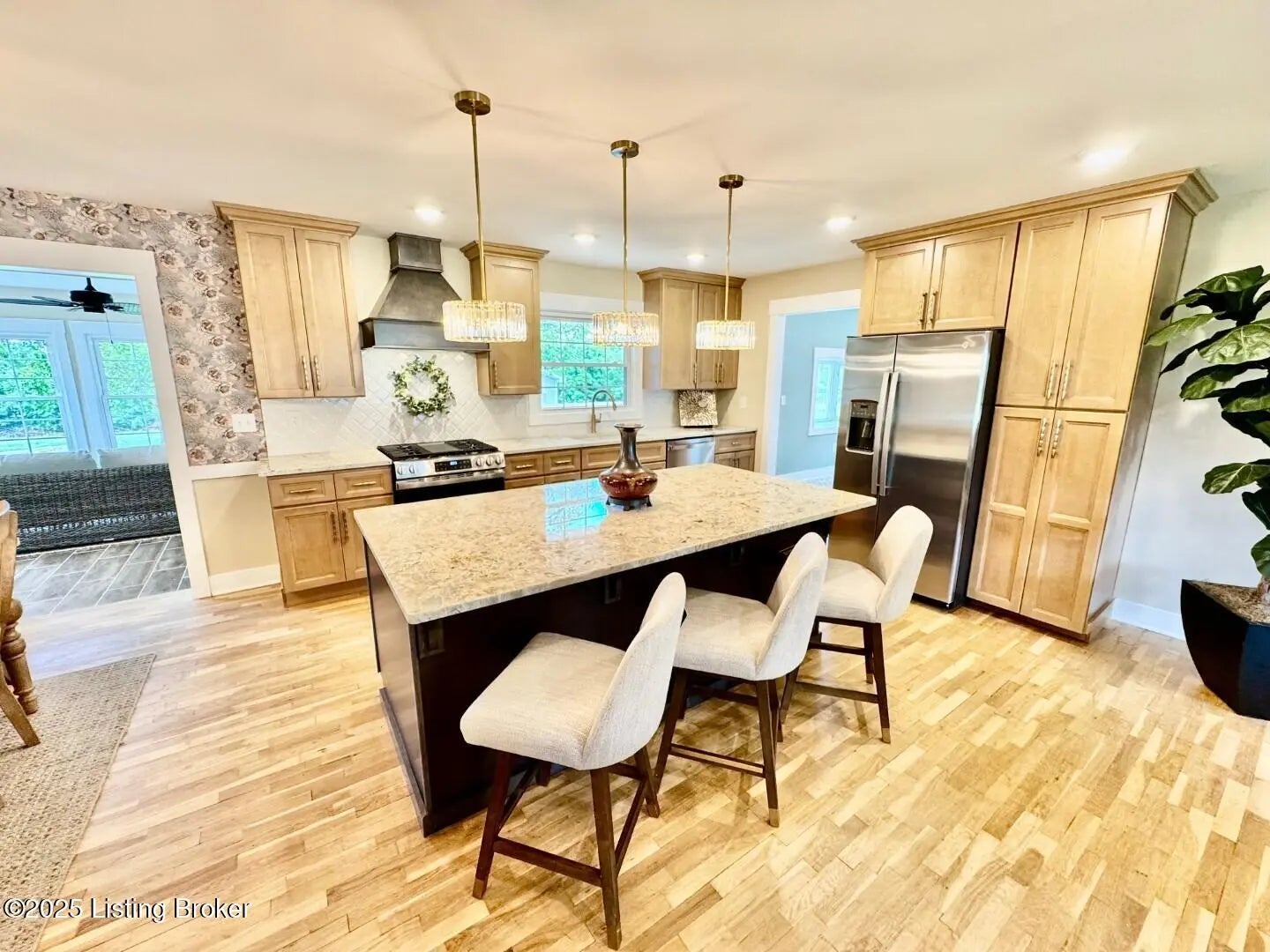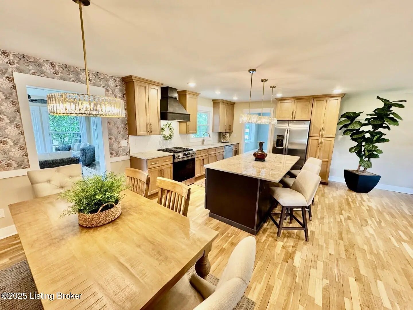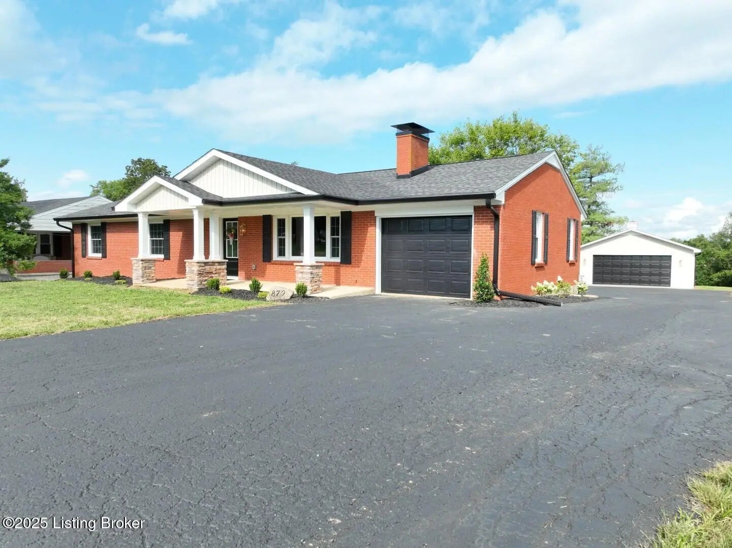 This tastefully renovated home looks like something straight out of Southern Living magazine. It's a prime example of modern style seamlessly blended with the original, quality-built structure of the home. The welcoming living room opens into the kitchen, which features stone countertops throughout including on the large island with an overhang - perfect for barstools, quick lunches, or after-school snacks. The kitchen also includes a gas stove with a custom wood hood, ample custom cabinetry, and a dining area that comfortably seats six. The sunroom offers stunning views of the rear of the property and opens to the new deck area. A separate laundry/mudroom—accessed from the deck—comes complete with a brand-new washer and dryer and leads directly into the attached one-car garage. Down the hall from the living room, you'll find two spare bedrooms with double-door closets and a full bathroom featuring striking wall sconces. The spacious primary bedroom includes a walk-in closet with built-in shelving and a luxurious en suite bathroom with a custom glass shower. Outside, you'll love the newly added front porch with plenty of space for furniture. The property also includes a detached two-car garage! This home is an outstanding investment in comfort, value, and quality of life!