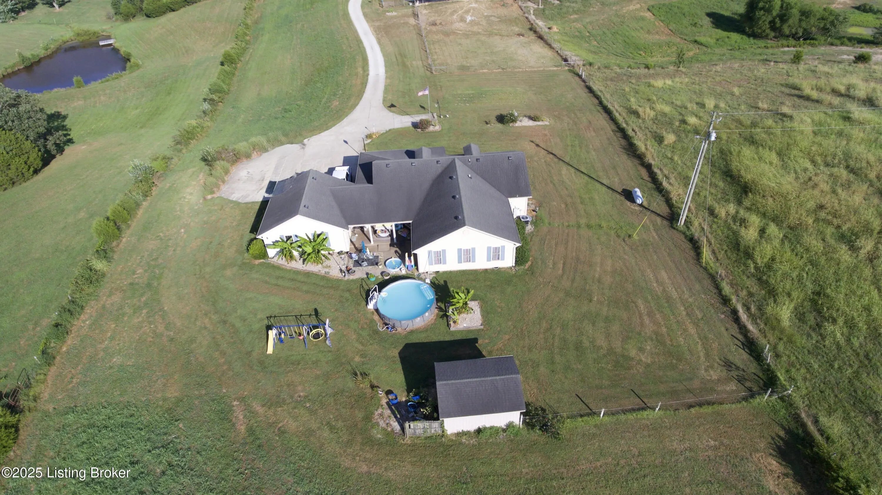 Nestled on an expansive 10.41 acres, this exceptional mini farm is the perfect blend of rustic charm and modern convenience. Enclosed with meticulous fencing and cross-fencing, the property promises both security and privacy. At its center stands a stunning brick home, featuring an inviting covered front porch and a serene back patio ideal for relaxation or entertaining. Inside, the home boasts four spacious bedrooms and two and a half bathrooms, with recently updated flooring that complements its timeless allure. Beyond the residence, two remarkable outbuildings enhance the property's functionality: large livestock barn with hayloft and a vast 8,300 sqft metal pole barn, complete with an office and tack room, all equipped with water and electric. This mini farm is not just a place to live, it's a lifestyle choice, offering rural tranquility with modern amenities. Truly a must-see to fully appreciate its beauty and potential. All offers are subject to 48hr first-right-of-refusal.