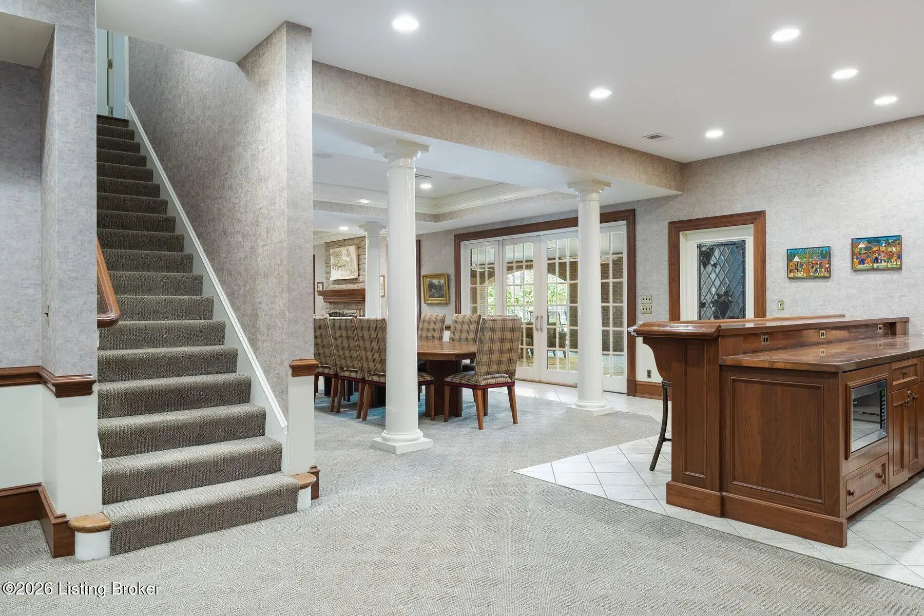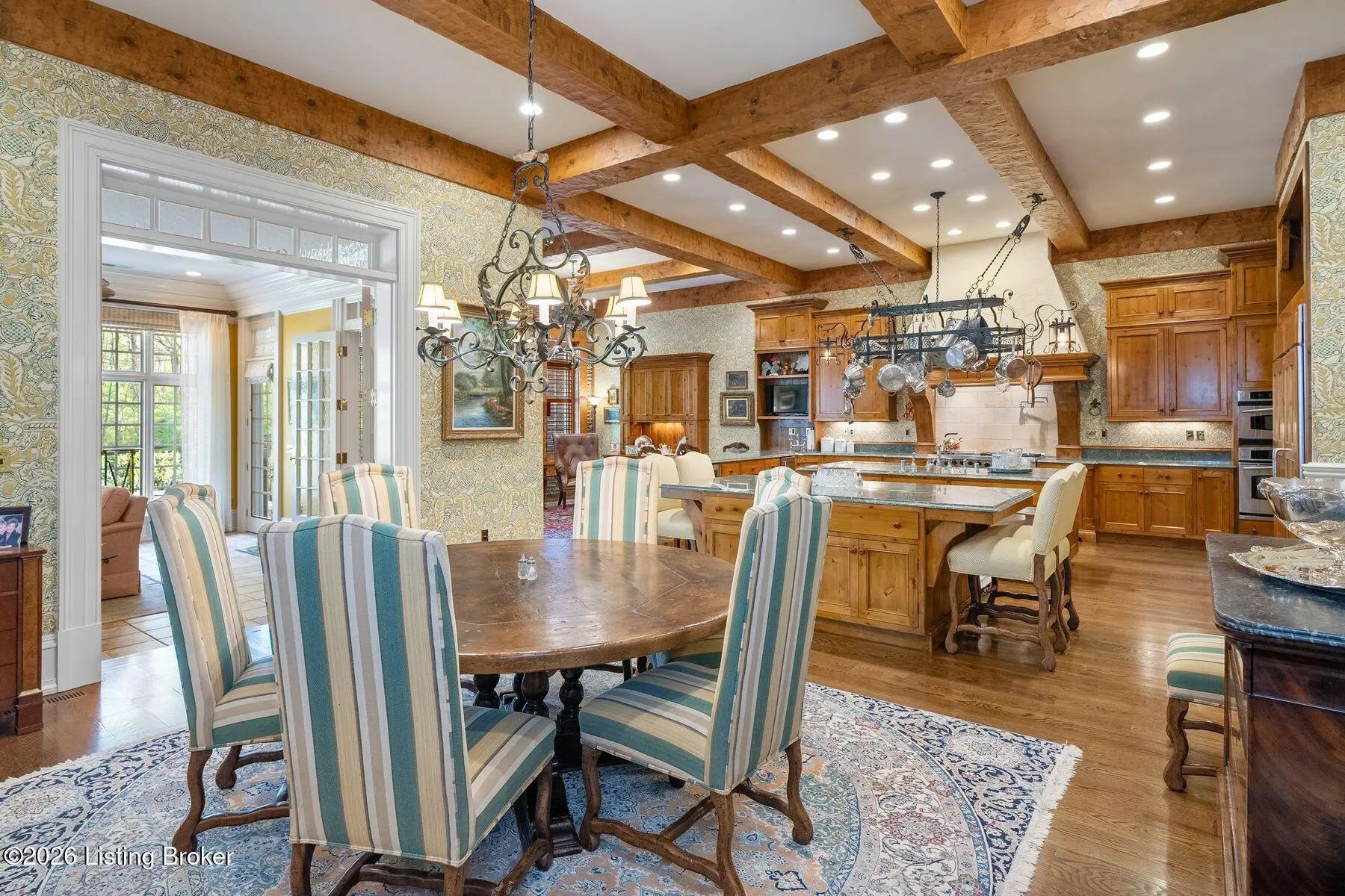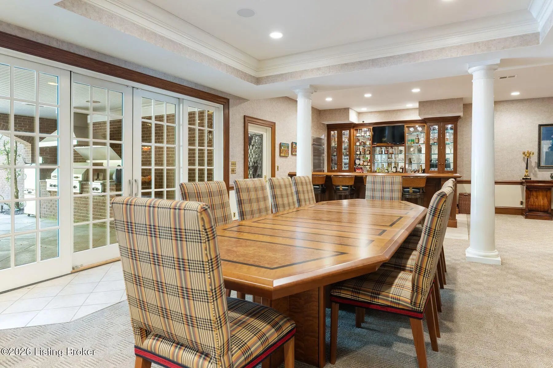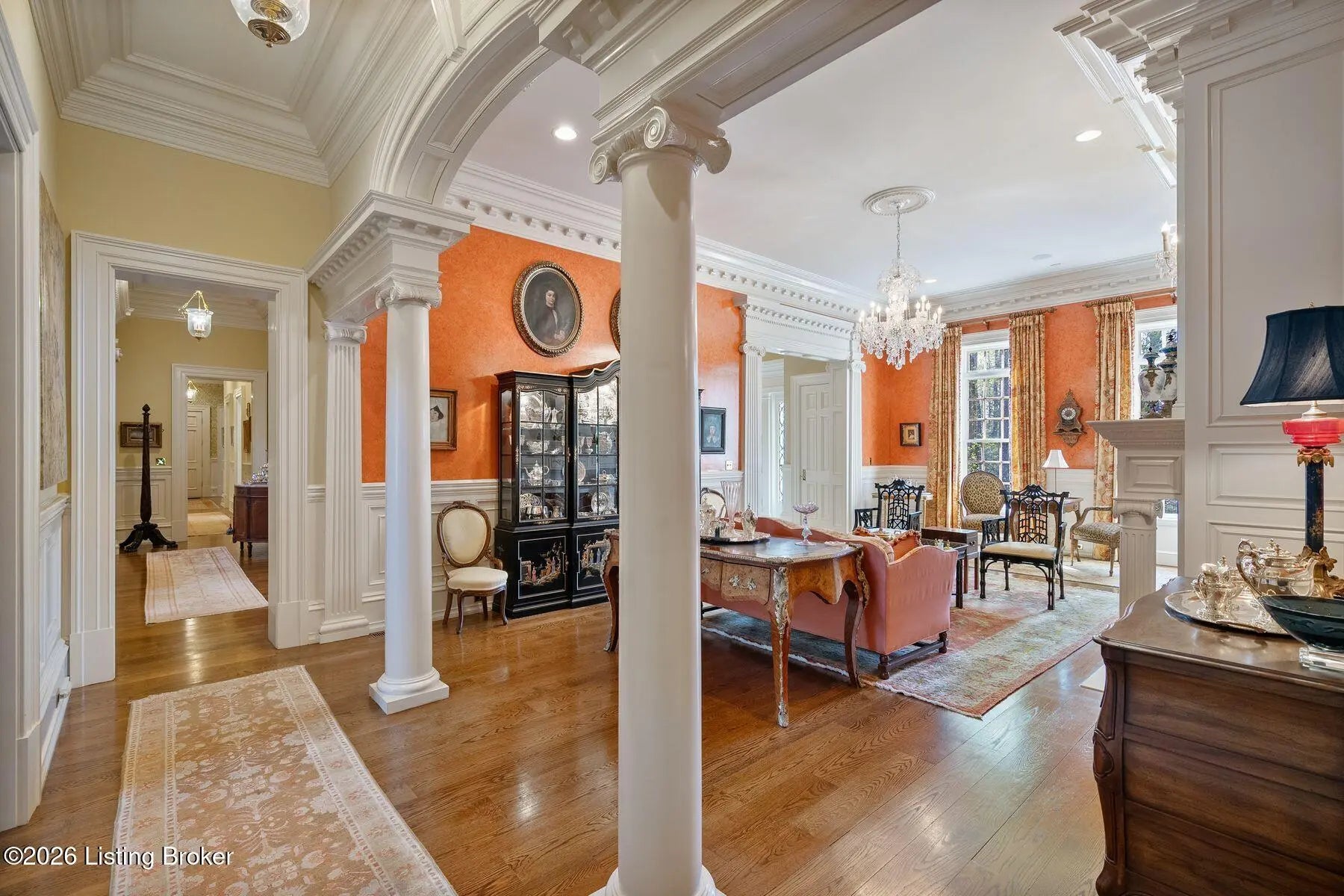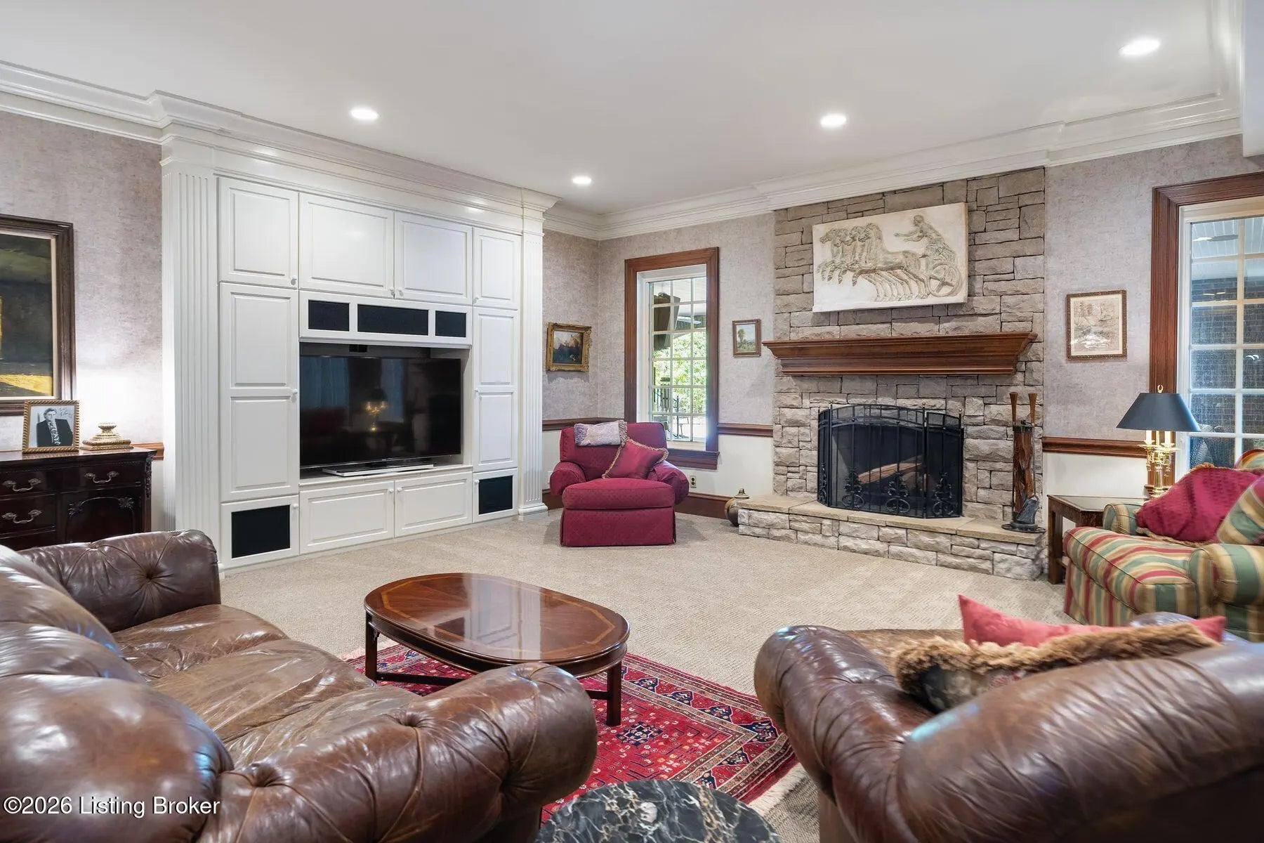 Welcome to this expansive traditional estate, a private sanctuary of luxury and refinement set on nearly three acres of meticulously landscaped grounds. A grand marble foyer with a sweeping curved staircase sets the tone for this remarkable residence. Designed for both elegant entertaining and everyday living, the formal dining room features exquisite custom woodwork and one of seven fireplaces throughout the home. The gourmet kitchen is a true showpiece for culinary enthusiasts, complete with premium appliances, abundant cabinetry, and a charming hearth room ideal for intimate gatherings. Relax in the sun-filled all season room offering tranquil views and direct access to a balcony overlooking the pool and outdoor entertaining areas. Welcome to this expansive traditional estate, a private sanctuary of luxury and refinement set on nearly three acres of meticulously landscaped grounds. A grand marble foyer with a sweeping curved staircase sets the tone for this remarkable residence. Designed for both elegant entertaining and everyday living, the formal dining room features exquisite custom woodwork and one of seven fireplaces throughout the home. The gourmet kitchen is a true showpiece for culinary enthusiasts, complete with premium appliances, abundant cabinetry, and a charming hearth room ideal for intimate gatherings. Relax in the sun-filled all season room offering tranquil views and direct access to a balcony overlooking the pool and outdoor entertaining areas. A large, richly paneled office provides an ideal setting for working or conducting business from home, while the expansive living room impresses with soaring ceilings and a welcoming fireplace. With seven bedrooms and seven full baths and two half baths the home offers exceptional flexibility, including a luxurious first-floor primary suite and an additional first-floor guest suite. The upper level features three spacious bedrooms and a private suite, ensuring comfort and privacy. The lower level is an entertainer's dream, featuring a wine cellar, bar area, recreation spaces, and spa-like amenities including a sauna, workout room and private suite with connecting bathroom. Recent updates include a newly replaced roof with durable 50-year shingles, adding lasting value and peace of mind. Additional highlights include a security system, integrated sound system, a four-car attached garage, and thoughtfully designed outdoor spaces with a covered entertaining area and built-in grillperfect for hosting gatherings year-round. Every detail of this extraordinary estate has been carefully curated for those who appreciate timeless elegance, comfort, and exceptional craftsmanship.