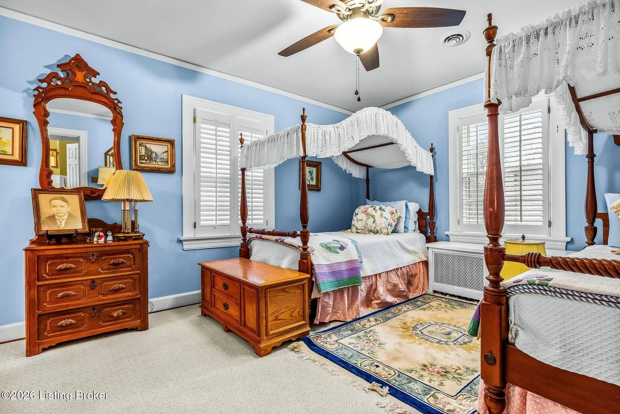 Step into the kind of home you don't just tour—you feel. This timeless 1920s residence offers 5 bedrooms, 3.5 bathrooms, and over 3,000 finished square feet, wrapped in the unmistakable character of a home that has been loved and lived in for over 20 years. From the moment you enter, it welcomes you with warmth and history—formal living and dining spaces, rich original details, and original hardwood floors throughout the main level that ground the home in classic charm. Beautifully maintained with thoughtful updates, the home features a new roof with copper flashing, along with a stunning copper roof detail that adds both durability and architectural distinction. The main level also includes a convenient half bath, perfect for guests and everyday living Anchored by a striking dual fireplace, this space connects beautifully to the breakfast nook and the wet bar/serving area just off the kitchenmaking it the ultimate gathering place for intimate dinners, laughter-filled evenings, and slow nights by the fire. With gorgeous architectural texture and timeless appeal, it's the kind of room you'll never want to leave. Upstairs, you'll find four additional bedrooms and two full baths. The home also features a main-level primary suite, offering everyday comfort with vintage soul. Outside, the property feels like a hidden garden escapemature trees, quiet privacy, and lush landscaping surround the backyard and brick patio, inviting you to entertain under the open sky or unwind in peaceful seclusion. The unfinished basement provides abundant storage and endless potential for future expansion. A rare and special homerich with story, character, and charm that simply can't be replicated today.