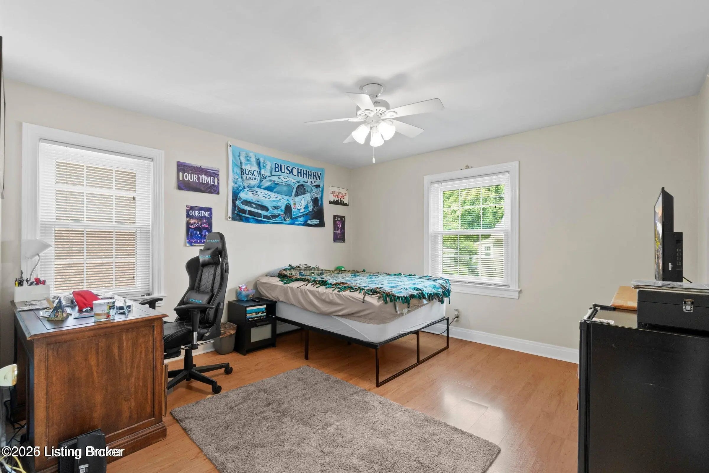 Move-in ready brick Cape Cod in desirable Germantown! This solid 3-bedroom home boasts major updates, including brand-new sound-proof, energy-efficient windows and security doors (2024). Inside, you'll find a bright living room with a decorative fireplace, two convenient first-floor bedrooms, and a huge private bedroom upstairs. The large eat-in kitchen is fully equipped with a gas range, microwave, and refrigerator with abundant counter space. Big-ticket items already handled: Windows, Roof (2021) and a spotless, fully waterproofed Basement (2024/25) offering incredible storage or expansion potential. Outside, enjoy a private fenced backyard with a patio and shed. Situated on a quiet street minutes from UofL, Norton Audubon, and dining. Prime location for homeowners or investor