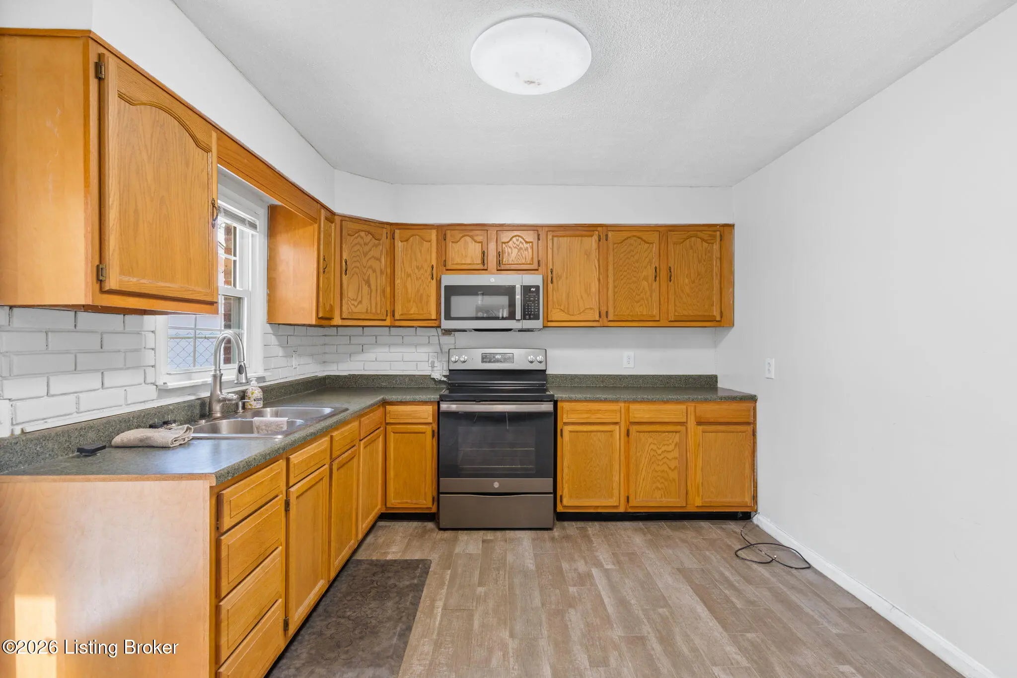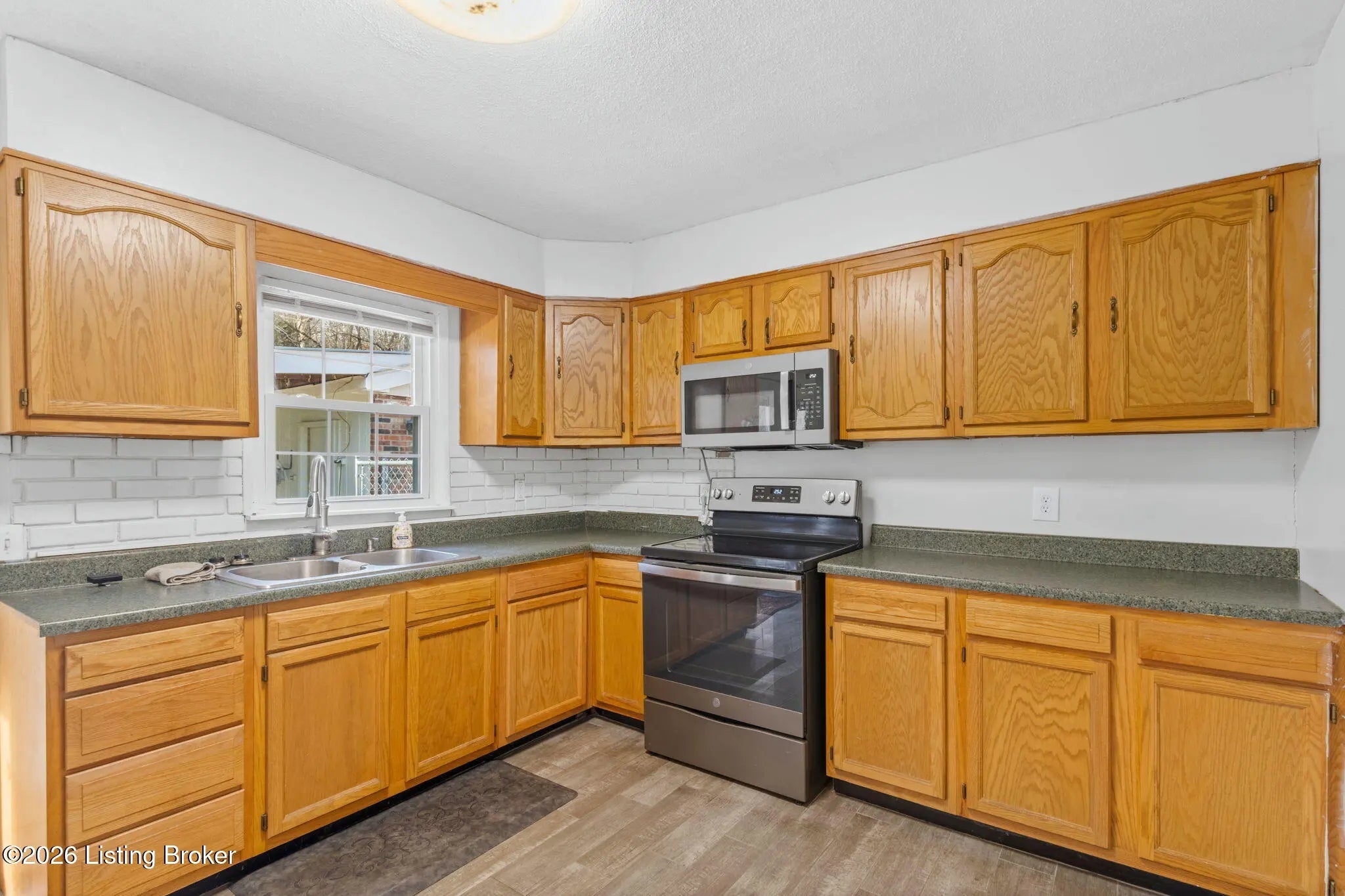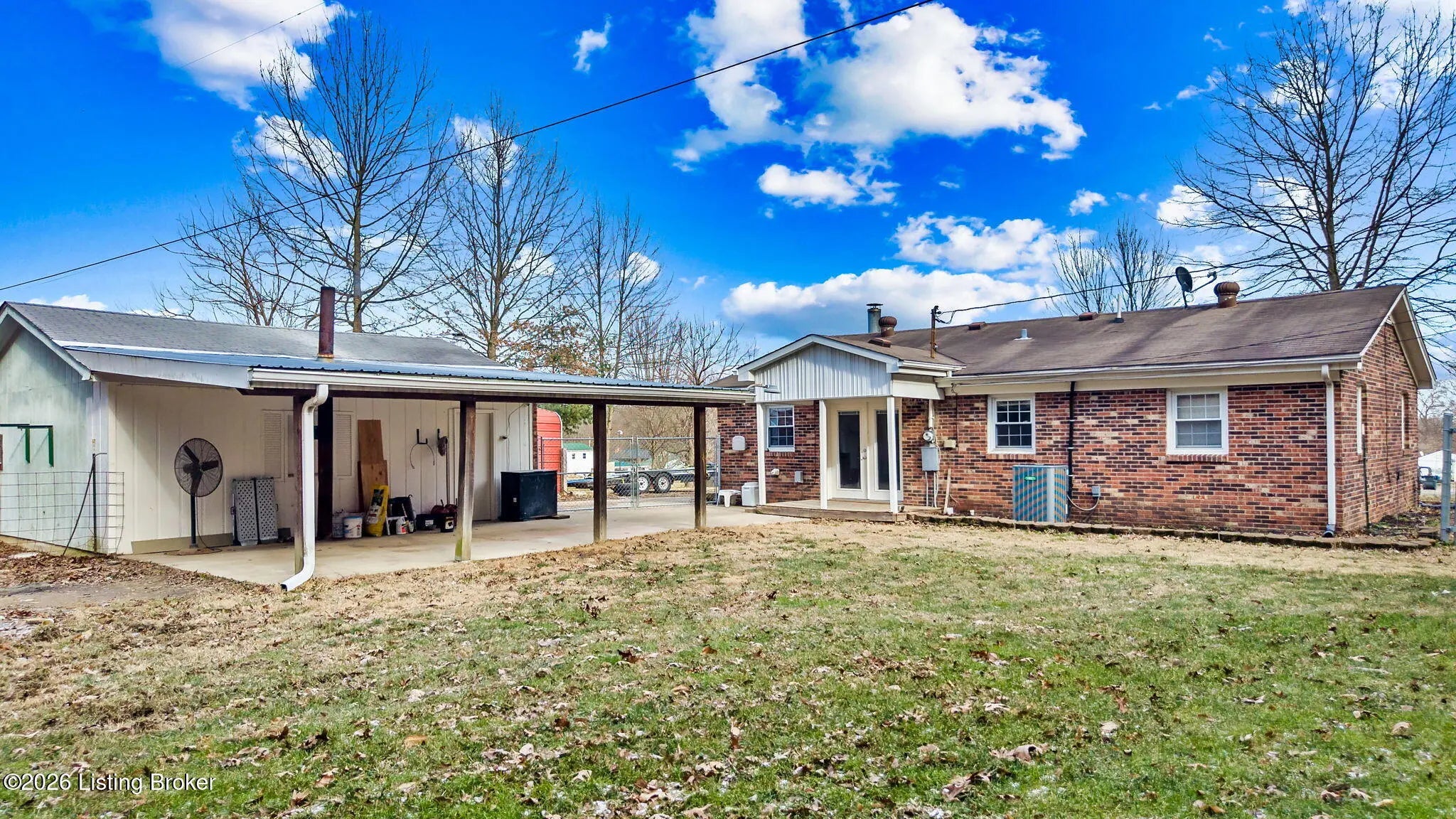 Welcome home to this well-maintained three-bedroom brick ranch, conveniently located just outside the Brooks city limits with easy access to the interstate and restaurants. The home features a spacious living room with a cozy fireplace and an eat-in kitchen with durable laminate flooring. All appliances remain, including the range, refrigerator, microwave, washer, and dryer—making this home truly move-in ready. Additional highlights include a covered front porch, fenced backyard, a 2.5-car garage with 220 service and new doors, carport, and low-maintenance exterior. Property is being sold As Is. Agents, please see agent notes for additional details.