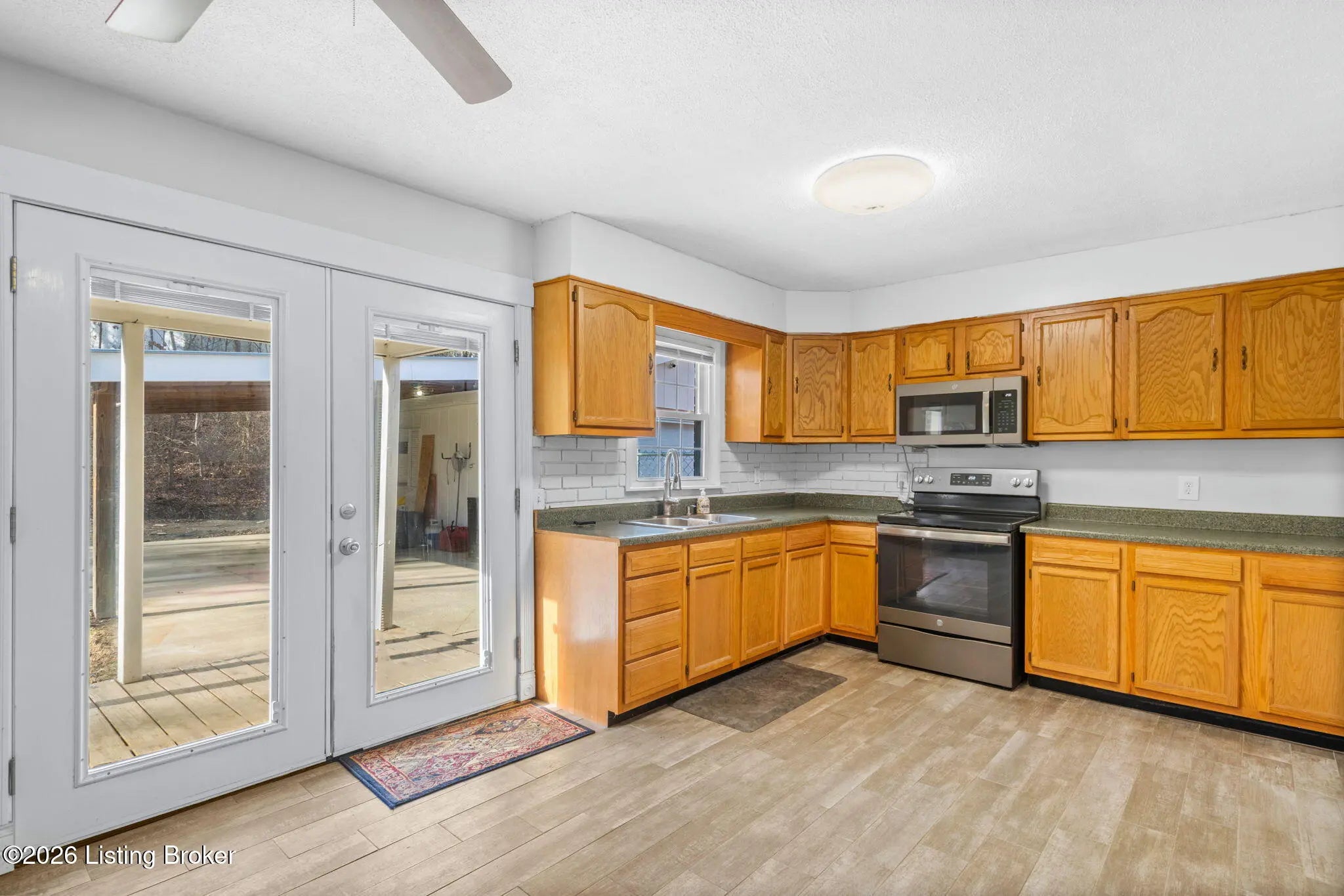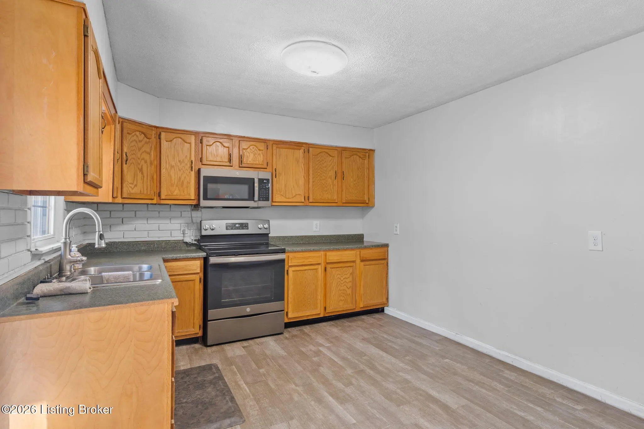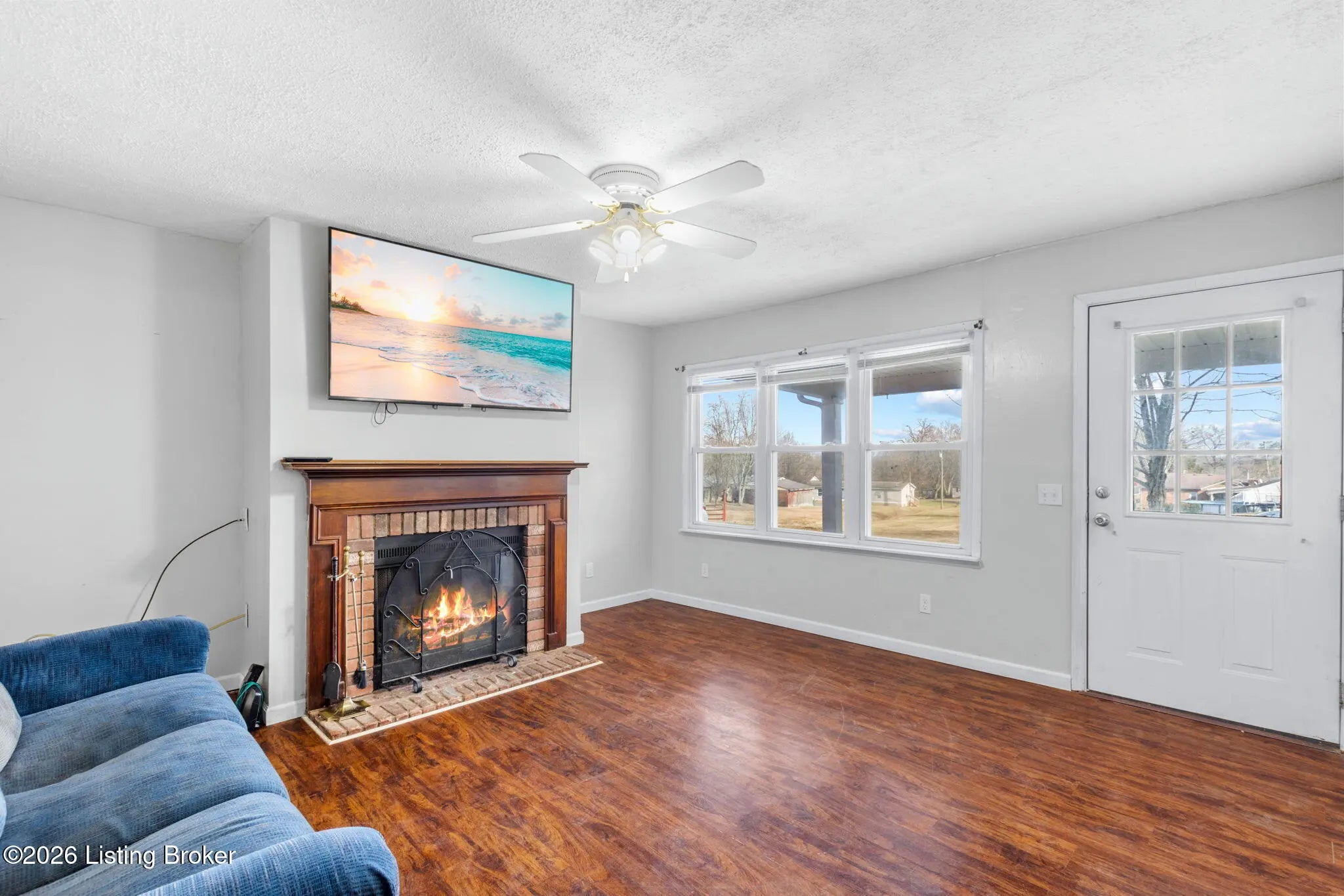 Welcome home to this well-maintained three-bedroom brick ranch, conveniently located just outside the Brooks city limits with easy access to the interstate and restaurants. The home features a spacious living room with a cozy fireplace and an eat-in kitchen with durable laminate flooring. All appliances remain, including the range, refrigerator, microwave, washer, and dryer—making this home truly move-in ready. Additional highlights include a covered front porch, fenced backyard, a 2.5-car garage with 220 service and new doors, carport, and low-maintenance exterior. Property is being sold As Is. Agents, please see agent notes for additional details.