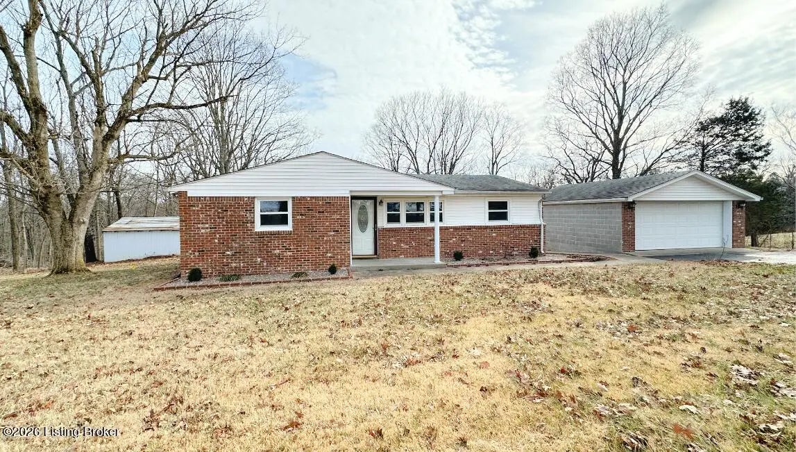 This adorable home is located on a one-acre lot with numerous updates. This home features 3 bedrooms, but could be 4, as the spare room has no egress but does have a closet. It has a living room, family room, large eat-in kitchen, and a bonus room. The house has a large, detached 2-car garage, a wide driveway with an additional concrete slab for parking, and a beautiful, private backyard. Recent updates include removing and replacing all exterior brick and installing new metal trim/siding around windows, doors, and soffits. The kitchen was gutted and all new drywall installed. New drywall was installed in two of the front rooms; the two back rooms were gutted and reinstalled. New lighting and paint throughout. There is a running creek at the back of the property line down the hill.