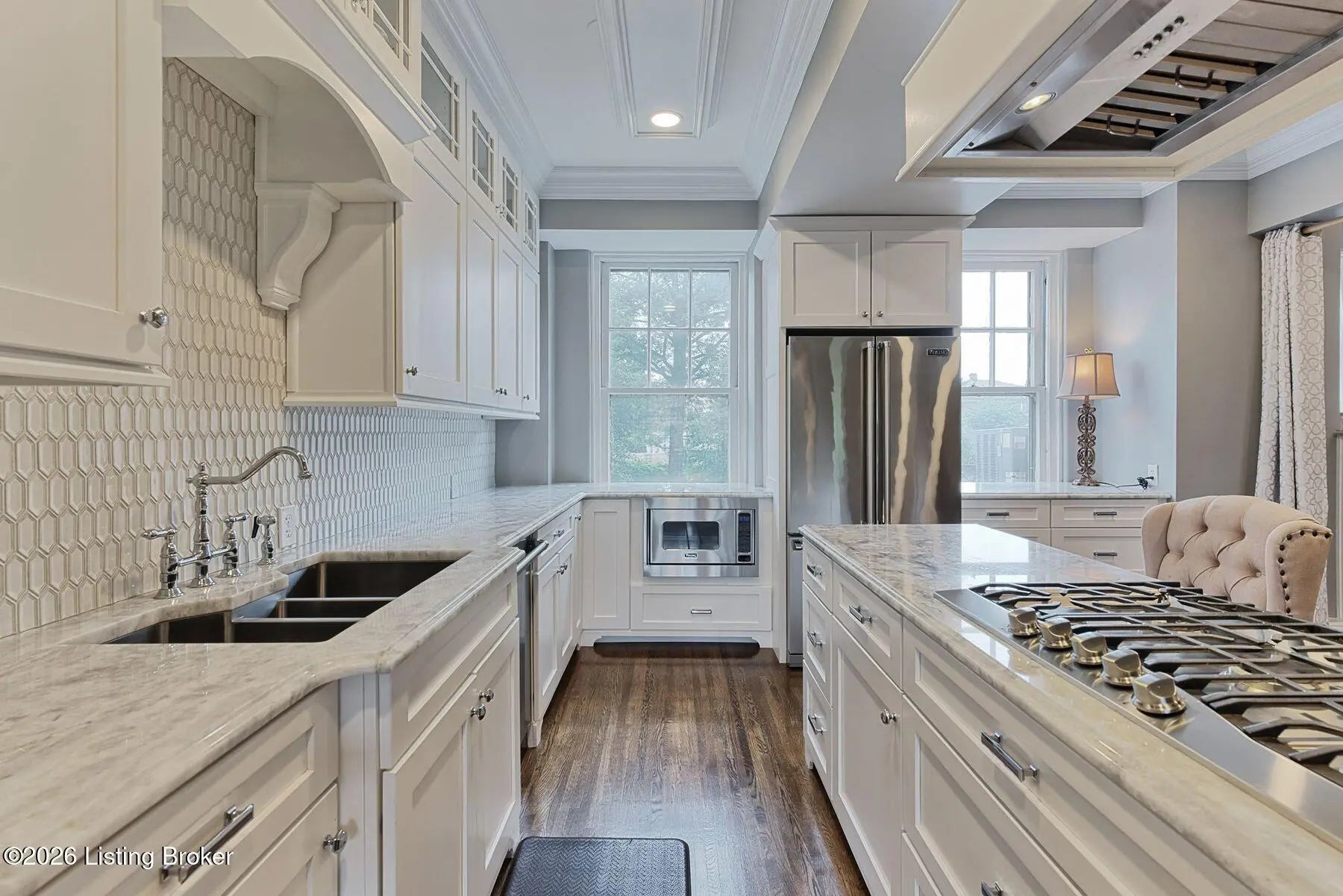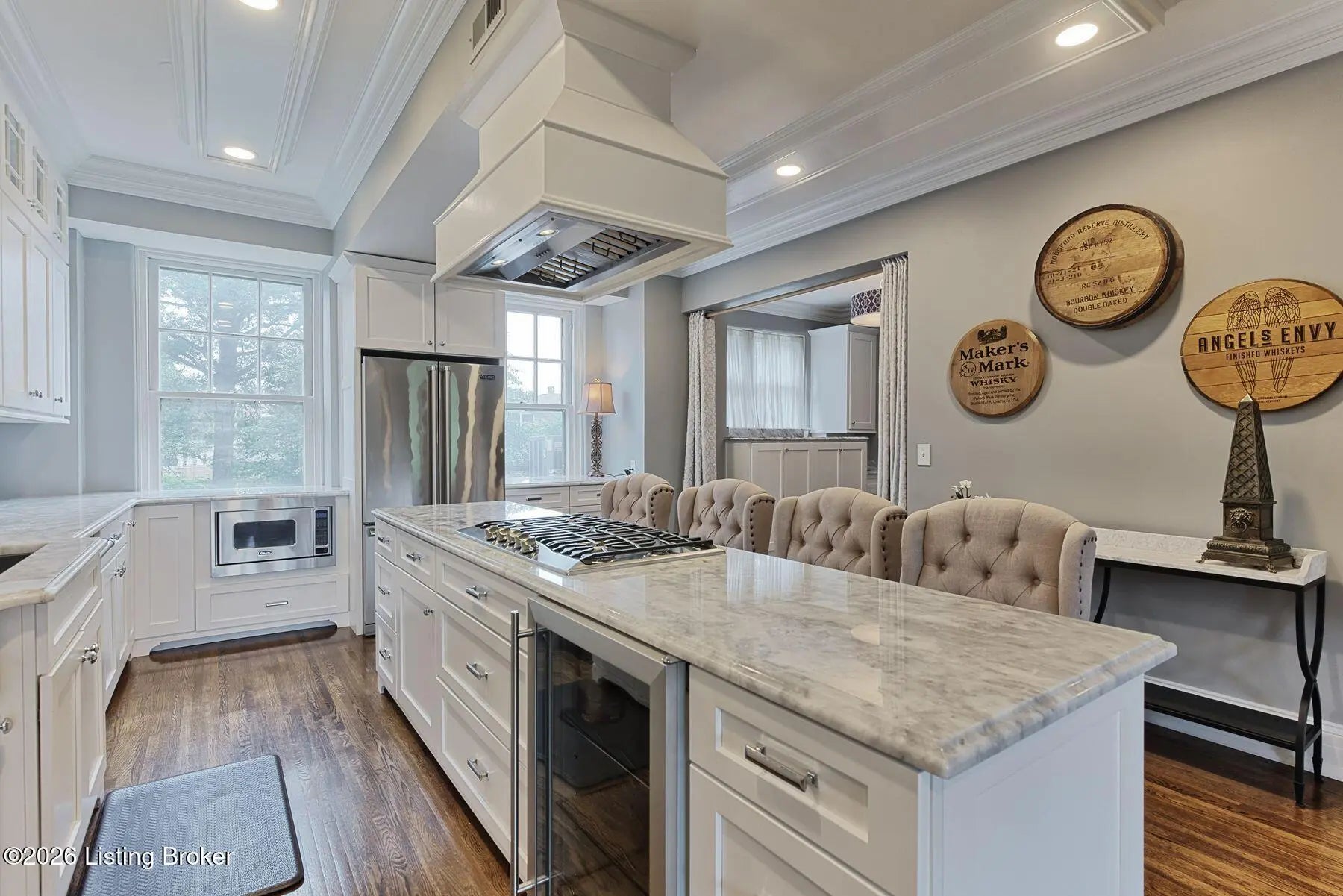 Nestled within the prestigious Cherokee Triangle neighborhood, the historic Dartmouth building designed by renowned architects Joseph & Joseph offers a harmonious blend of timeless elegance and modern luxury. This meticulously reimagined residence features an open, light-filled floor plan that showcases a chef's kitchen equipped with Viking appliances, granite countertops, custom cabinetry, and a striking reclaimed walnut bar top. A newly added scullery and high-end bar area enhance functionality and elevate entertaining. The spacious living and dining areas boast gleaming hardwood floors, creating an inviting atmosphere for gatherings. The luxurious primary suite includes a marble walk-in shower, double vanity, and an expanded custom closet with thoughtful built-ins. This summer, the unit will receive all-new Andersen windows, approved by the Cherokee Triangle Preservation District, ensuring both energy efficiency and adherence to the area's historic character. An additional one-car garage space is also available for purchase. Experience a residence where rich heritage meets contemporary sophistication - an exceptional home in one of Louisville's most distinguished settings.