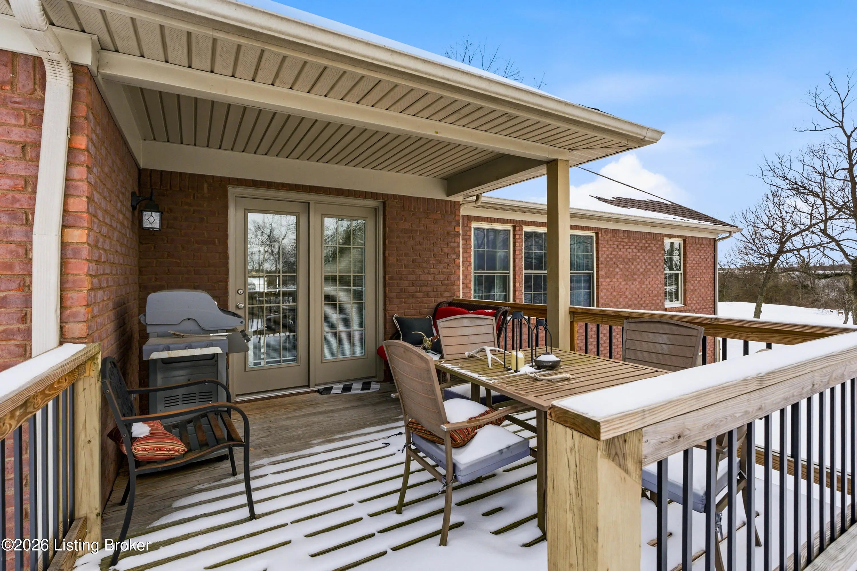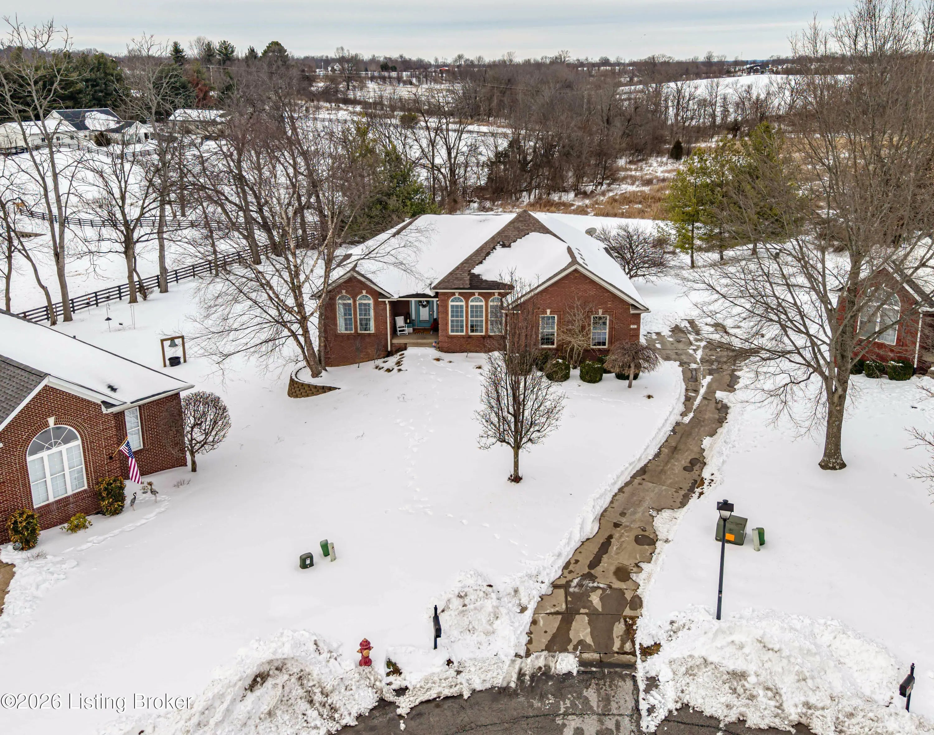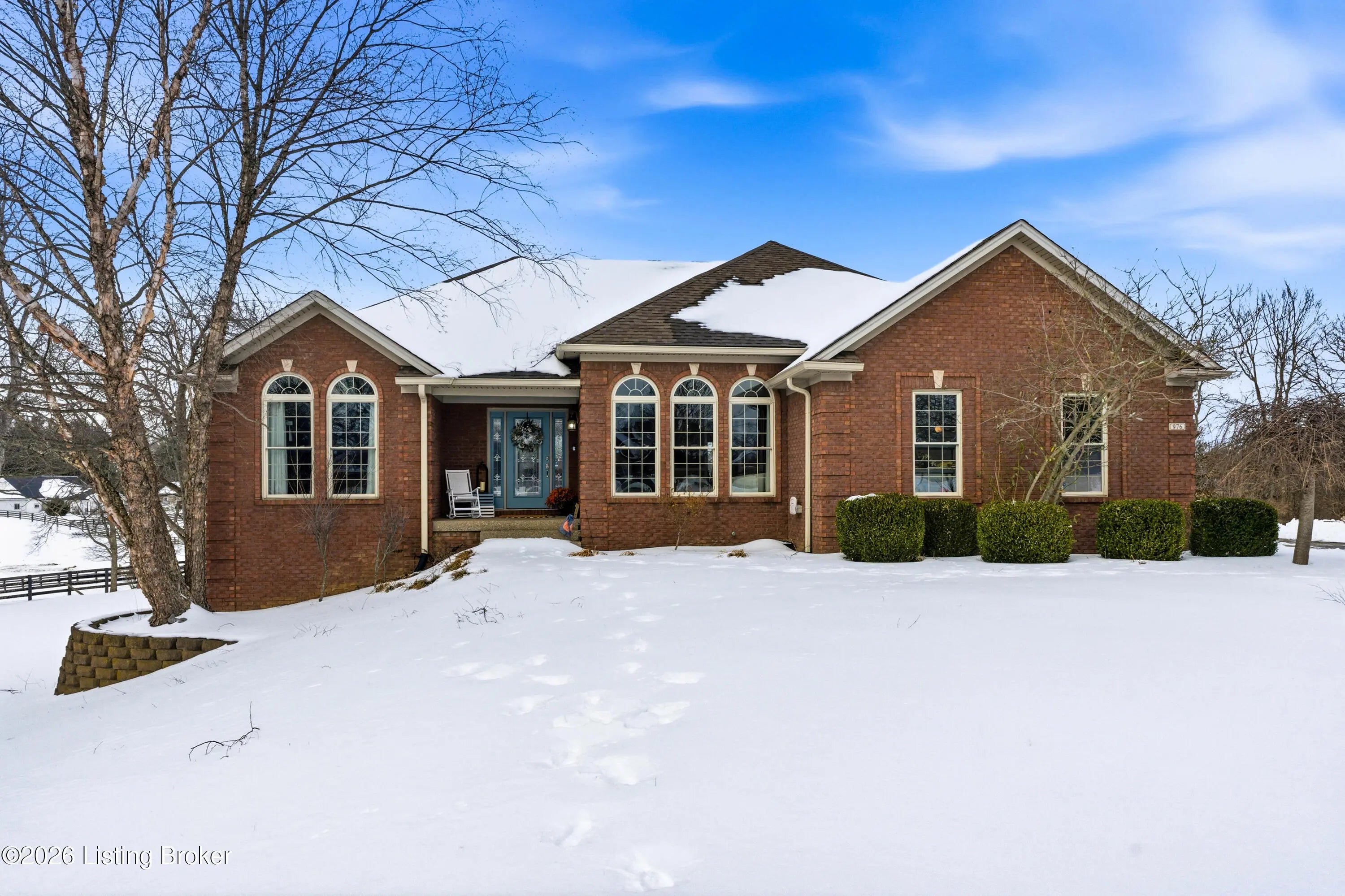 976 Morning Glory Lane is tucked into a quiet cul-de-sac in the desirable Old Mill Village neighborhood, offering a rare sense of privacy as the home backs to a neighboring horse farm. Deer regularly pass through the property, creating a calm, open setting that feels removed from the typical subdivision backdrop while still being close to everyday conveniences. This brick ranch features a split floor plan with 3,300 finished square feet, four bedrooms, and three full bathrooms. The main level is designed for easy daily living, with a natural flow between the living room, kitchen, and dining area, while the bedrooms are thoughtfully separated for privacy. The living room includes built-ins and a fireplace, and the kitchen is finished with granite countertops, white cabinetry, and generous workspace. Three bedrooms are located on the main level, including the primary suite. The finished basement expands the home's flexibility and function, offering a large open area suited for recreation or entertaining, a fourth bedroom, a full bathroom, an exercise room, and a utility garage with exterior access that works well for lawn equipment, a workshop, or additional storage. A covered back deck overlooks open land rather than neighboring homes, reinforcing the peaceful setting and connection to the surrounding landscape. With its cul-de-sac location and uncommon view of open farmland, 976 Morning Glory Lane offers space, privacy, and versatility in one of Old Mill Village's most appealing settings.