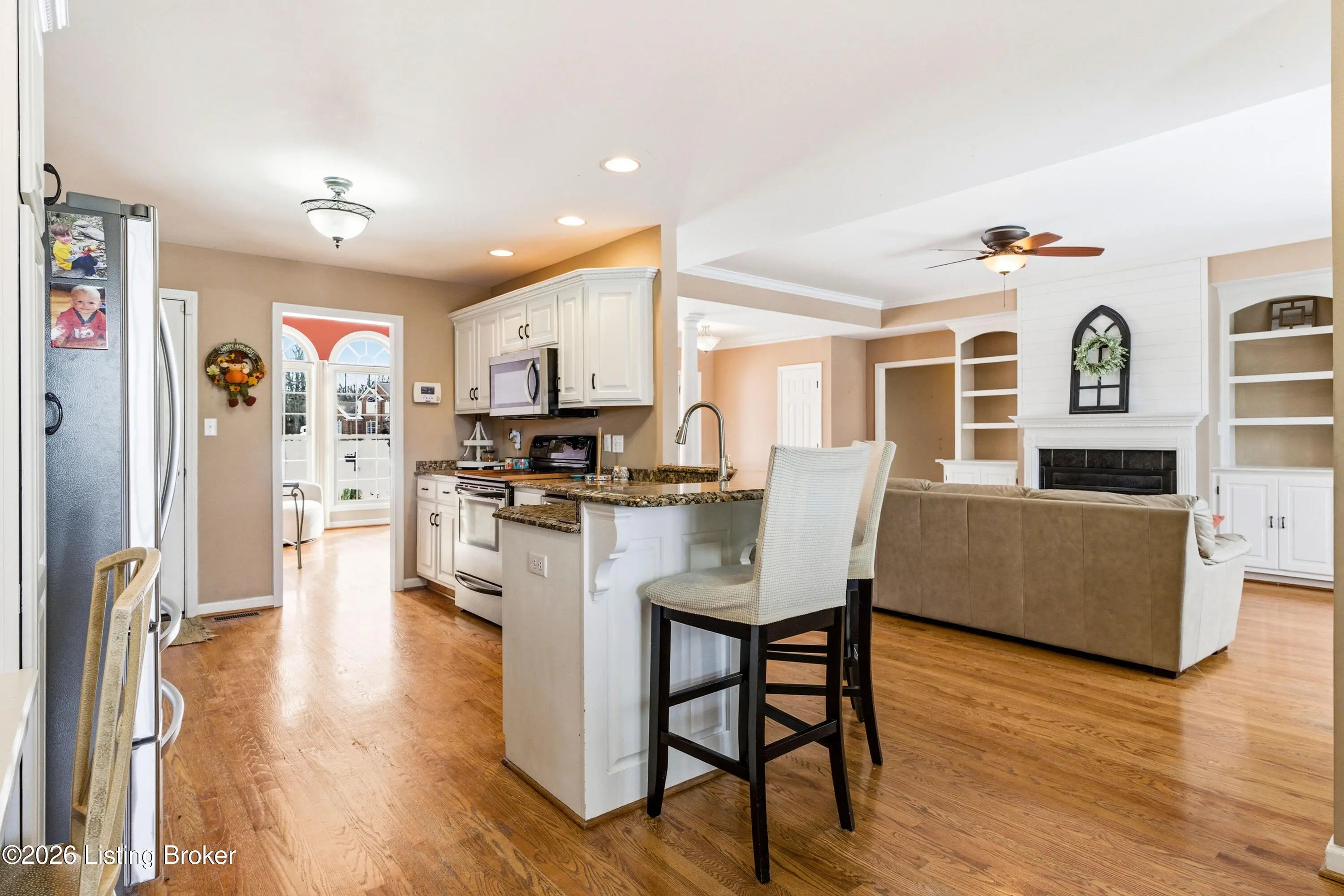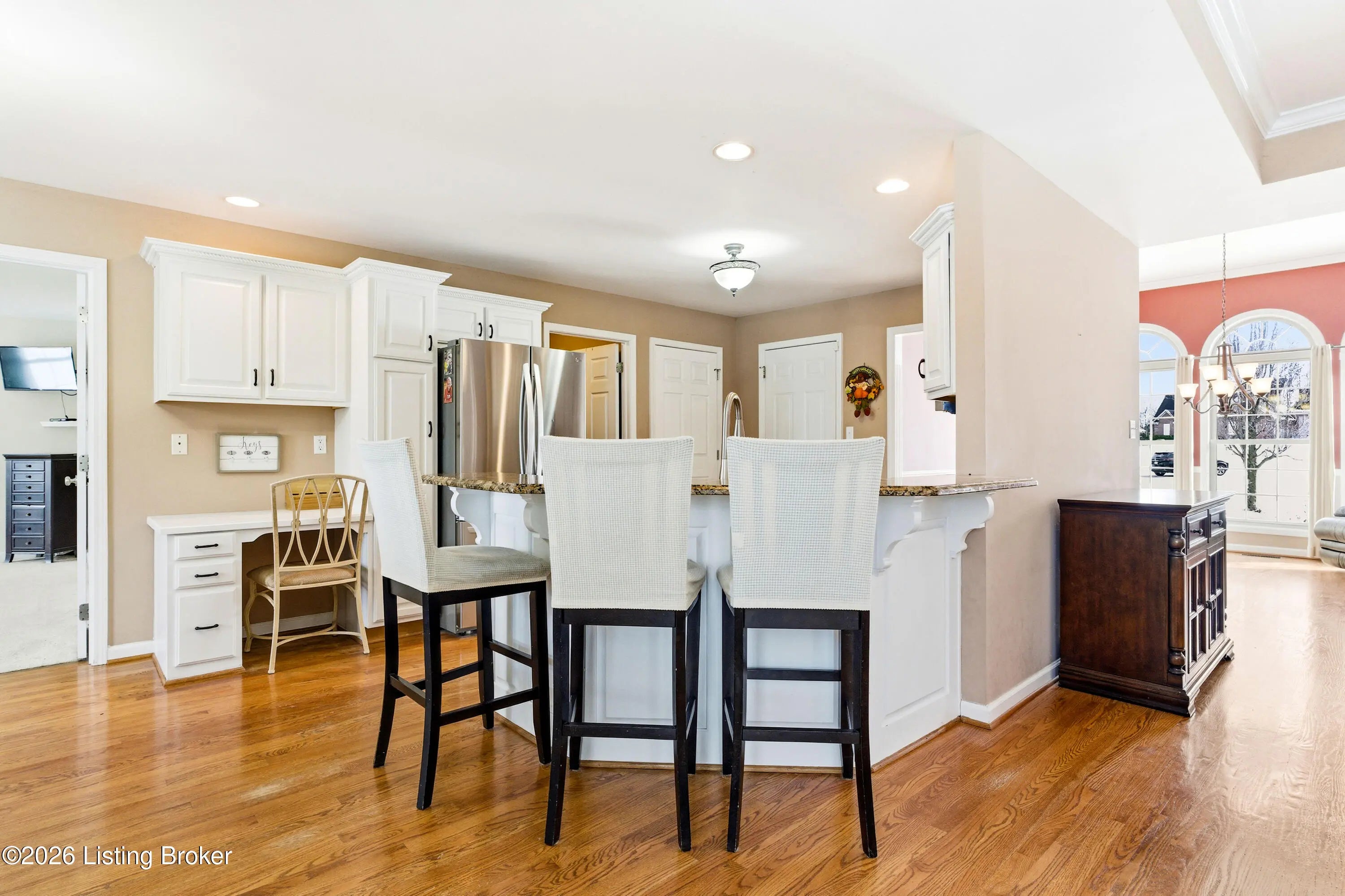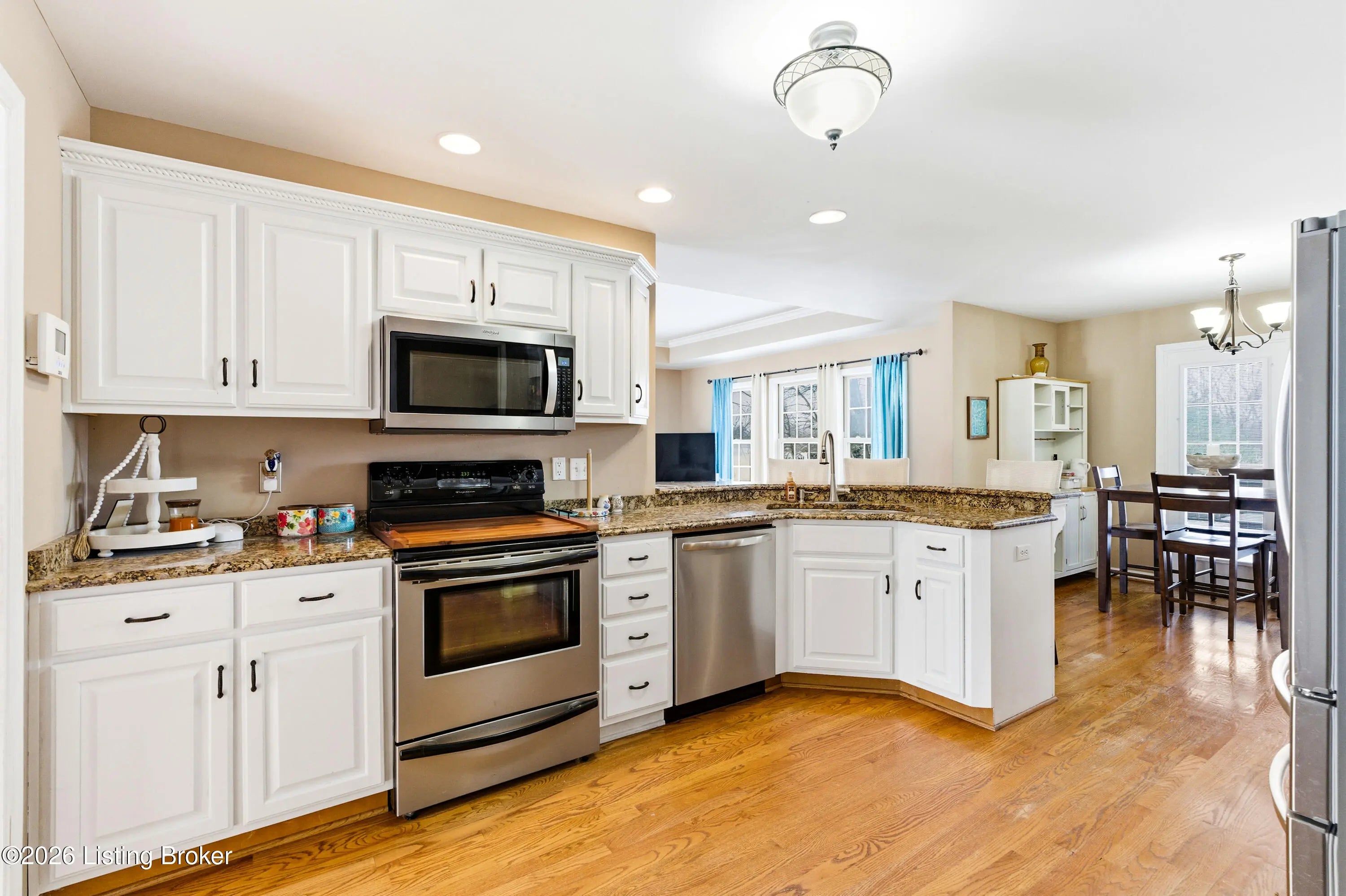 976 Morning Glory Lane is tucked into a quiet cul-de-sac in the desirable Old Mill Village neighborhood, offering a rare sense of privacy as the home backs to a neighboring horse farm. Deer regularly pass through the property, creating a calm, open setting that feels removed from the typical subdivision backdrop while still being close to everyday conveniences. This brick ranch features a split floor plan with 3,300 finished square feet, four bedrooms, and three full bathrooms. The main level is designed for easy daily living, with a natural flow between the living room, kitchen, and dining area, while the bedrooms are thoughtfully separated for privacy. The living room includes built-ins and a fireplace, and the kitchen is finished with granite countertops, white cabinetry, and generous workspace. Three bedrooms are located on the main level, including the primary suite. The finished basement expands the home's flexibility and function, offering a large open area suited for recreation or entertaining, a fourth bedroom, a full bathroom, an exercise room, and a utility garage with exterior access that works well for lawn equipment, a workshop, or additional storage. A covered back deck overlooks open land rather than neighboring homes, reinforcing the peaceful setting and connection to the surrounding landscape. With its cul-de-sac location and uncommon view of open farmland, 976 Morning Glory Lane offers space, privacy, and versatility in one of Old Mill Village's most appealing settings.