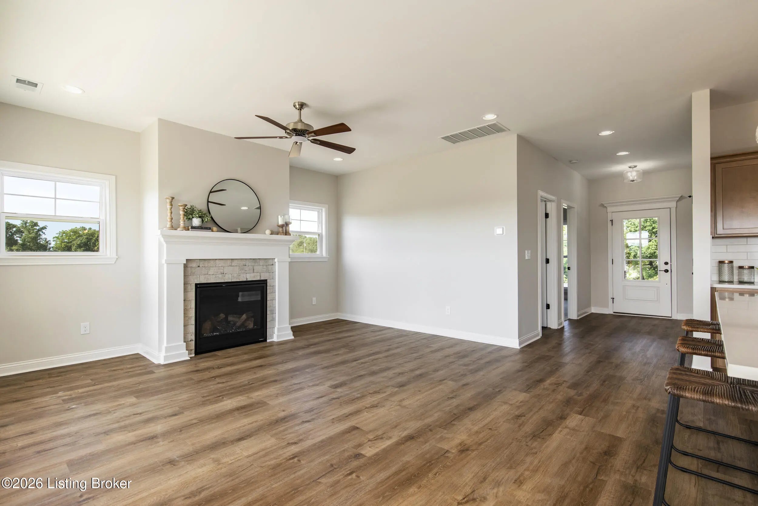Newer 2 bedroom/2 bath home on a slab available for rent in Buckner! This ranch home is located in The Commons at Cedar Point, near Exit I-71 Exit 17. It's also close to the OC school campus. The home is situated on one level with no stairs. The flooring in the main living areas & primary bedroom is LVP, with carpet in the spare bedroom. The kitchen has quartz countertops, a dishwasher, range and microwave. Outside there is a nice covered front porch and covered back patio for enjoying time outside.