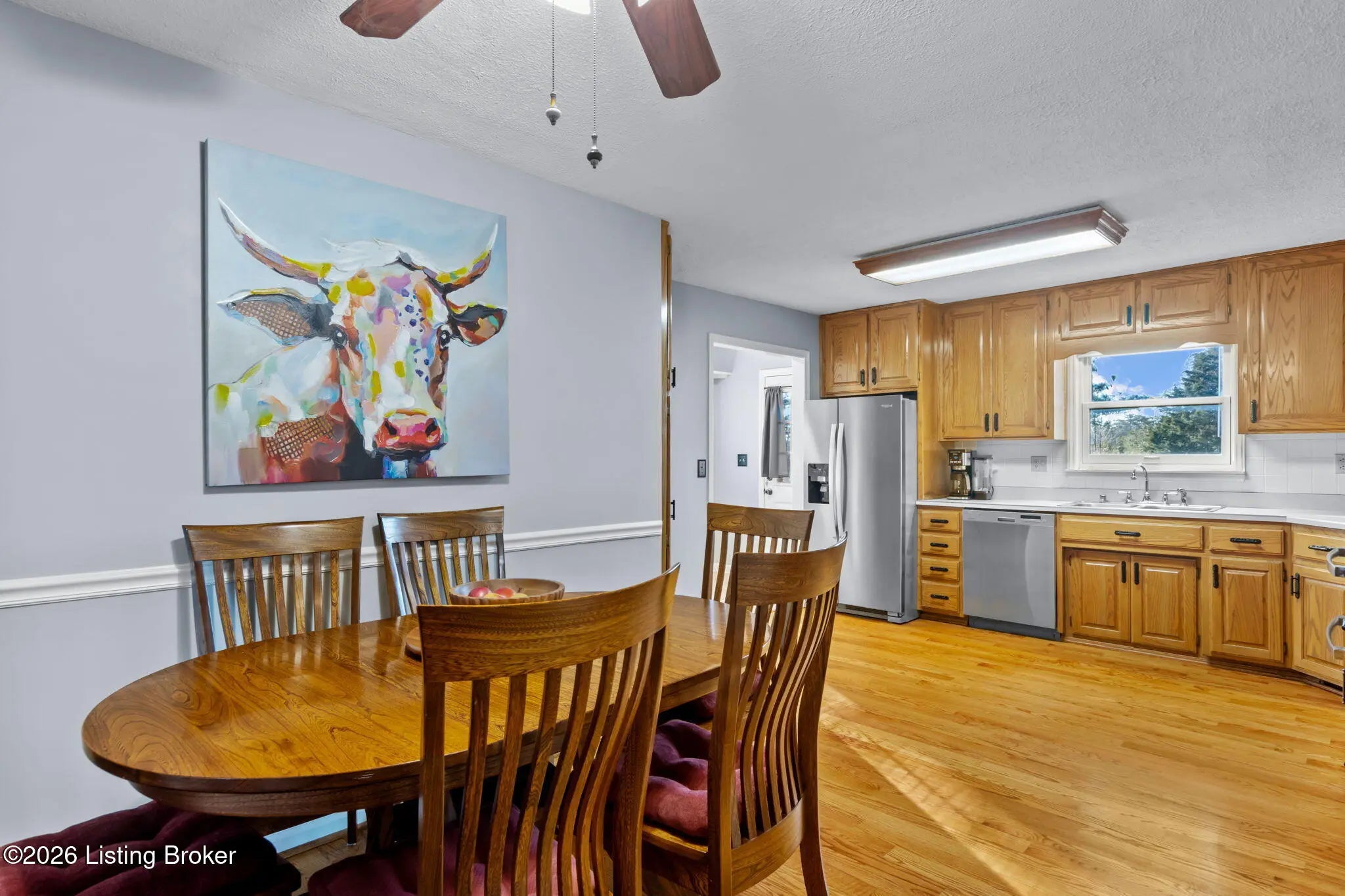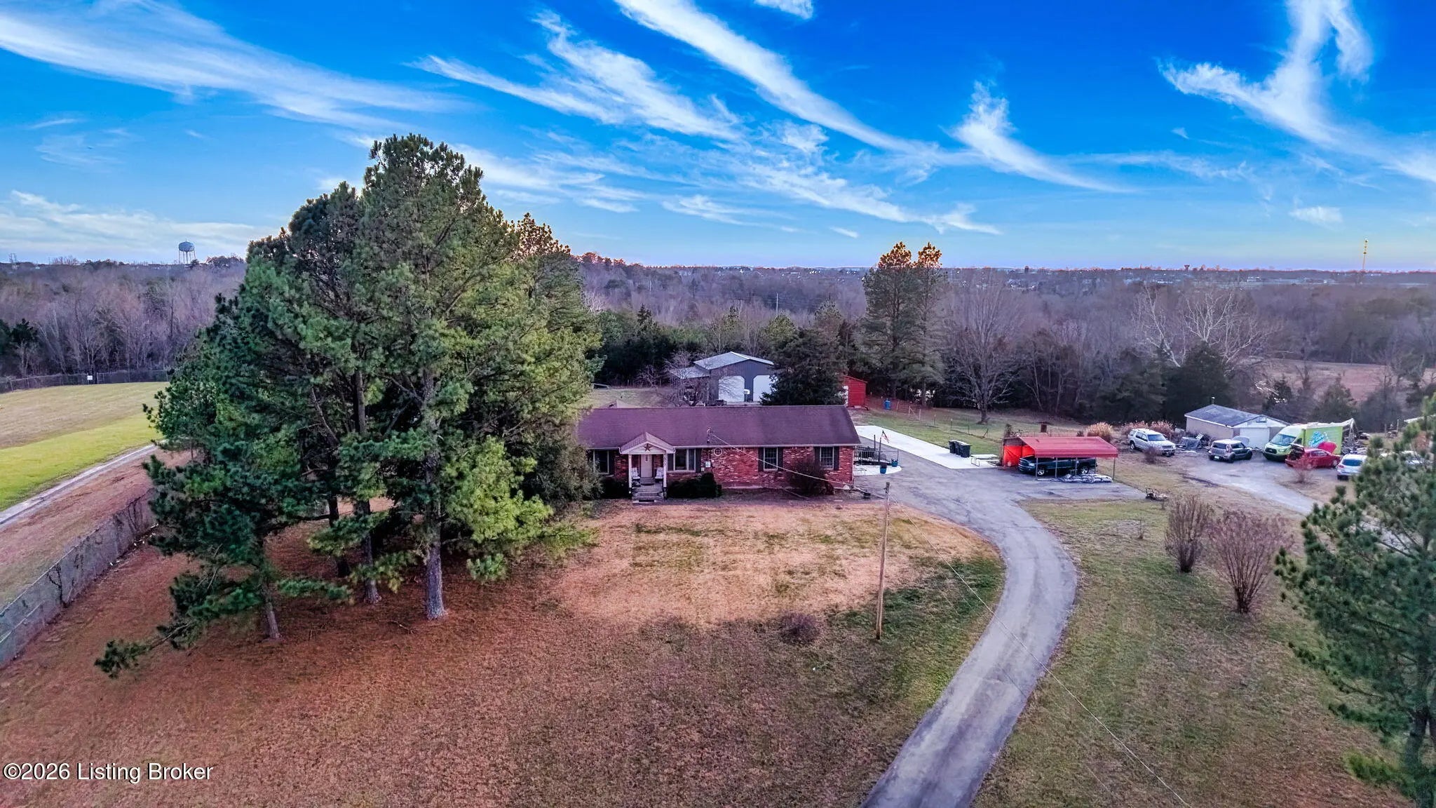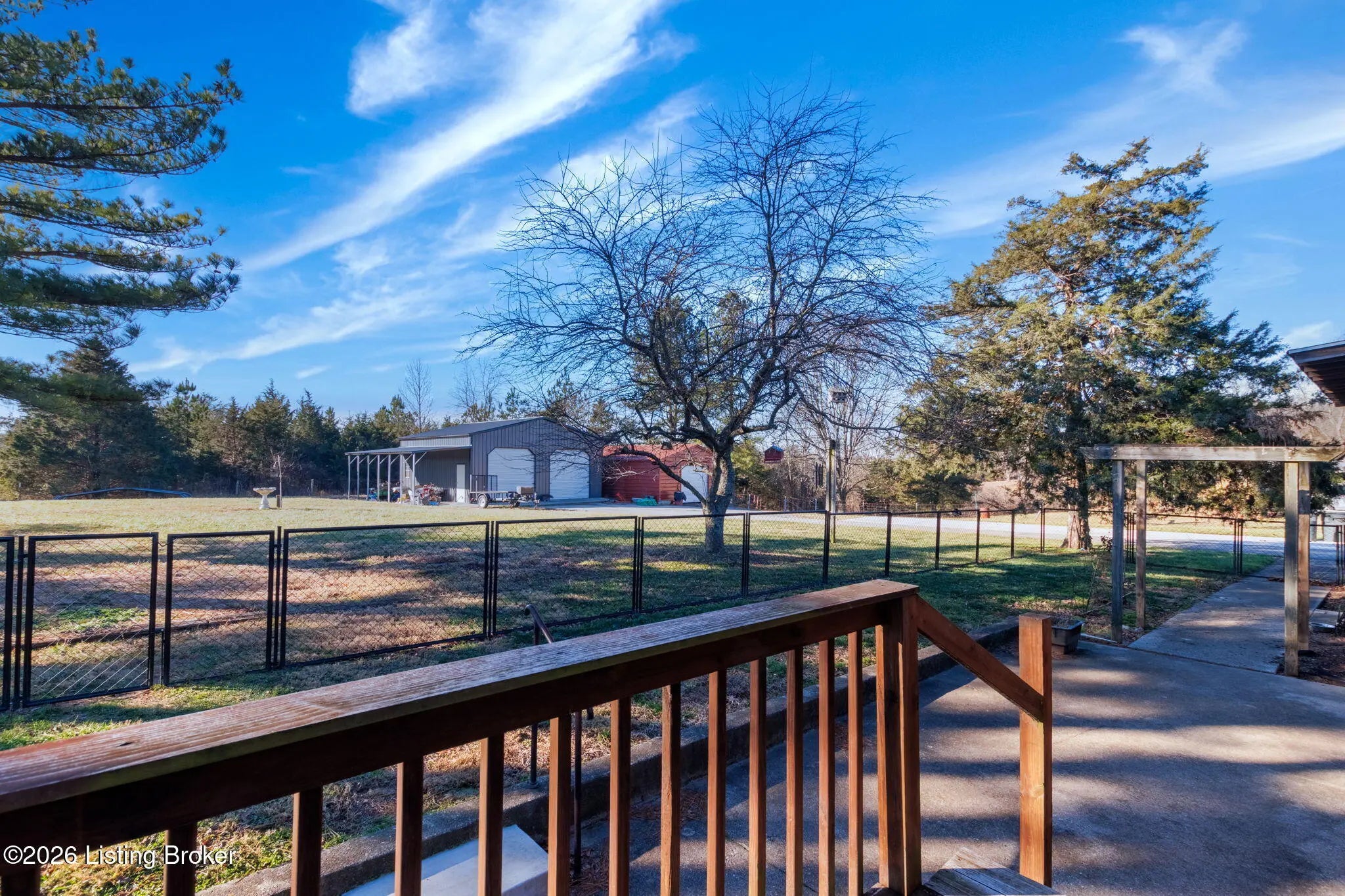 Welcome to this thoughtfully designed four-bedroom, two-and-a-half-bath ranch, ideally situated on a picturesque 2.4-acre lot. The home features refinished hardwood floors throughout and a spacious eat-in kitchen with true custom cabinetry, offering both functionality and timeless appeal. A durable metal roof adds peace of mind, while a large laundry room enhances everyday convenience. Outside, mature trees and established garden spaces create a serene retreat, complemented by a deck and patio off the back—perfect for relaxing or entertaining. Two detached buildings, including a newer 30x30 structure, provide exceptional versatility for storage, hobbies, or a workshop. Ample concrete parking is available, along with an attached one-car garage and an additional carport. A fenced area is ideal for pets, and the home has been thoughtfully designed with accessibility in mind, offering comfort and flexibility for a variety of lifestyles.