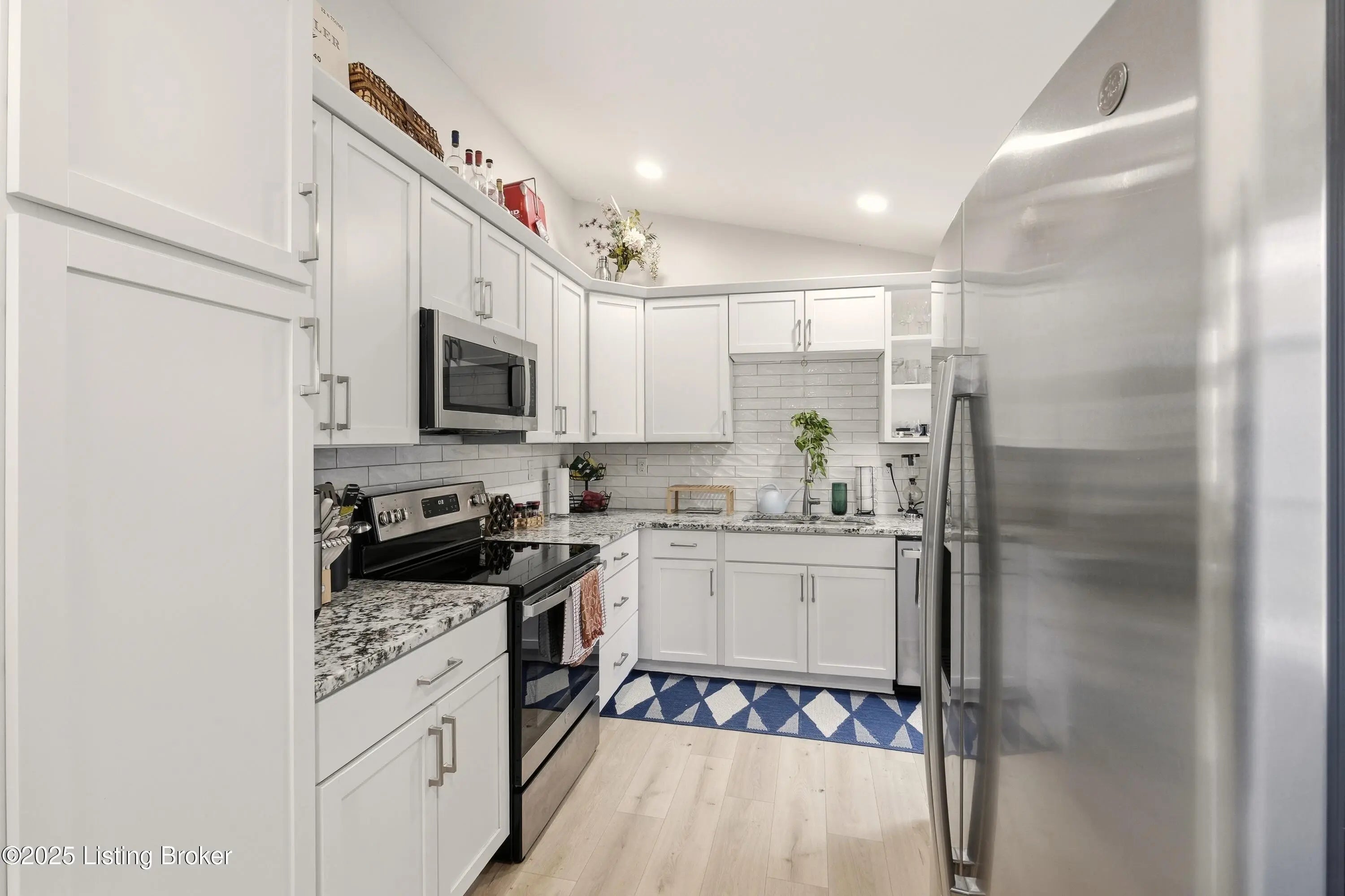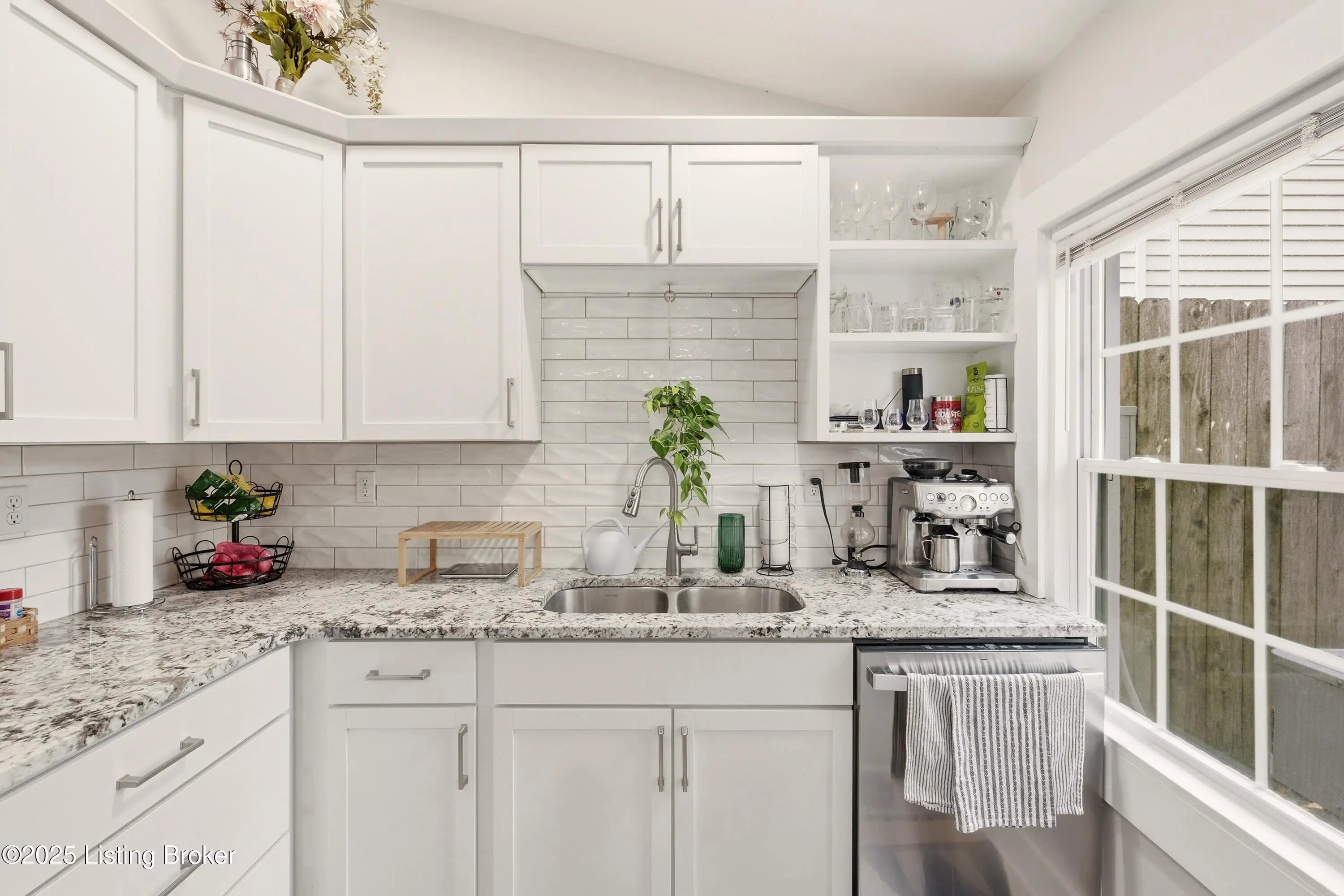 Step into timeless charm and modern comfort with this beautifully updated 1900s shotgun-style home. With its white brick exterior, navy accents, and warm wood doors, this home offers classic curb appeal in one of Louisville's most sought-after areas. Inside, you're greeted by a bright and airy living room featuring stunning oversized windows that fill the space with natural light. The statement fireplace, framed with elegant herringbone tilework and rich navy trim, creates a stylish focal point. Oak-colored flooring and crisp white walls flow throughout, adding warmth and sophistication. The primary bedroom includes a private ensuite with a glass-enclosed shower and a walk-in closet. A second full bath with a tub/shower combo and another bedroom sit nearby, making the layout both functional and inviting. Just beyond, the open dining area offers convenient access to the side yard, while the kitchen impresses with sleek white cabinetry, beautiful granite countertops, stainless steel appliances, and ample prep spaceperfect for entertaining or weeknight meals. A laundry closet provides added practicality. Outside, enjoy a fully fenced backyard with a deck ideal for relaxing or hosting gatherings. The built-in shed provides extra storage, and a stone pathway leads to rear parking access. Located just minutes from downtown Louisville, this home offers easy access to local dining, shopping, and entertainment while maintaining the charm of a quiet neighborhood. Come experience the perfect blend of historic character and modern livingschedule your showing today!