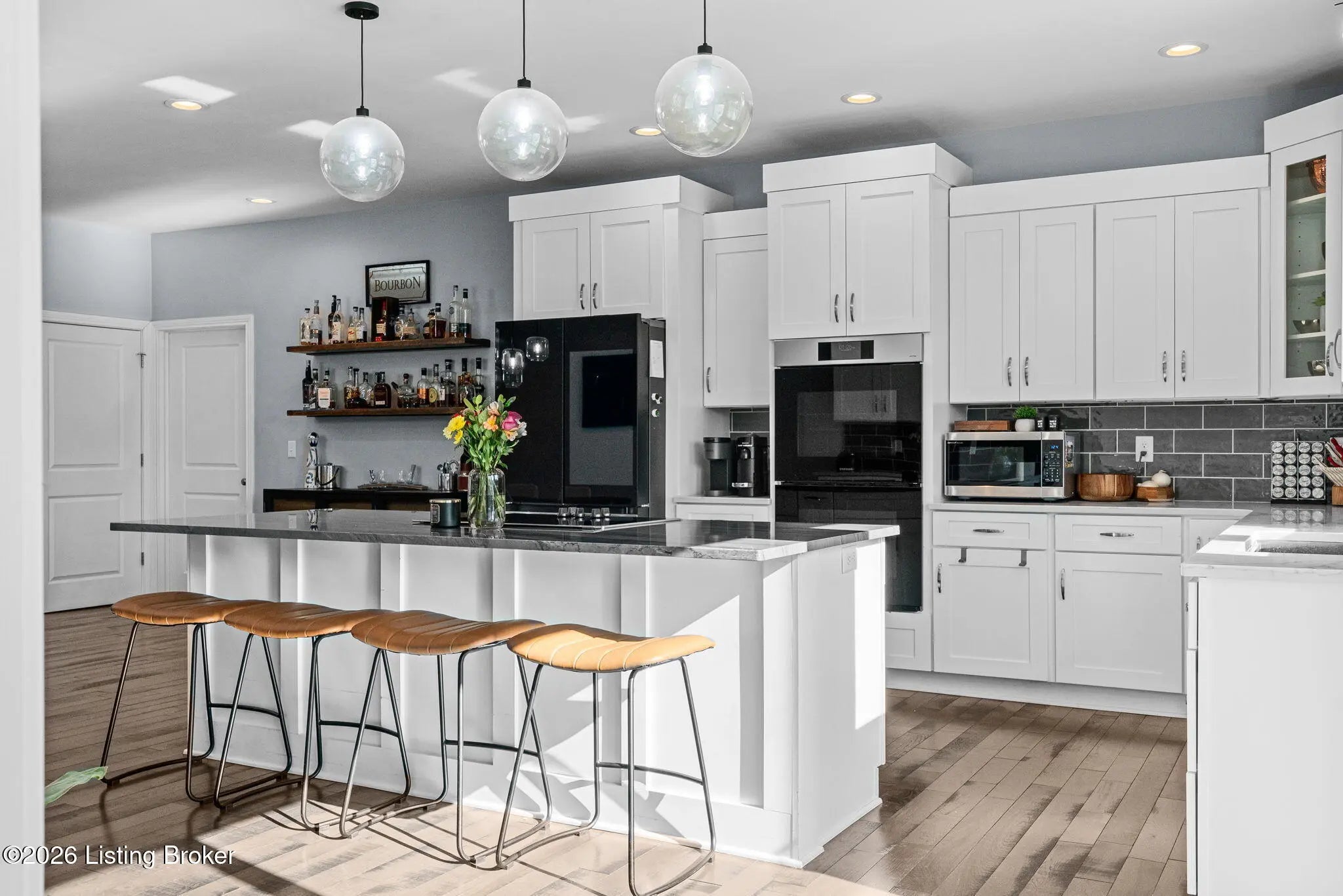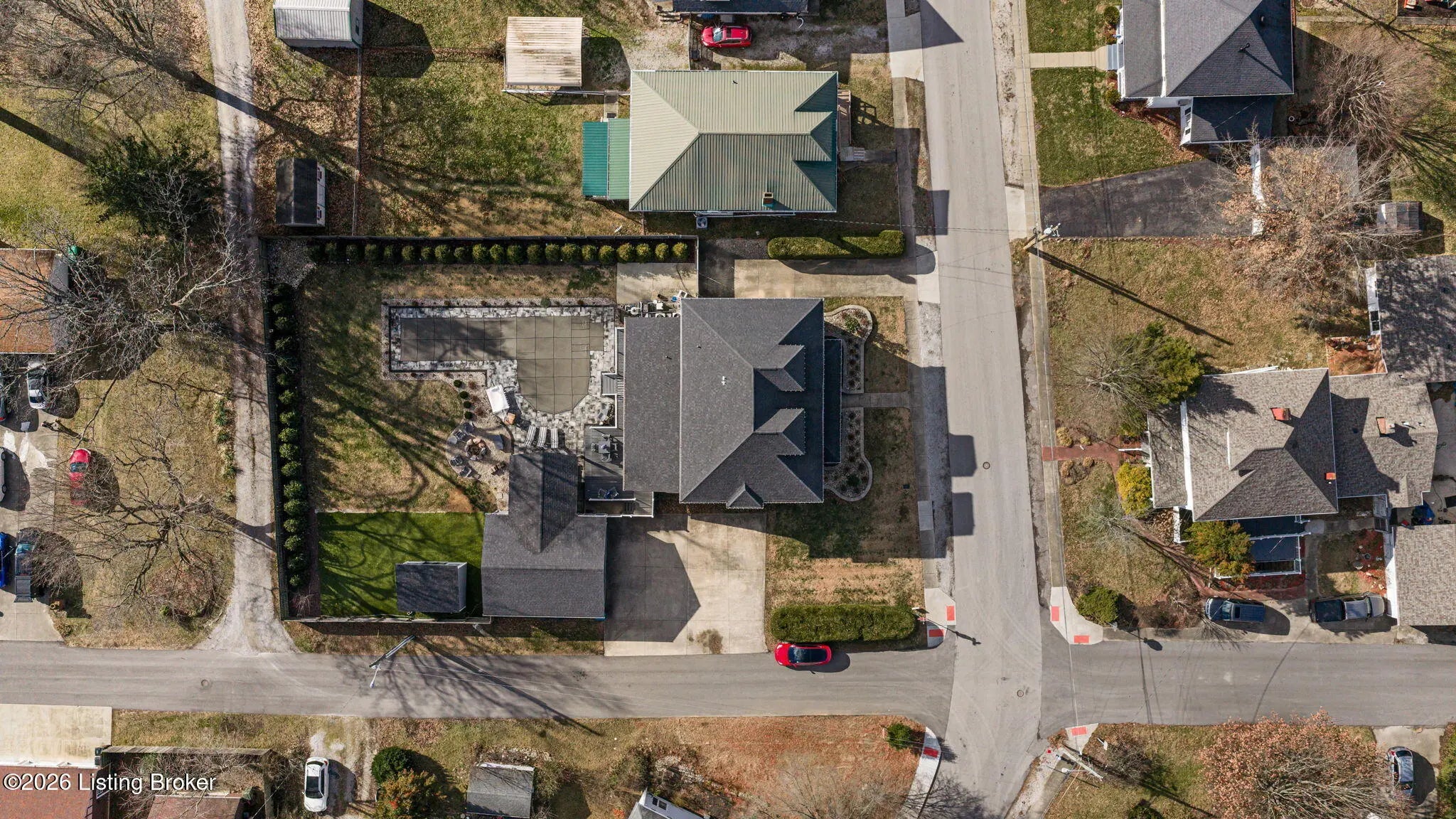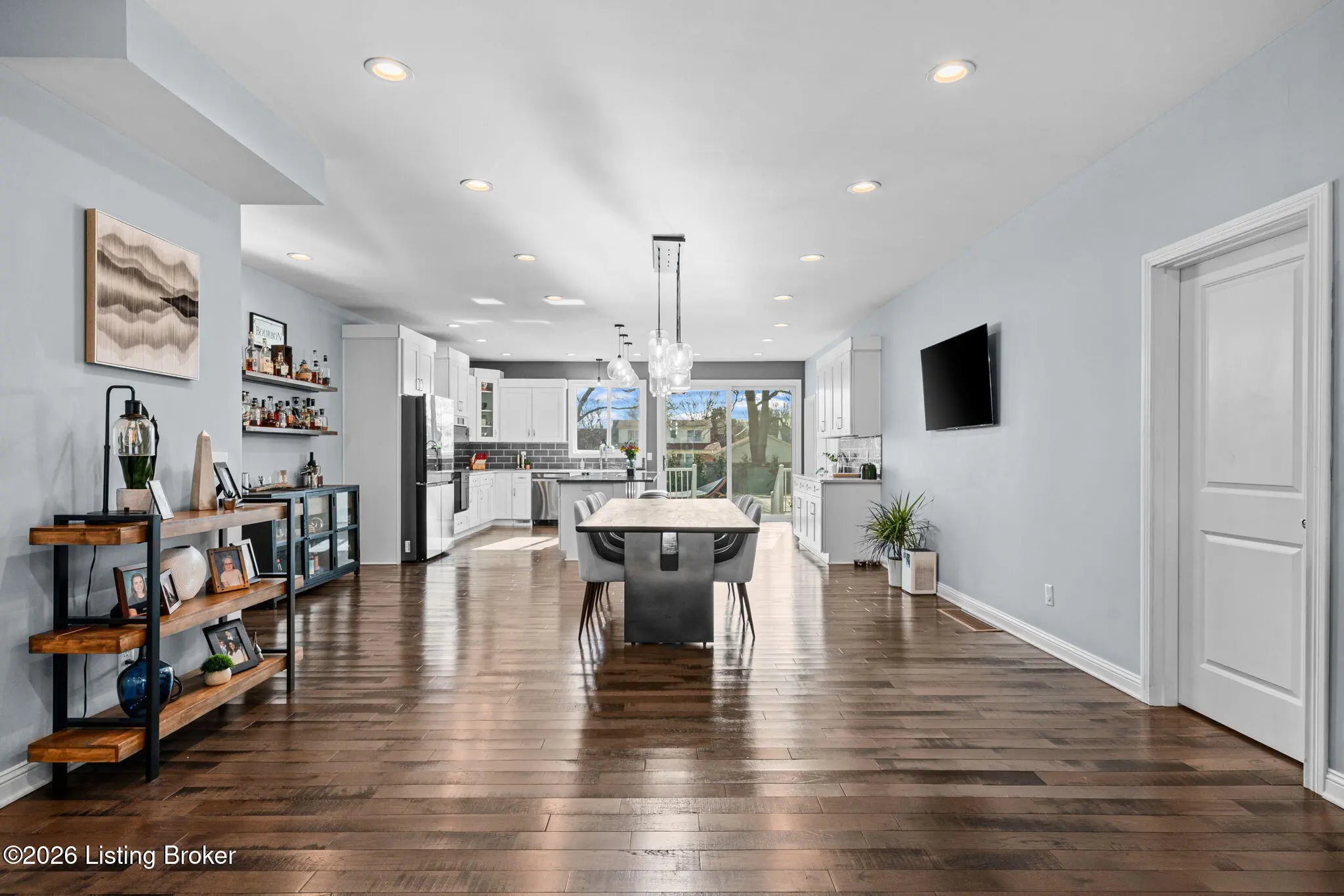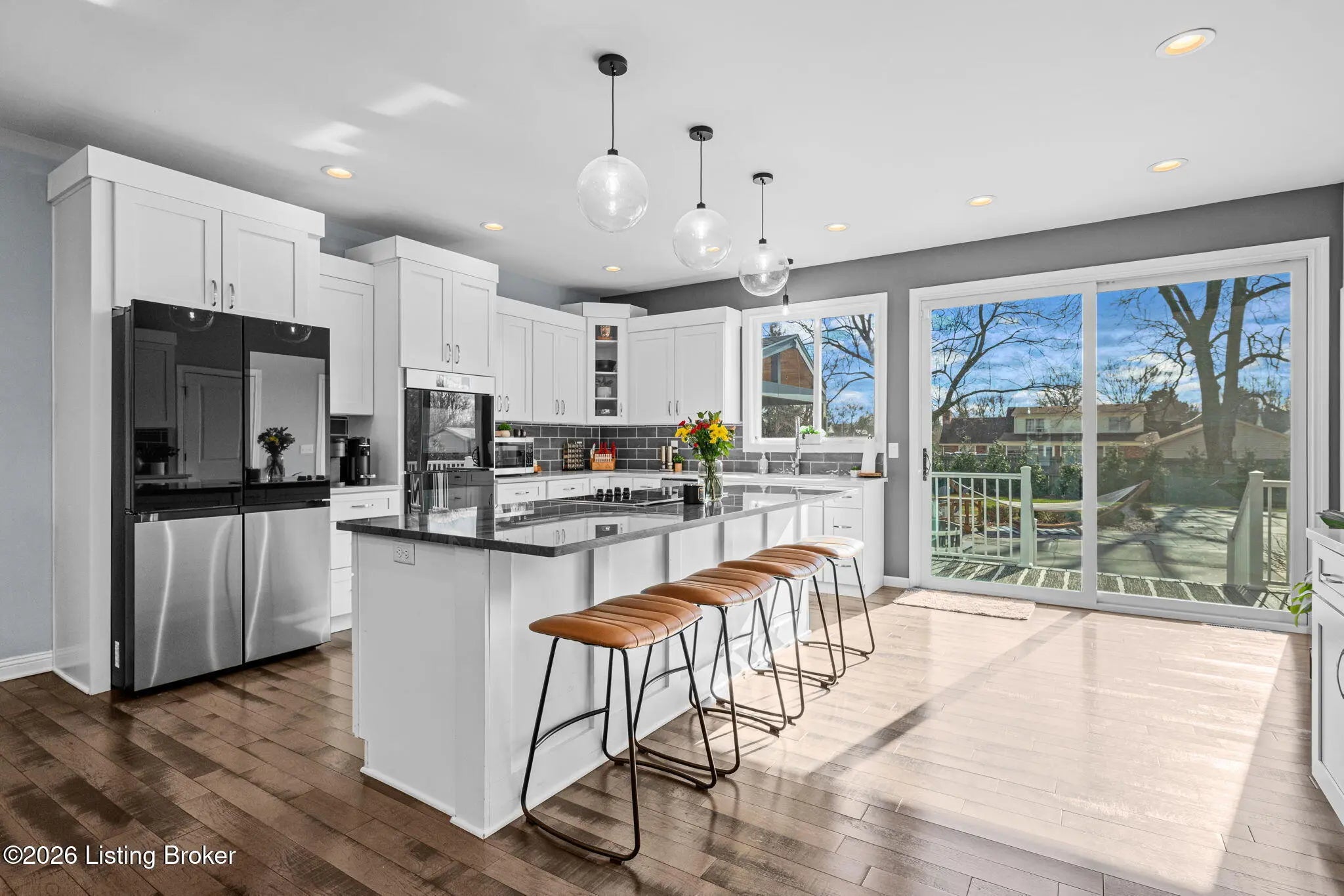 Modern design meets resort-style living in this beautifully remodeled home on a corner lot within walking distance of downtown Elizabethtown. Walls of windows flood the home with natural light and showcase the custom in-ground pool by Dixie Yard Works, multiple patios, and a stunning pool house. The open-concept layout features soaring ceilings, hardwood floors, and a gourmet kitchen with granite countertops and high-end appliances—ideal for entertaining. The primary suite offers a spa-like bath with a soaking tub and tiled walk-in shower. Highlights include laundry on both levels, a home office, Jack-and-Jill bath, third-level flex space, and exceptional outdoor living with a covered patio, custom hardscaping, expansive front porch, and pool house with glass garage doors and bar area.