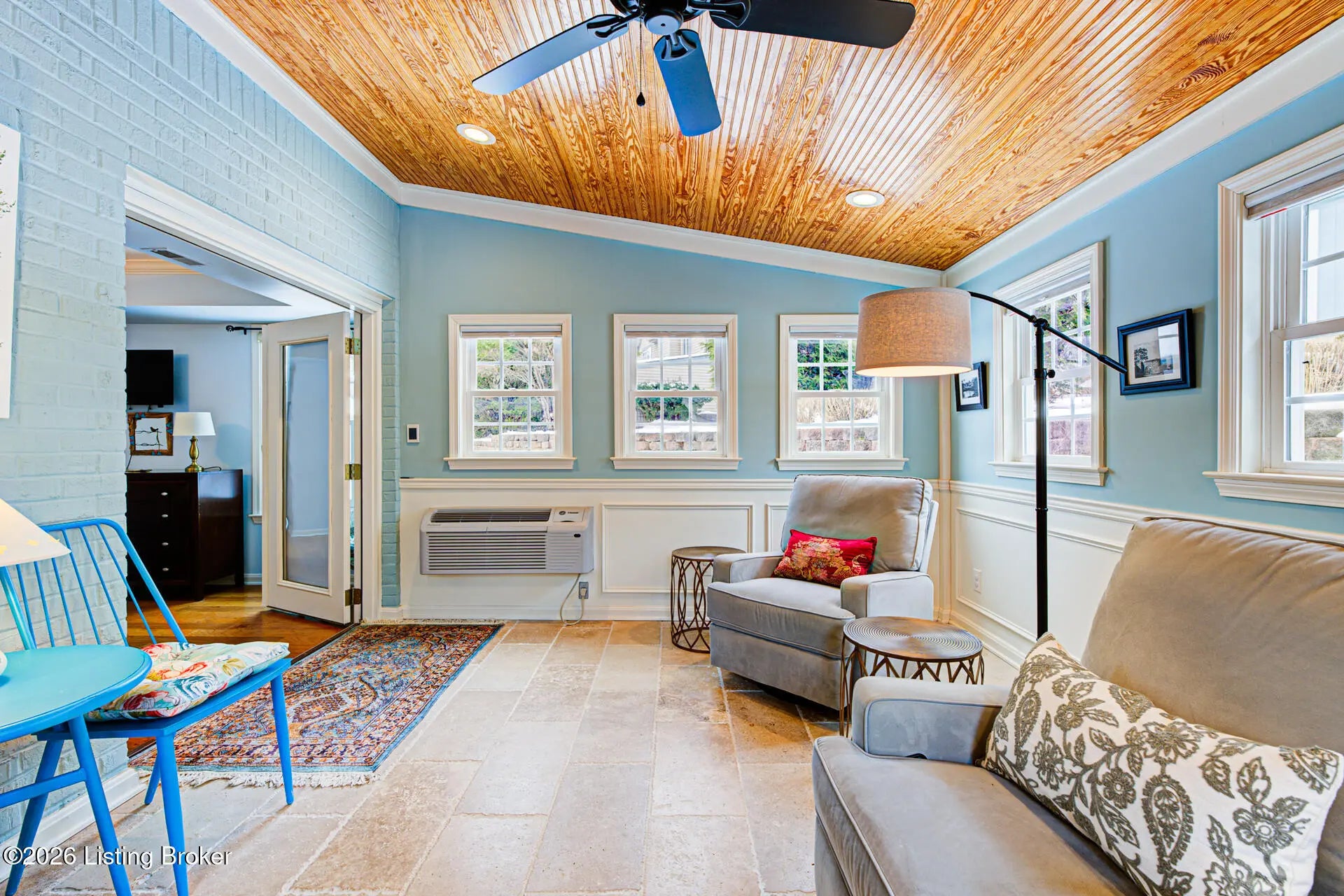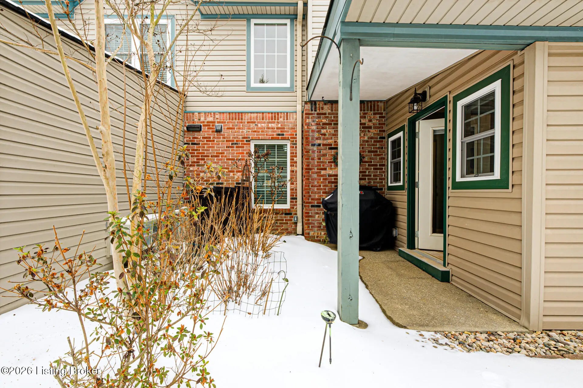 Welcome to your private paradise in The Woodlands on Harrods Creek. This exceptional 3-bedroom, 2.5-bath end-unit townhome blends elegance with effortless living. The open-concept, two-story Great Room features a cozy fireplace and formal dining area with stunning bamboo flooring. Perfect for entertaining, the space flows seamlessly into a recently added Sunroom—a true winter sanctuary with heated travertine tile floors and bathed in natural light. Just off the sunroom is a patio perfect for summertime grilling and enjoying nature. The gourmet eat-in kitchen is a chef's delight, boasting granite countertops, a designer tile backsplash, and extensive cabinetry, plus a convenient laundry/pantry closet. Retreat to the first-floor primary suite with wood flooring with huge walk-in closet and a spa-like bath featuring an open shower, soaking tub, and double vanity. Upstairs, a versatile loft overlooks the living area perfect for a office or sitting area, it's joined by two spacious bedrooms and a full bath. A 2-car attached garage for a no-step entry completes this lovely townhome. Enjoy community walking trails, a pool, pickleball court, and a private clubhouse in Prospect!