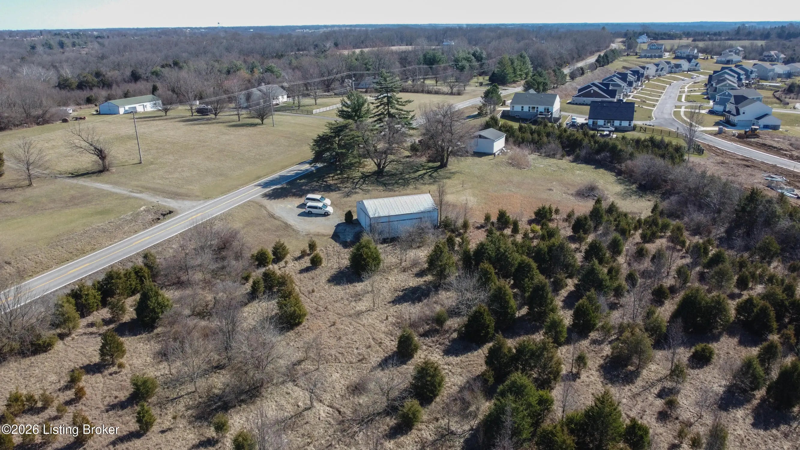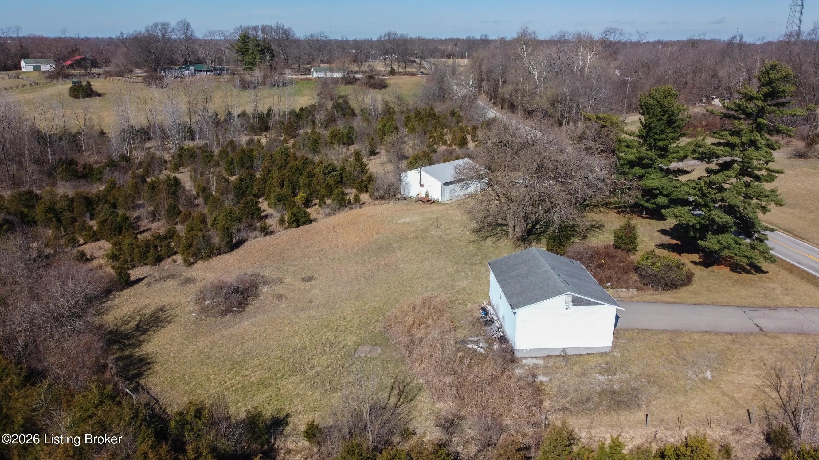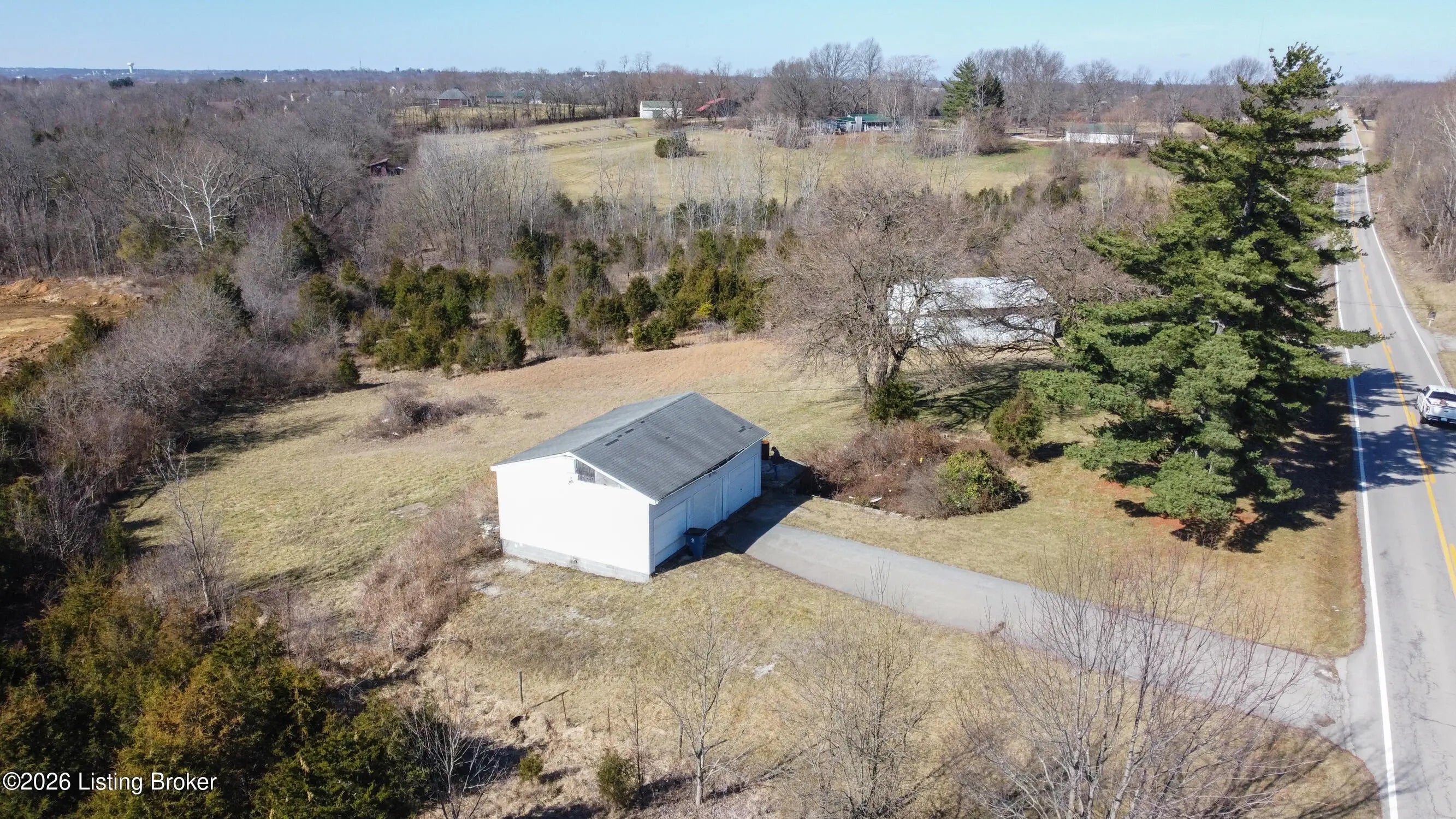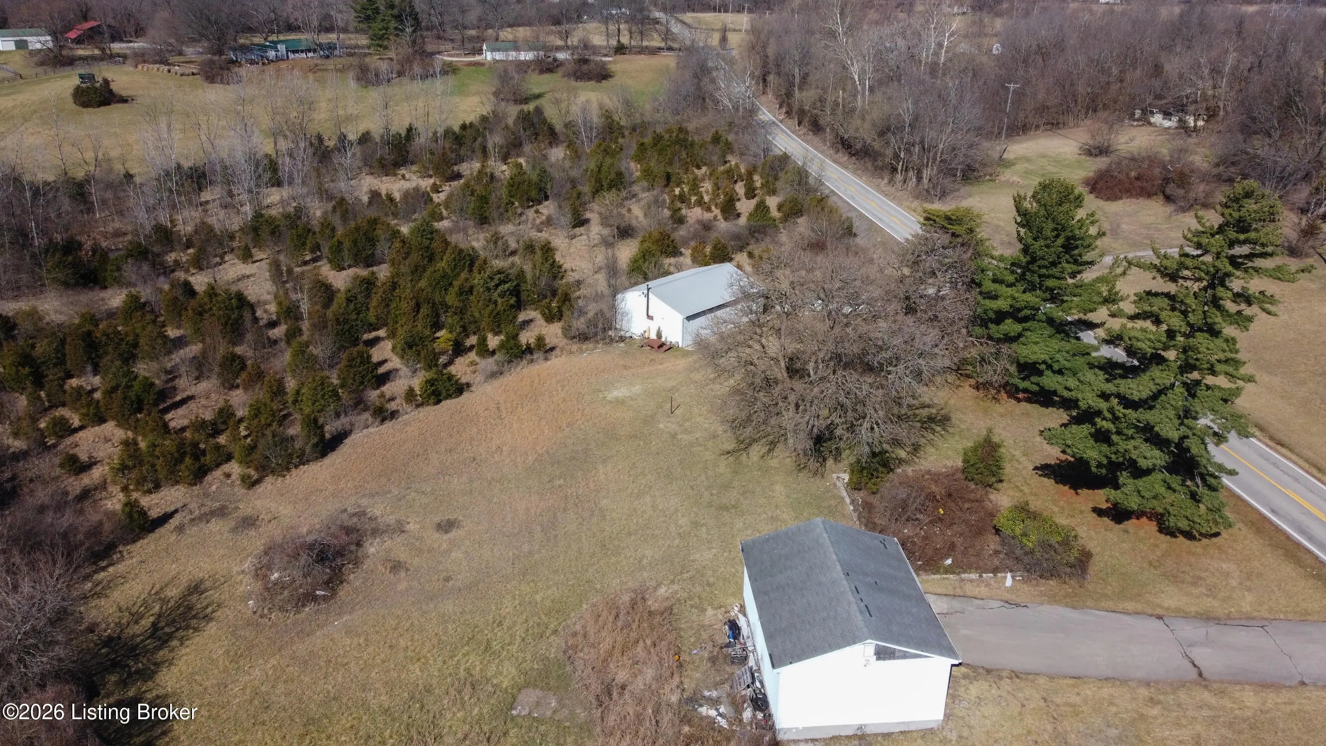 Rare Oldham County opportunity with 4.82 combined acres and outbuildings! This offering includes two parcels: 54-00-00-15B (4.469 acres) featuring a 30 x 40 barn, and Parcel 54-00-00-11A (.36 acres) featuring a 3-car garage. The land offers an excellent building site with the potential for a walkout basement, and the layout could be divided for more than one homesite (buyer to verify). Both outbuildings include concrete floors with water and electric with great potential, but are in need of repair. A unique chance to secure acreage, usable structures, and future development possibilities in a highly desirable location. Electric, Water and Septic Tank on site Outbuildings are currently on a month to month lease for $800 a month.