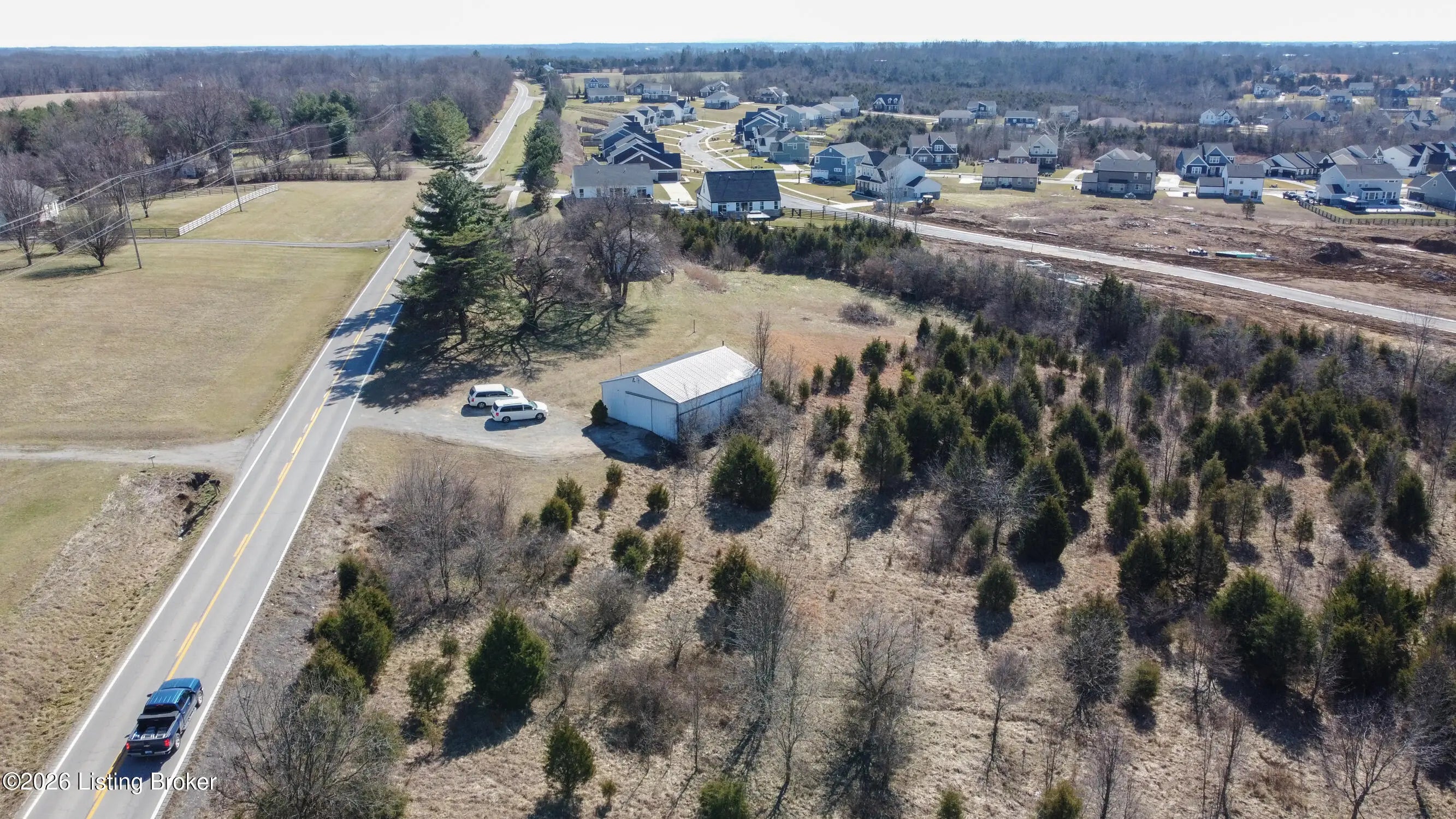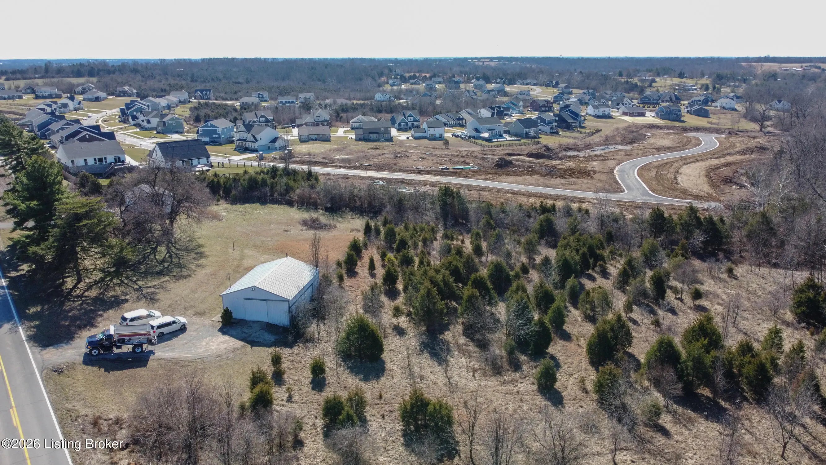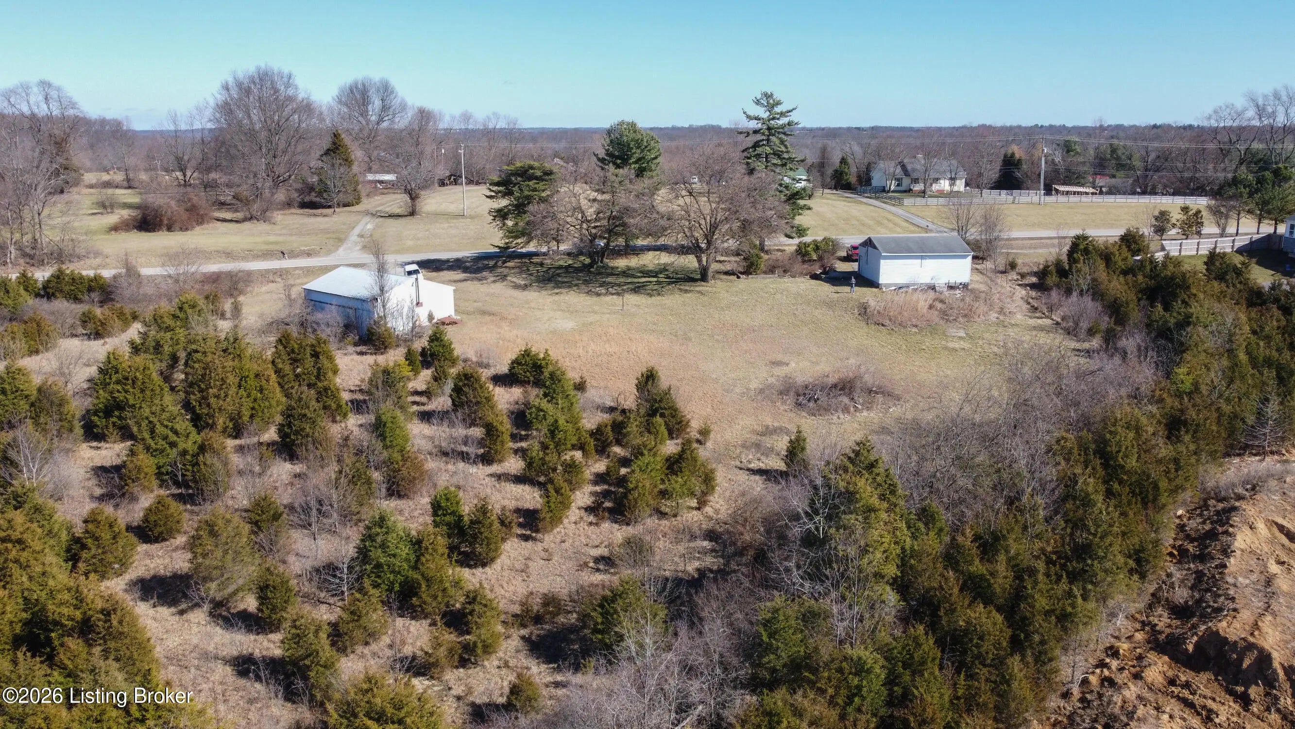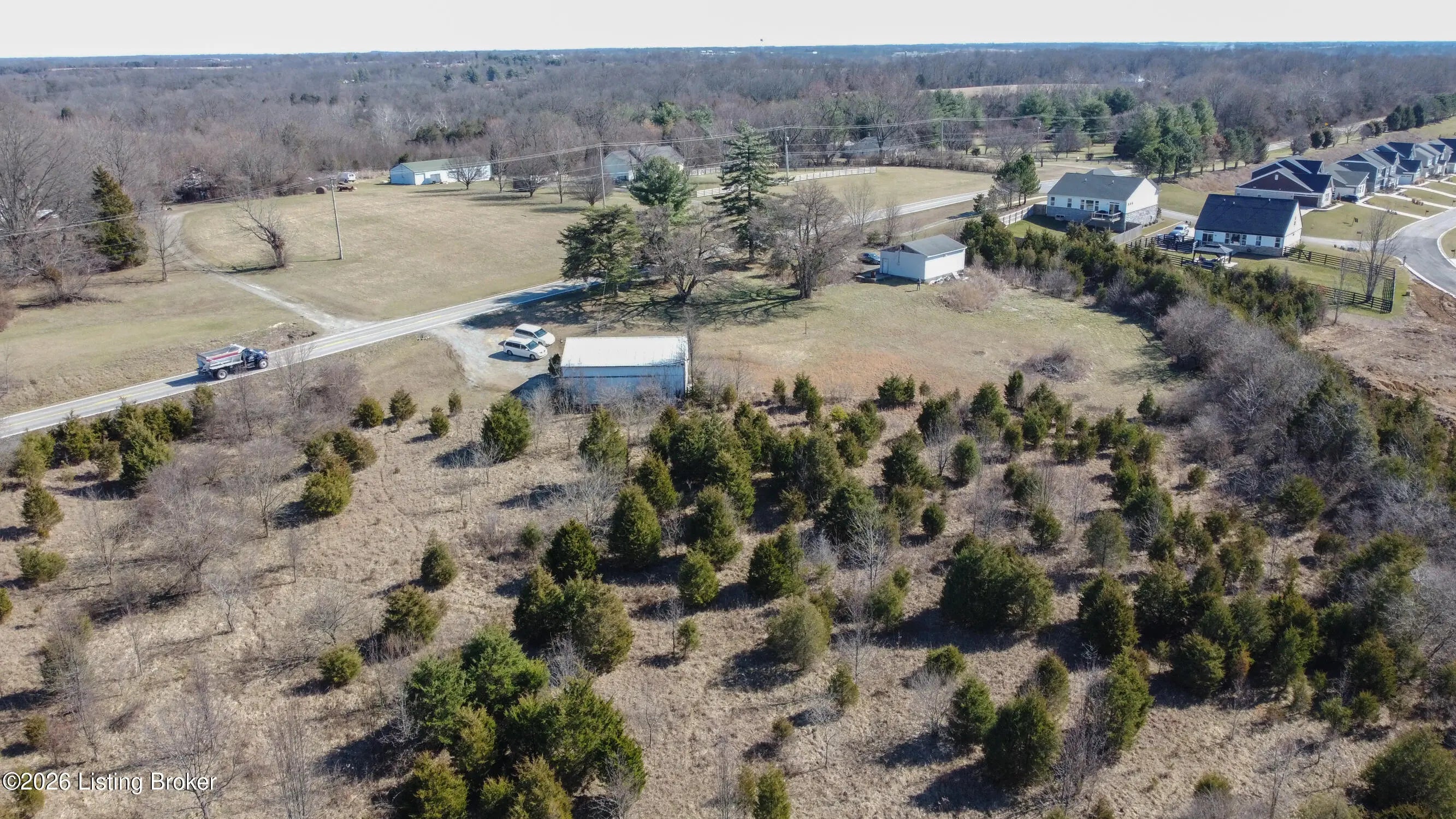 Rare Oldham County opportunity with 4.82 combined acres and outbuildings! This offering includes two parcels: 54-00-00-15B (4.469 acres) featuring a 30 x 40 barn, and Parcel 54-00-00-11A (.36 acres) featuring a 3-car garage. The land offers an excellent building site with the potential for a walkout basement, and the layout could be divided for more than one homesite (buyer to verify). Both outbuildings include concrete floors with water and electric with great potential, but are in need of repair. A unique chance to secure acreage, usable structures, and future development possibilities in a highly desirable location. Electric, Water and Septic Tank on site Outbuildings are currently on a month to month lease for $800 a month.