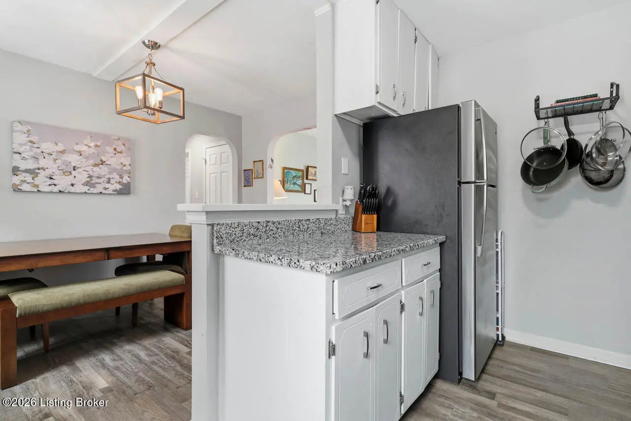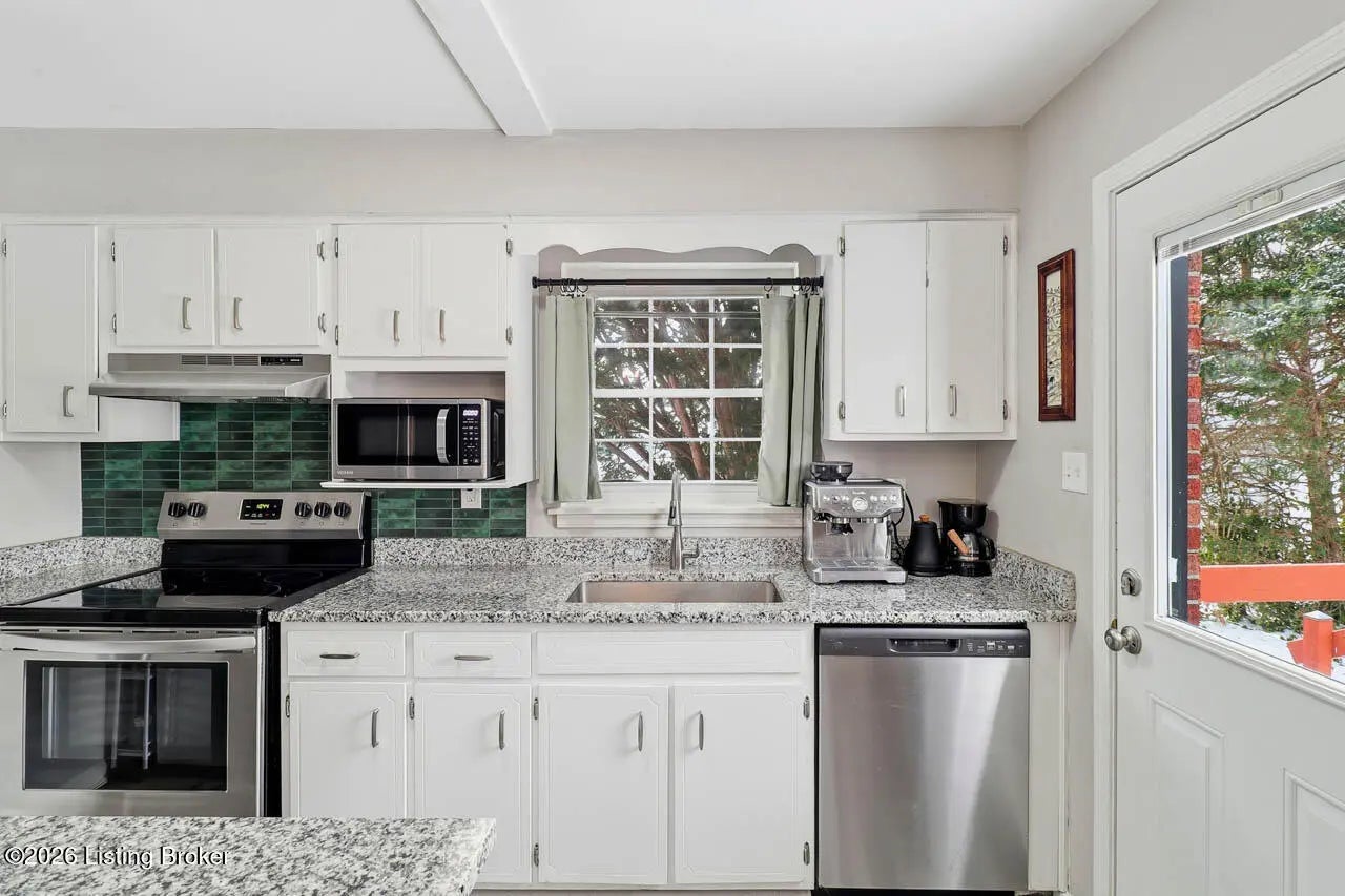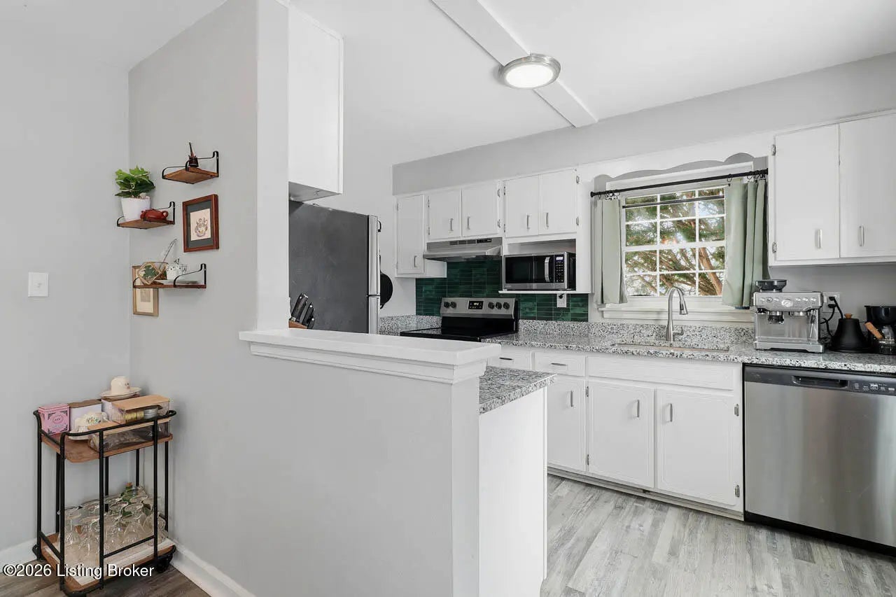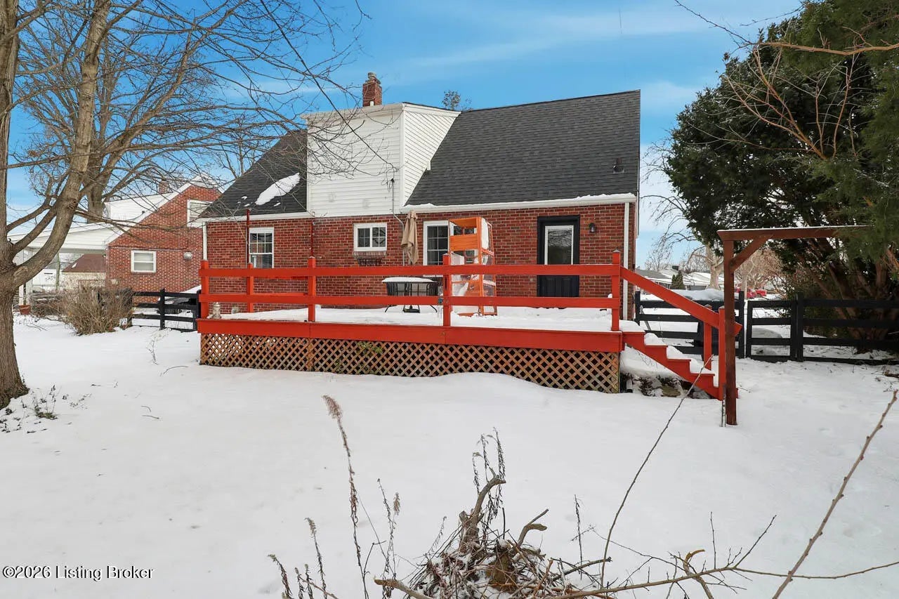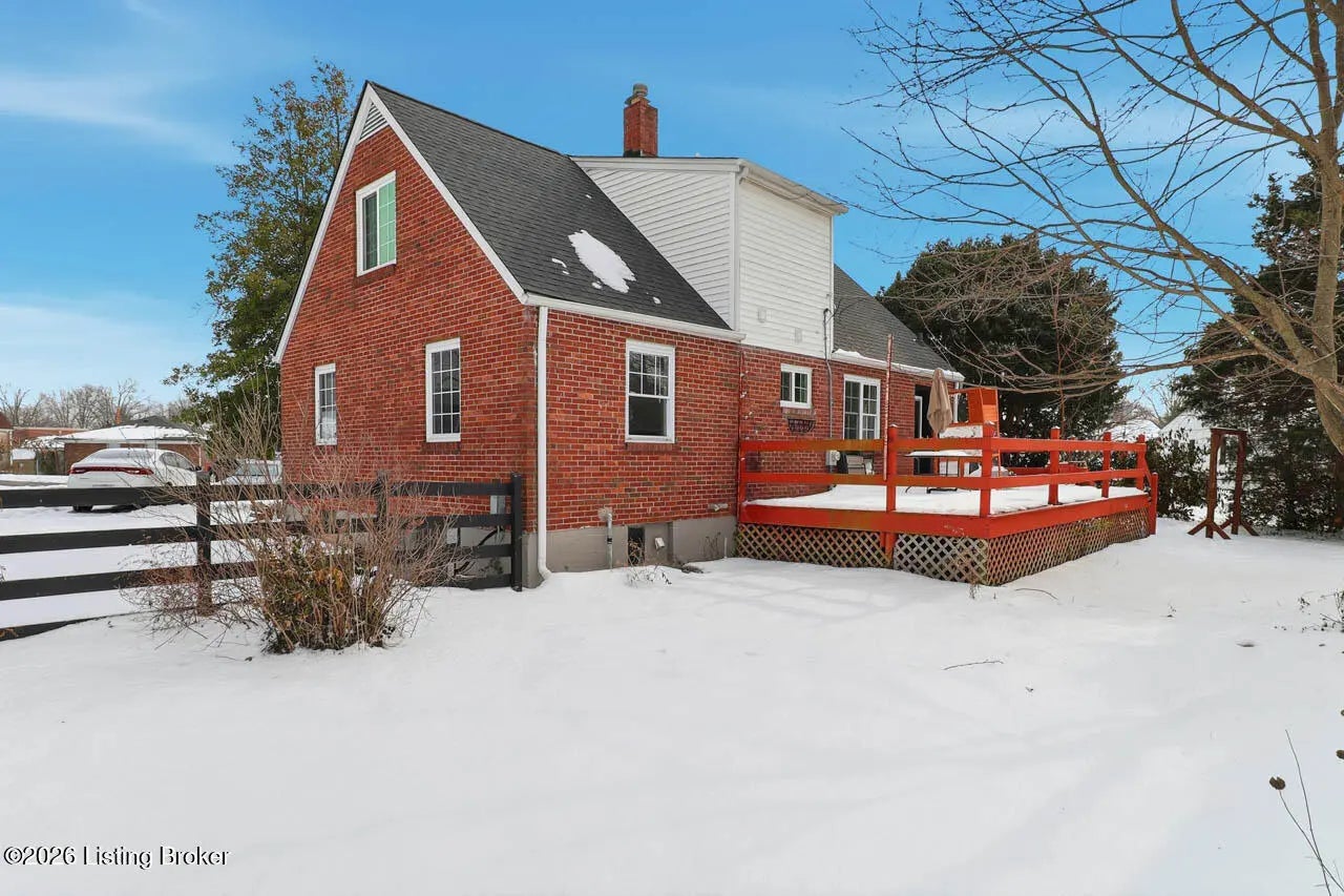 There is so much to love about this adorable 4 bedroom, 2 bath Cape Cod home with a full basement and partially fenced back yard! This home offers seamless flooring throughout the common areas and charming arched doorways between the living room, kitchen, and hallway. The eat-in kitchen offers stainless steel appliances and a door that leads to the deck overlooking the back yard. There are 2 bedrooms on each floor as well as 2 full bathrooms on each floor as well. Make your way to the unfinished basement where you will find laundry hook-ups as well as plenty of room for storage and the opportunity to finish this space to create a separate living area. This location allows easy access to I-265 and I-64 for a quick commute. Don't miss out - schedule a showing today!