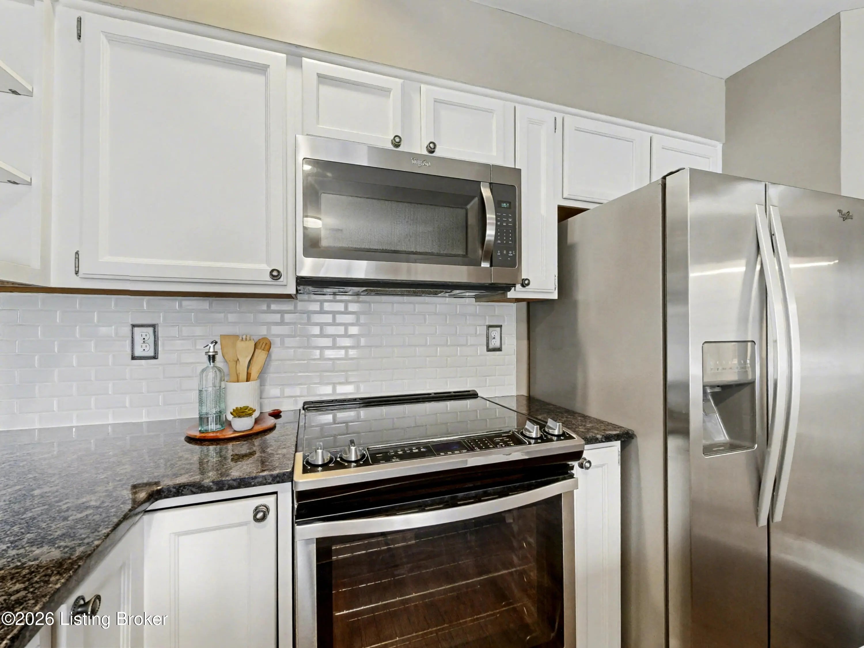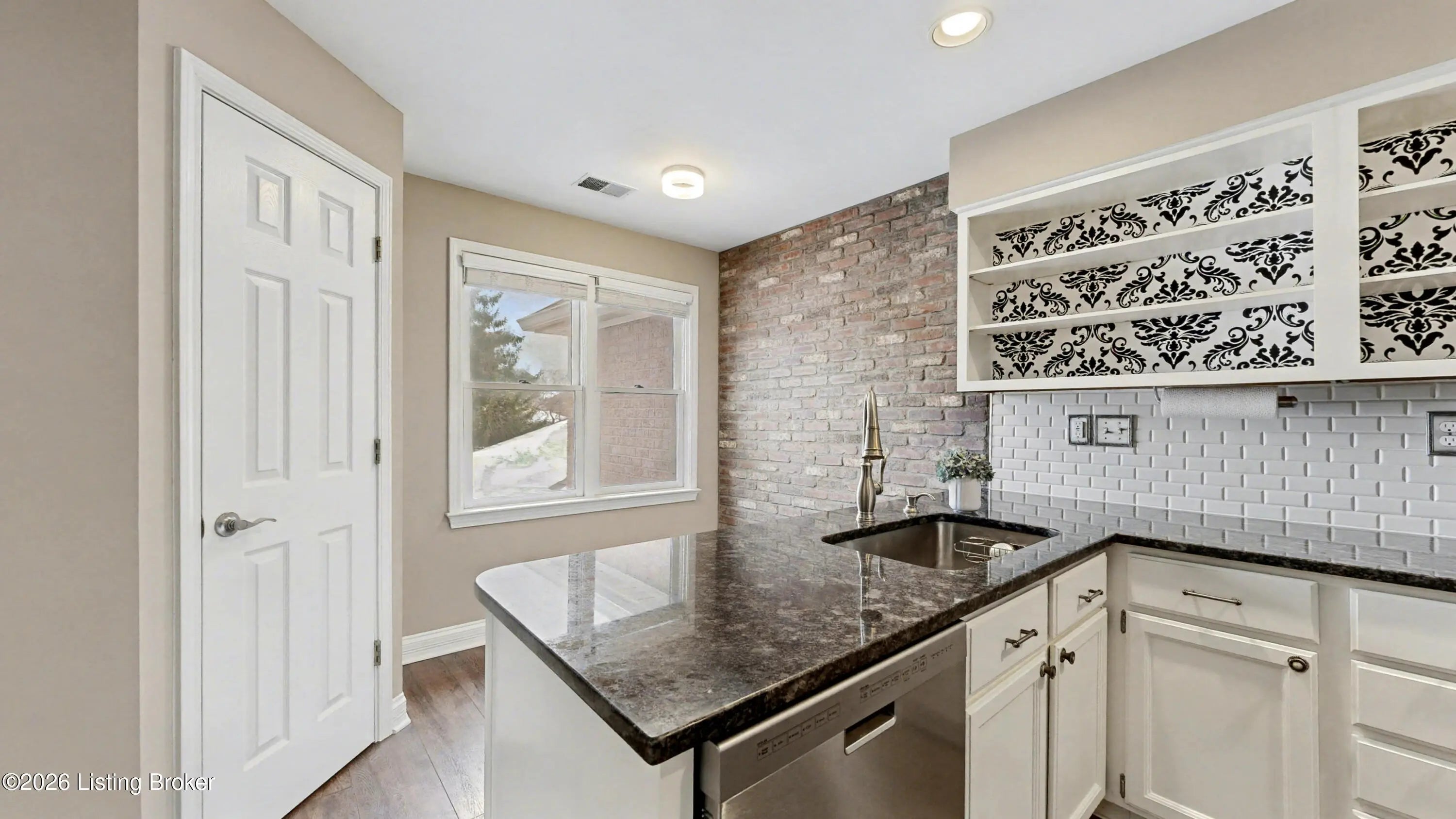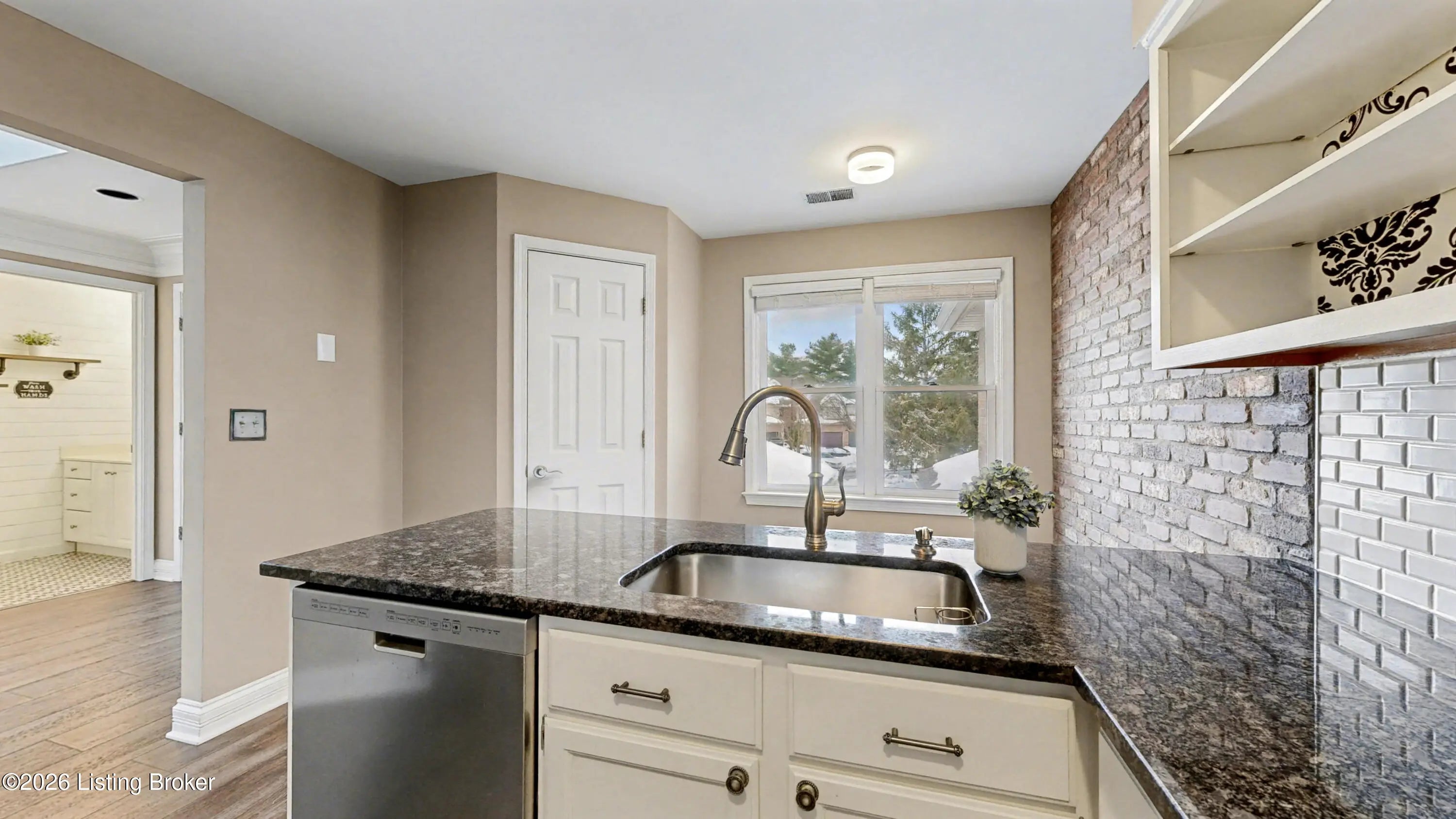 Welcome to 3715 Hurstbourne Ridge Blvd, a beautifully renovated second-floor condominium offering low-maintenance living in a highly convenient East Louisville location just off Hurstbourne Lane, minutes from Jeffersontown and Fern Creek. Thoughtfully updated throughout, this 2-bedroom, 2-bath home blends designer finishes with an open, light-filled layout and the added convenience of an attached one-car garage with direct entry. The main living and dining area stretches the length of the condo, creating an expansive and welcoming space ideal for both everyday living and entertaining. Newer LVP flooring flows throughout, while two full-size skylights flood the home with natural light, enhancing the airy feel of the open floor plan. A gas fireplace serves as a warm focal point, flanked by built-in shelving finished in stylish washed beadboard panels. Sliding door access leads to a covered balcony, offering a comfortable outdoor retreat. The galley-style kitchen delivers both function and personality with crisp white-on-white cabinetry, open shelving accented by patterned designer wallpaper, and contrasting black granite countertops. Stainless steel appliances include a slide-in glass-top range, while a charming eat-in dining space is highlighted by an exposed brick accent wall, adding warmth and architectural character. The spacious primary suite is designed as a relaxing retreat, featuring a bay window, tray ceiling with crown molding, and a large walk-in closet. The fully renovated ensuite bath showcases updated cabinetry and wall accents, a dual vanity, jetted soaking tub, and a walk-in shower with framed glass enclosure. The second bedroom is generously sized and offers a walk-in closet along with a decorative faux brick accent wall, making it ideal as a guest room, home office, or flex space. The remodeled second full bath features beadboard accent detailing, a new vanity, and updated lighting fixtures. Additional highlights include the attached single-car garage with direct interior access, adding convenience and additional storage potential. Residents enjoy access to community amenities including a rentable clubhouse, neighborhood in-ground swimming pool, and tennis and pickleball courts. With its combination of tasteful updates, functional layout, and prime location, this move-in ready condo offers an exceptional opportunity for comfortable, maintenance-free living. Schedule your showing for 3715 Hurstbourne Ridge Blvd today!